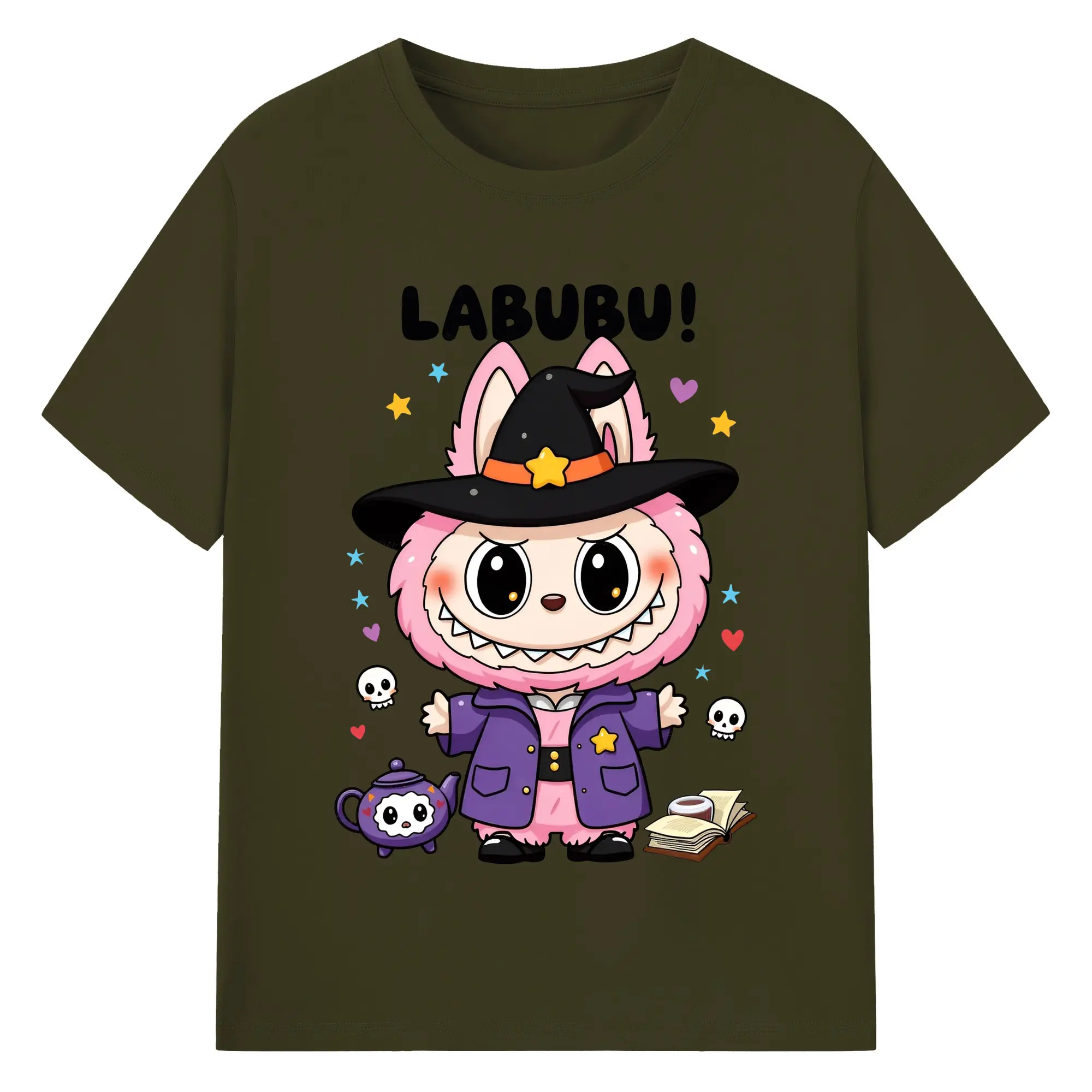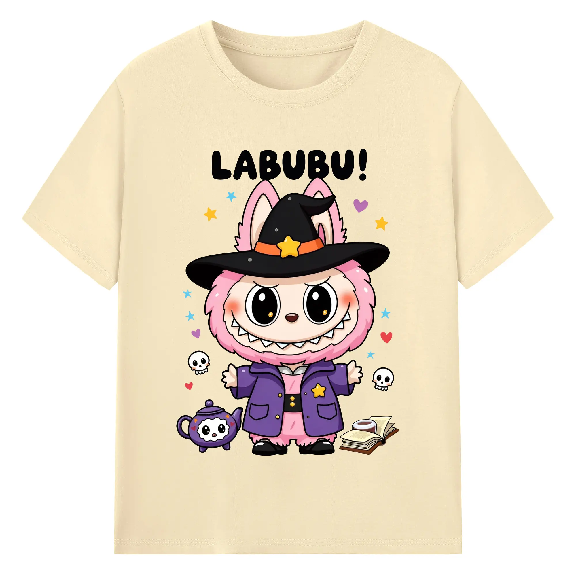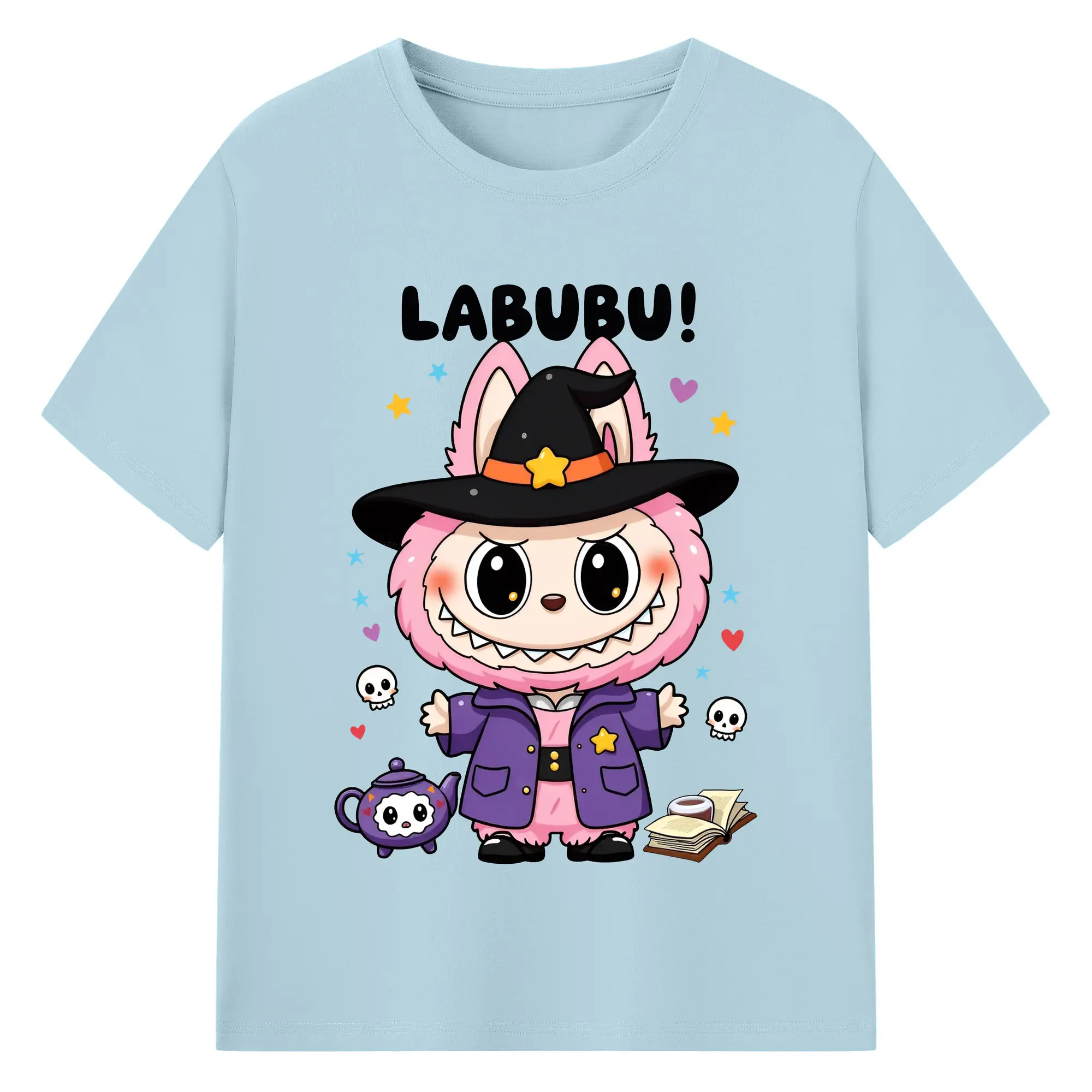 Labubu Cute Magical Witch Cartoon DIY - 180g Cotton T-Shirt With Front Heat Transfer Print – Soft, Lightweight, Fitted Design – Comfortable Casual Wear For Sports & Everyday Use