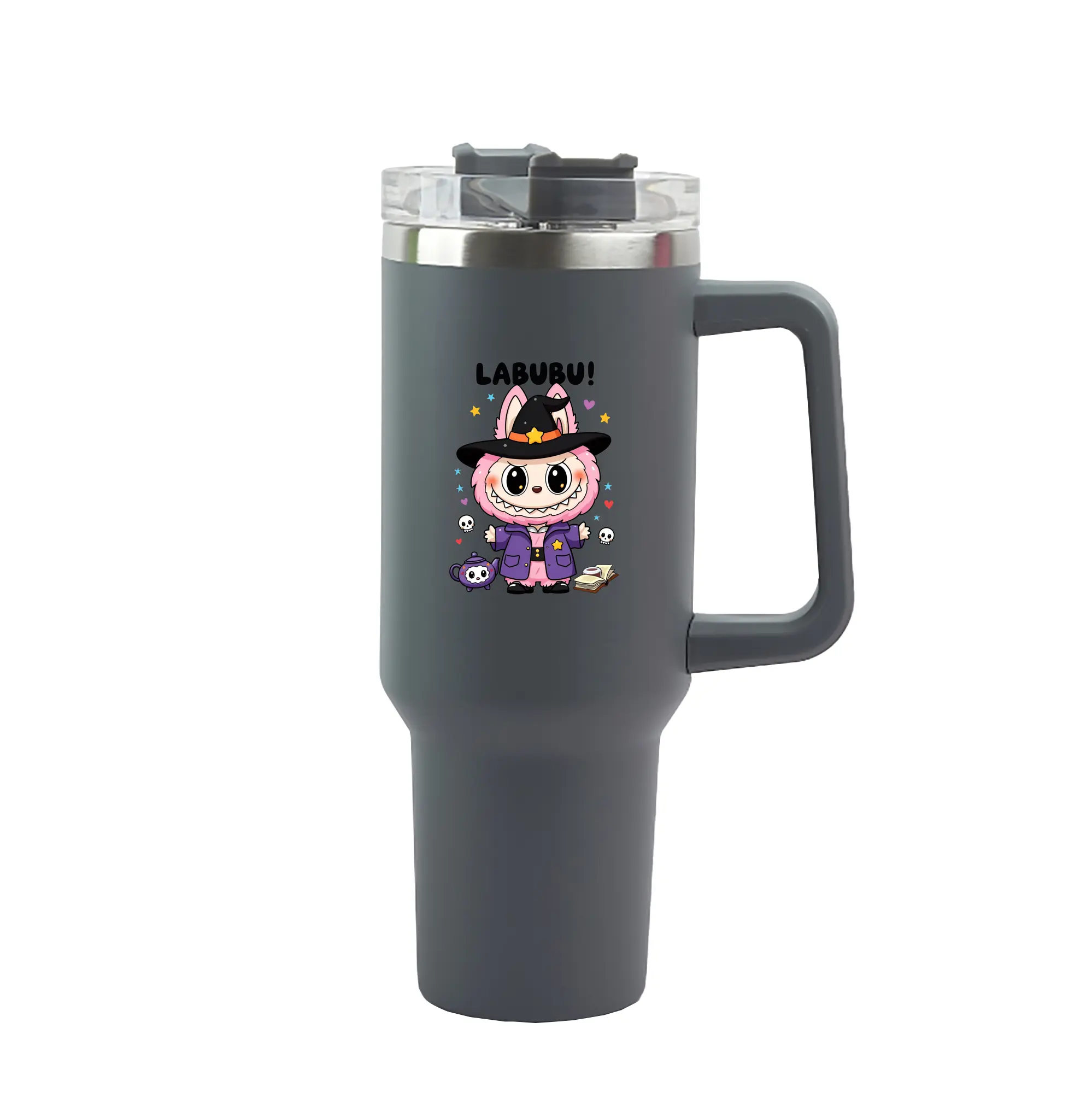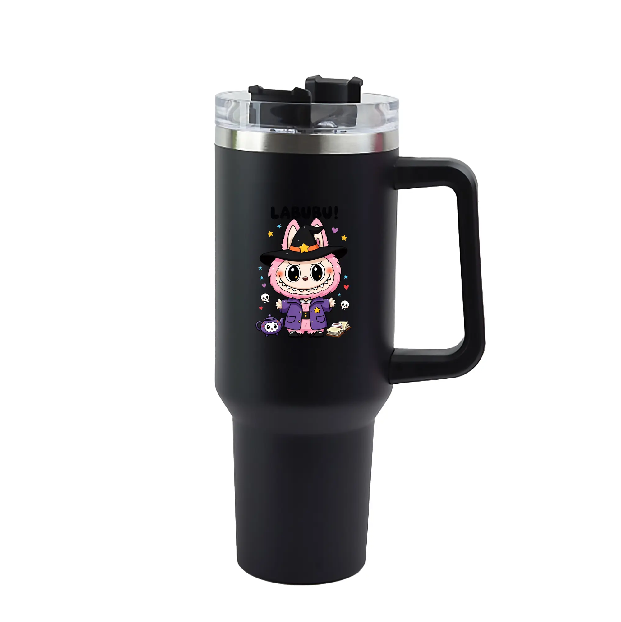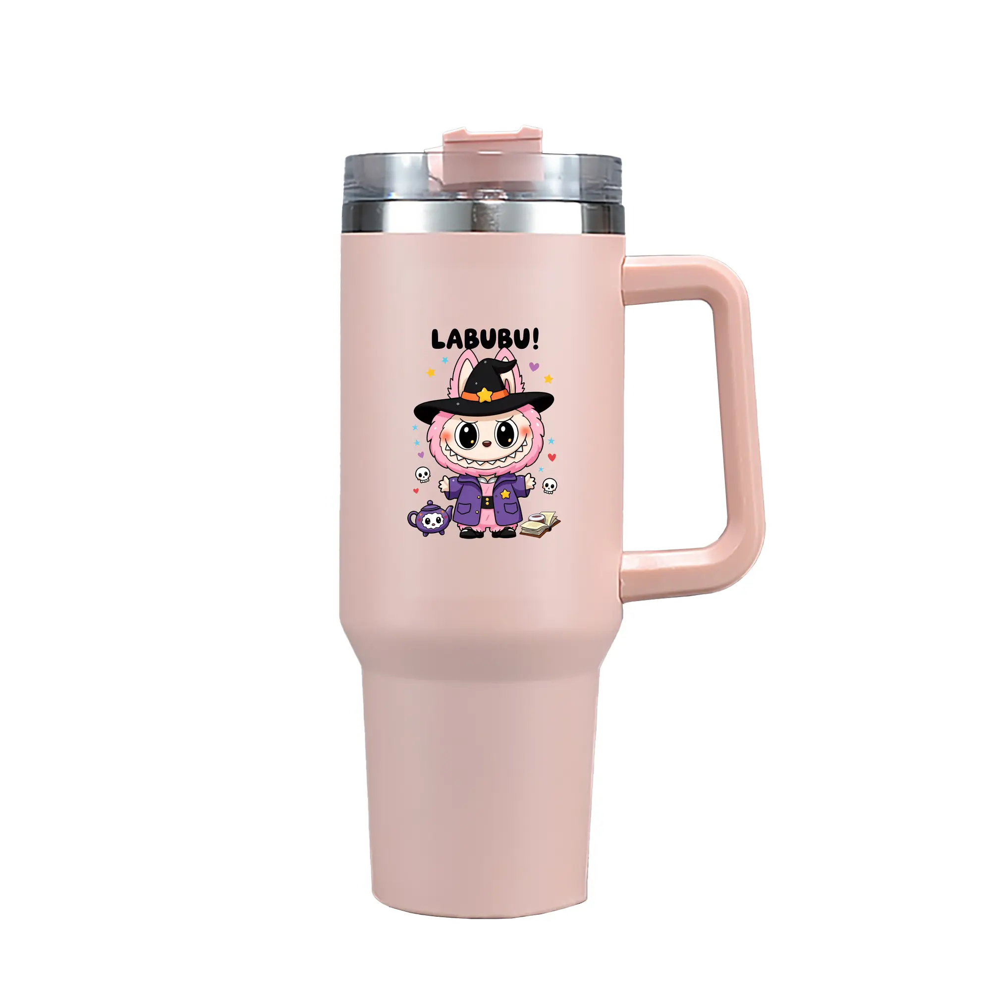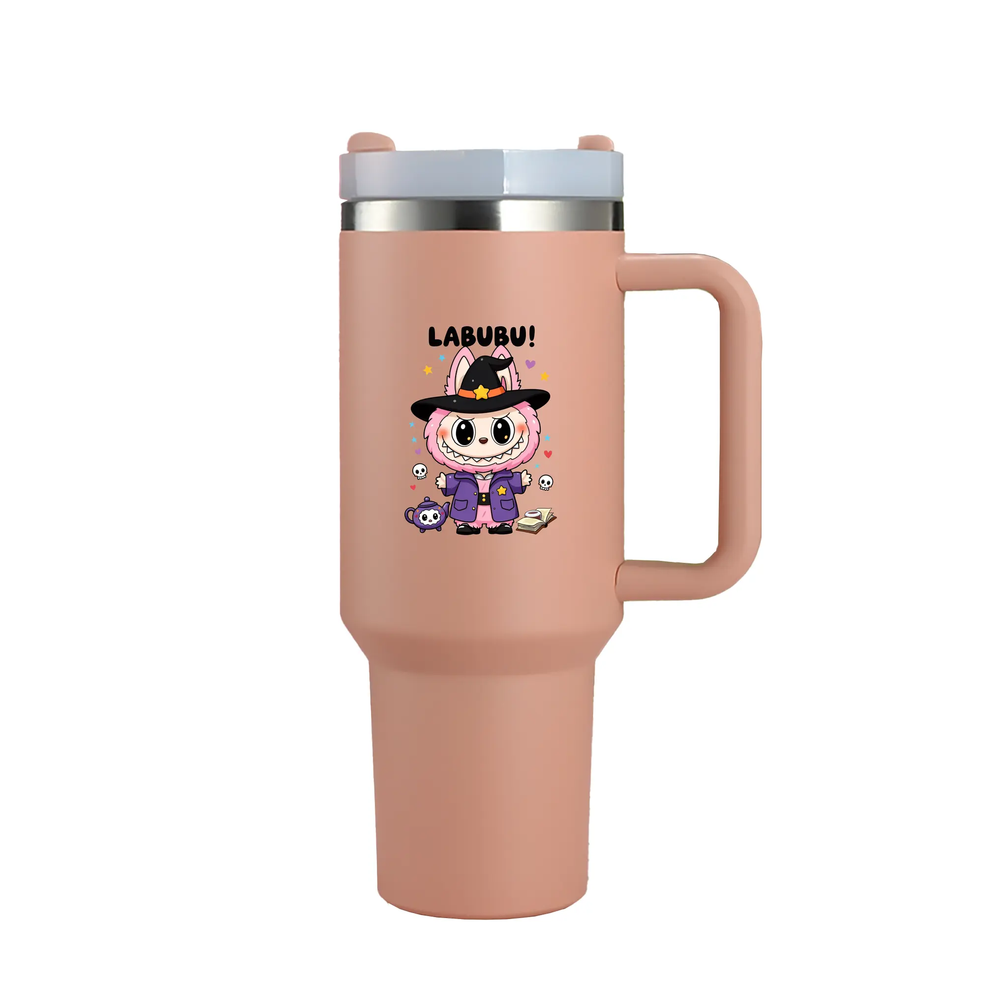 Labubu Cute Magical Witch Cartoon DIY - 40oz Handle Car Tumbler – Durable Stainless Steel Travel Mug With UV Print – Double Wall Insulated, Fits Most Car Cup Holders