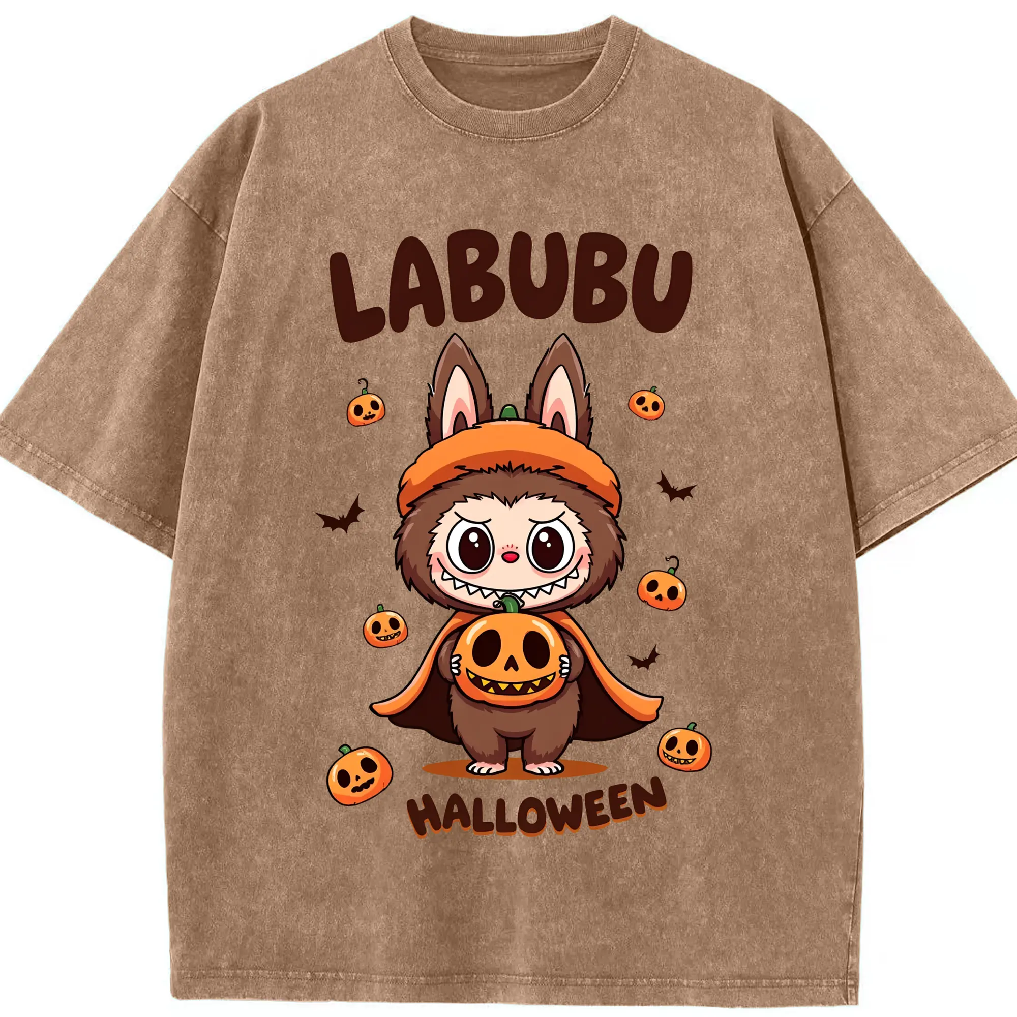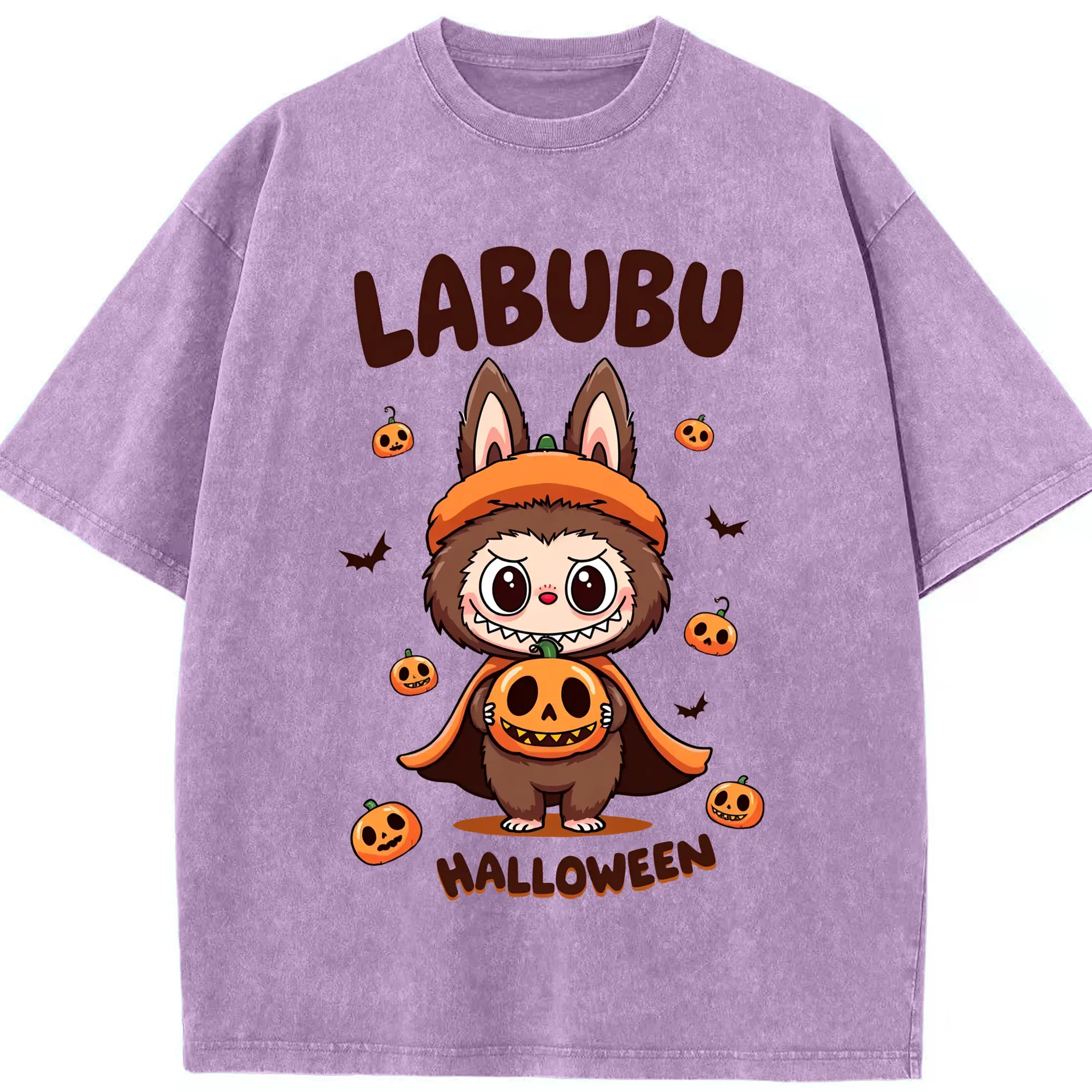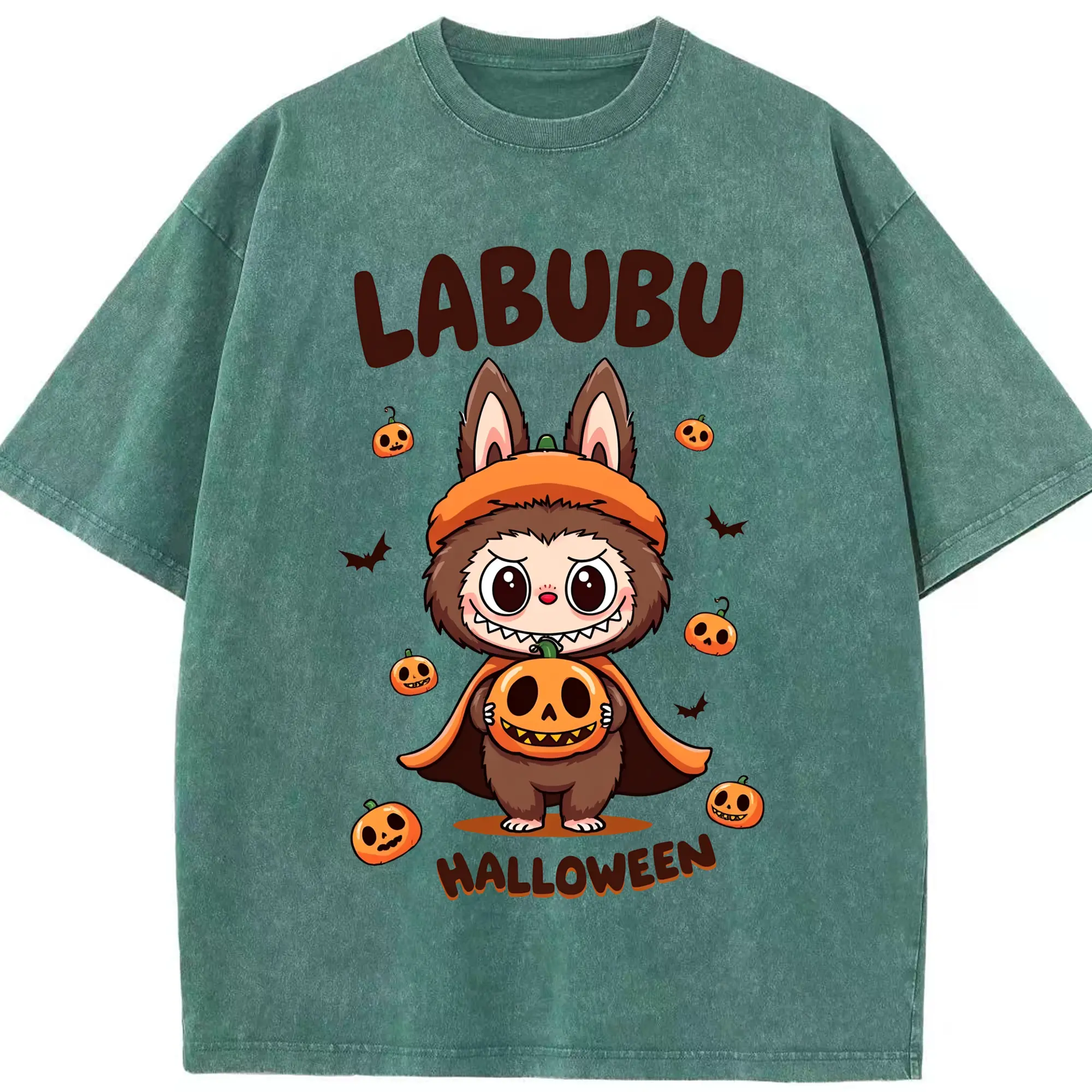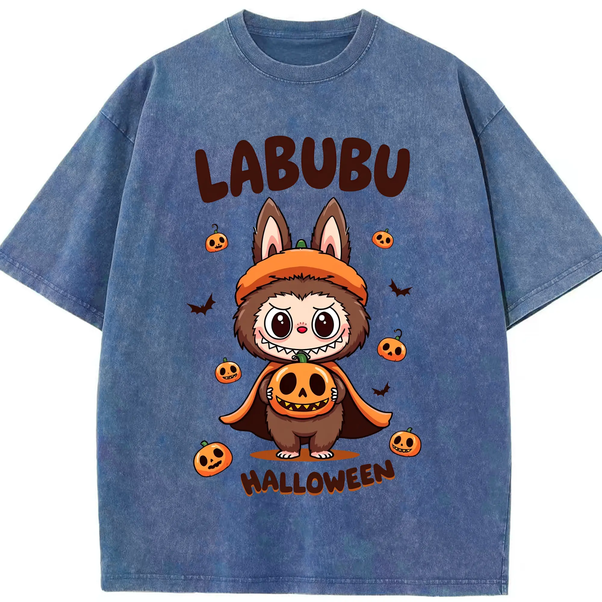 Labubu Halloween Cute Cartoon DIY - Washed Vintage Look 230g Cotton Oversized T-Shirt With Front Heat Transfer Print – Soft, Lightweight, Stylish Fit – Comfortable Casual Wear For Sports & Everyday Use