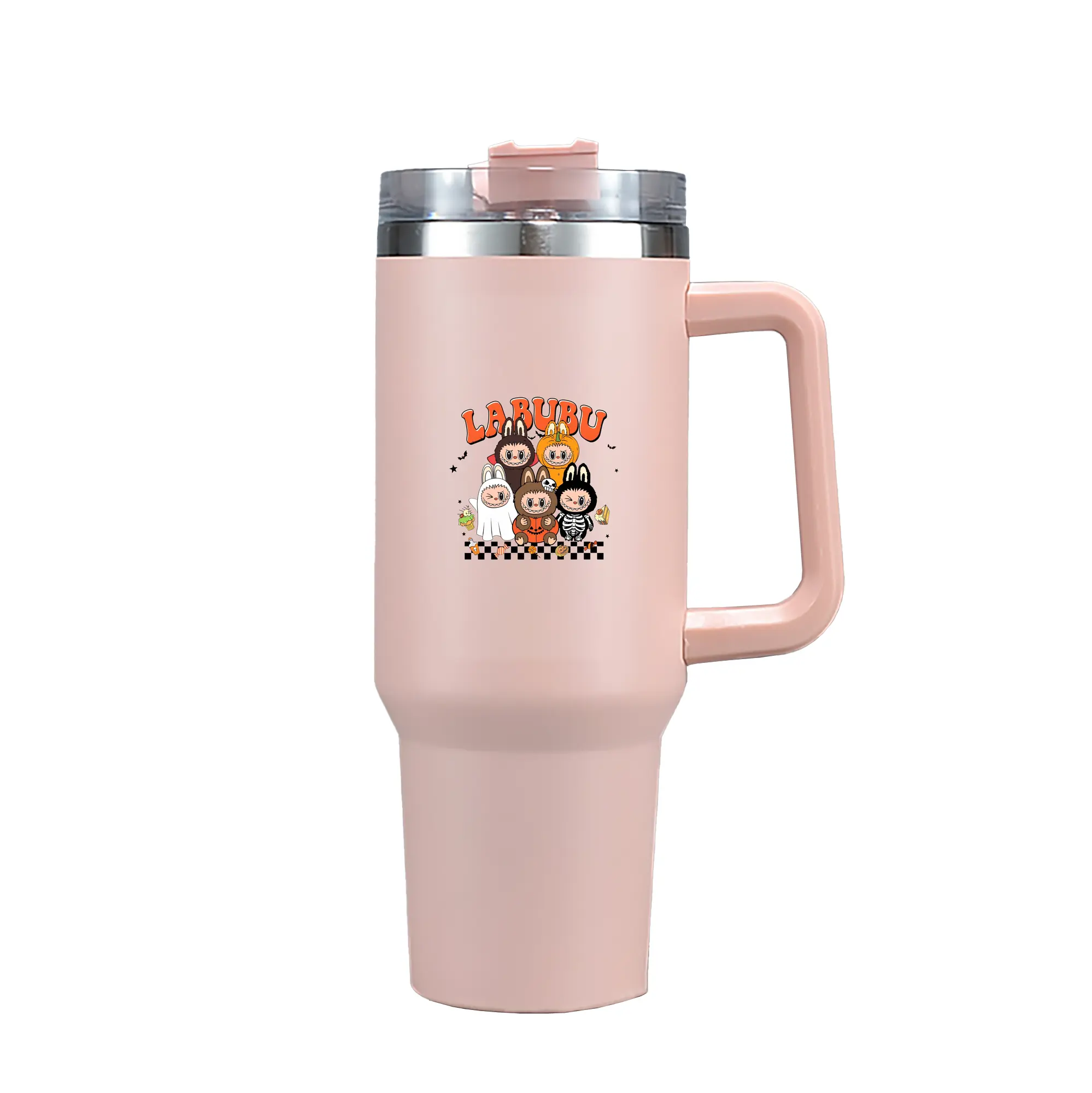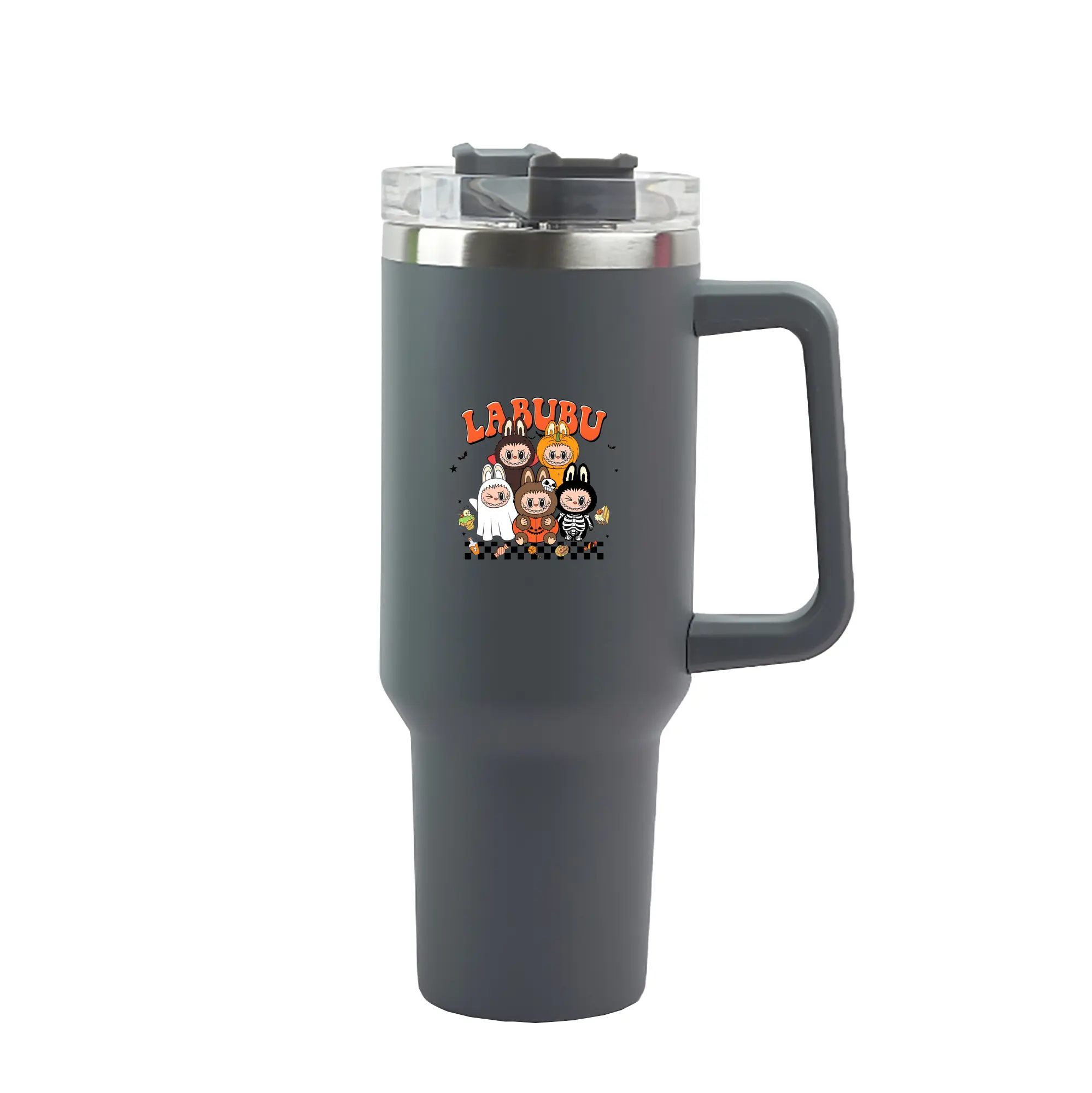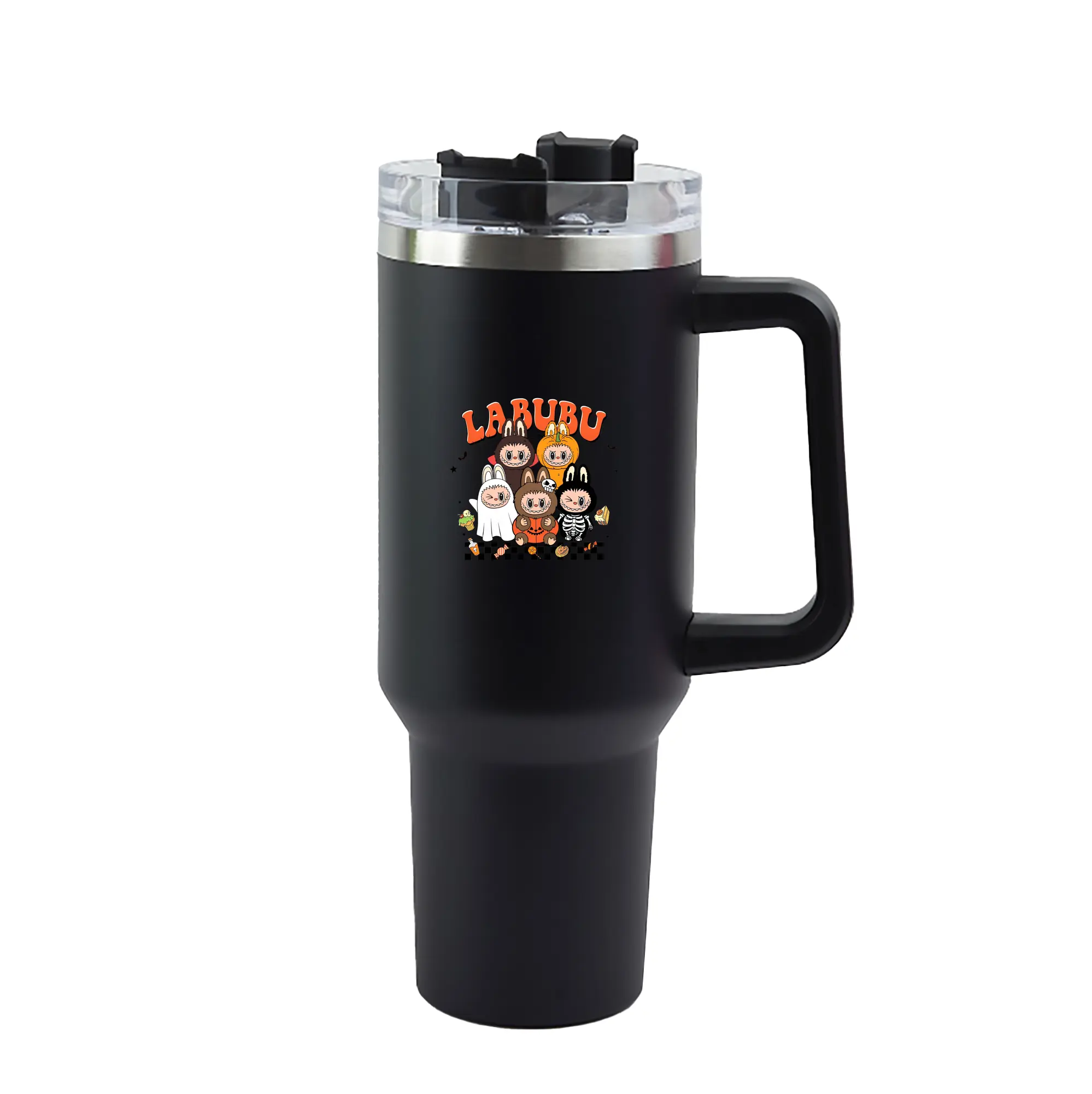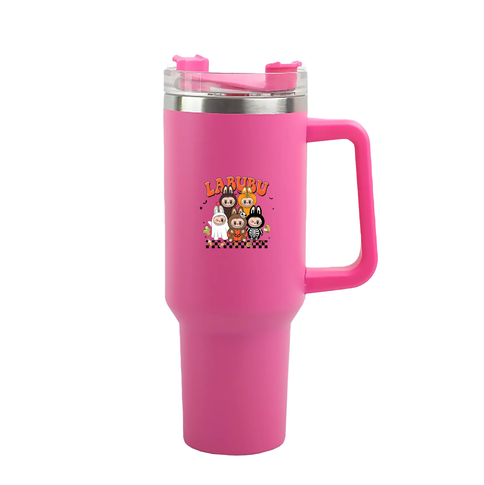 Labubu Halloween Cute Cartoon Group DIY - 40oz Handle Car Tumbler – Durable Stainless Steel Travel Mug With UV Print – Double Wall Insulated, Fits Most Car Cup Holders