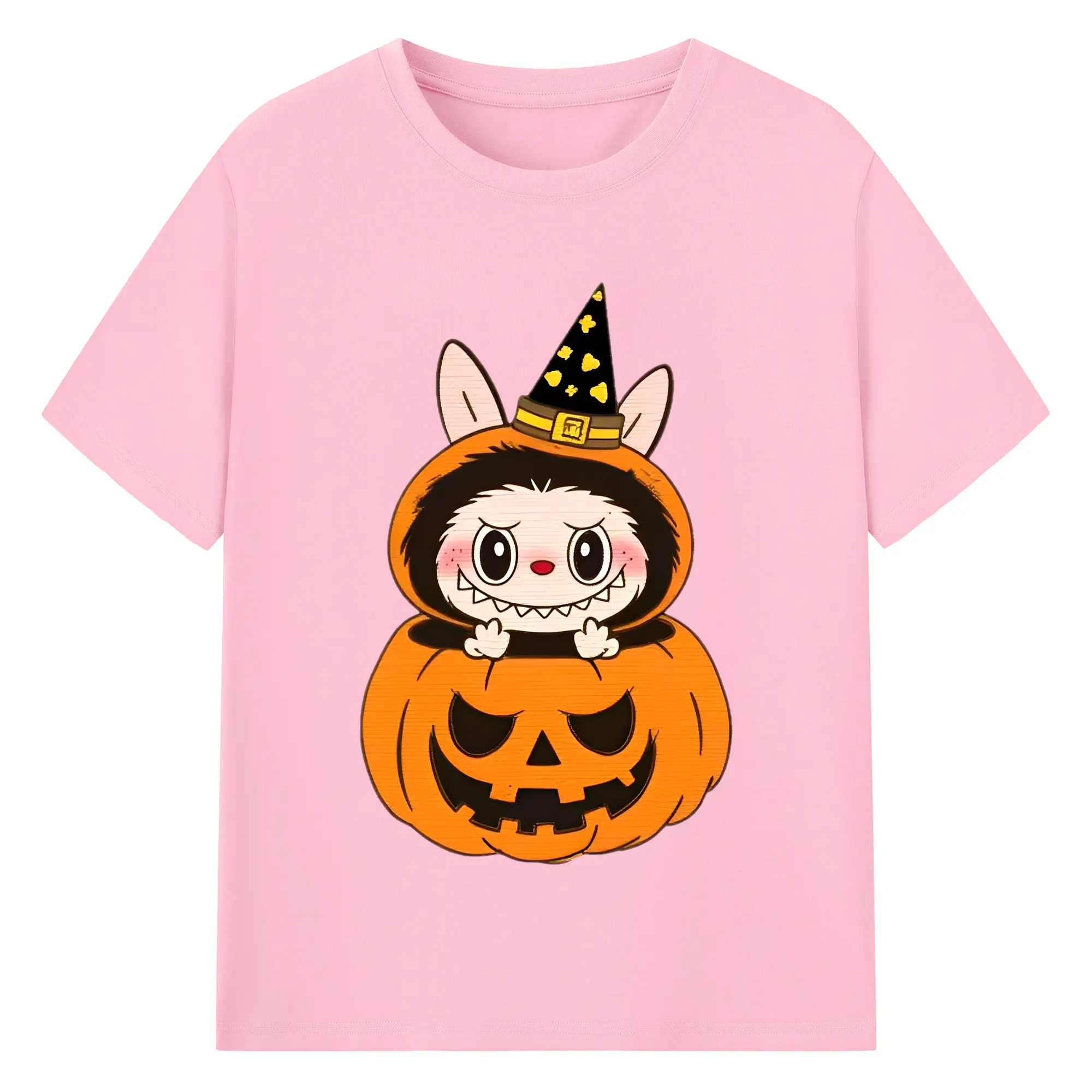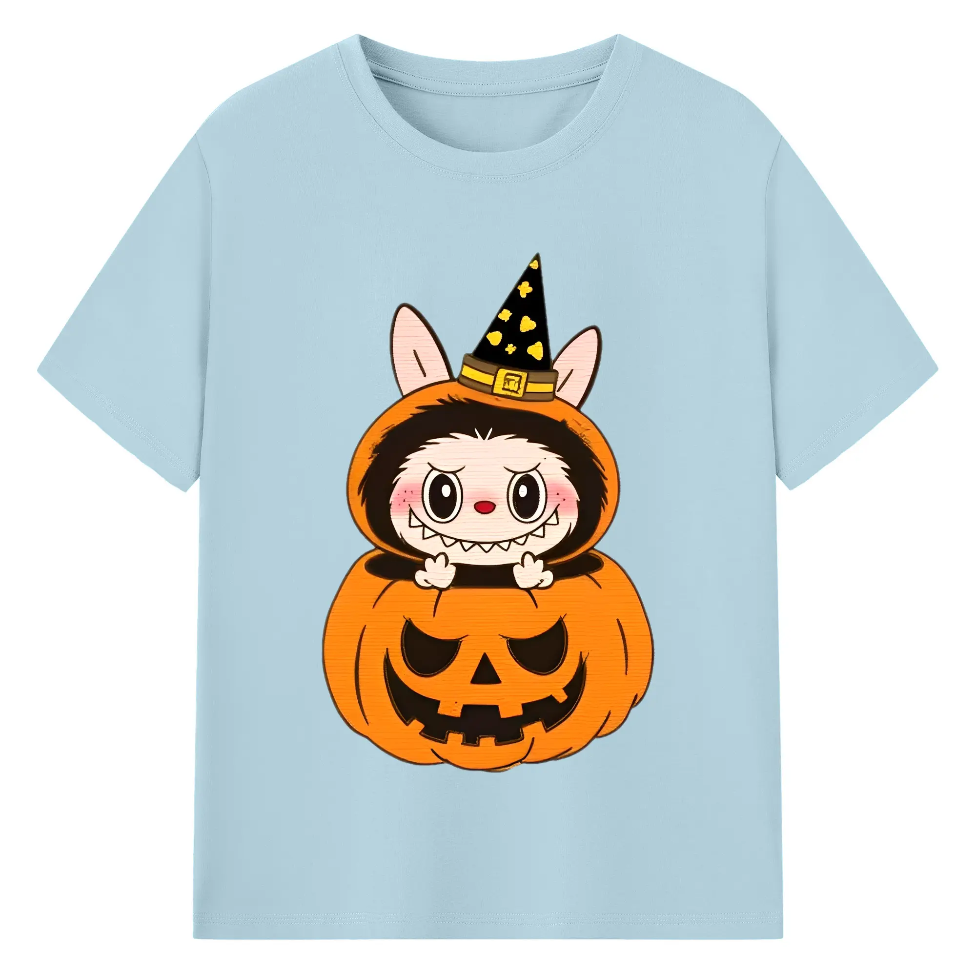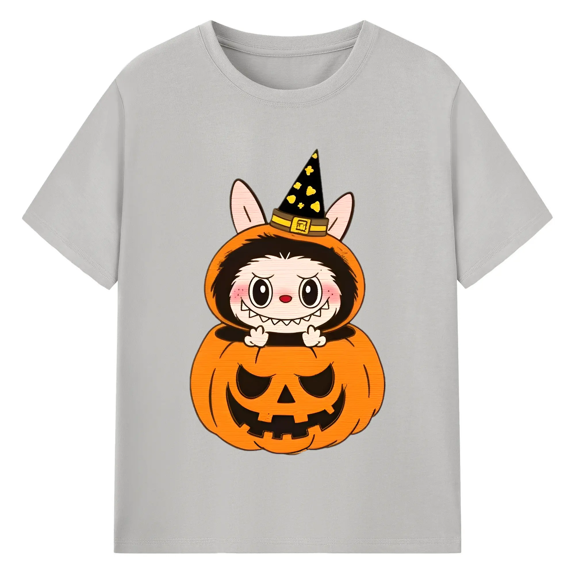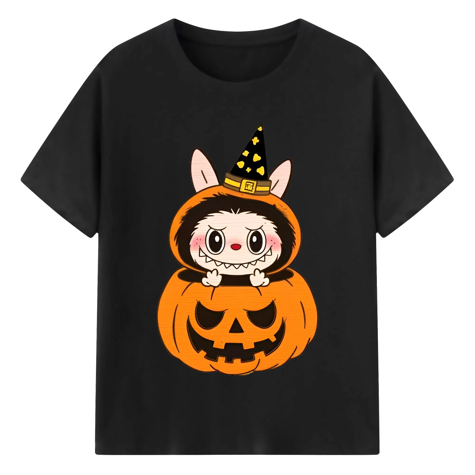 Labubu Halloween Cute Pumpkin Witch Cartoon DIY - 180g Cotton T-Shirt With Front Heat Transfer Print – Soft, Lightweight, Fitted Design – Comfortable Casual Wear For Sports & Everyday Use