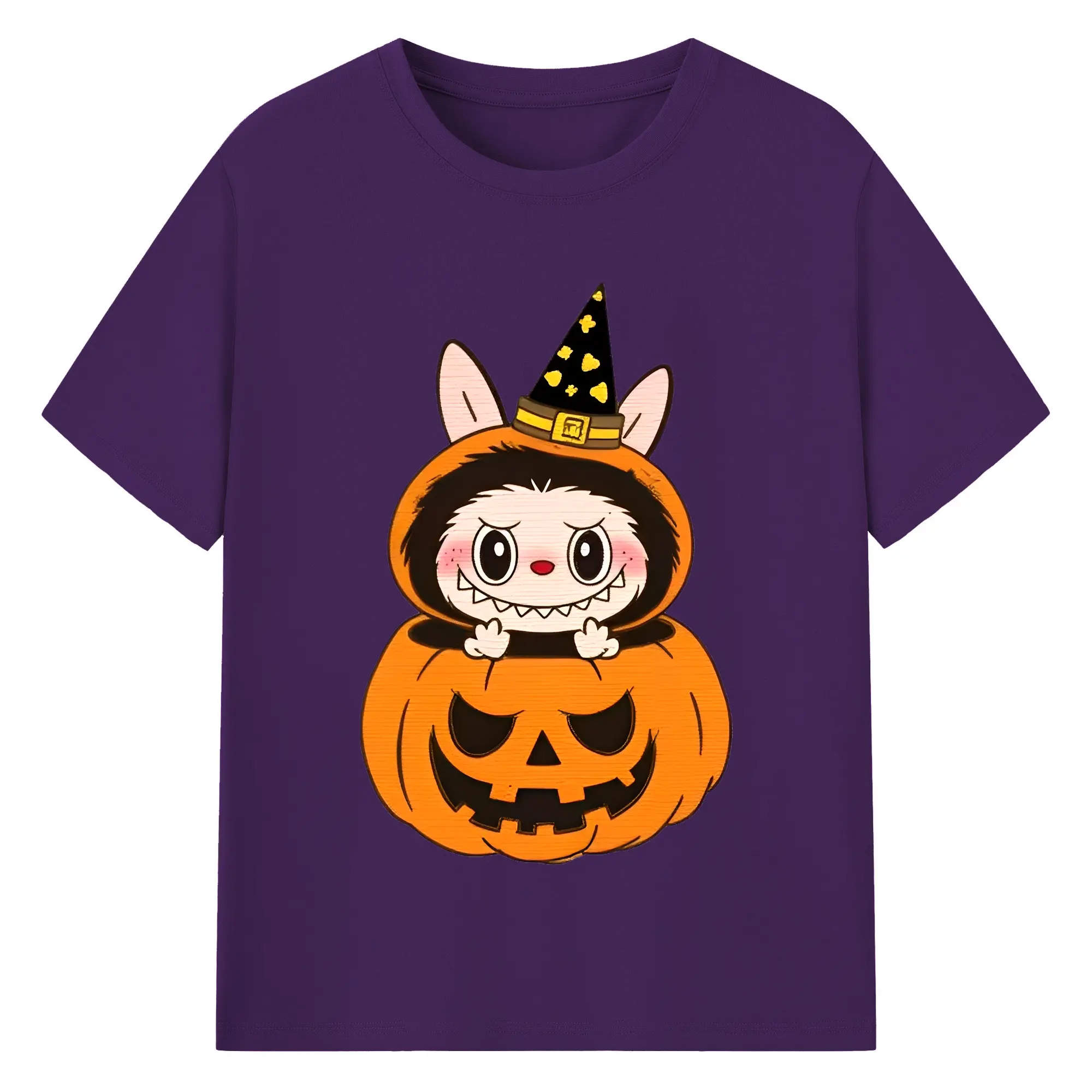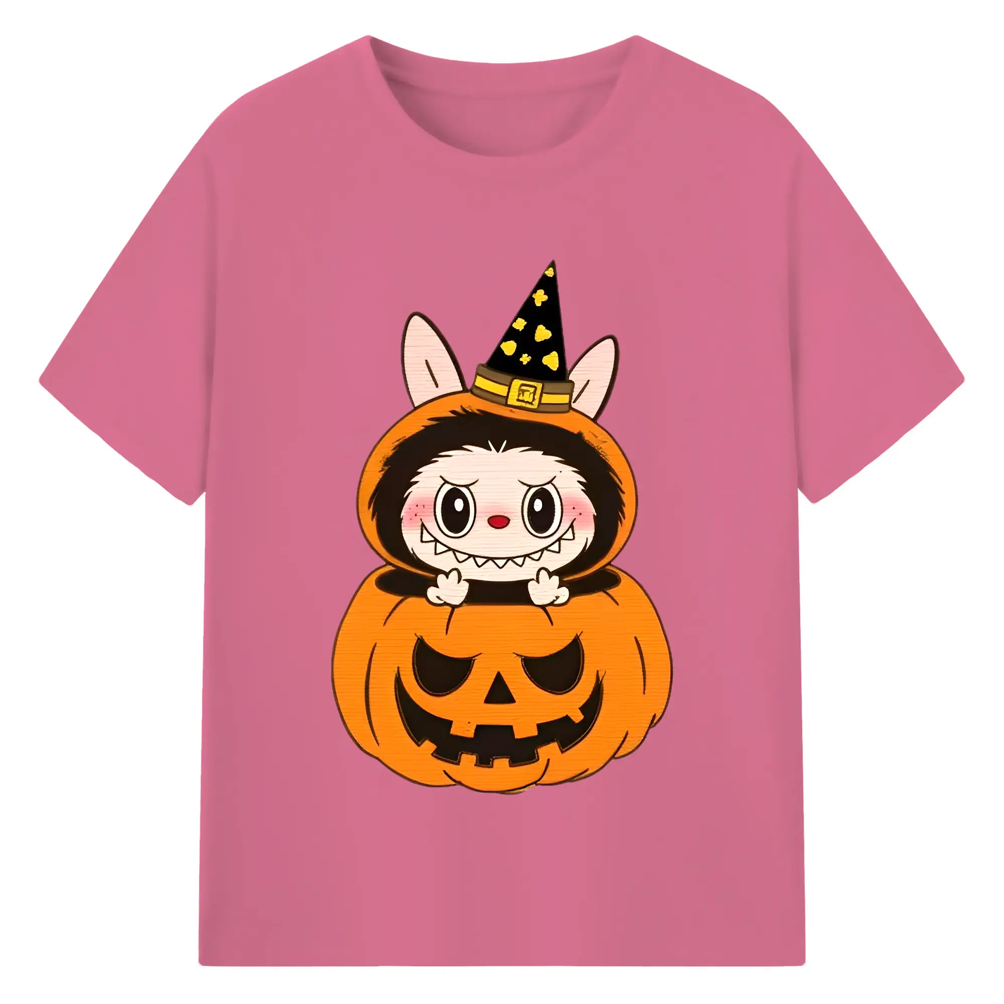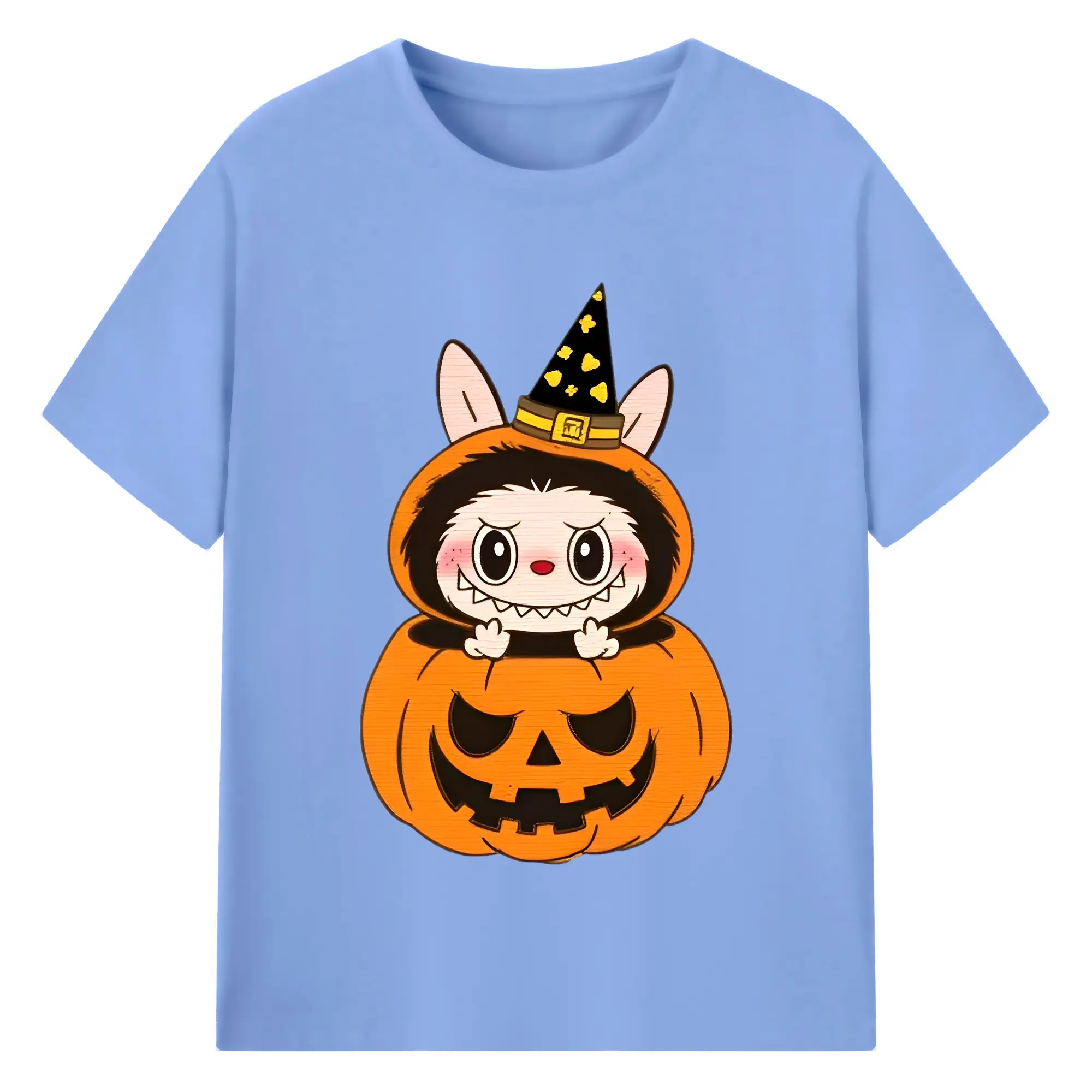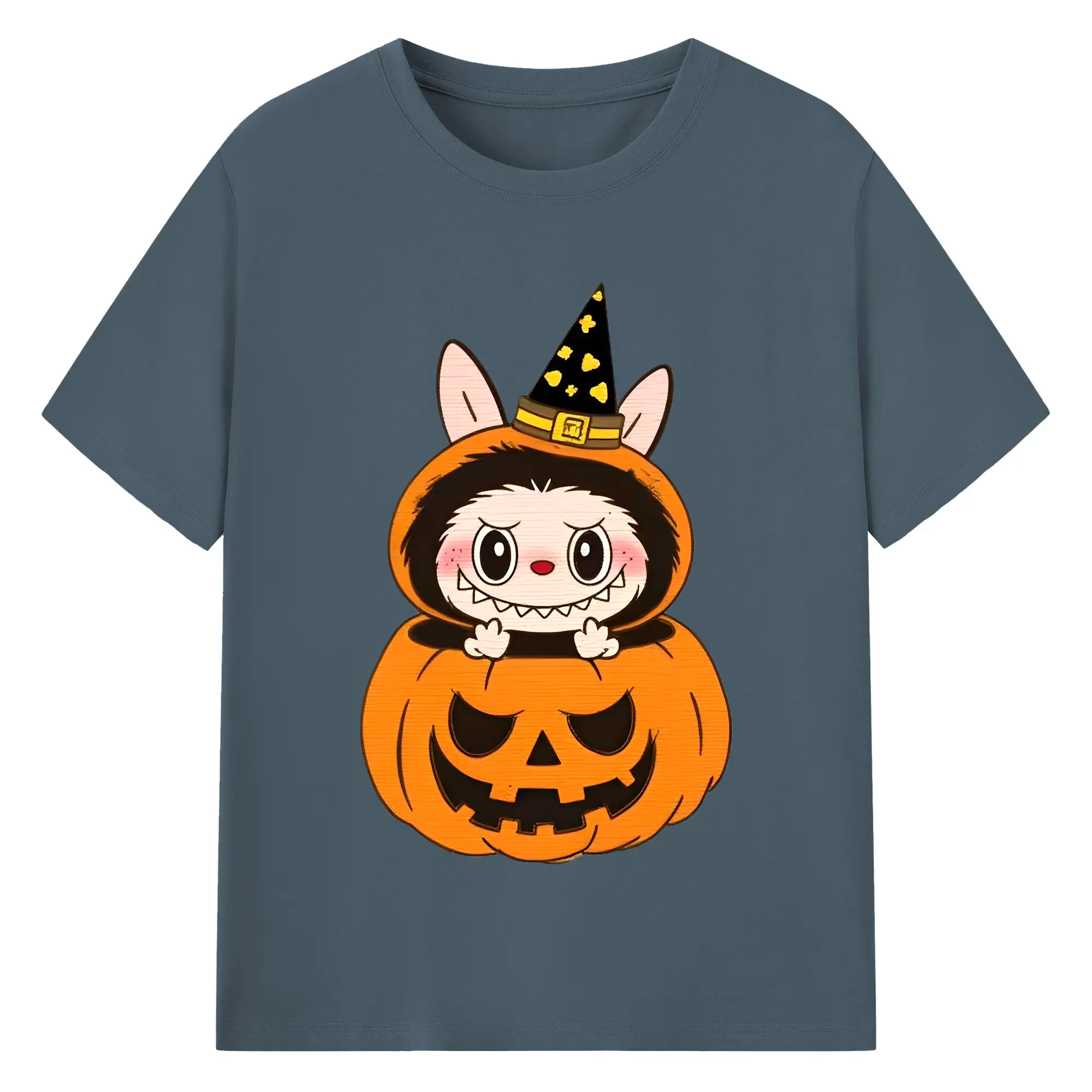 Labubu Halloween Cute Pumpkin Witch Cartoon DIY - 180g Cotton T-Shirt With Front Heat Transfer Print – Soft, Lightweight, Fitted Design – Comfortable Casual Wear For Sports & Everyday Use