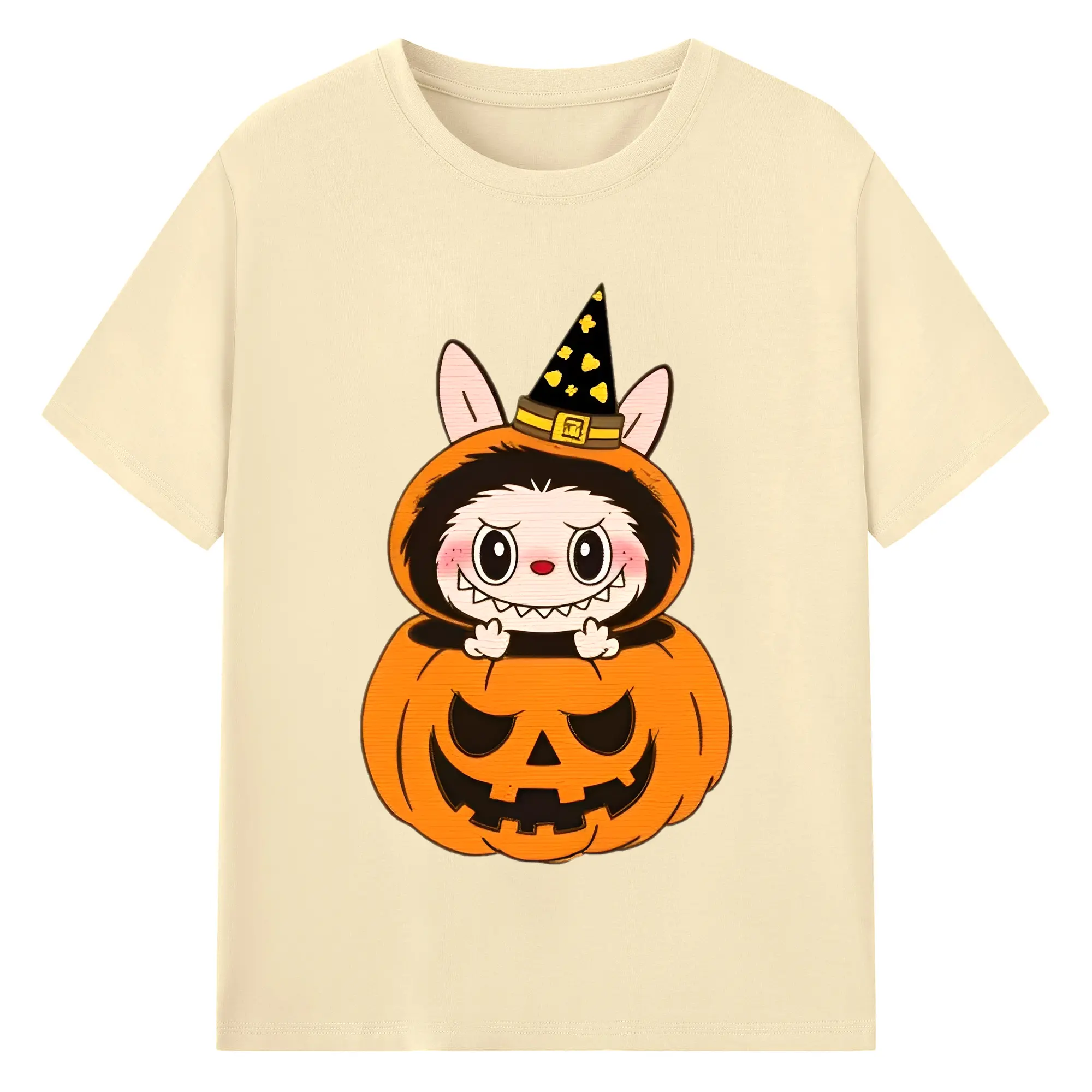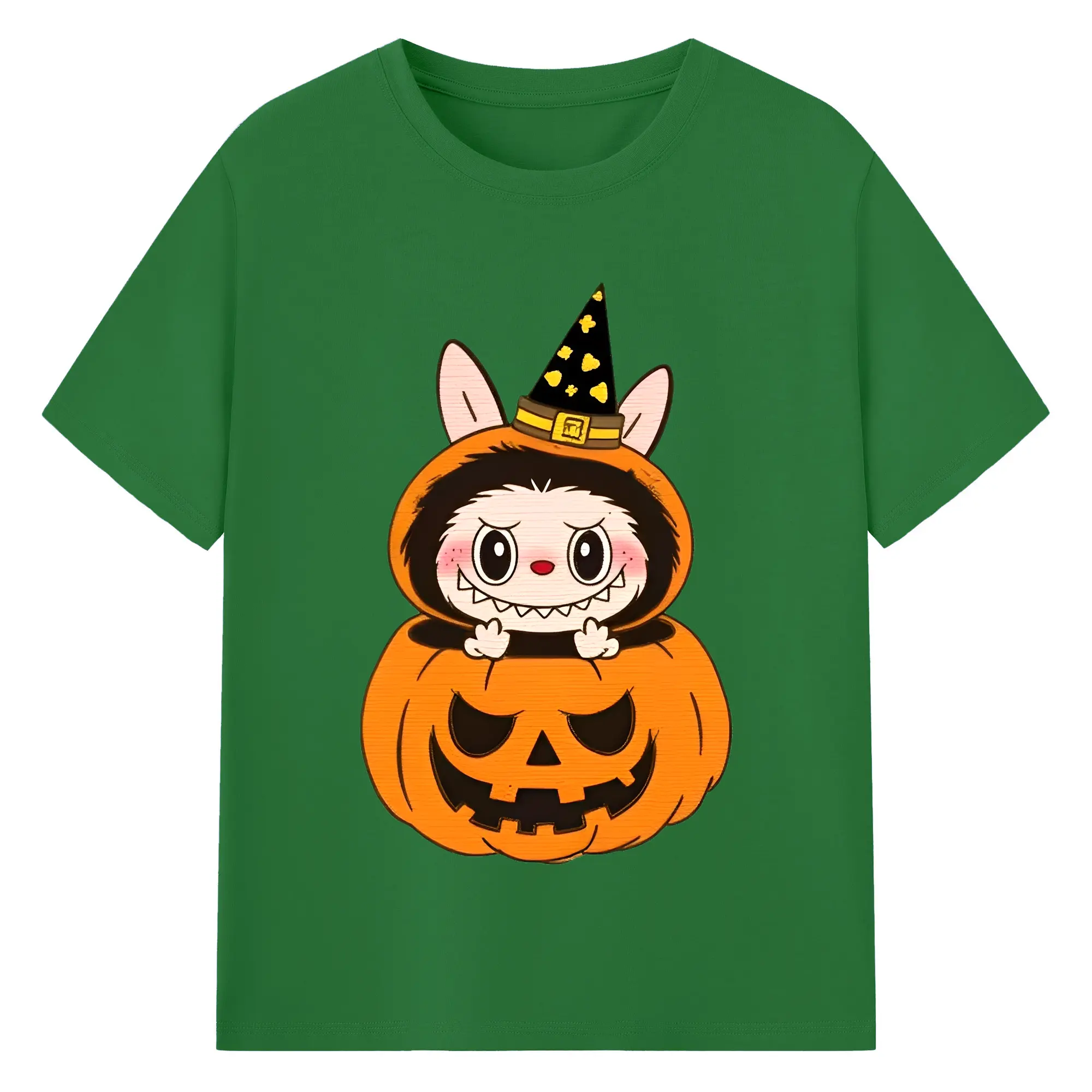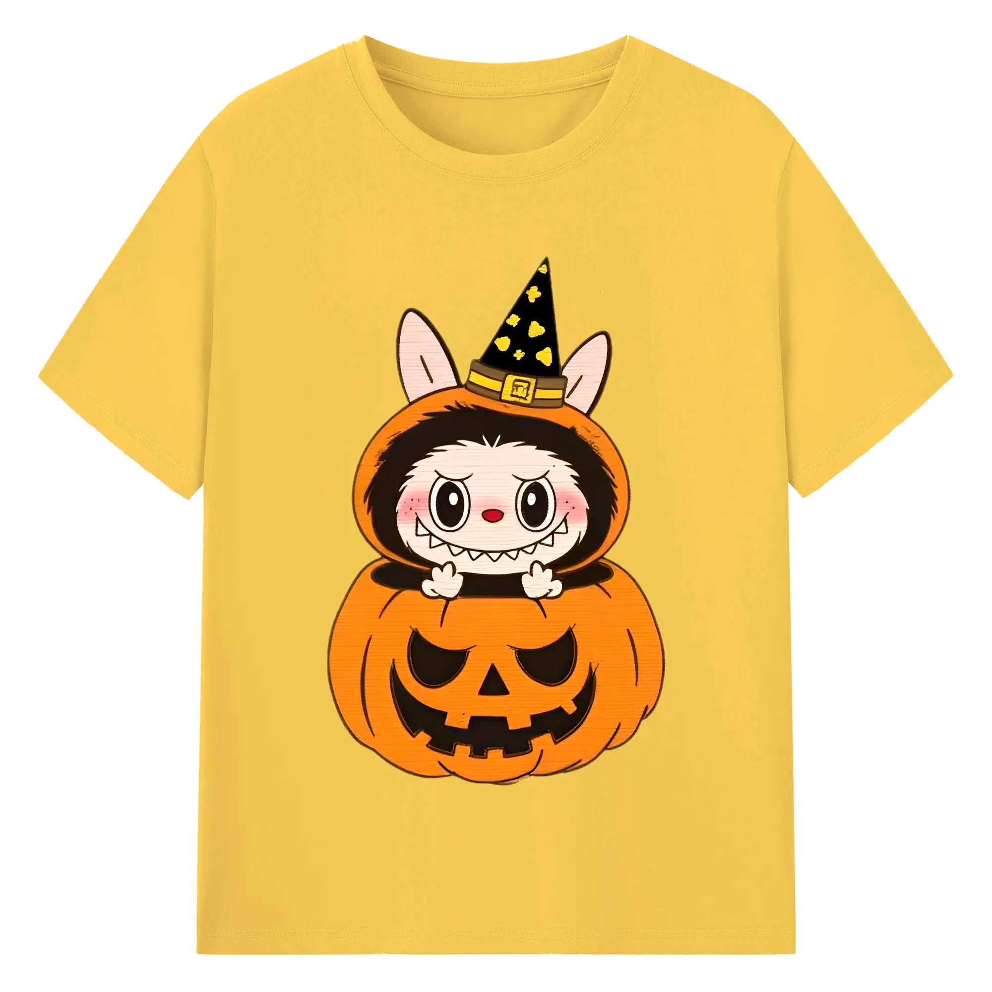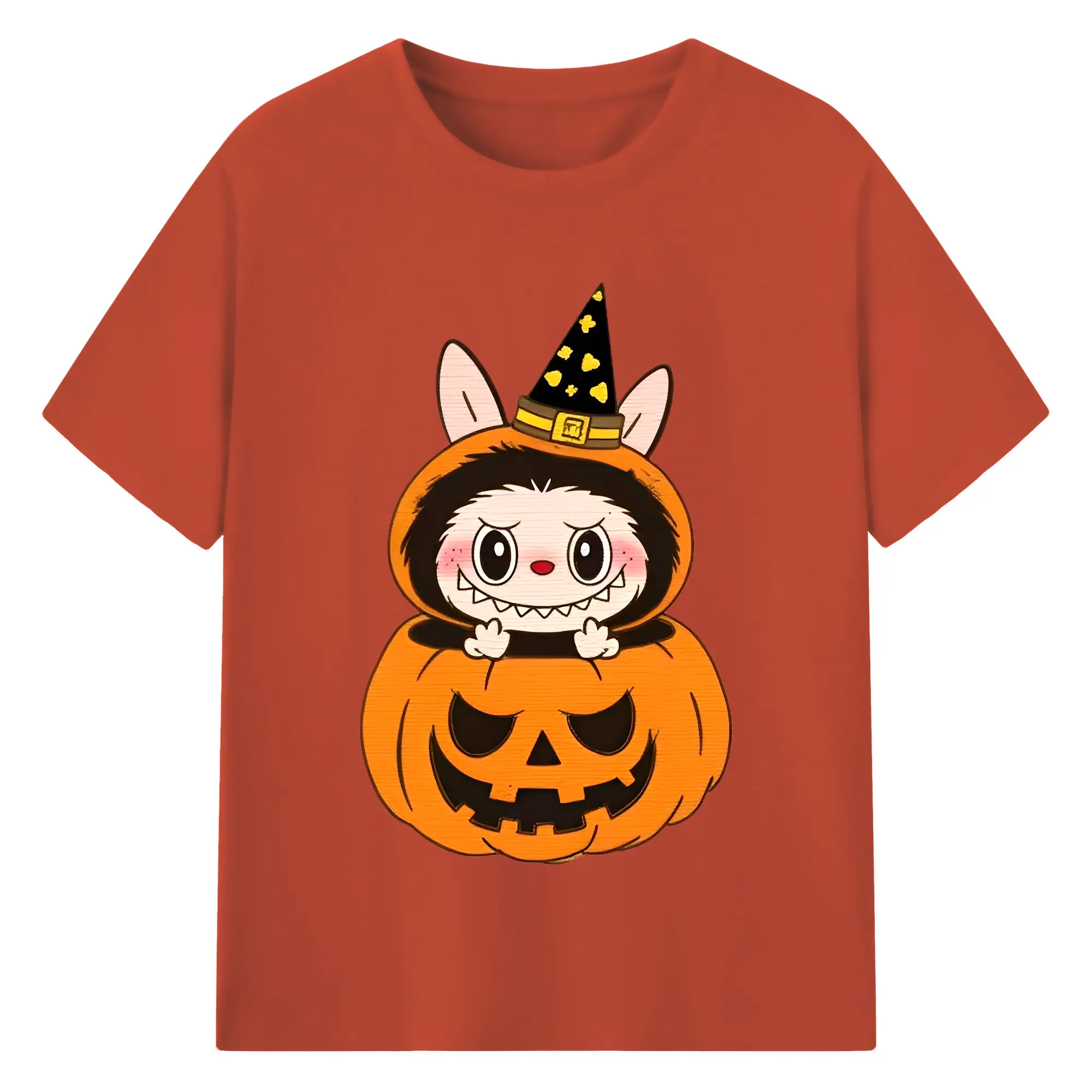 Labubu Halloween Cute Pumpkin Witch Cartoon DIY - 180g Cotton T-Shirt With Front Heat Transfer Print – Soft, Lightweight, Fitted Design – Comfortable Casual Wear For Sports & Everyday Use