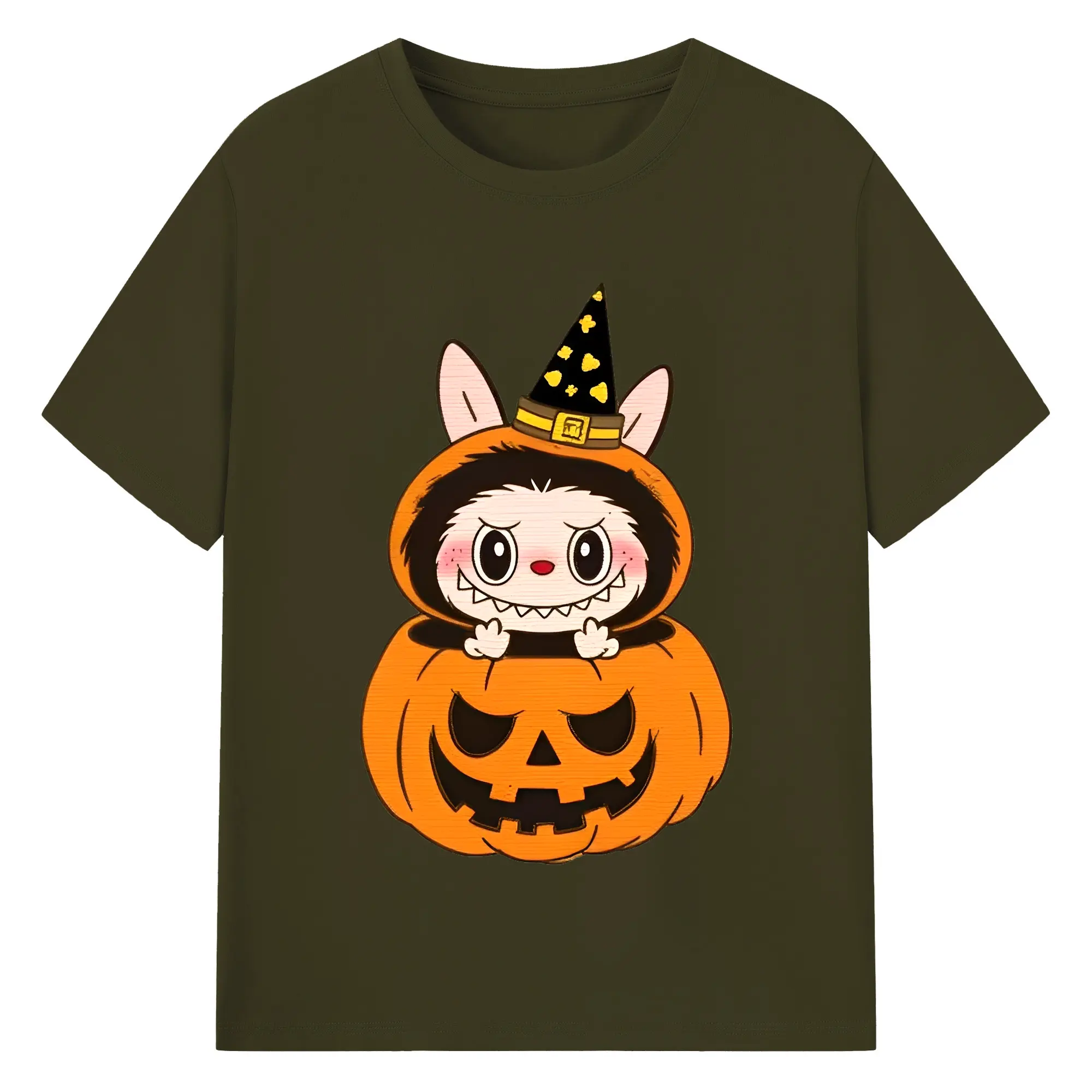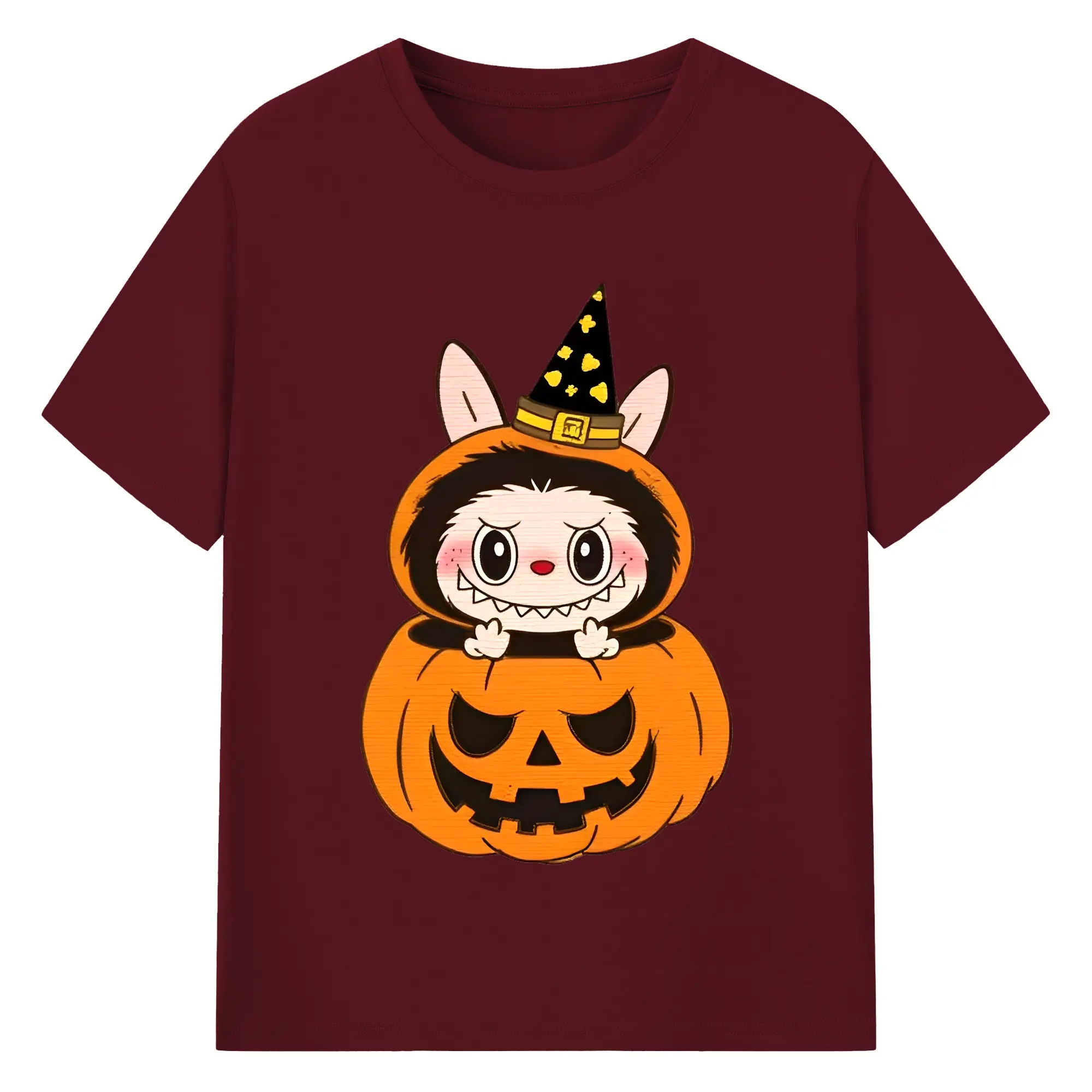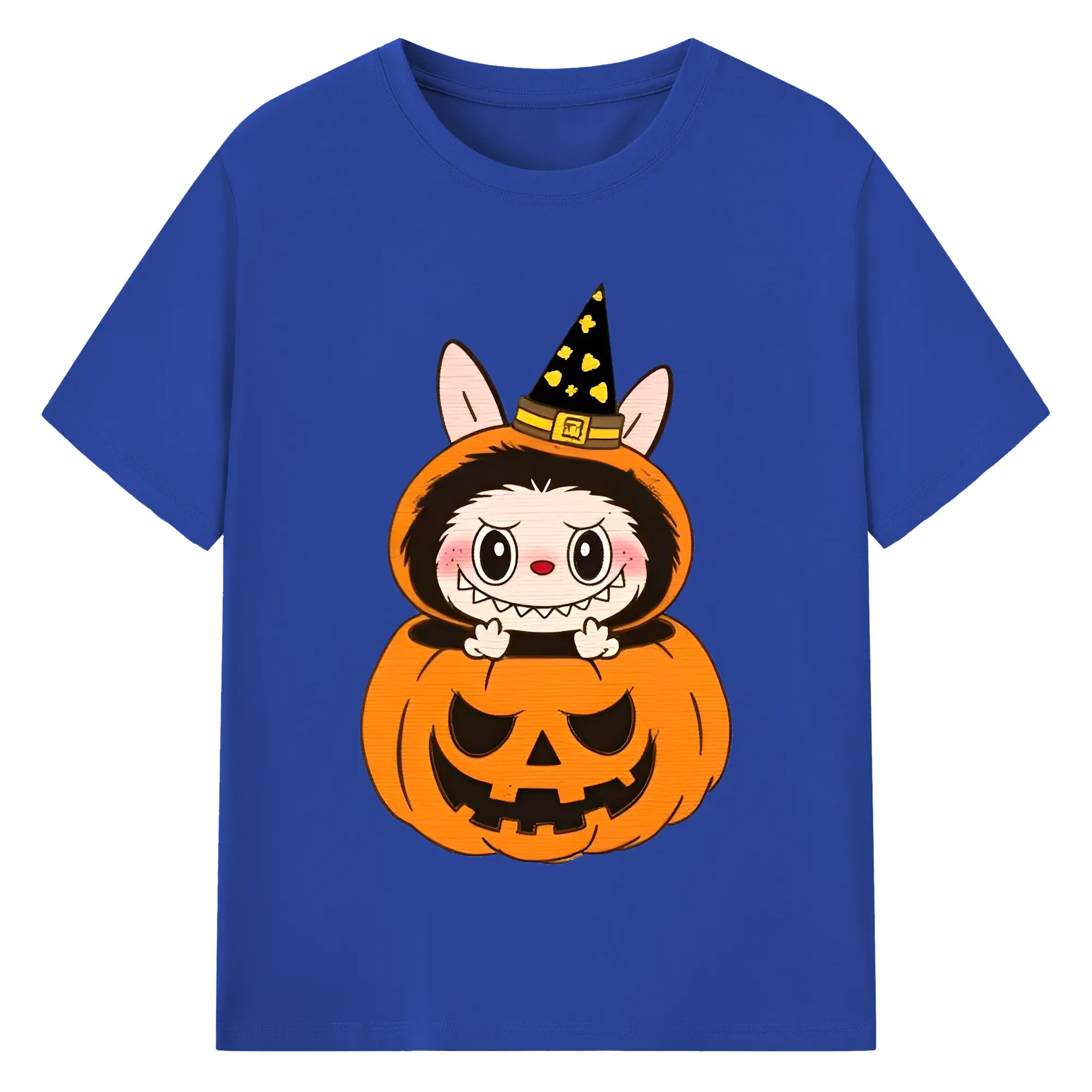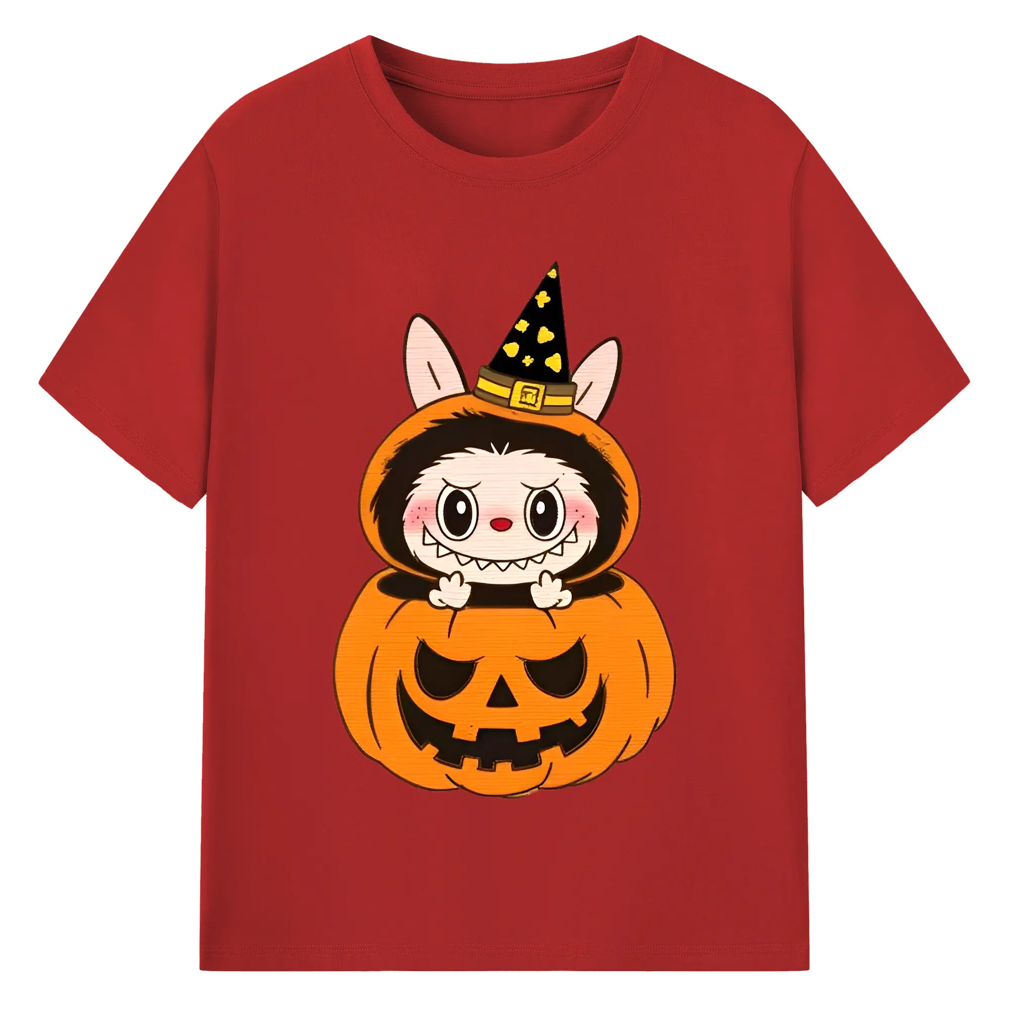 Labubu Halloween Cute Pumpkin Witch Cartoon DIY - 180g Cotton T-Shirt With Front Heat Transfer Print – Soft, Lightweight, Fitted Design – Comfortable Casual Wear For Sports & Everyday Use