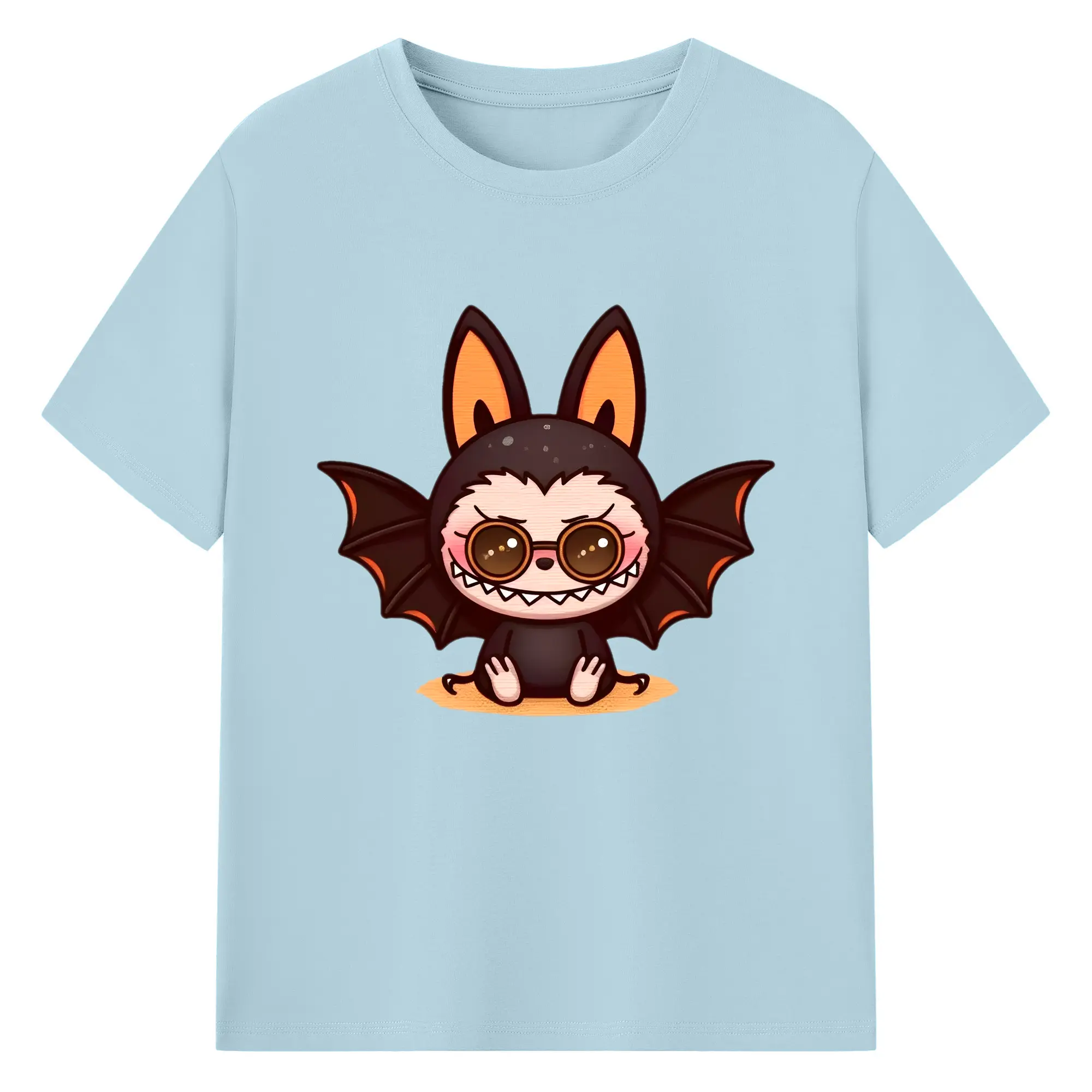 Labubu Kawaii Dark Bat Cartoon Trendy DIY - 180g Cotton T-Shirt With Front Heat Transfer Print – Soft, Lightweight, Fitted Design – Comfortable Casual Wear For Sports & Everyday Use