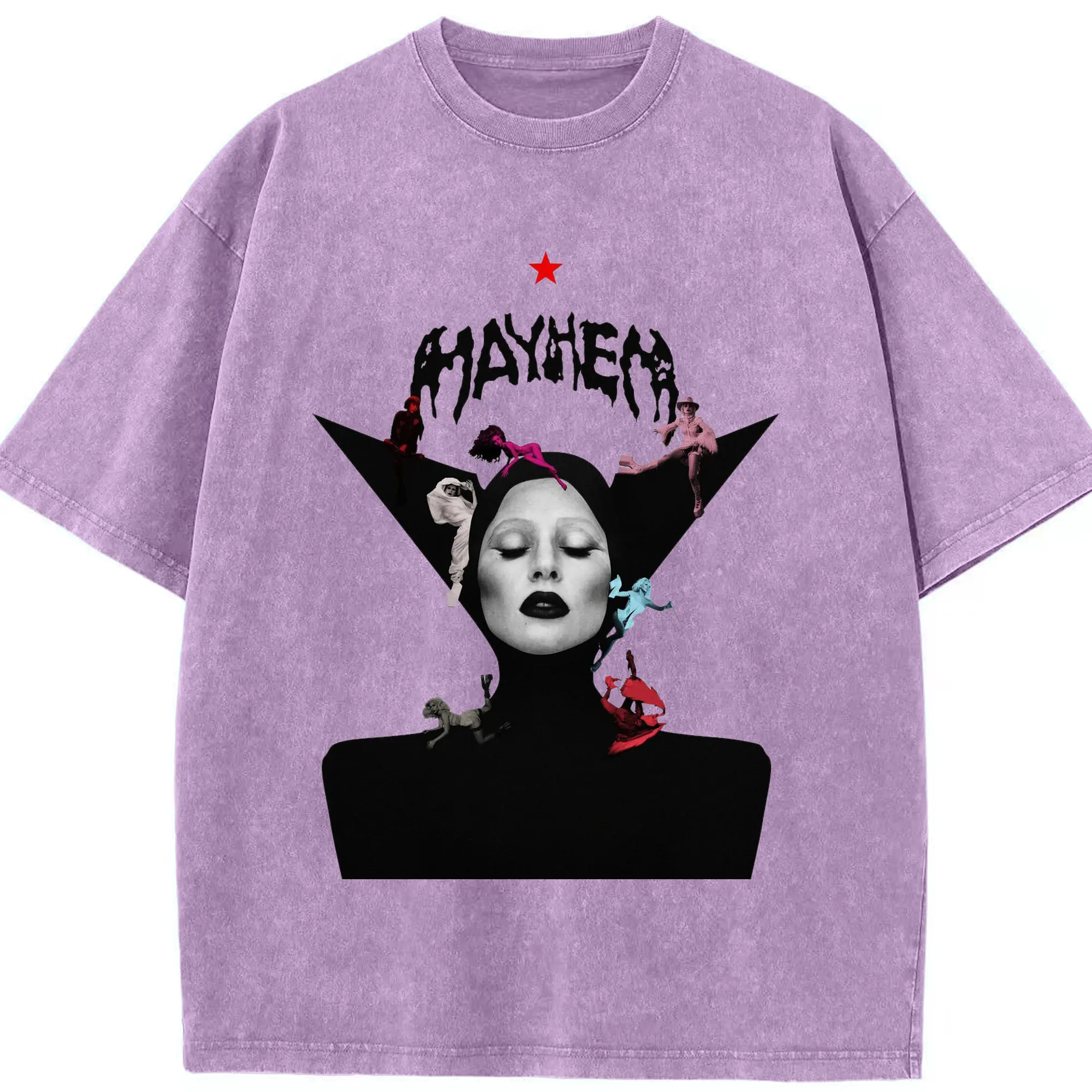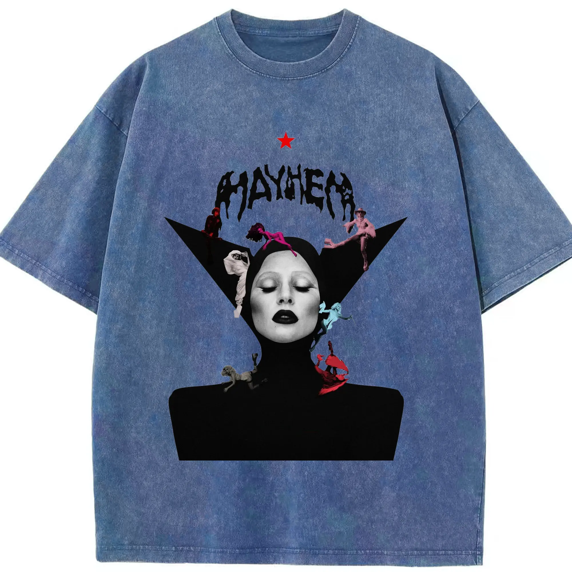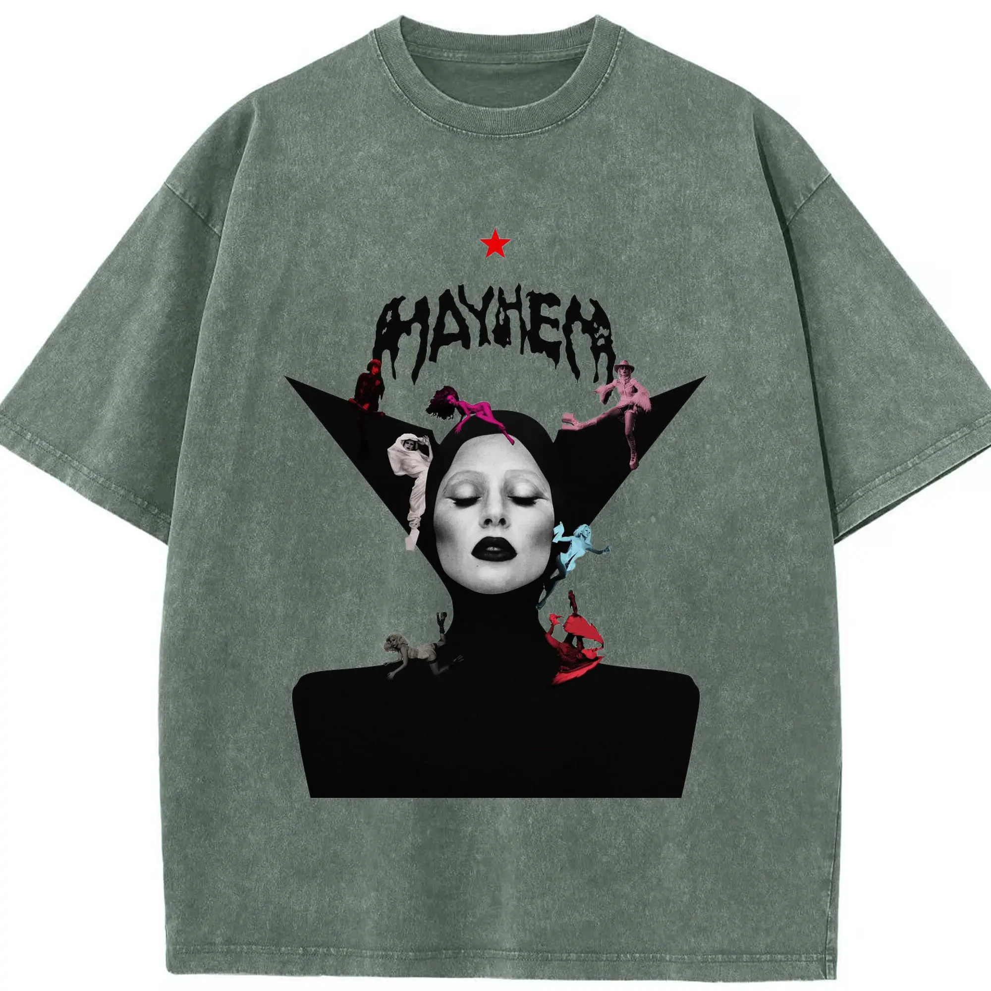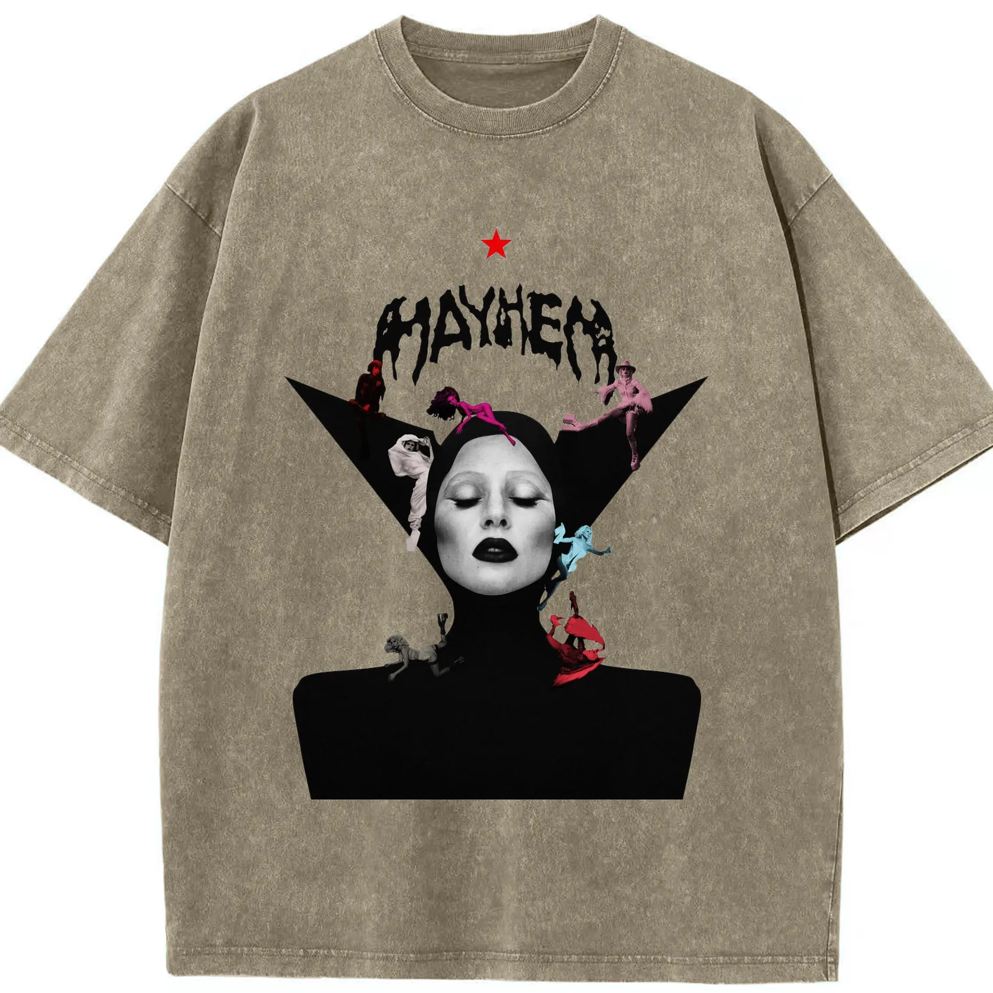 Lady Gaga “MAYHEM” Avant-Garde Collage DIY - Washed Vintage Look 230g Cotton Oversized T-Shirt With Front Heat Transfer Print – Soft, Lightweight, Stylish Fit – Comfortable Casual Wear For Sports & Everyday Use