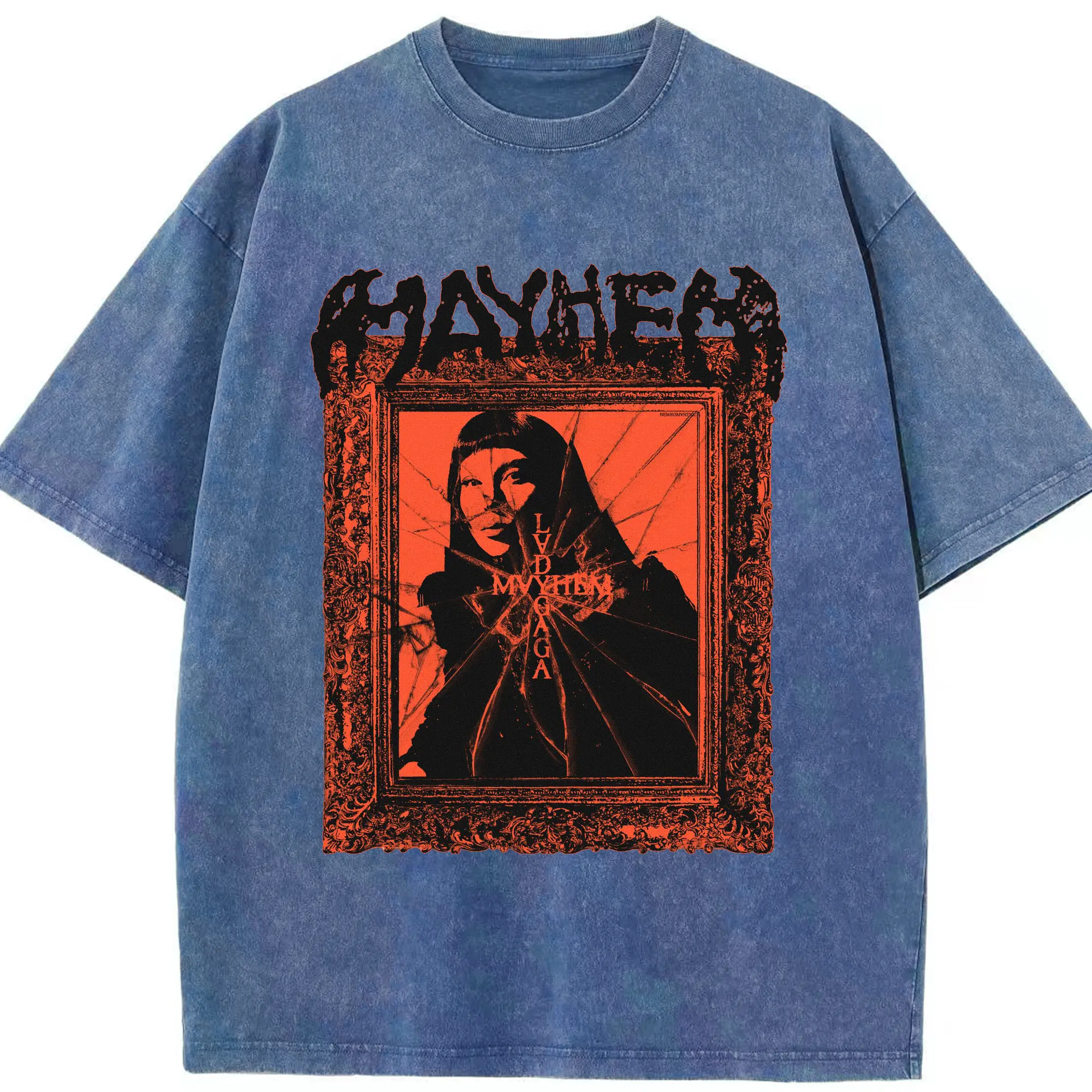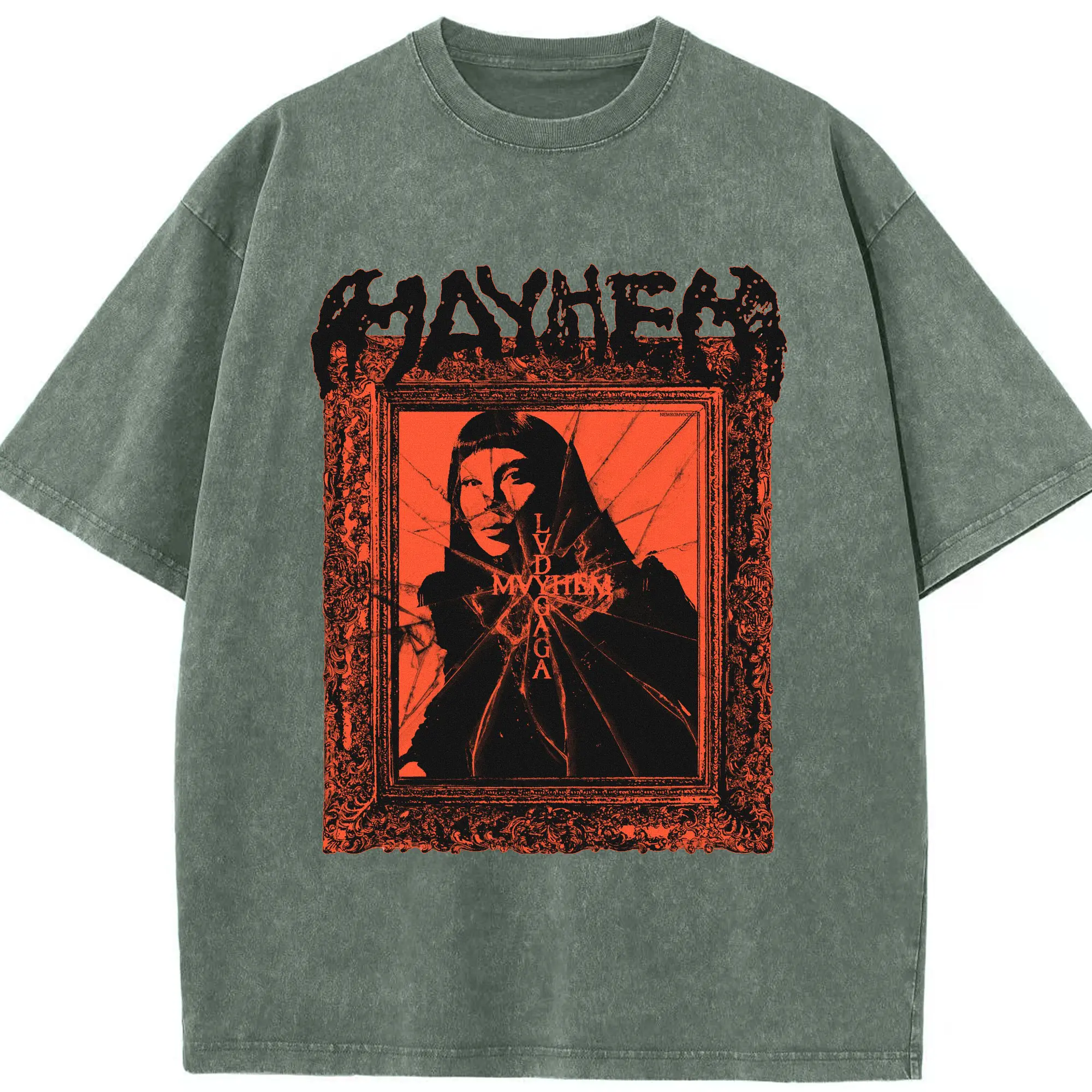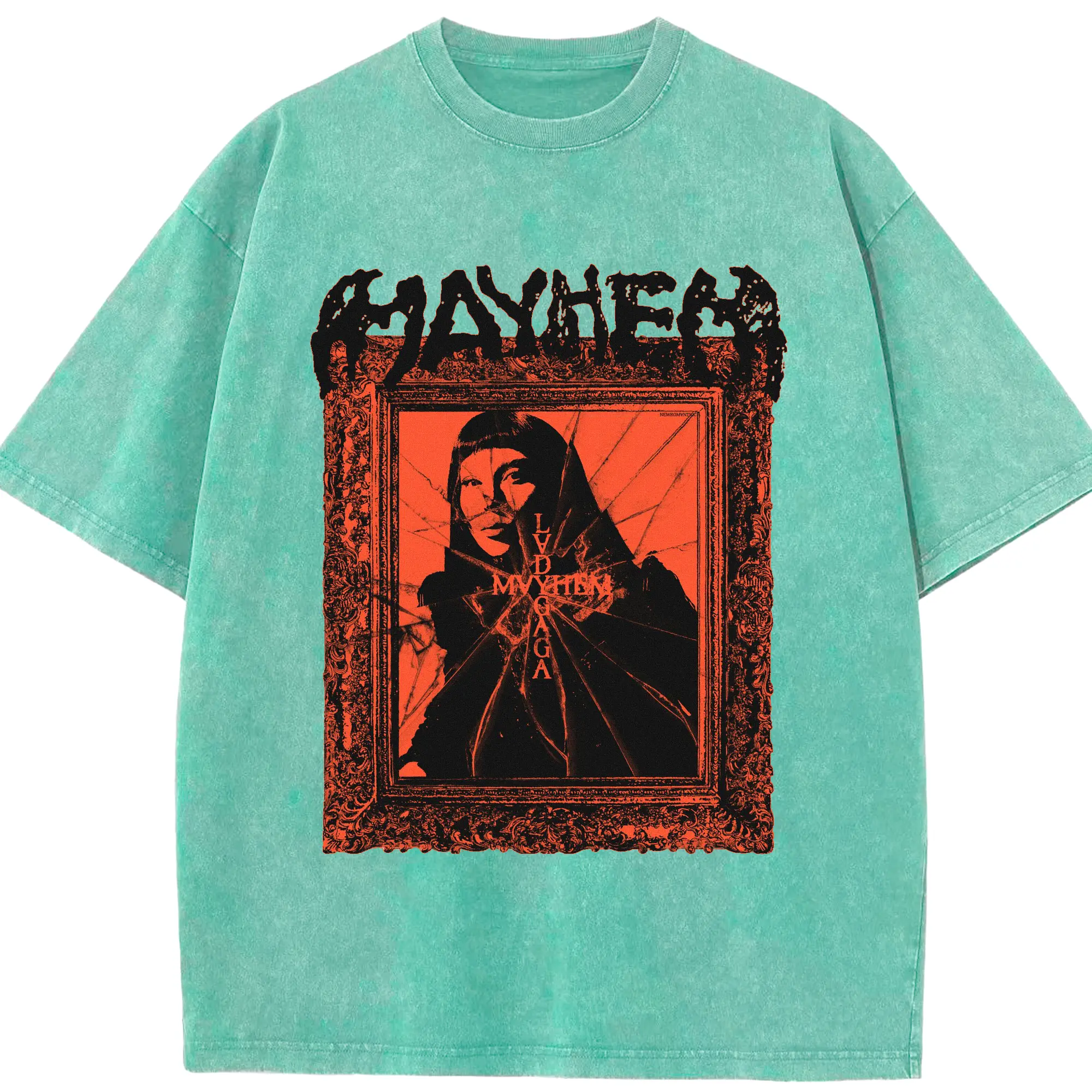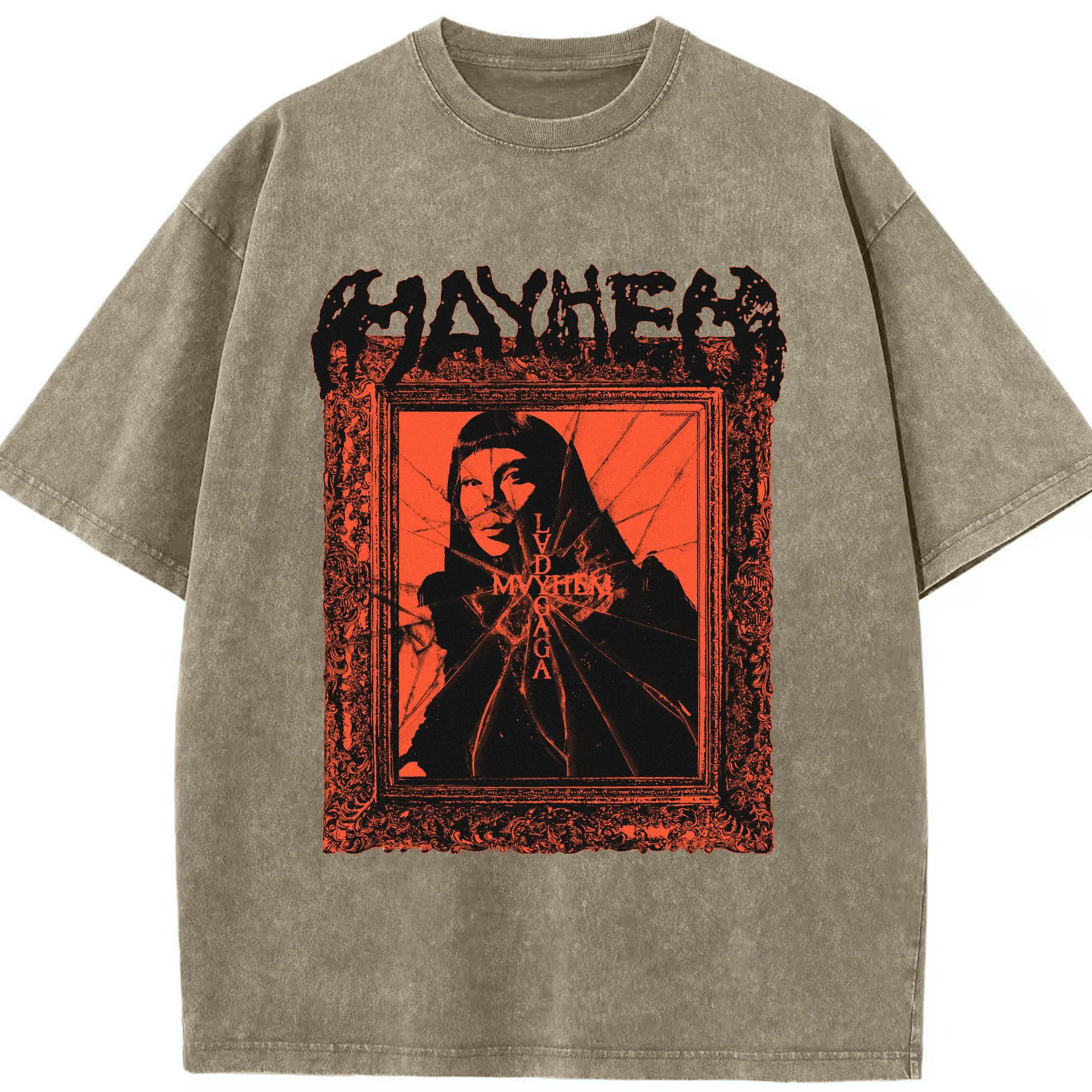 Lady Gaga Mayhem Retro Art Broken Frame DIY - Washed Vintage Look 230g Cotton Oversized T-Shirt With Front Heat Transfer Print – Soft, Lightweight, Stylish Fit – Comfortable Casual Wear For Sports & Everyday Use