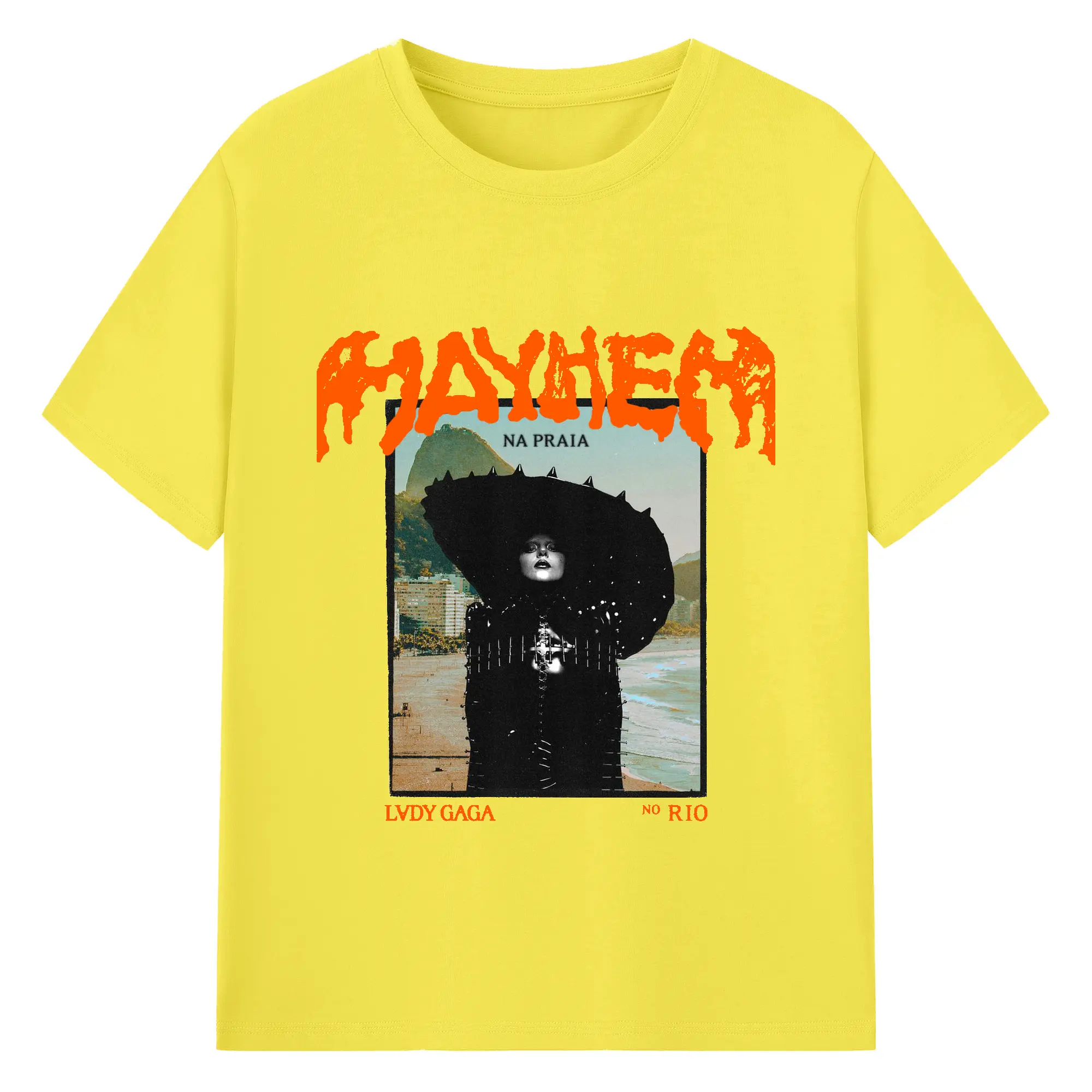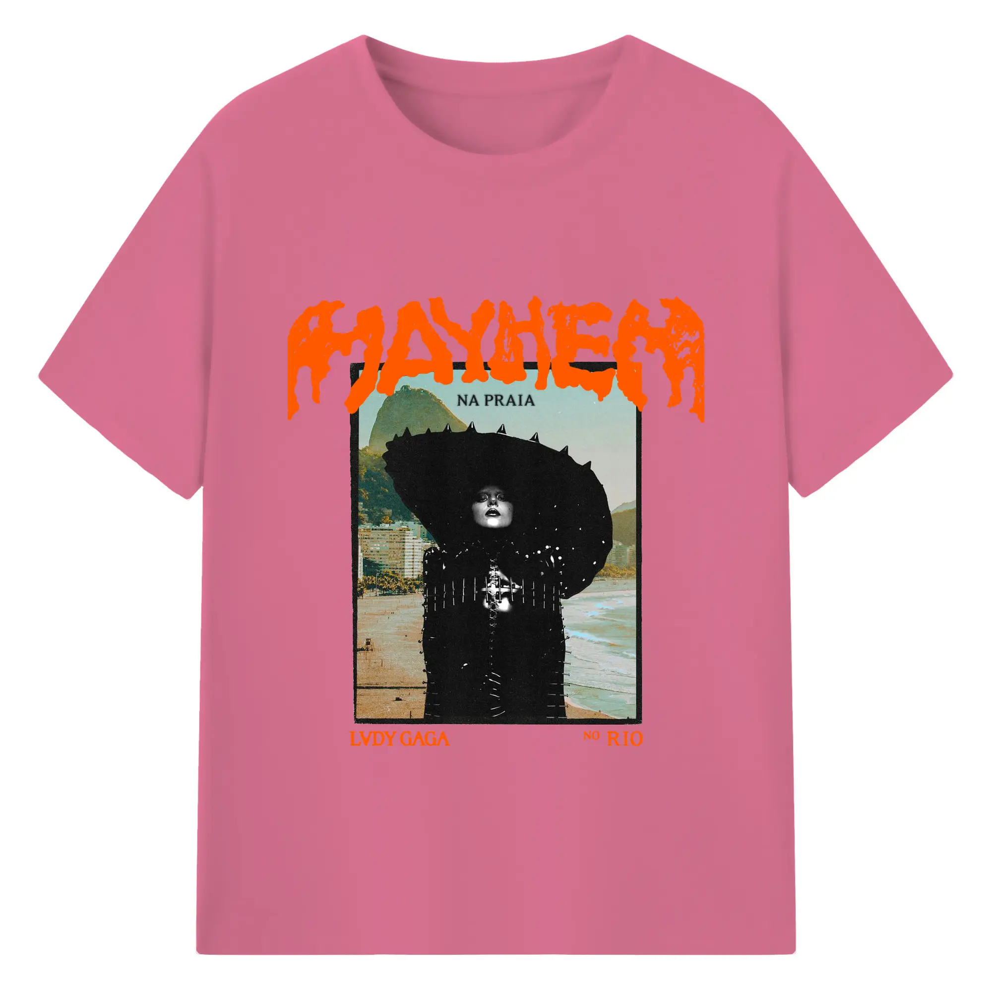 Lady Gaga “MAYHEM” Rio Beach DIY - 180g Cotton T-Shirt With Front Heat Transfer Print – Soft, Lightweight, Fitted Design – Comfortable Casual Wear For Sports & Everyday Use