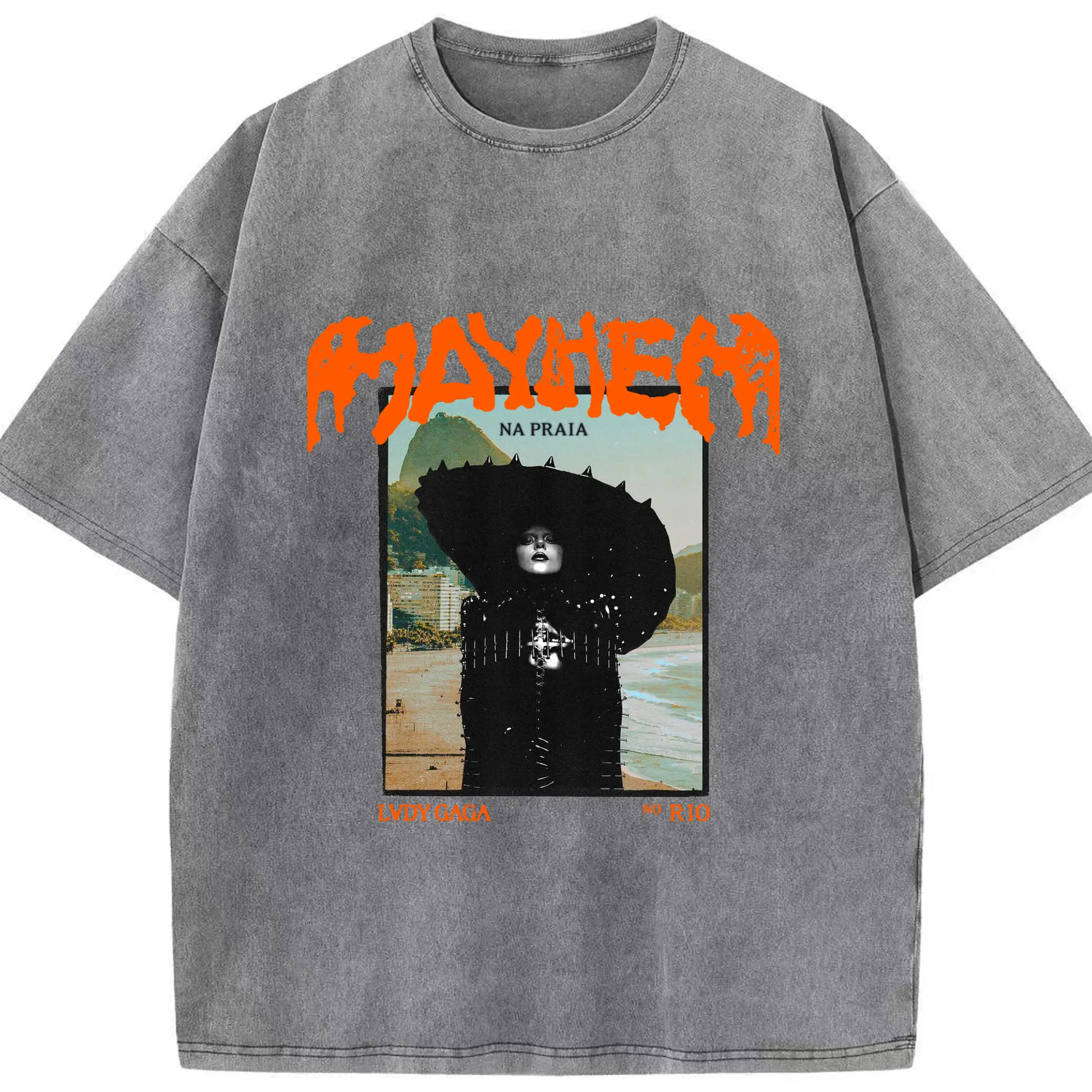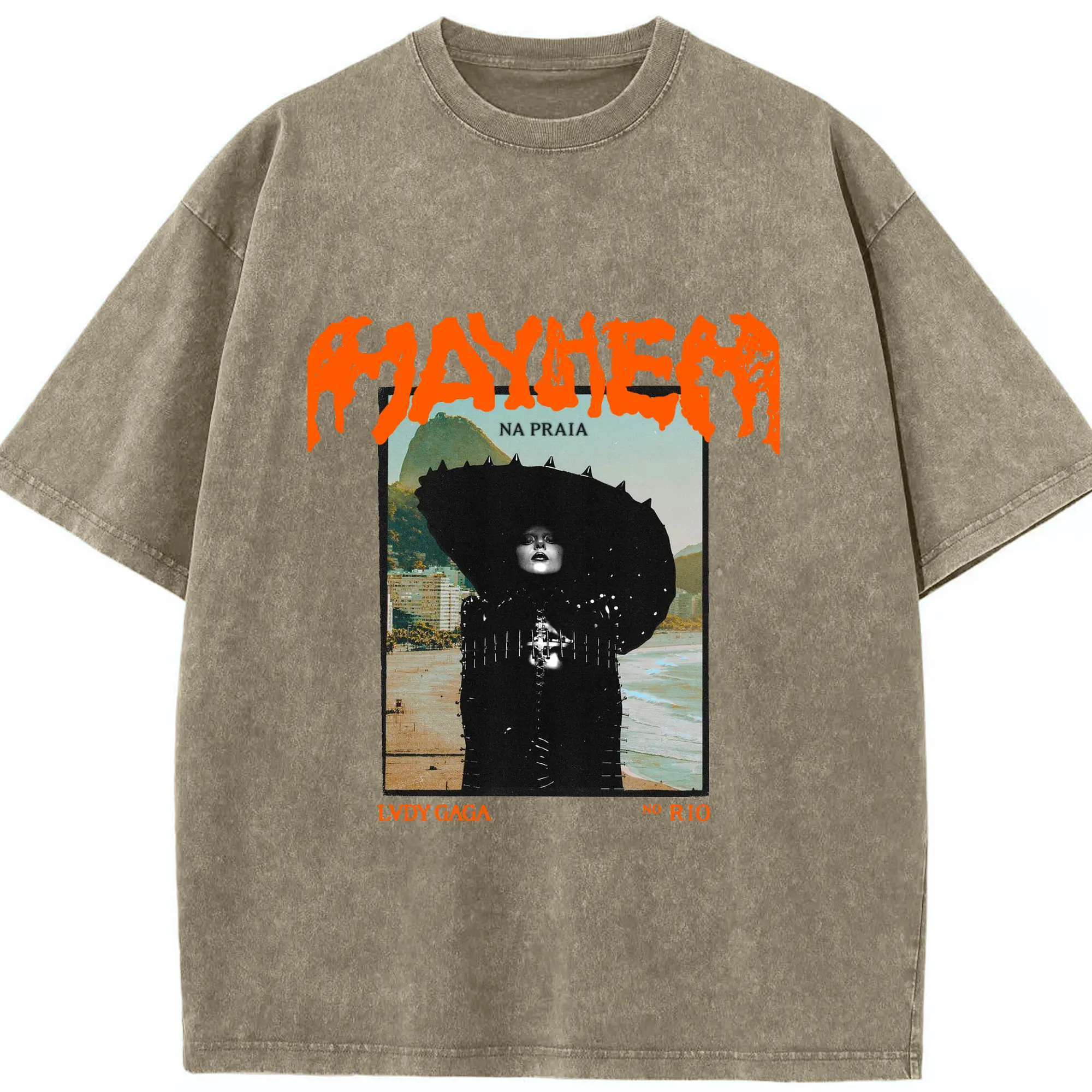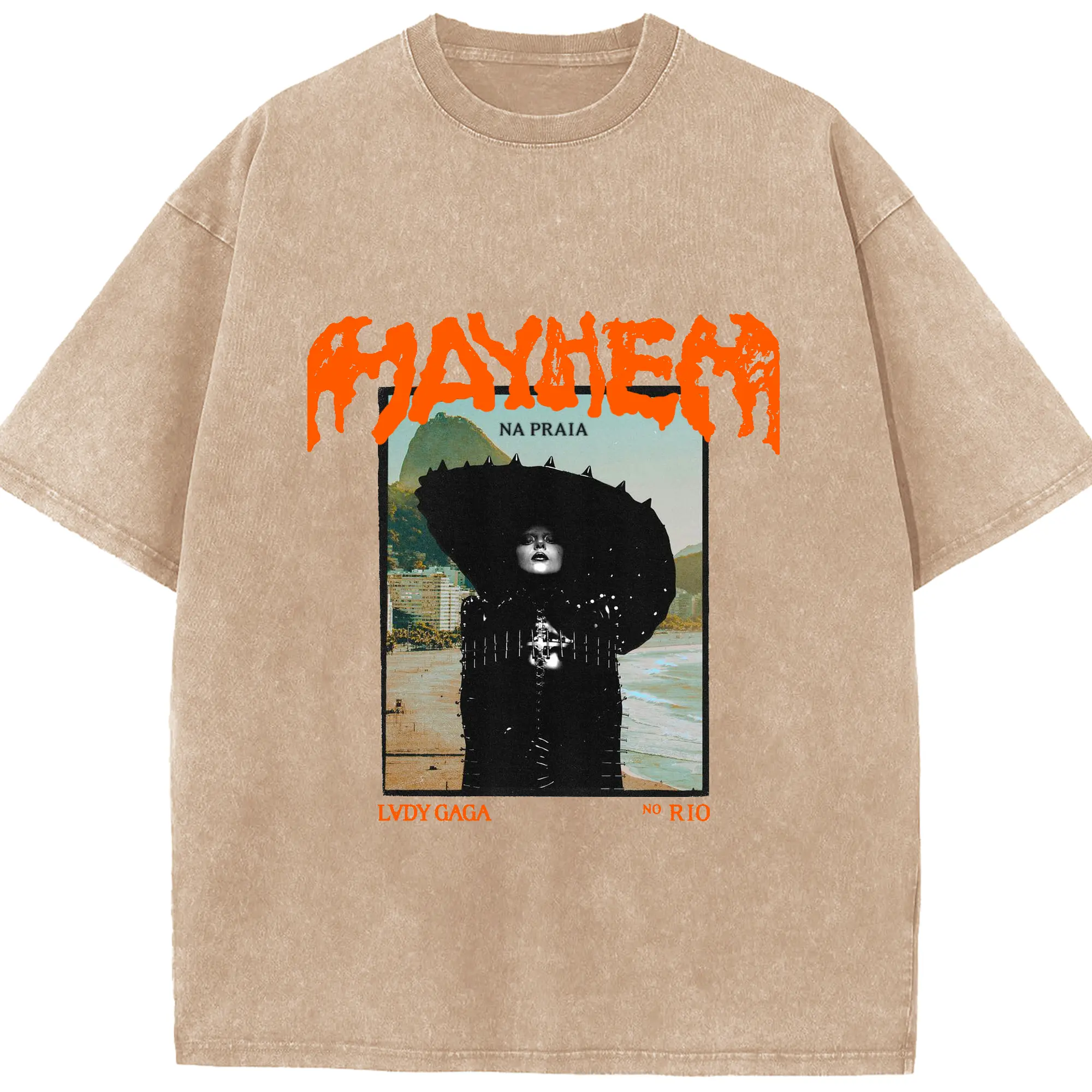 Lady Gaga “MAYHEM” Rio Beach DIY - Washed Vintage Look 230g Cotton Oversized T-Shirt With Front Heat Transfer Print – Soft, Lightweight, Stylish Fit – Comfortable Casual Wear For Sports & Everyday Use