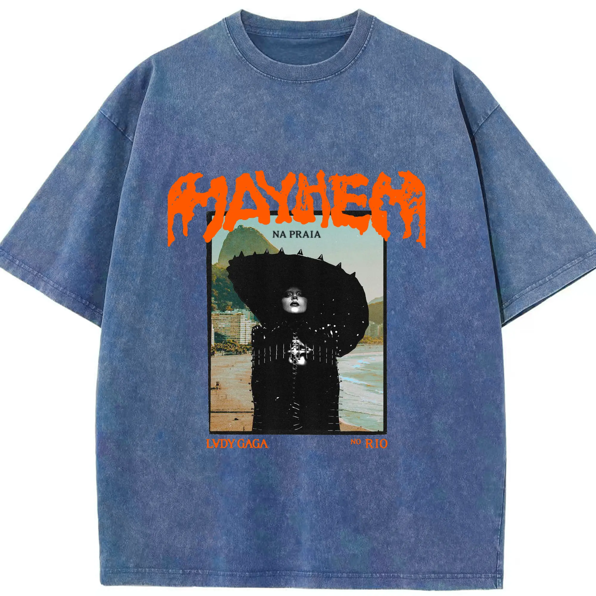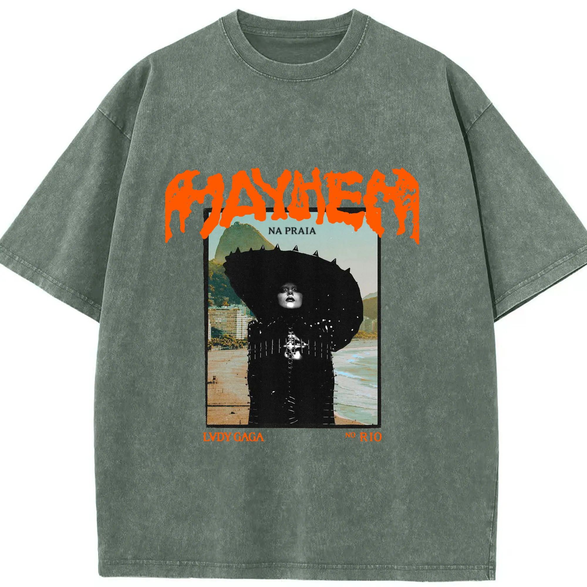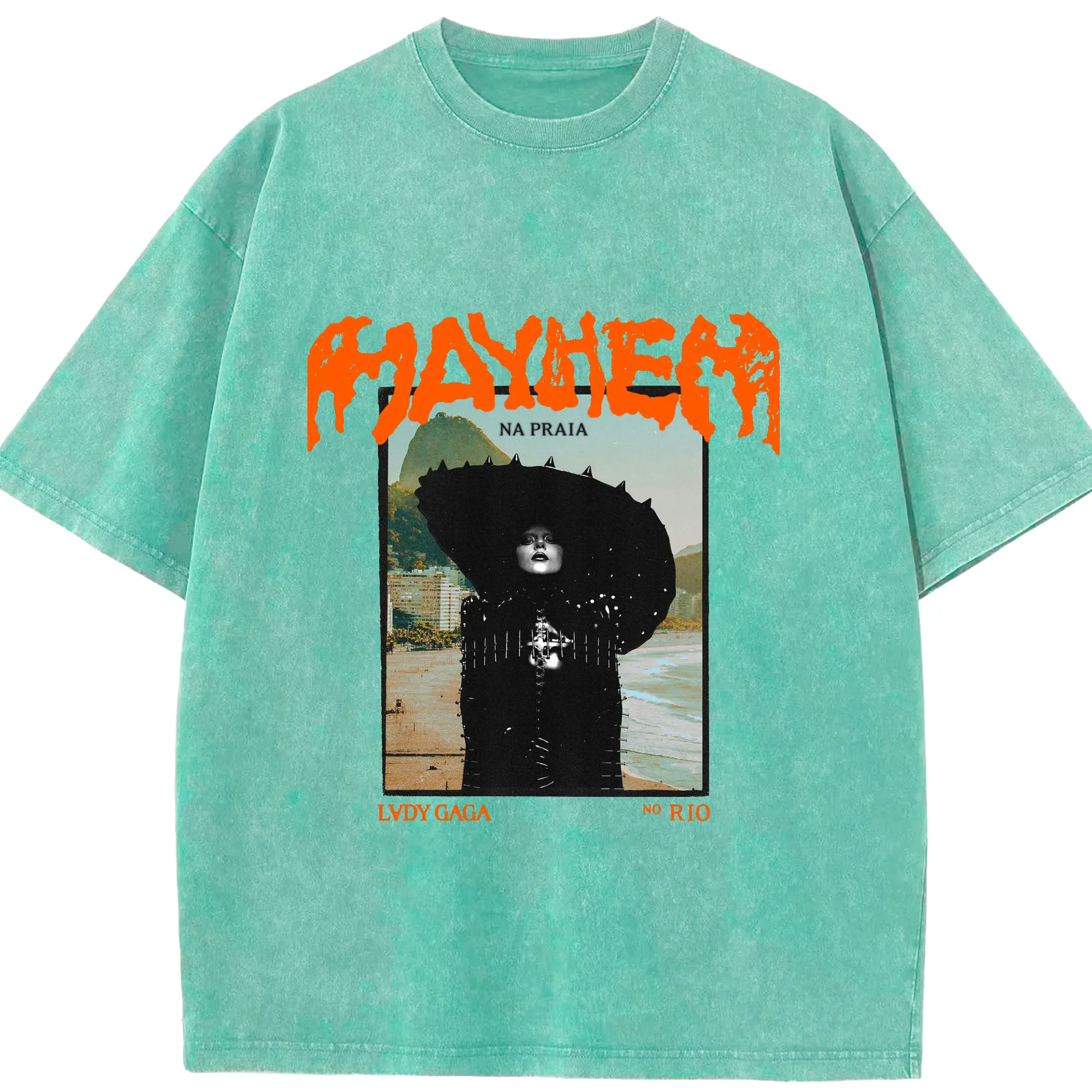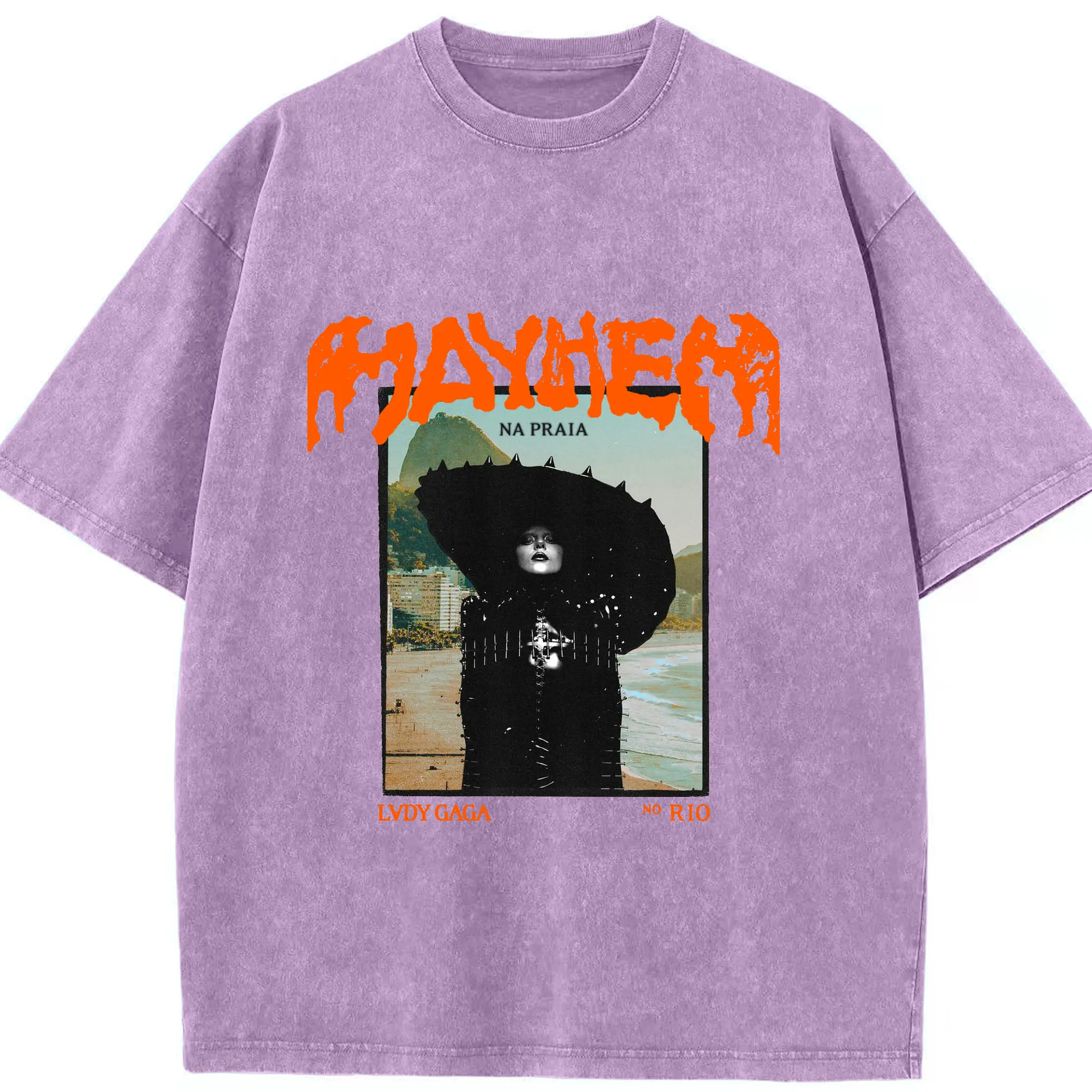Lady Gaga “MAYHEM” Rio Beach DIY - Washed Vintage Look 230g Cotton Oversized T-Shirt With Front Heat Transfer Print – Soft, Lightweight, Stylish Fit – Comfortable Casual Wear For Sports & Everyday Use