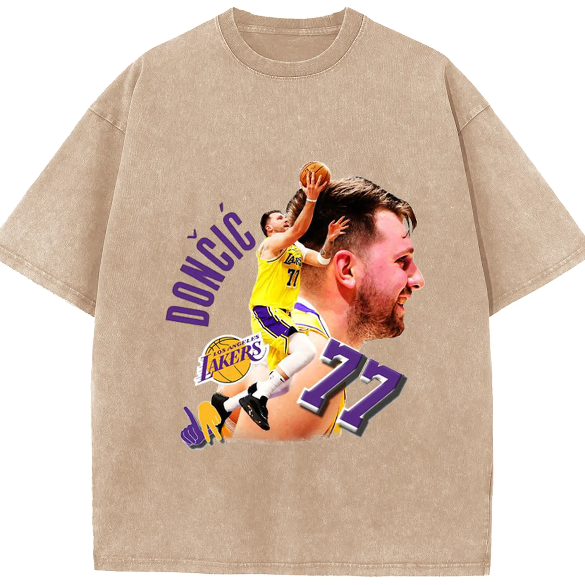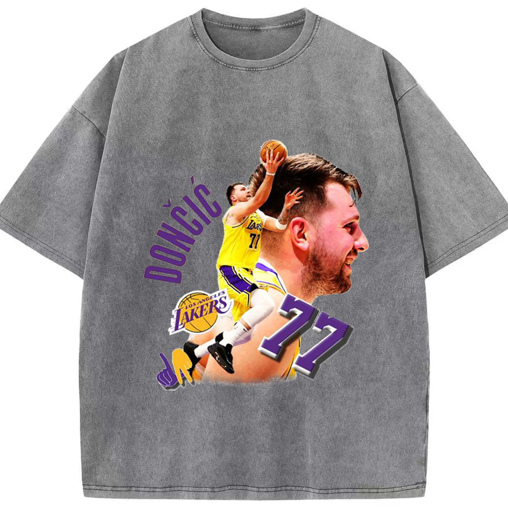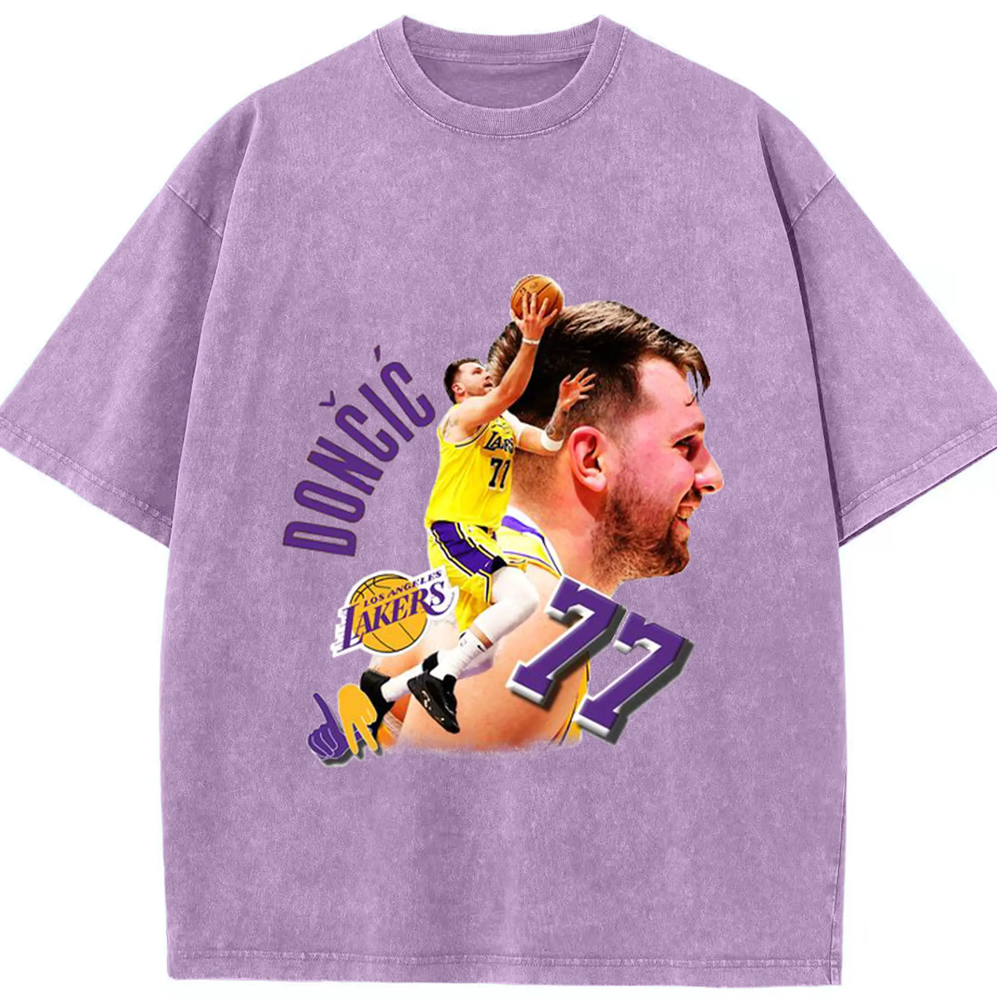 Lakers Luka’s Playmaking Shirt - Washed Vintage Look 230g Cotton Oversized T-Shirt With Front Heat Transfer Print – Soft, Lightweight, Stylish Fit – Comfortable Casual Wear For Sports & Everyday Use
