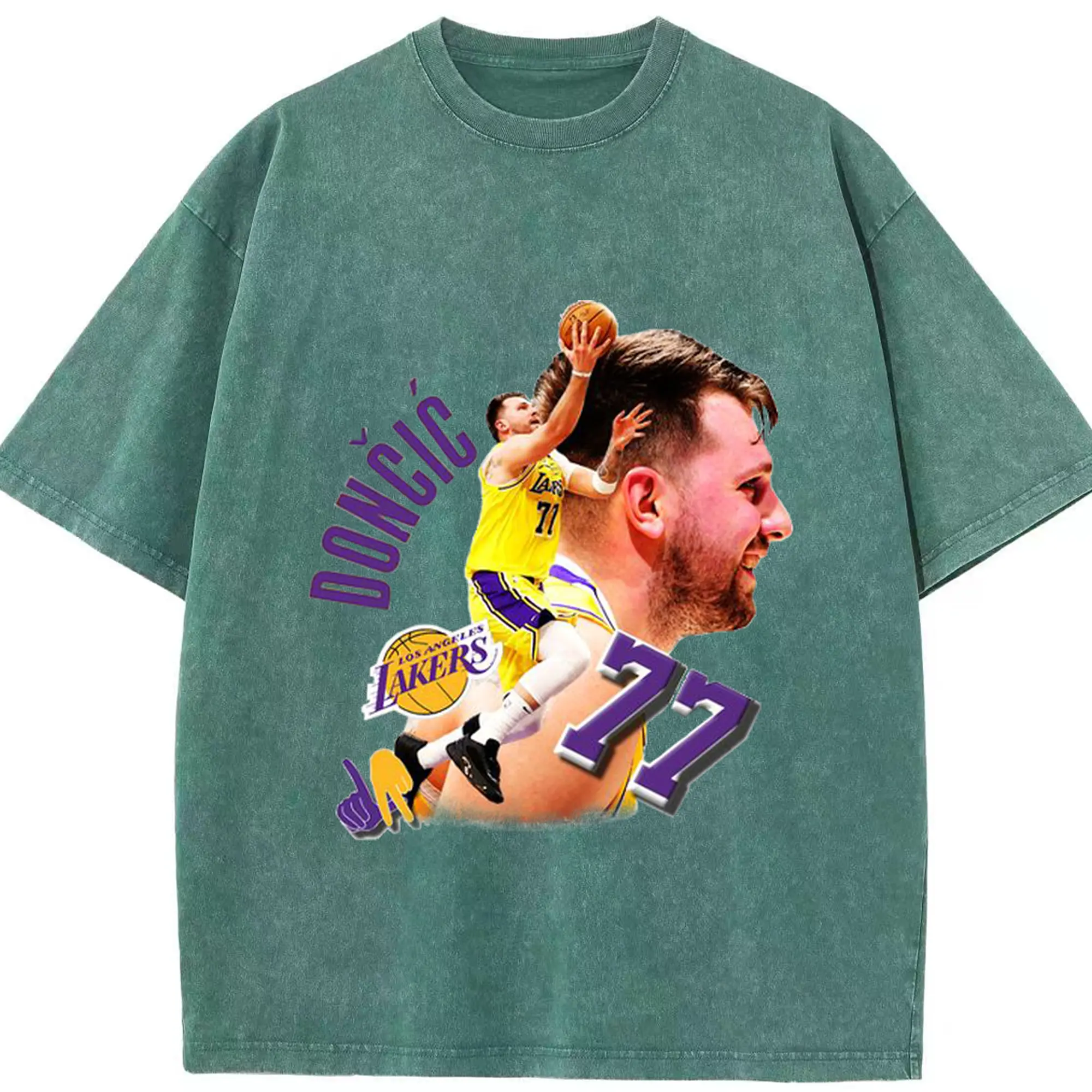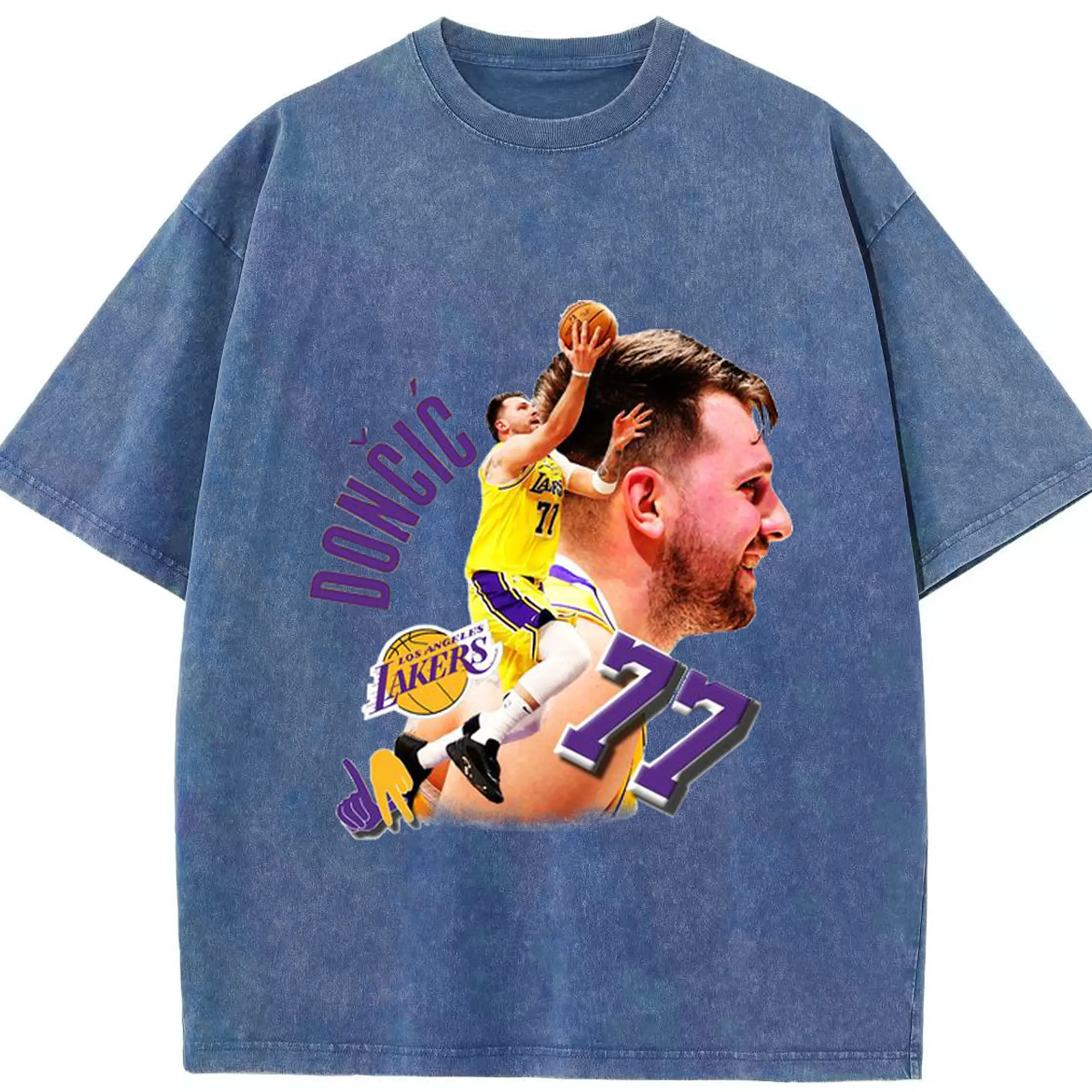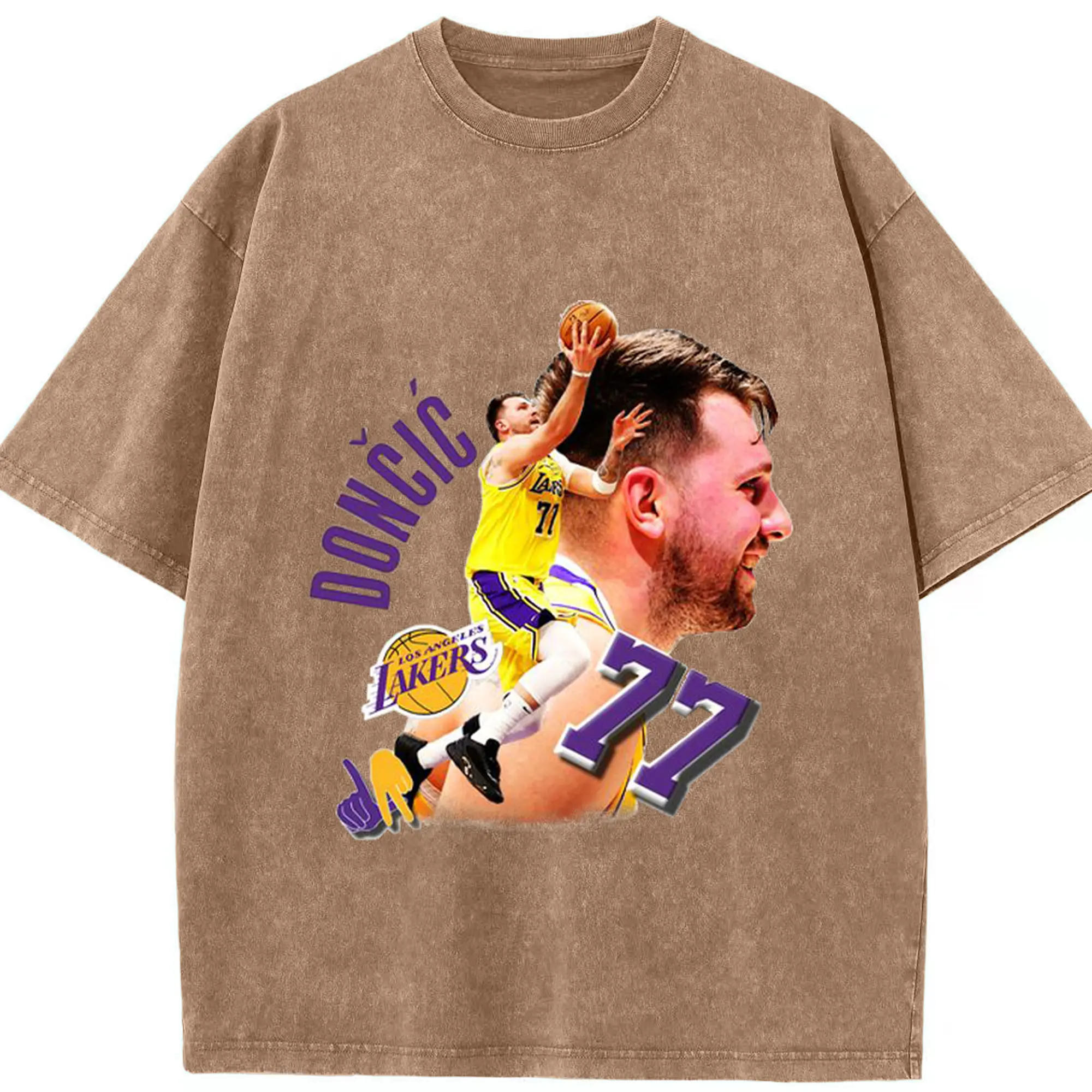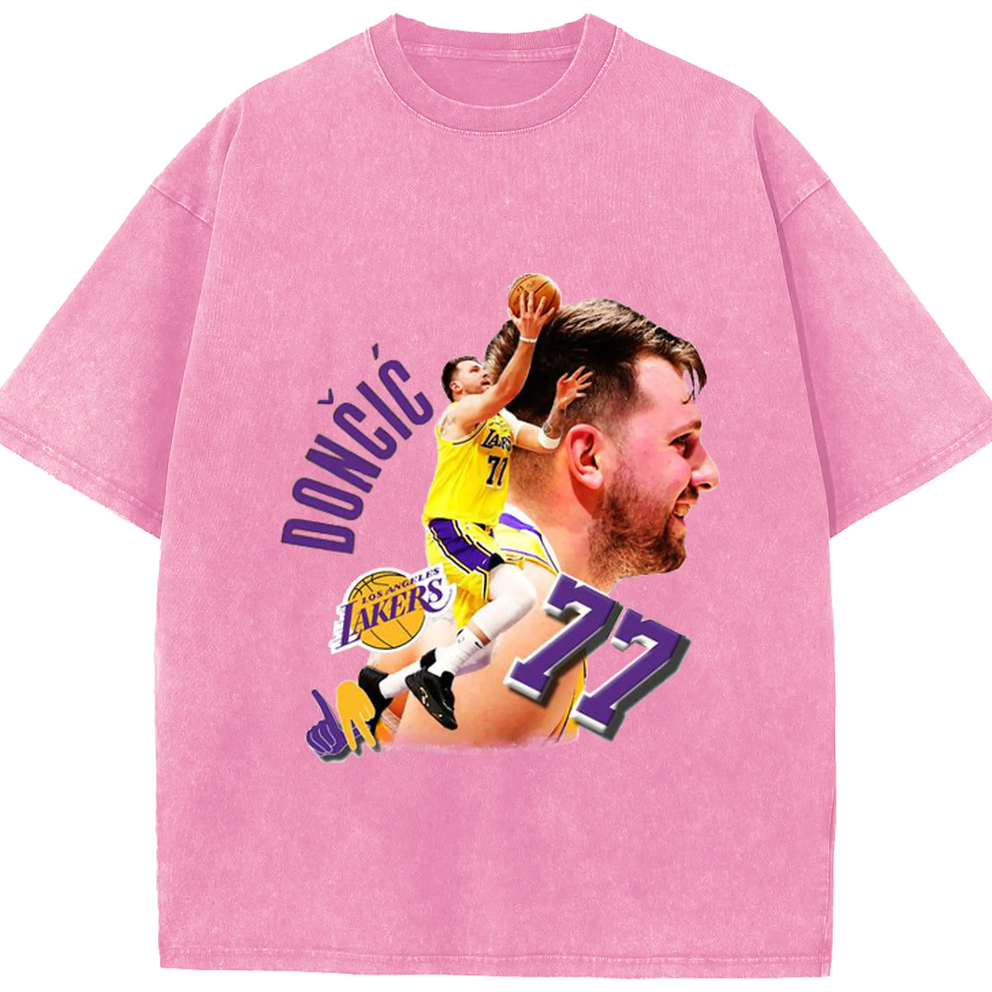 Lakers Luka’s Playmaking Shirt - Washed Vintage Look 230g Cotton Oversized T-Shirt With Front Heat Transfer Print – Soft, Lightweight, Stylish Fit – Comfortable Casual Wear For Sports & Everyday Use