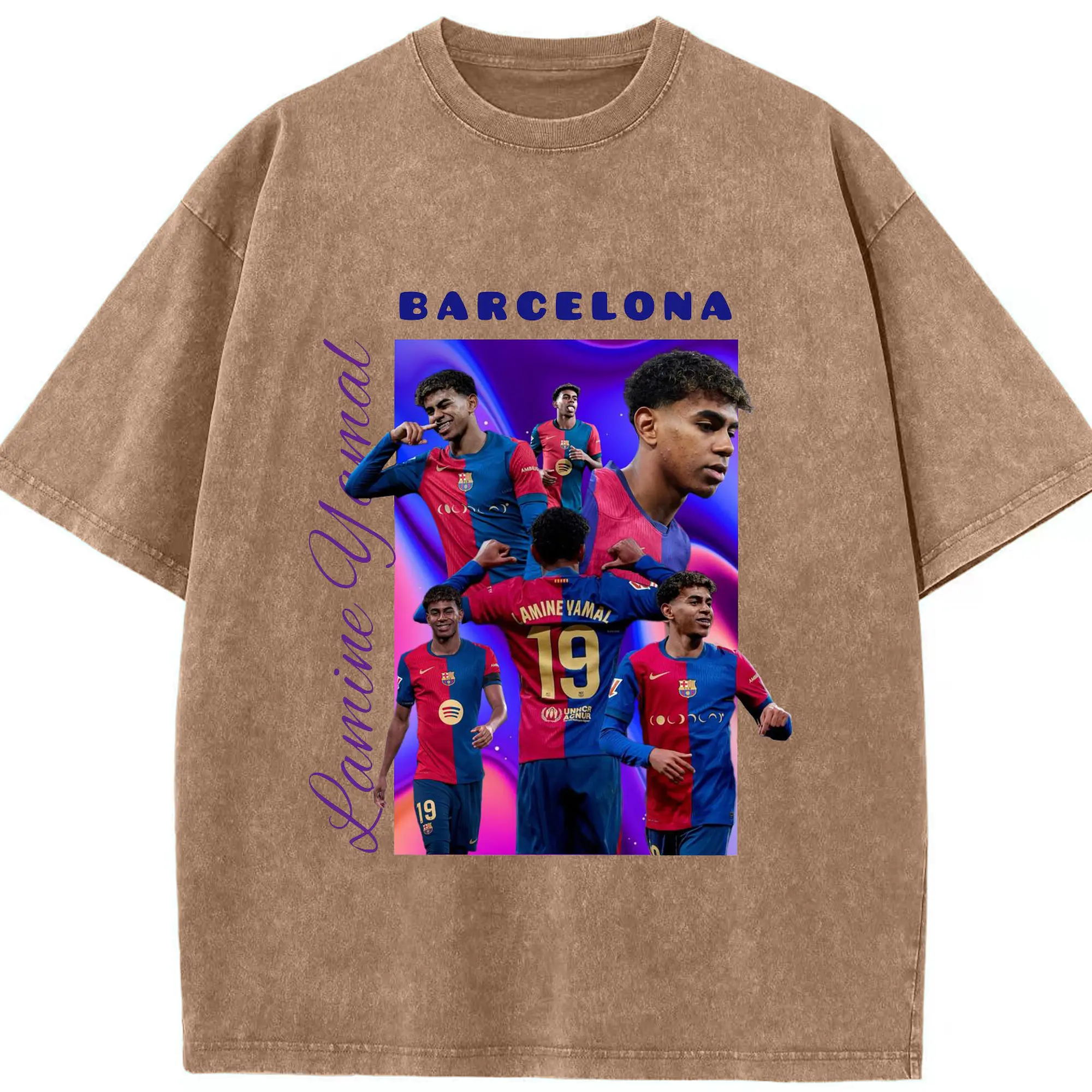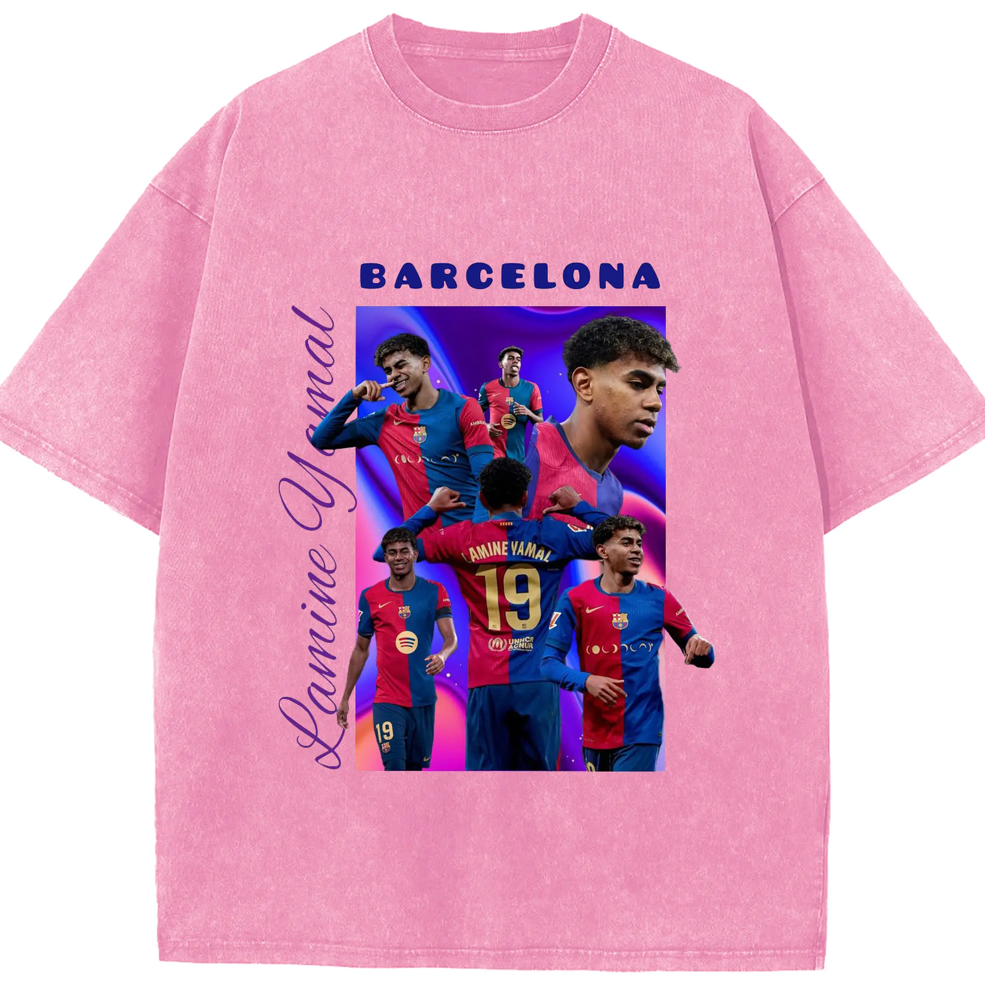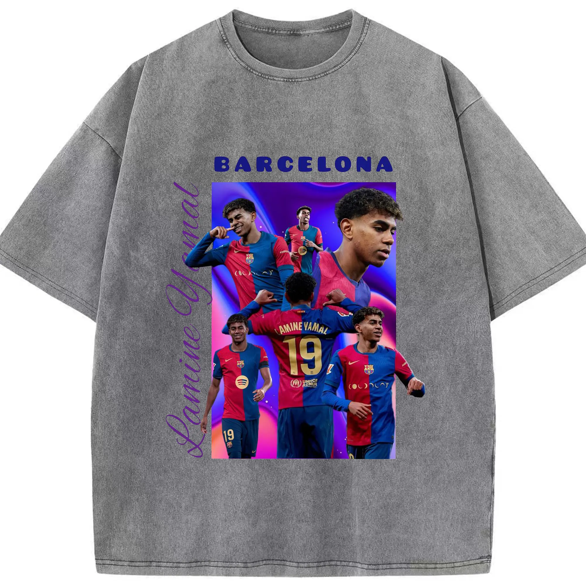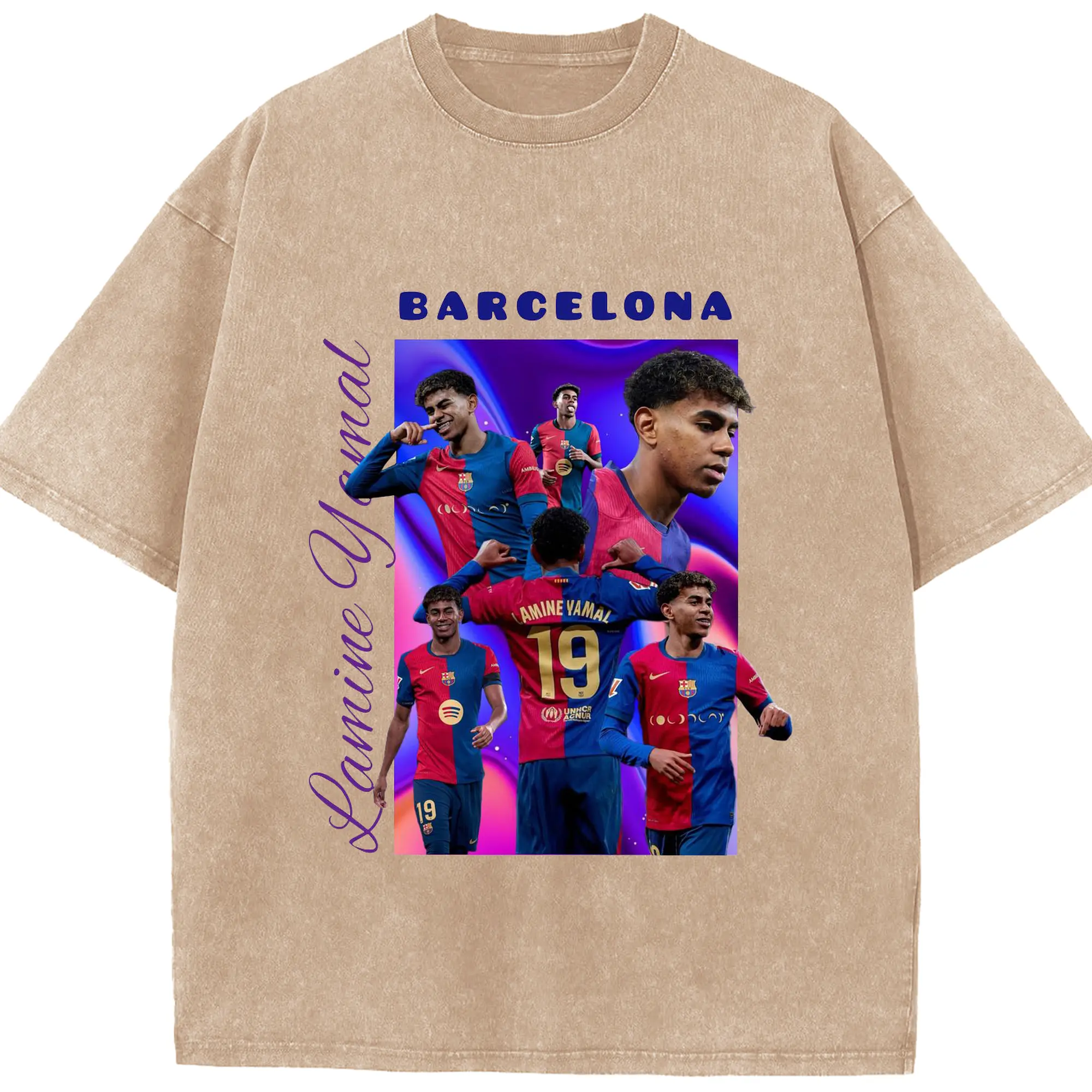 “Lamine Yamal Barcelona 19” Football Star DIY Shirt - Washed Vintage Look 230g Cotton Oversized T-Shirt With Front Heat Transfer Print – Soft, Lightweight, Stylish Fit – Comfortable Casual Wear For Sports & Everyday Use