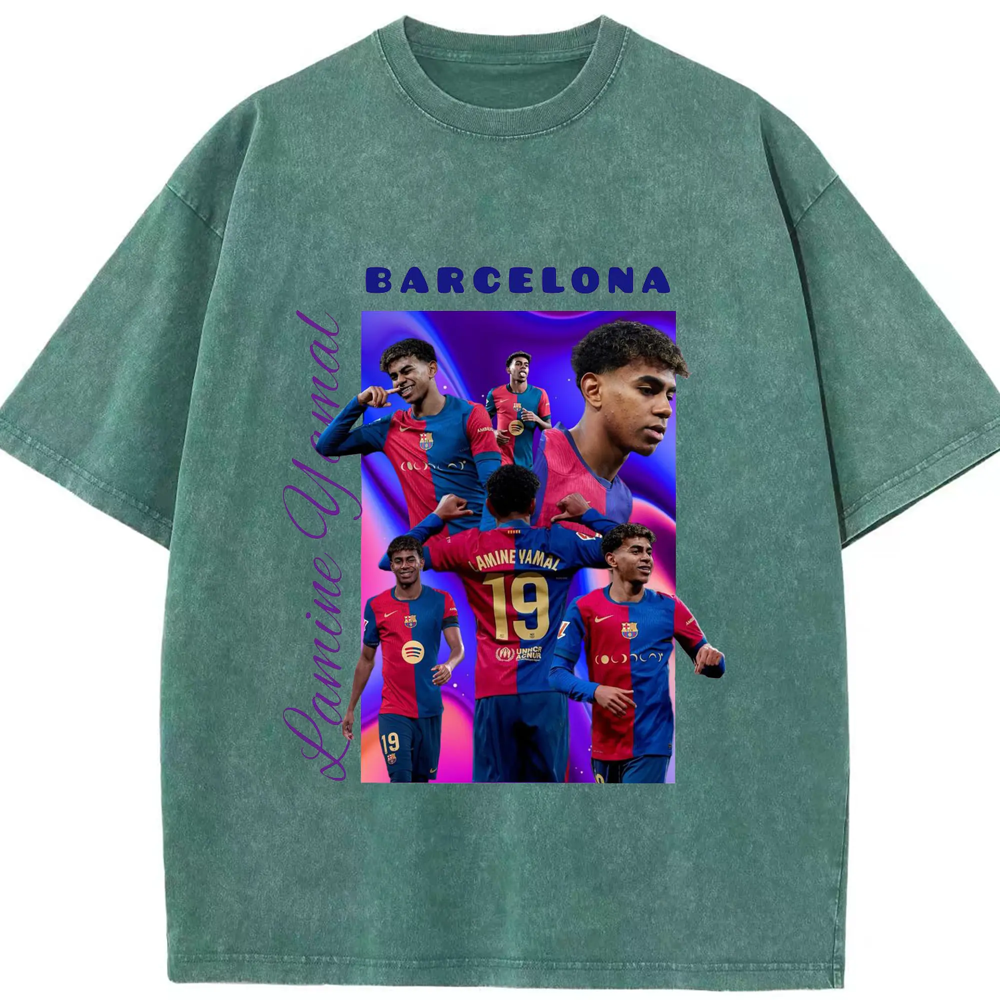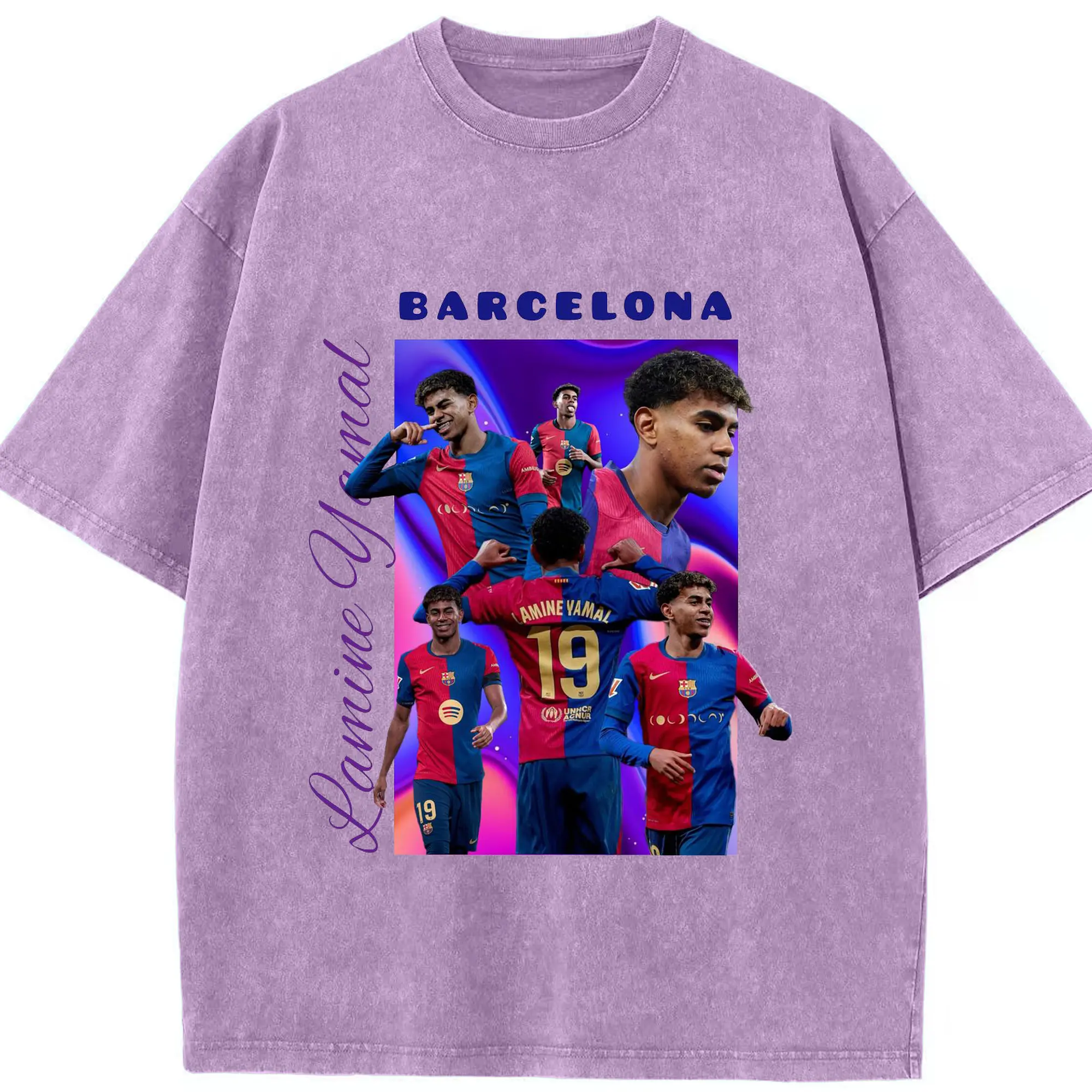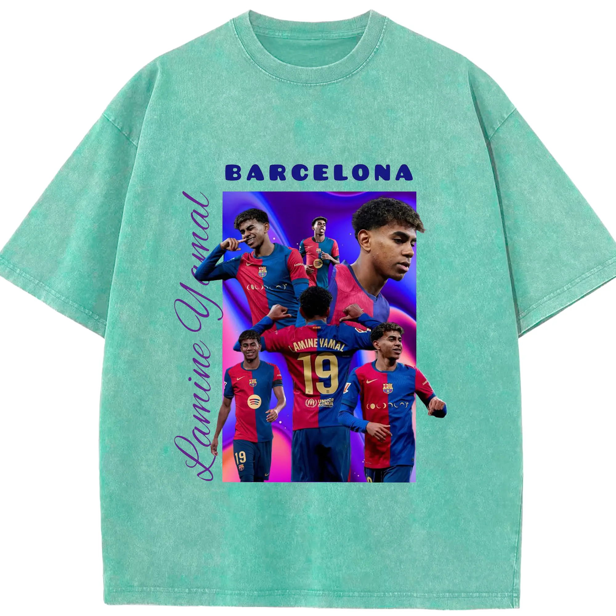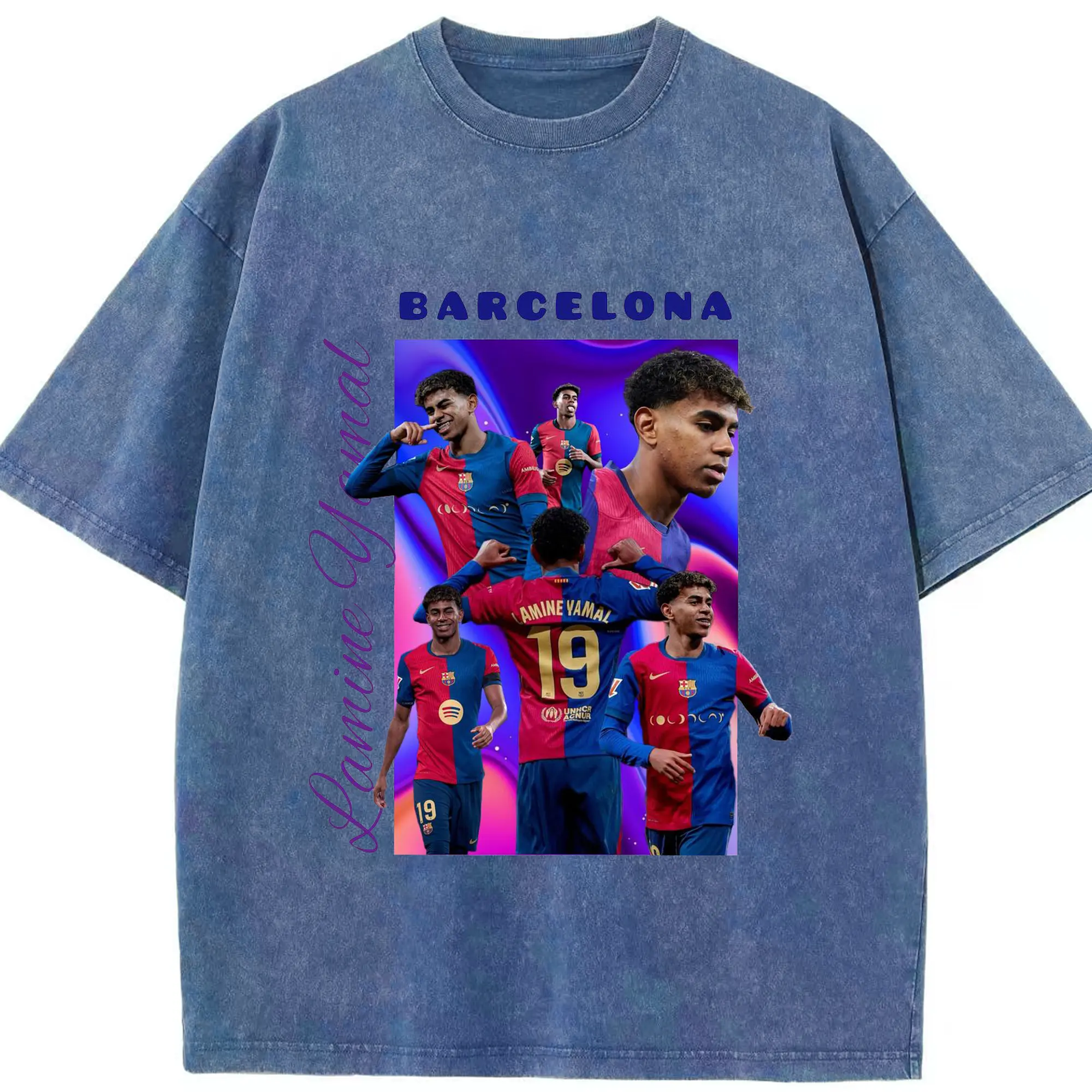 “Lamine Yamal Barcelona 19” Football Star DIY Shirt - Washed Vintage Look 230g Cotton Oversized T-Shirt With Front Heat Transfer Print – Soft, Lightweight, Stylish Fit – Comfortable Casual Wear For Sports & Everyday Use