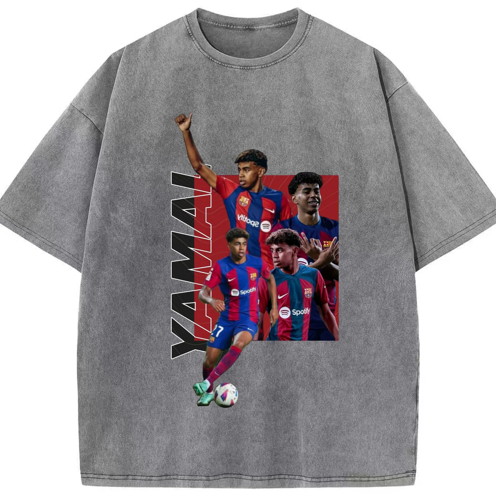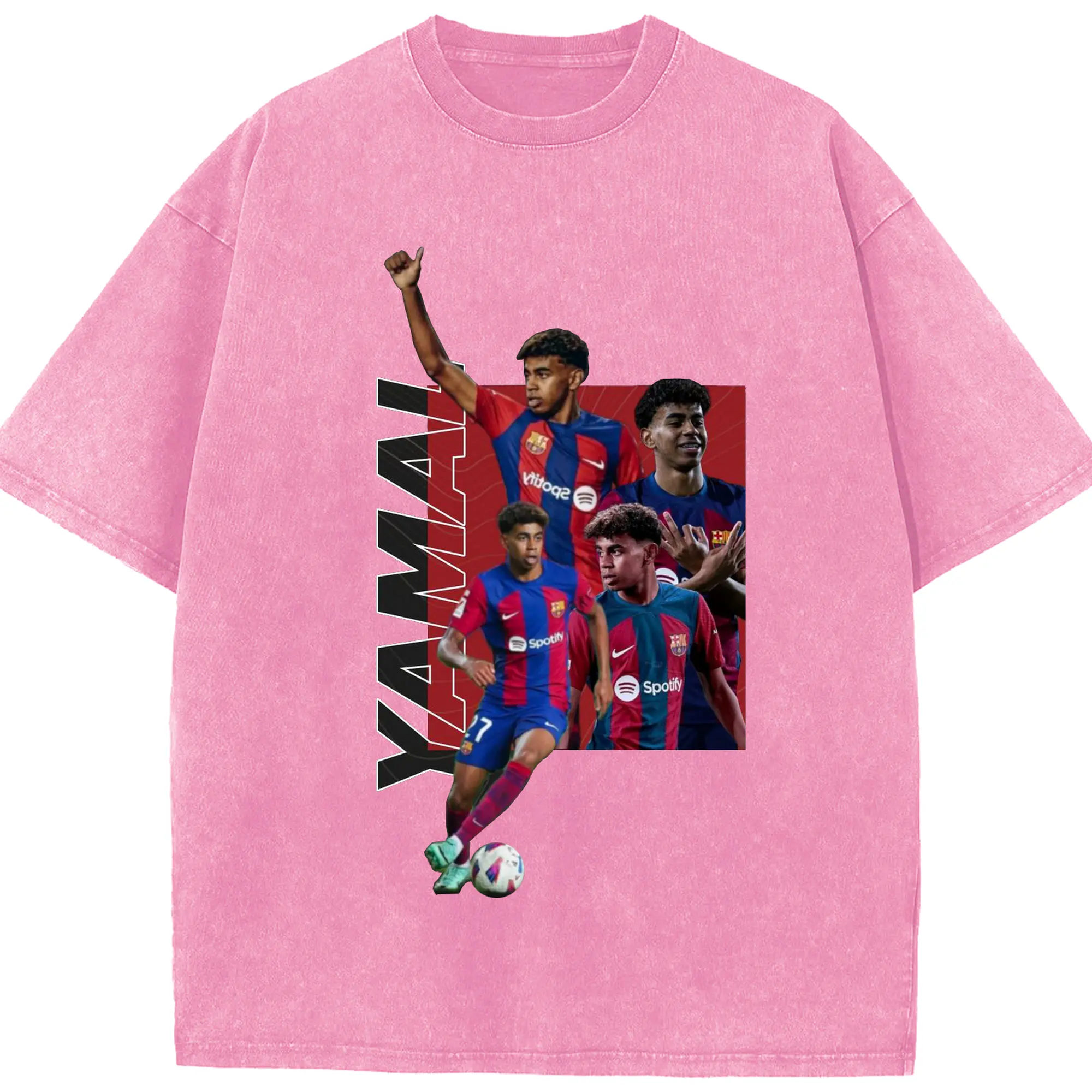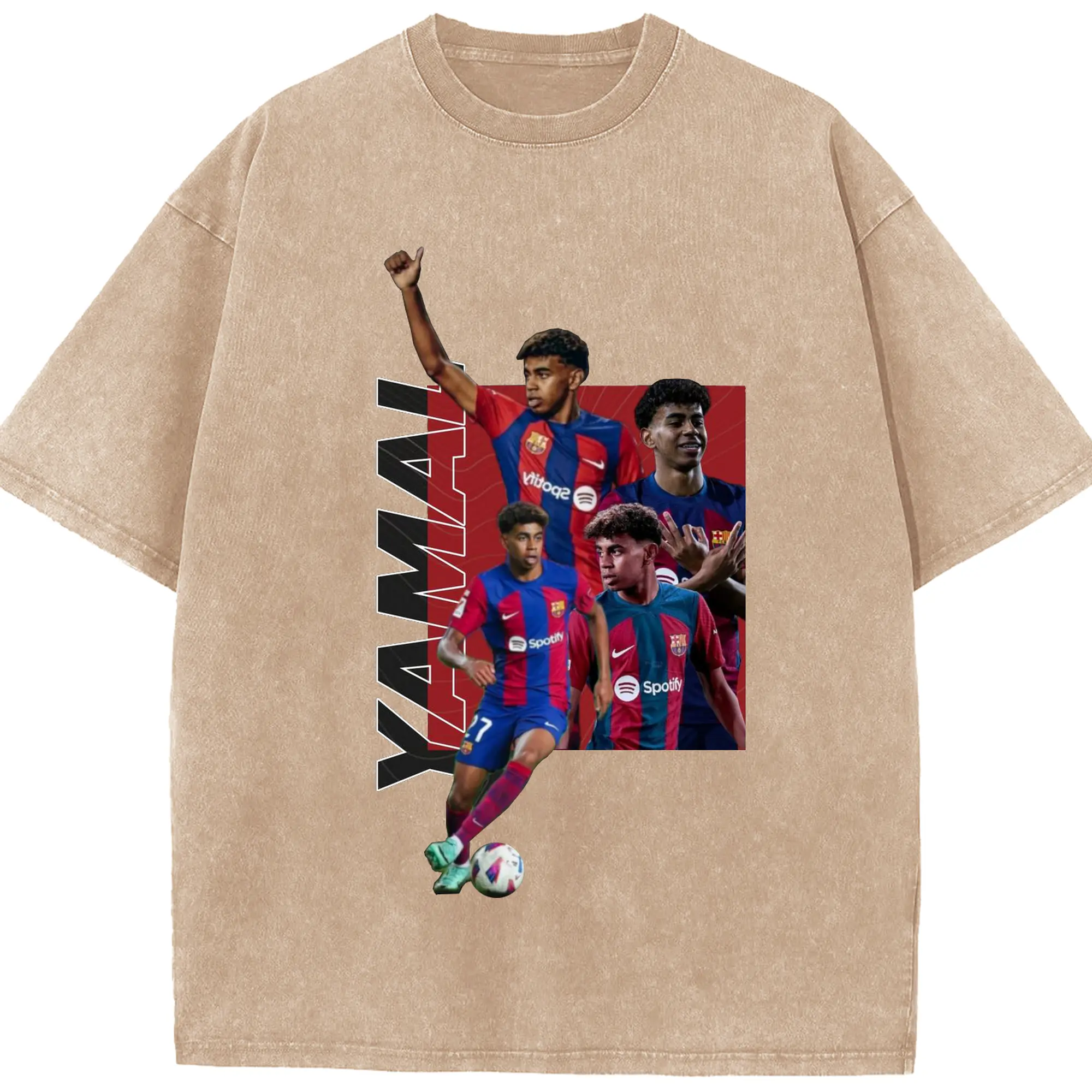 Lamine Yamal Barcelona Rising Star DIY Shirt - Washed Vintage Look 230g Cotton Oversized T-Shirt With Front Heat Transfer Print – Soft, Lightweight, Stylish Fit – Comfortable Casual Wear For Sports & Everyday Use