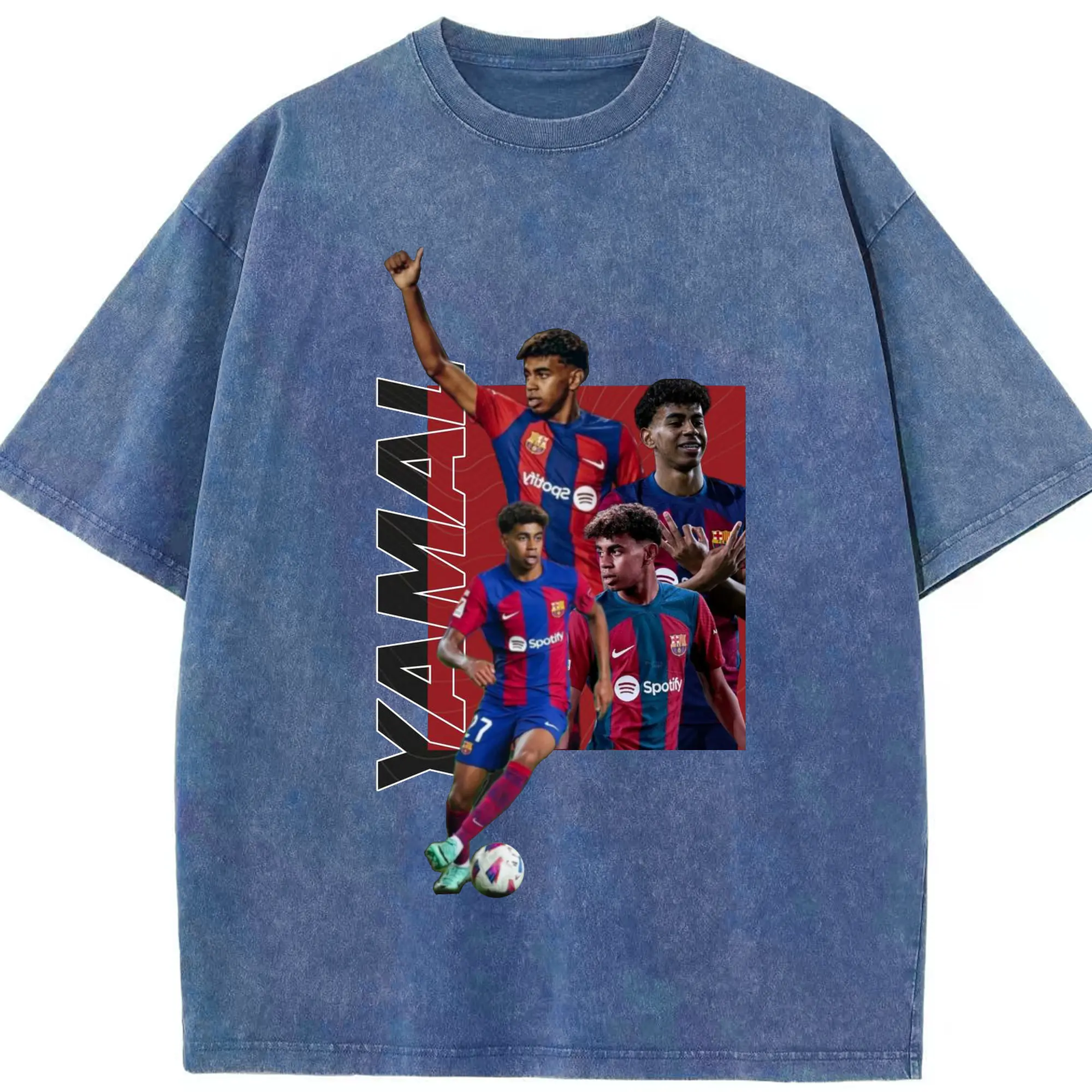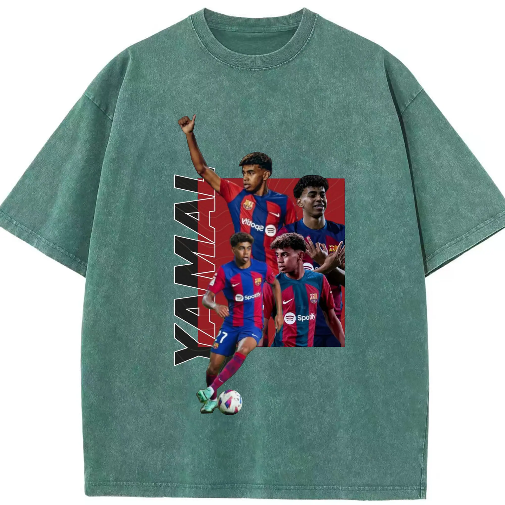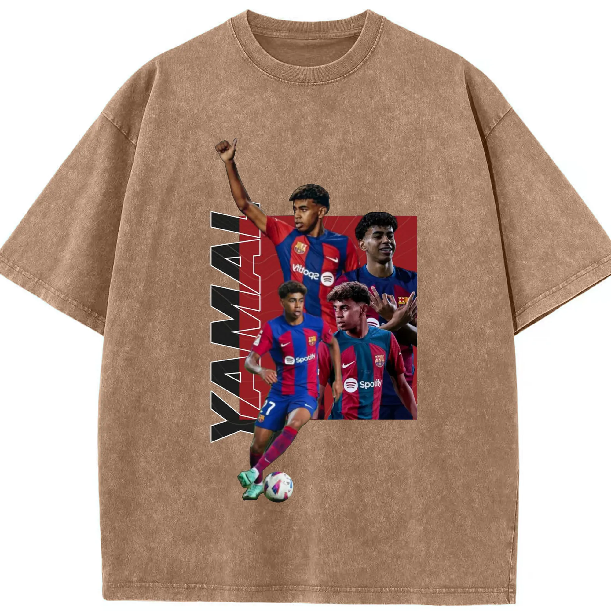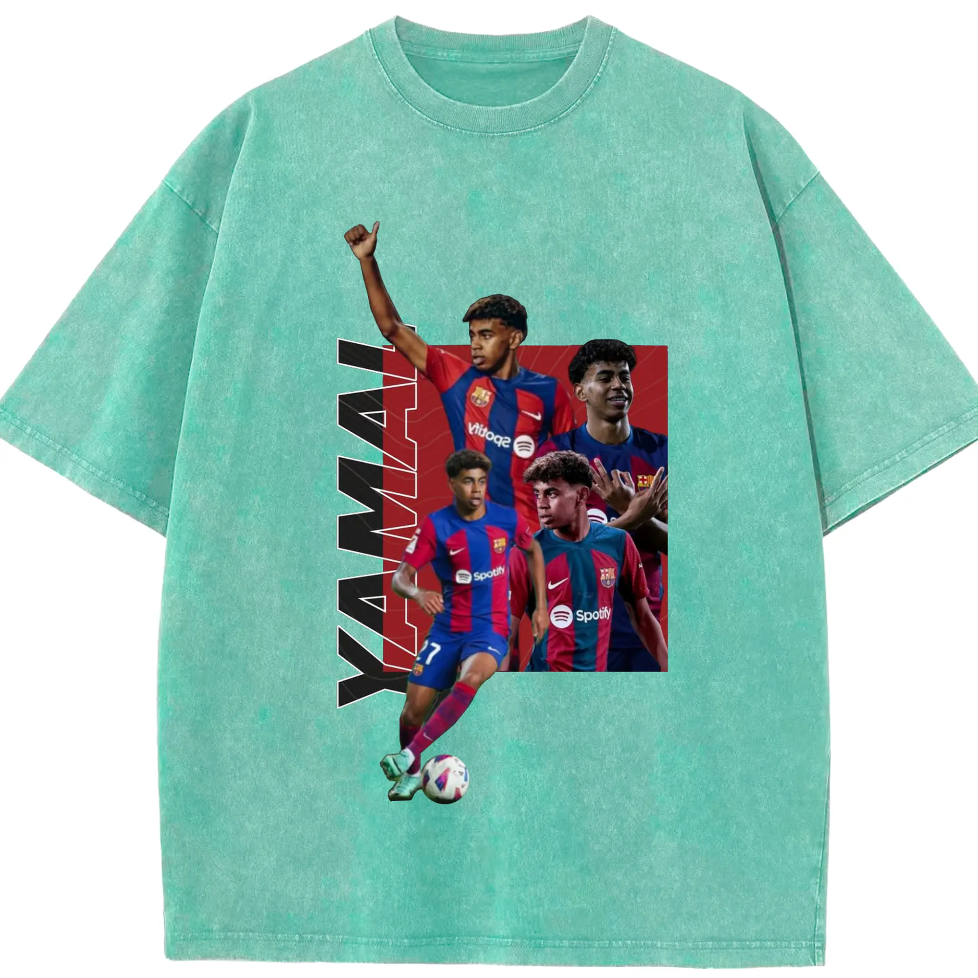 Lamine Yamal Barcelona Rising Star DIY Shirt - Washed Vintage Look 230g Cotton Oversized T-Shirt With Front Heat Transfer Print – Soft, Lightweight, Stylish Fit – Comfortable Casual Wear For Sports & Everyday Use