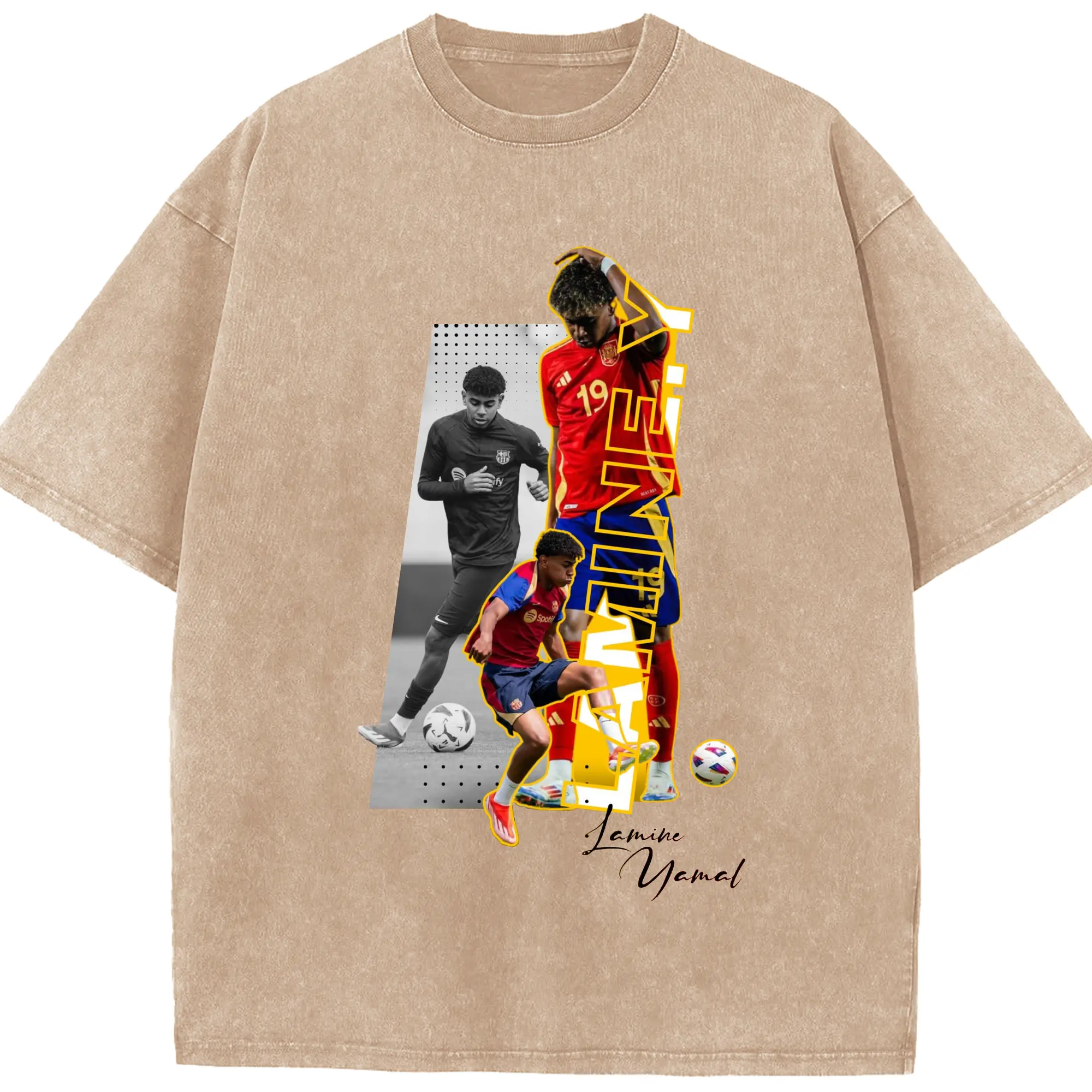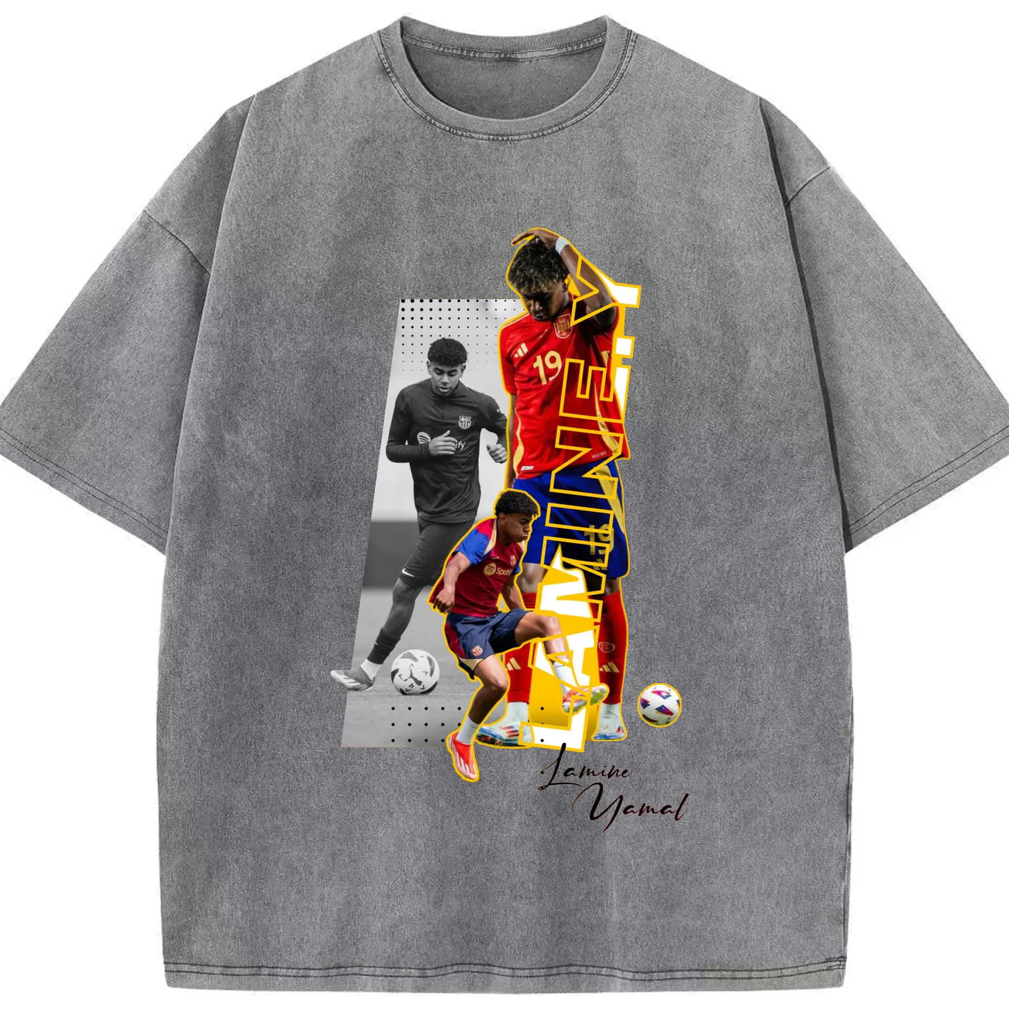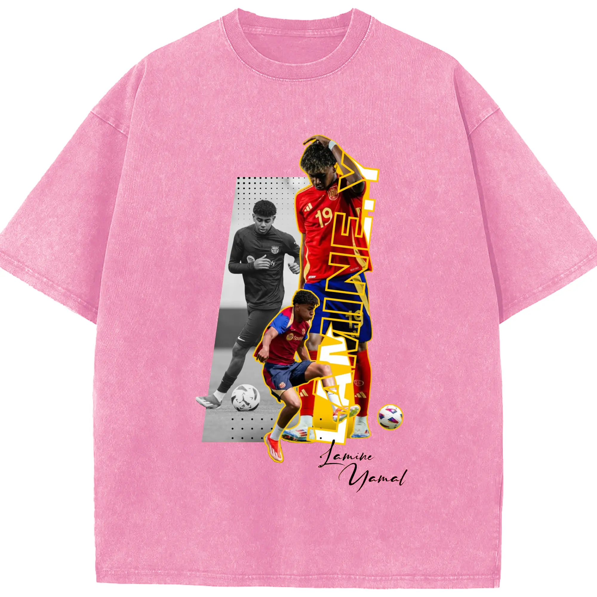 Lamine Yamal Barcelona & Spain National Team Soccer DIY Shirt - Washed Vintage Look 230g Cotton Oversized T-Shirt With Front Heat Transfer Print – Soft, Lightweight, Stylish Fit – Comfortable Casual Wear For Sports & Everyday Use