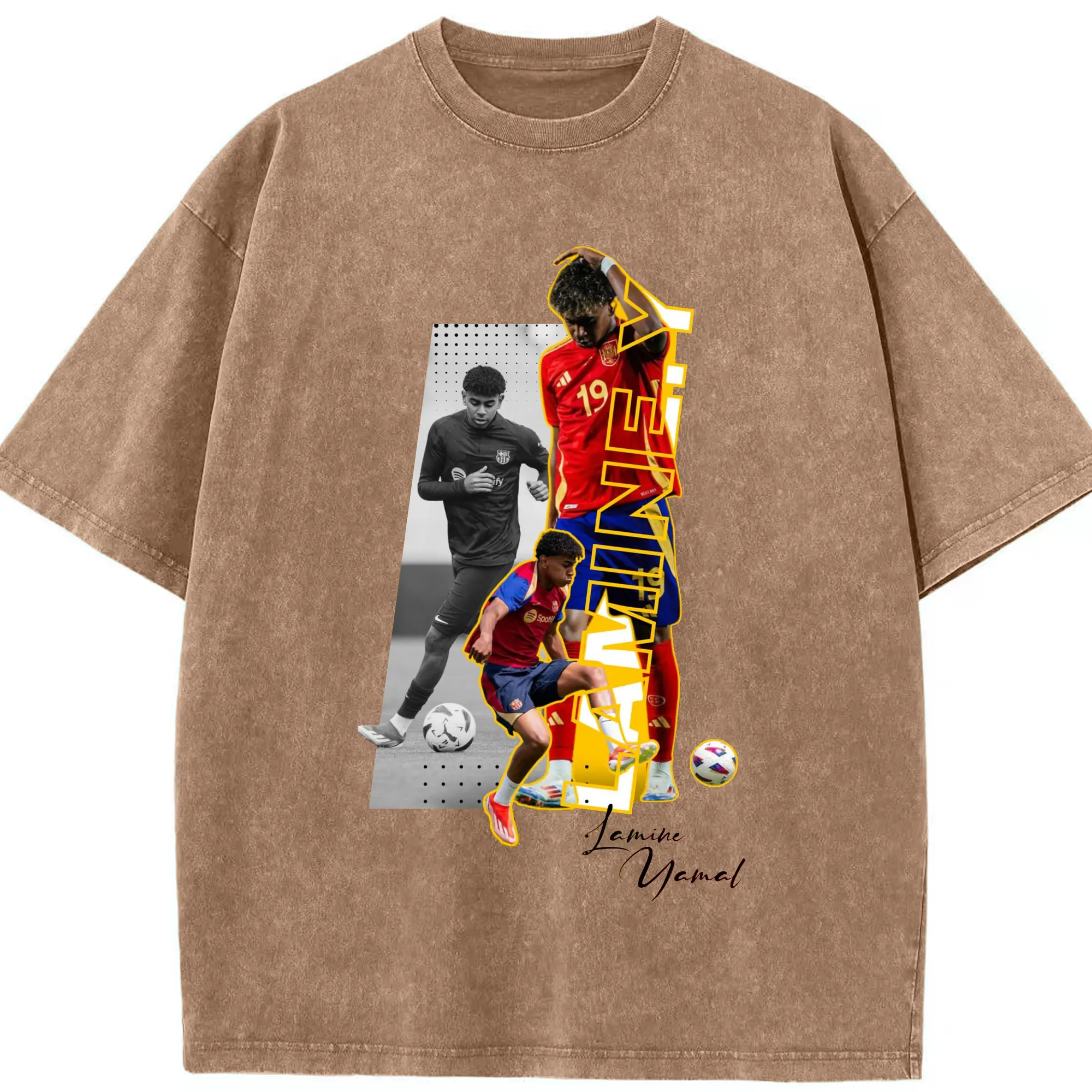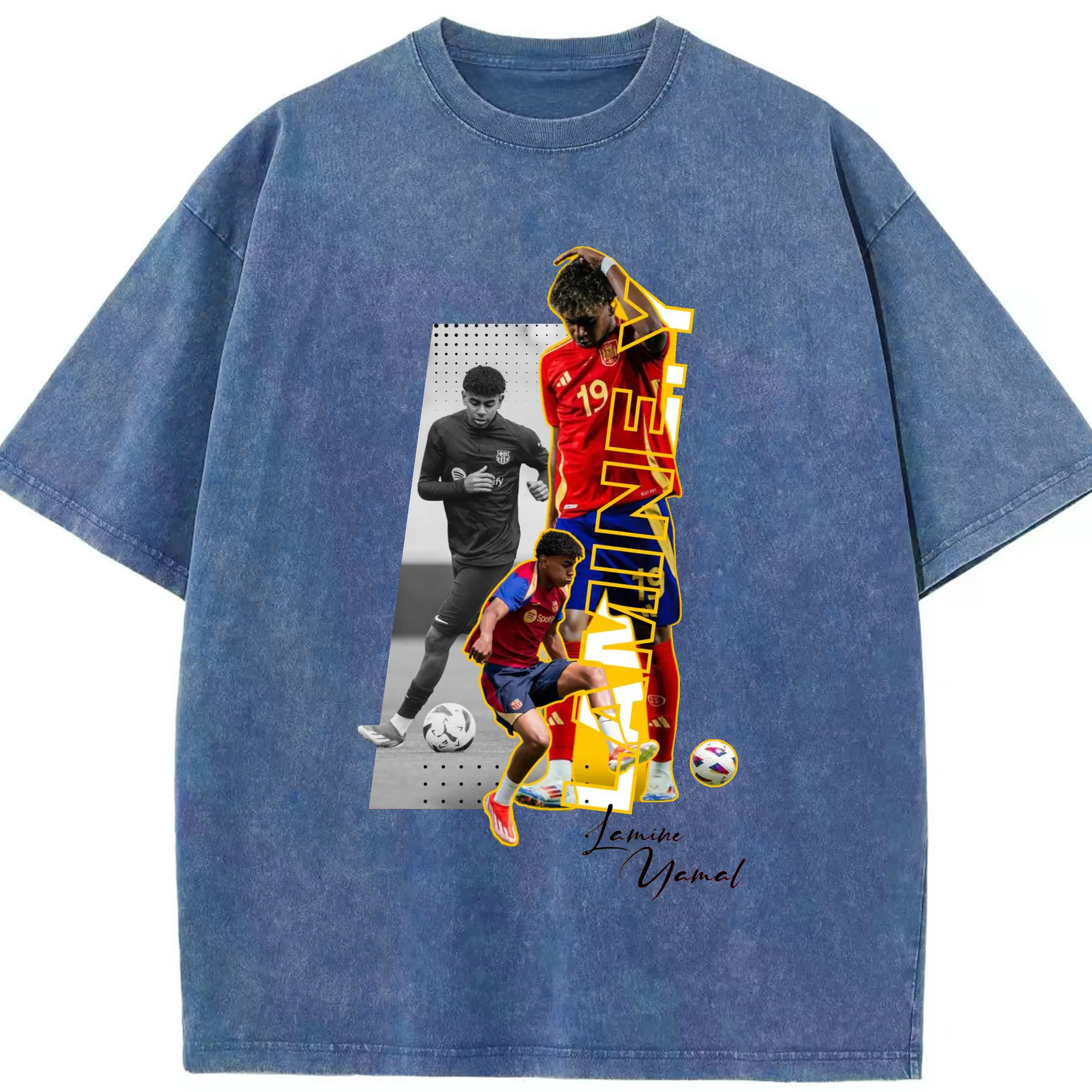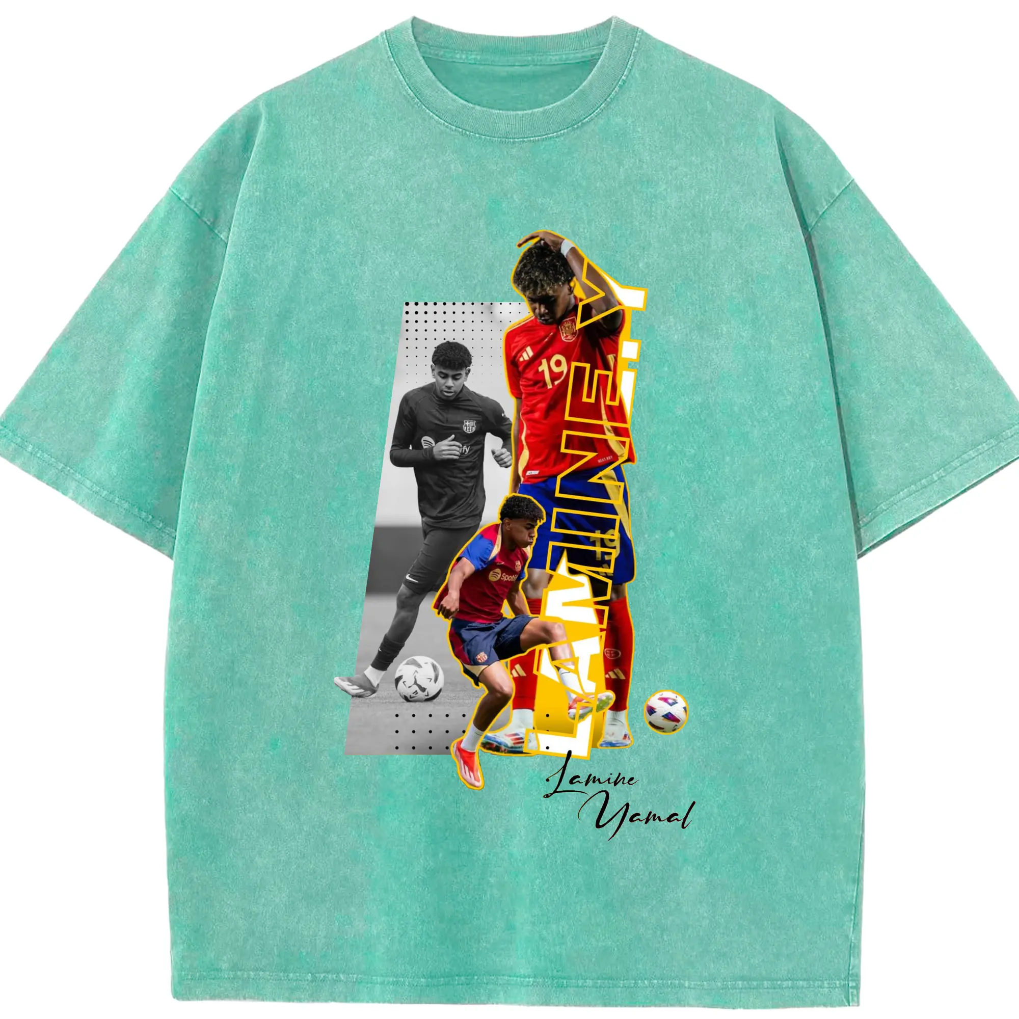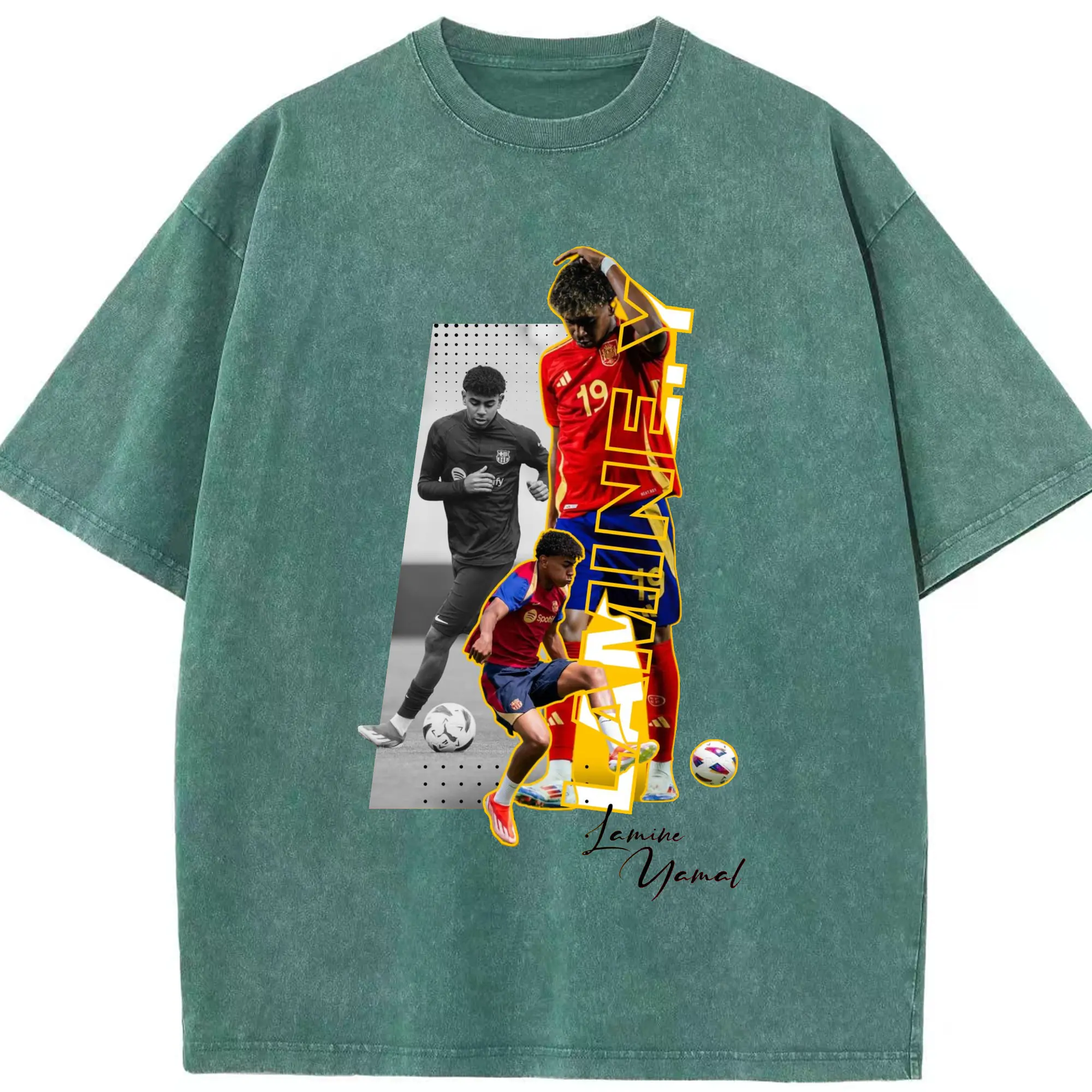 Lamine Yamal Barcelona & Spain National Team Soccer DIY Shirt - Washed Vintage Look 230g Cotton Oversized T-Shirt With Front Heat Transfer Print – Soft, Lightweight, Stylish Fit – Comfortable Casual Wear For Sports & Everyday Use