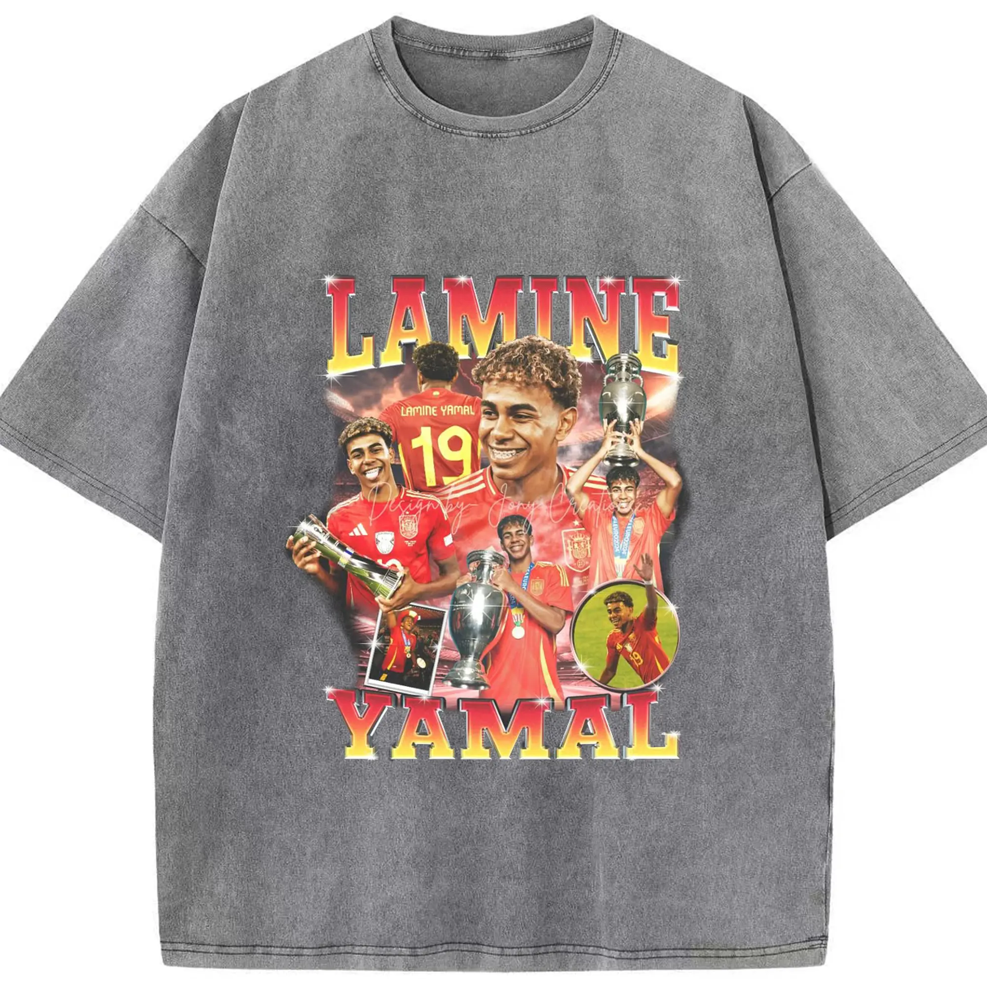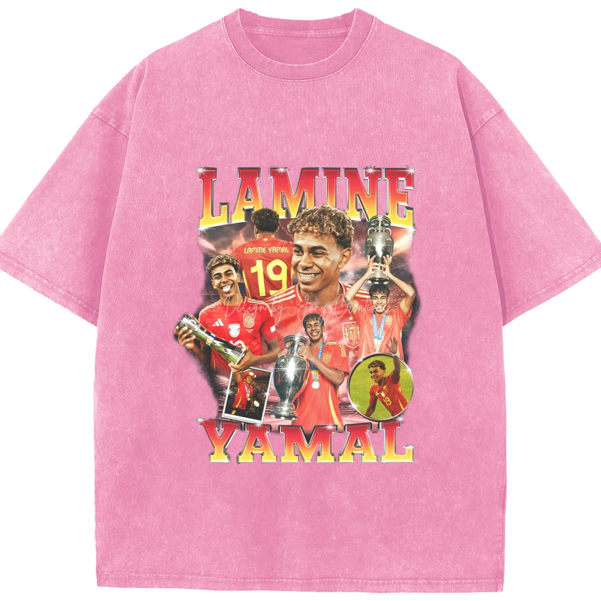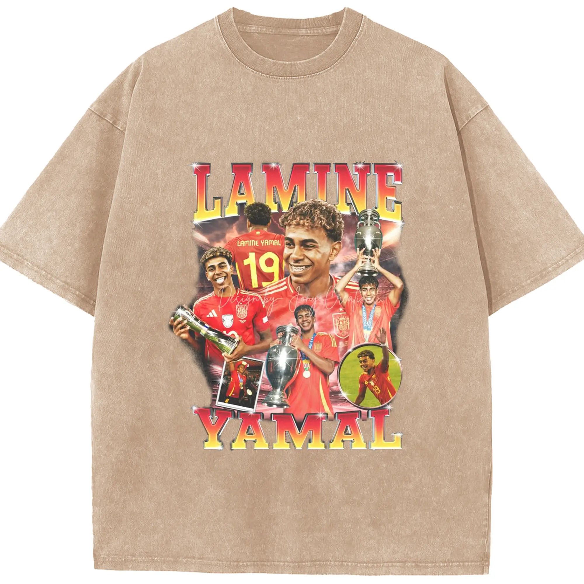 Lamine Yamal Spain National Team Championship DIY Shirt - Washed Vintage Look 230g Cotton Oversized T-Shirt With Front Heat Transfer Print – Soft, Lightweight, Stylish Fit – Comfortable Casual Wear For Sports & Everyday Use