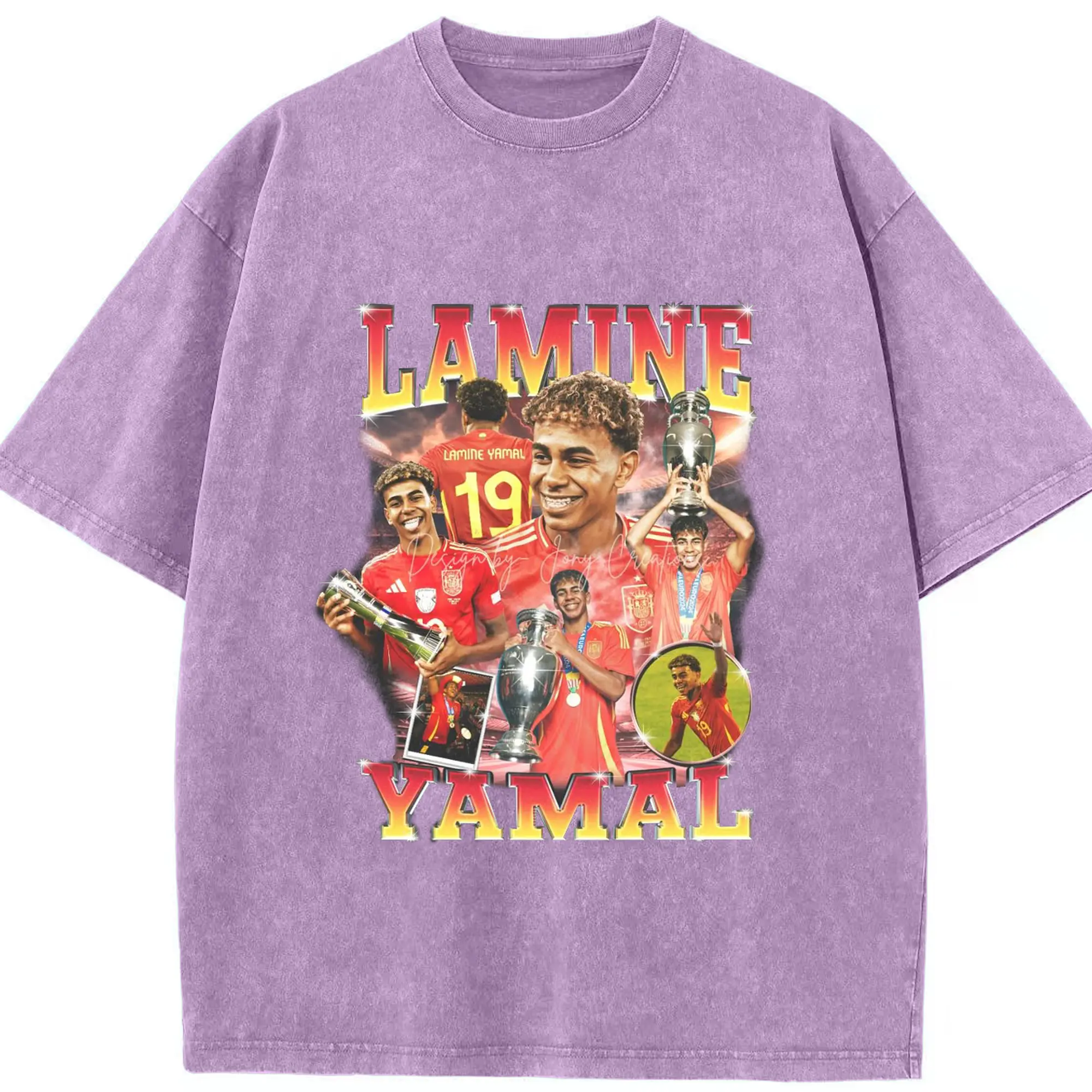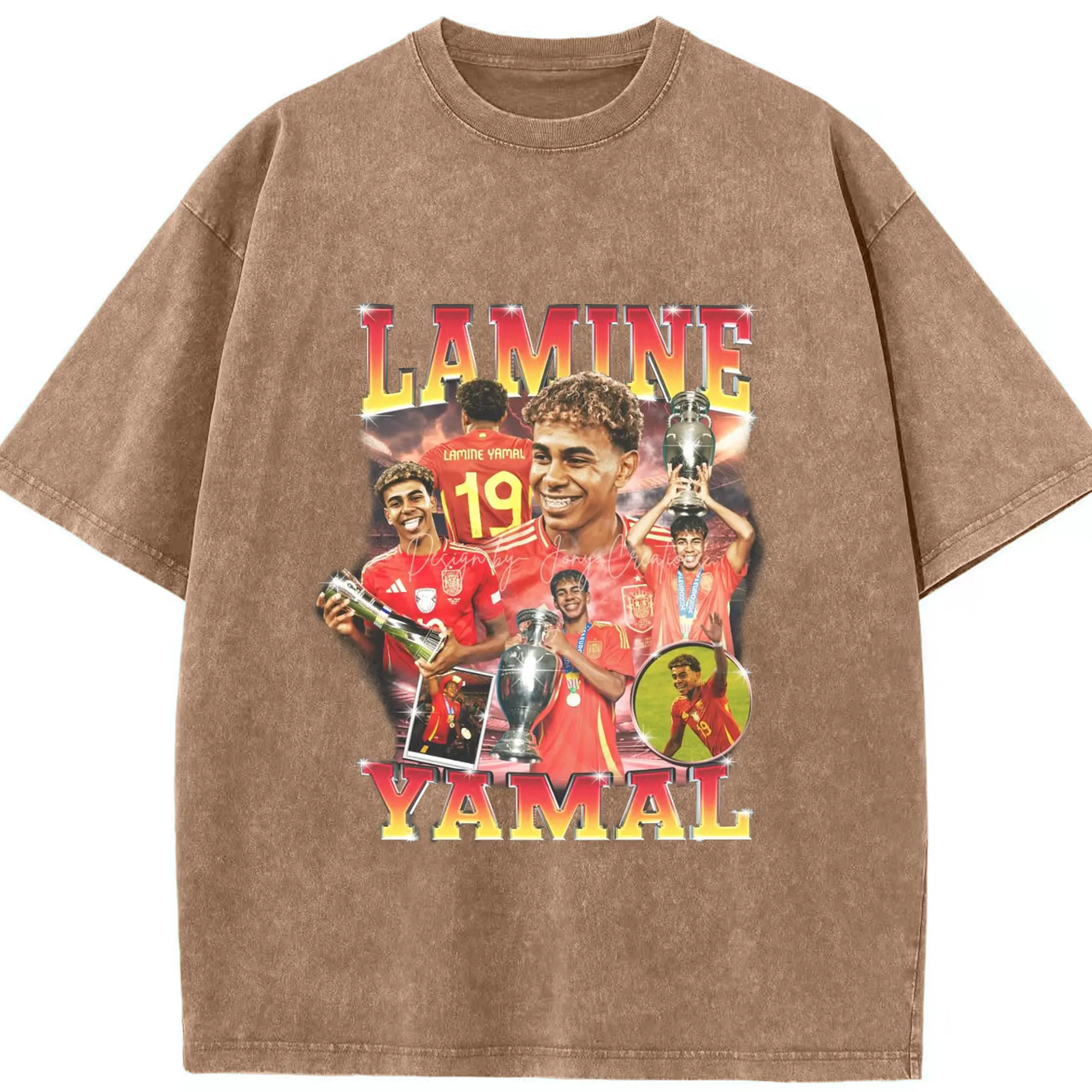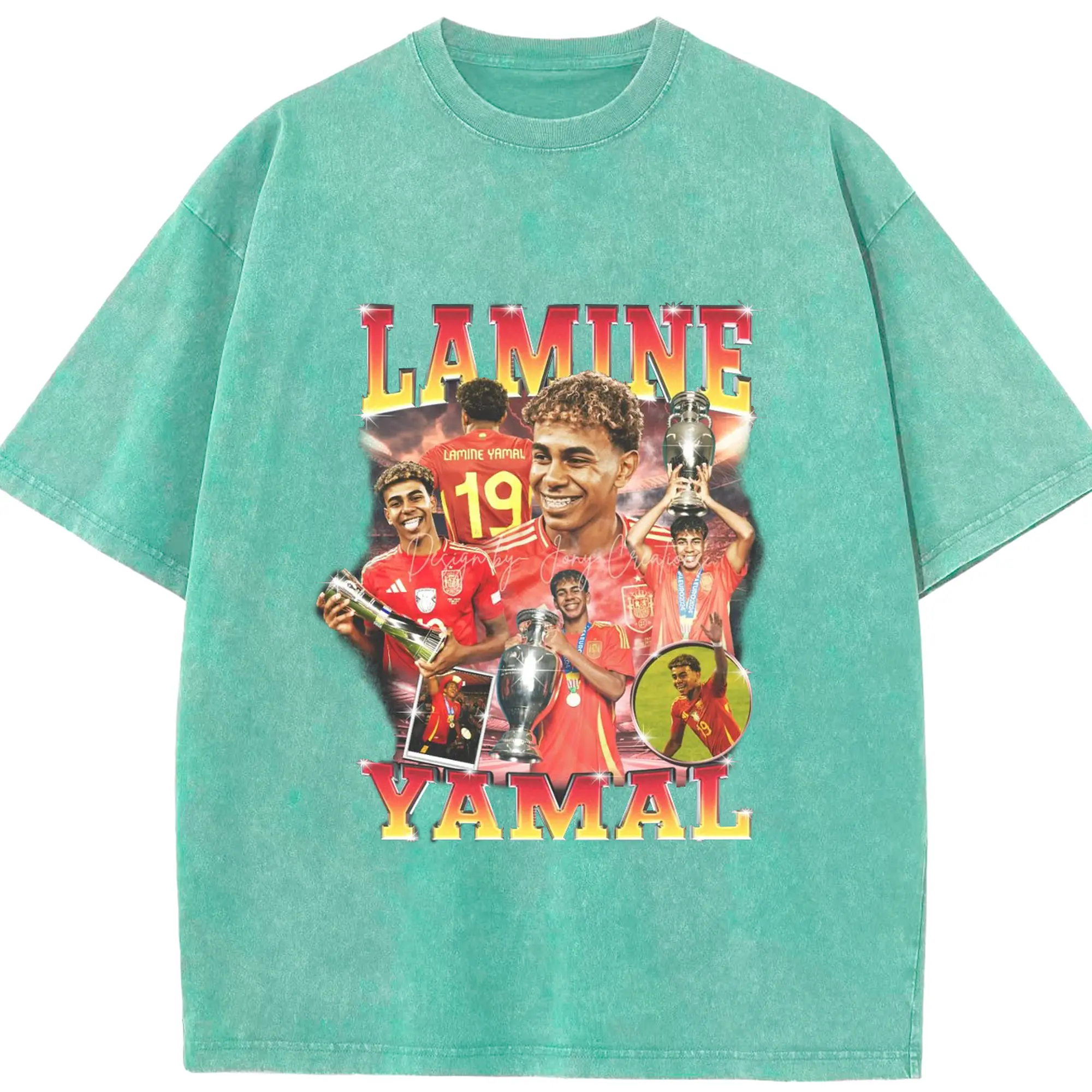Lamine Yamal Spain National Team Championship DIY Shirt - Washed Vintage Look 230g Cotton Oversized T-Shirt With Front Heat Transfer Print – Soft, Lightweight, Stylish Fit – Comfortable Casual Wear For Sports & Everyday Use