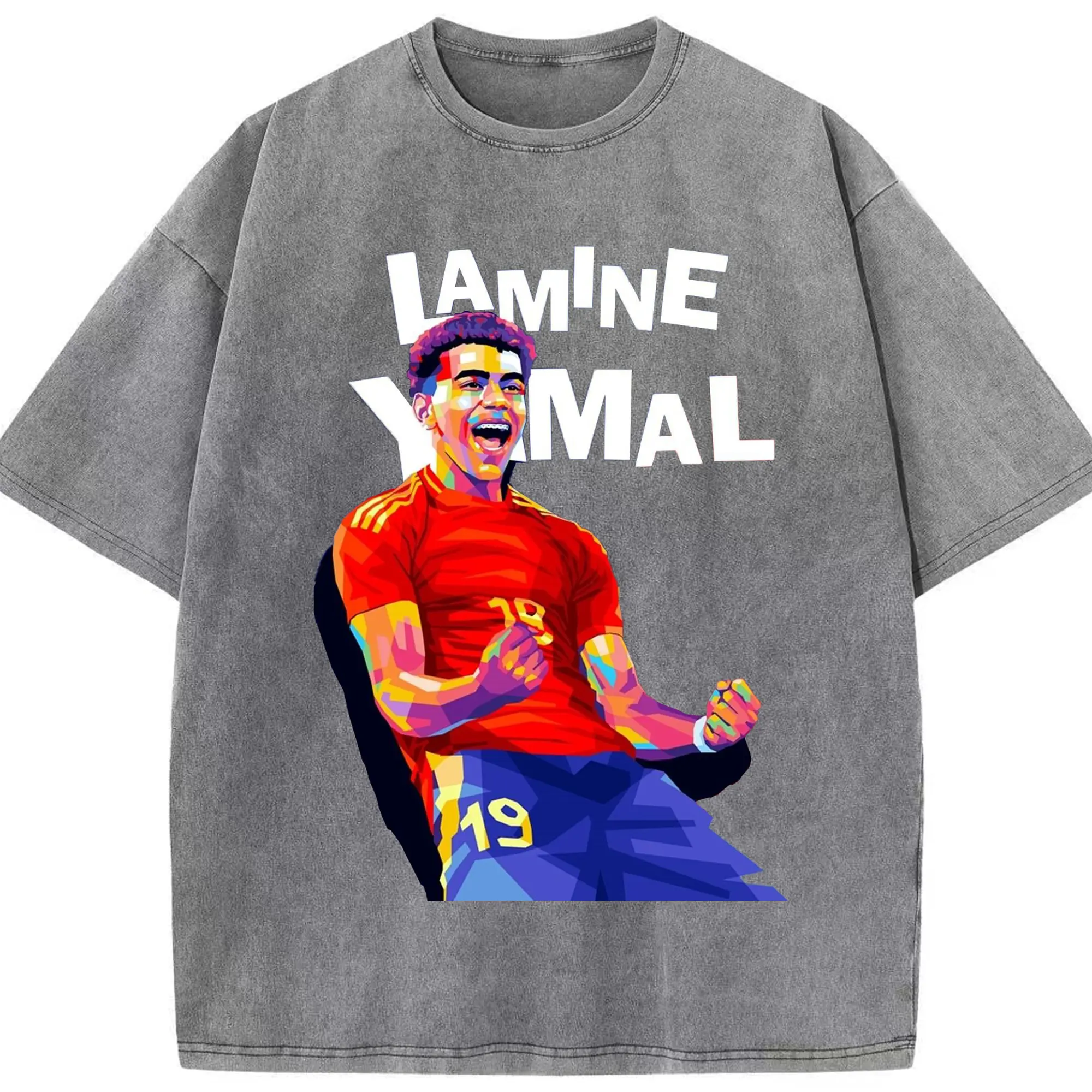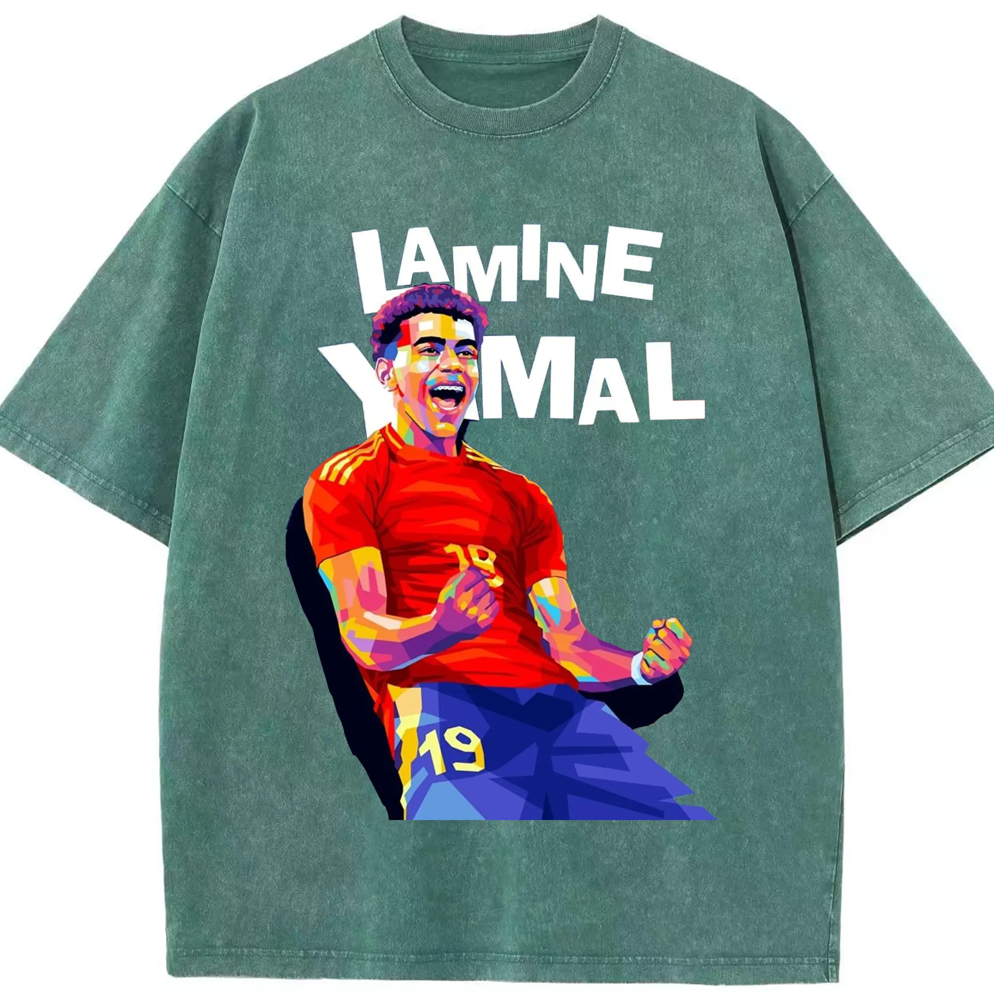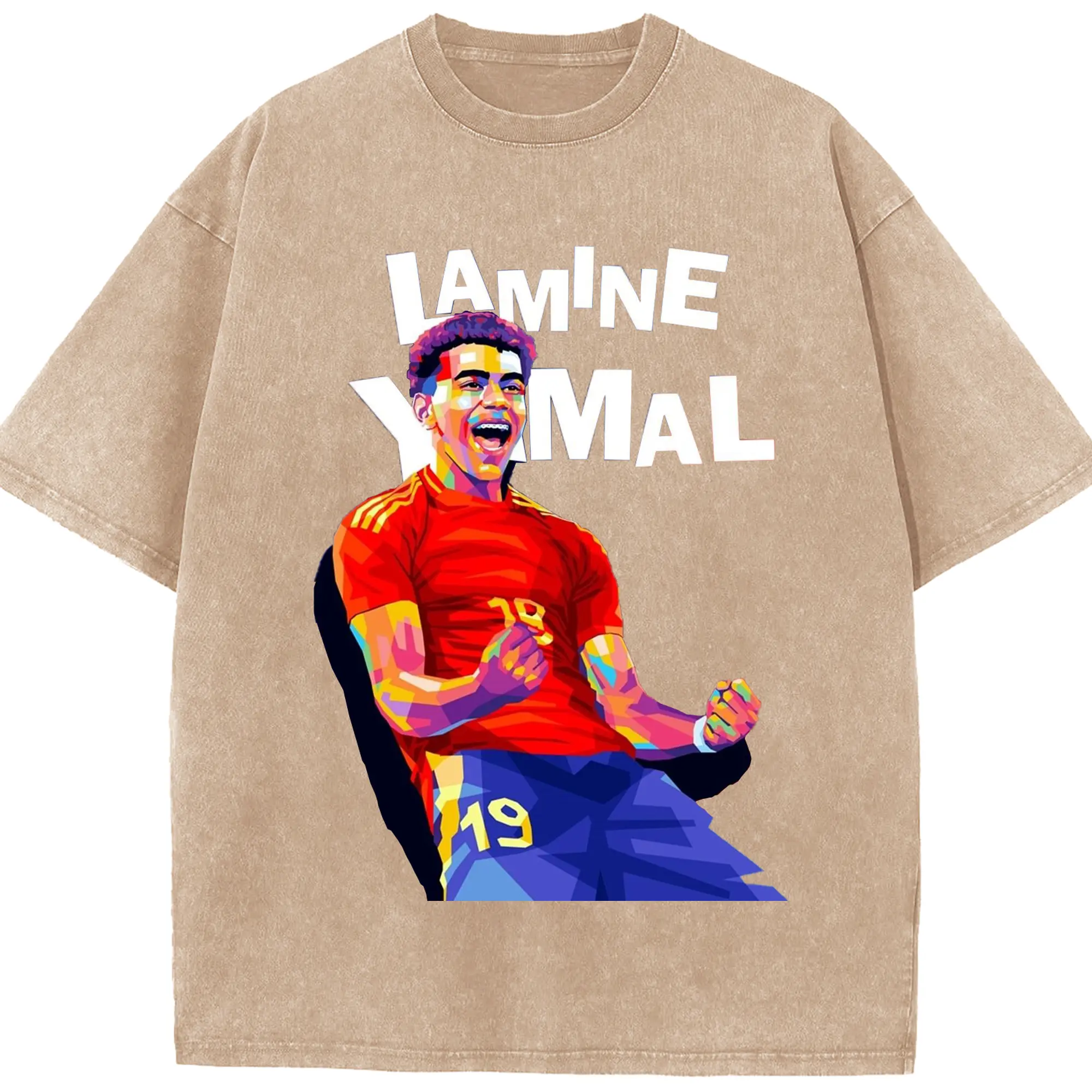Lamine Yamal Spain National Team Pop Art DIY Shirt - Washed Vintage Look 230g Cotton Oversized T-Shirt With Front Heat Transfer Print – Soft, Lightweight, Stylish Fit – Comfortable Casual Wear For Sports & Everyday Use