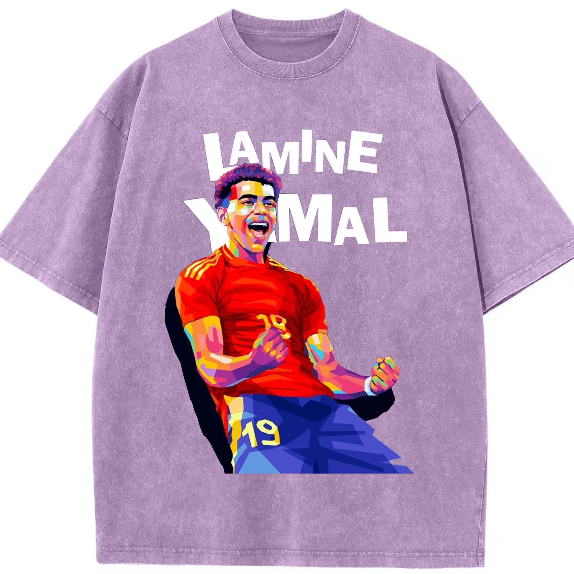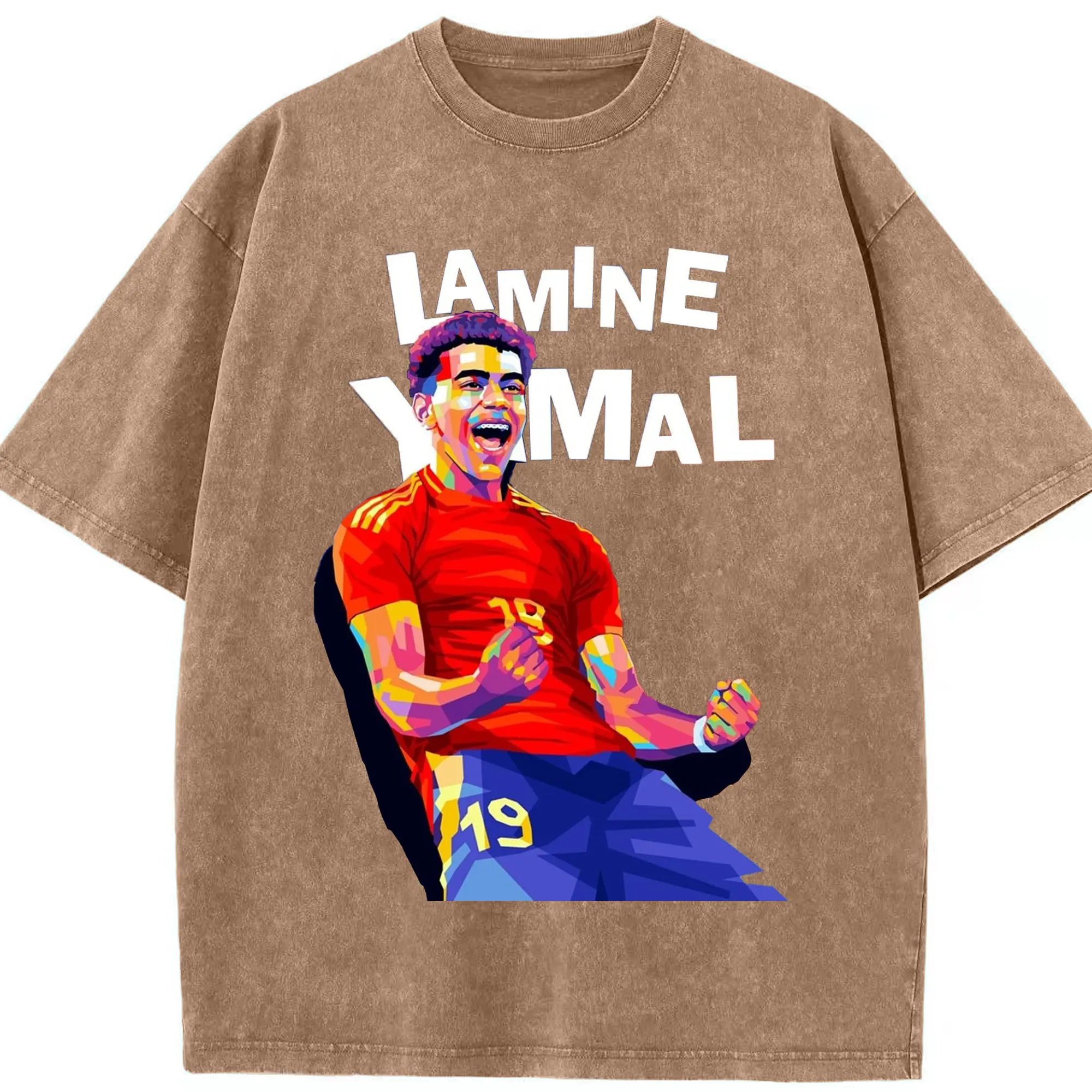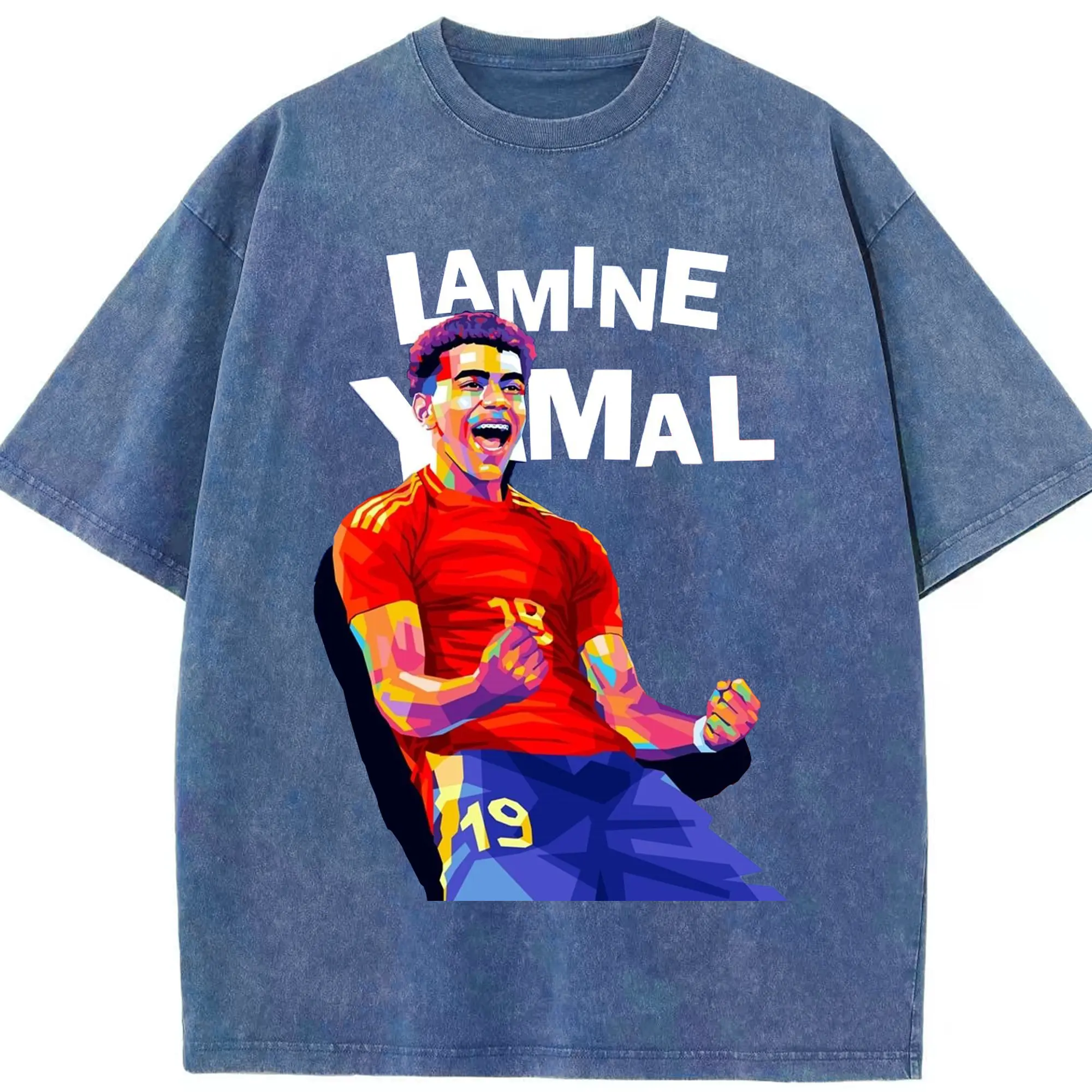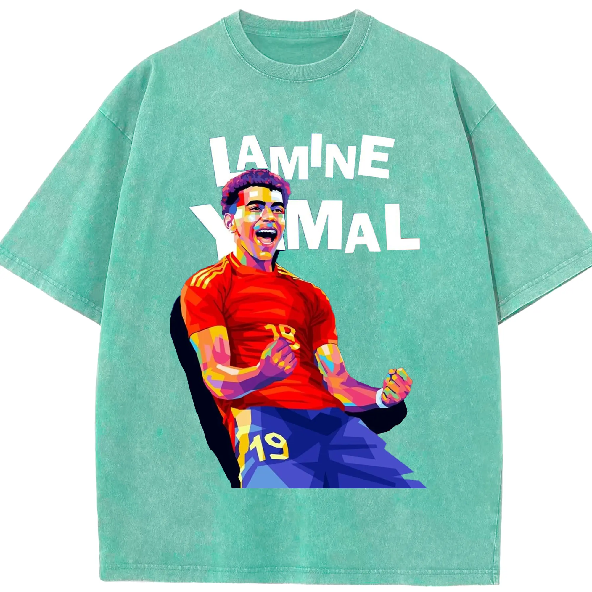 Lamine Yamal Spain National Team Pop Art DIY Shirt - Washed Vintage Look 230g Cotton Oversized T-Shirt With Front Heat Transfer Print – Soft, Lightweight, Stylish Fit – Comfortable Casual Wear For Sports & Everyday Use