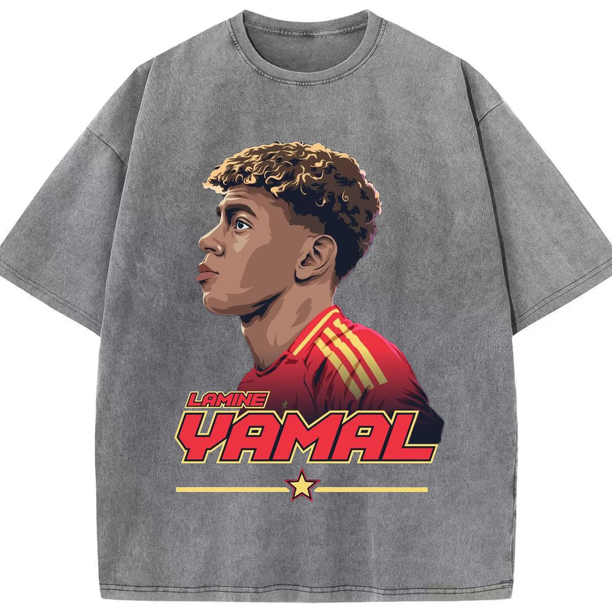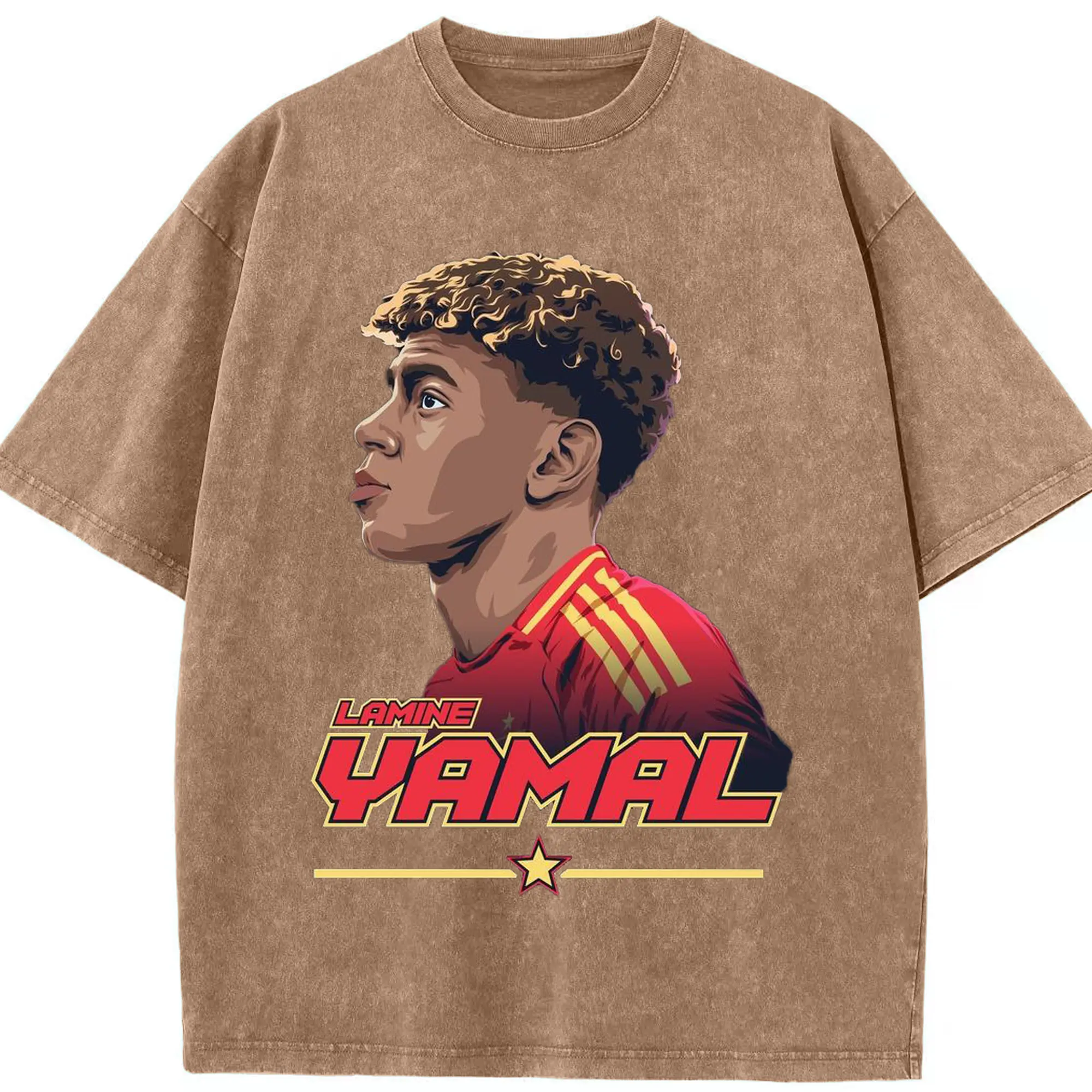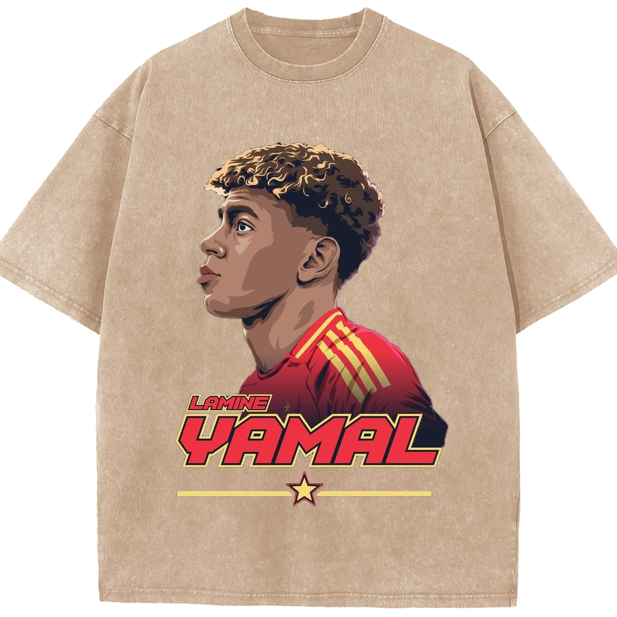Lamine Yamal Spain National Team Soccer Art DIY - Washed Vintage Look 230g Cotton Oversized T-Shirt With Front Heat Transfer Print – Soft, Lightweight, Stylish Fit – Comfortable Casual Wear For Sports & Everyday Use