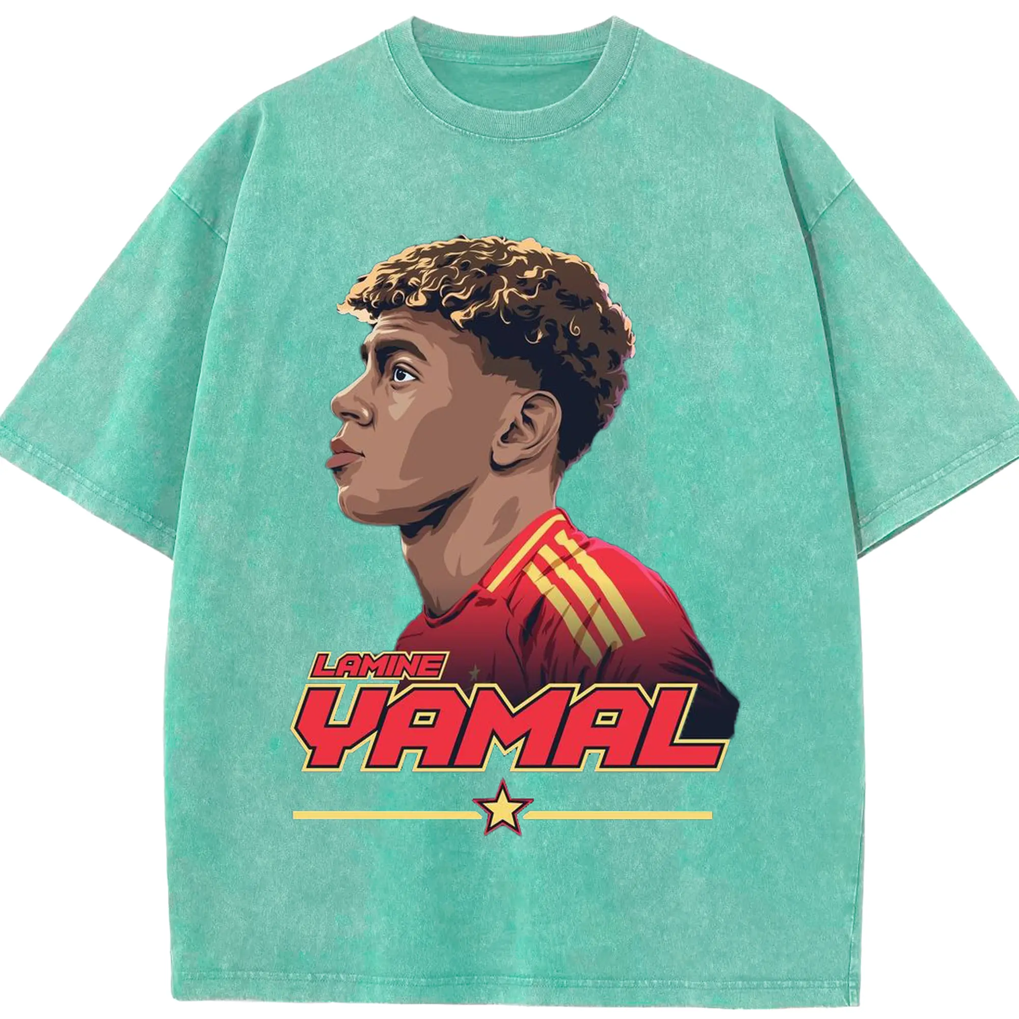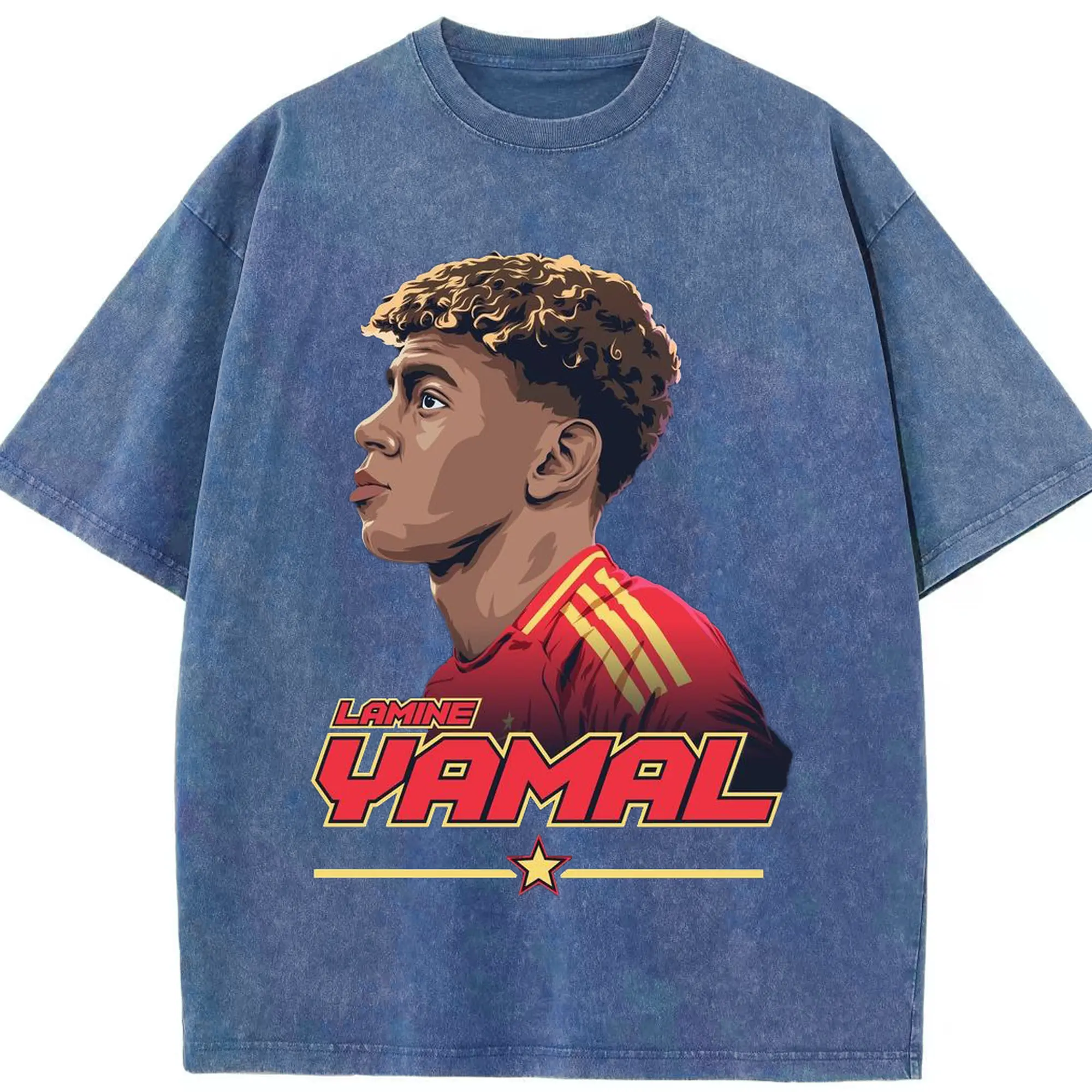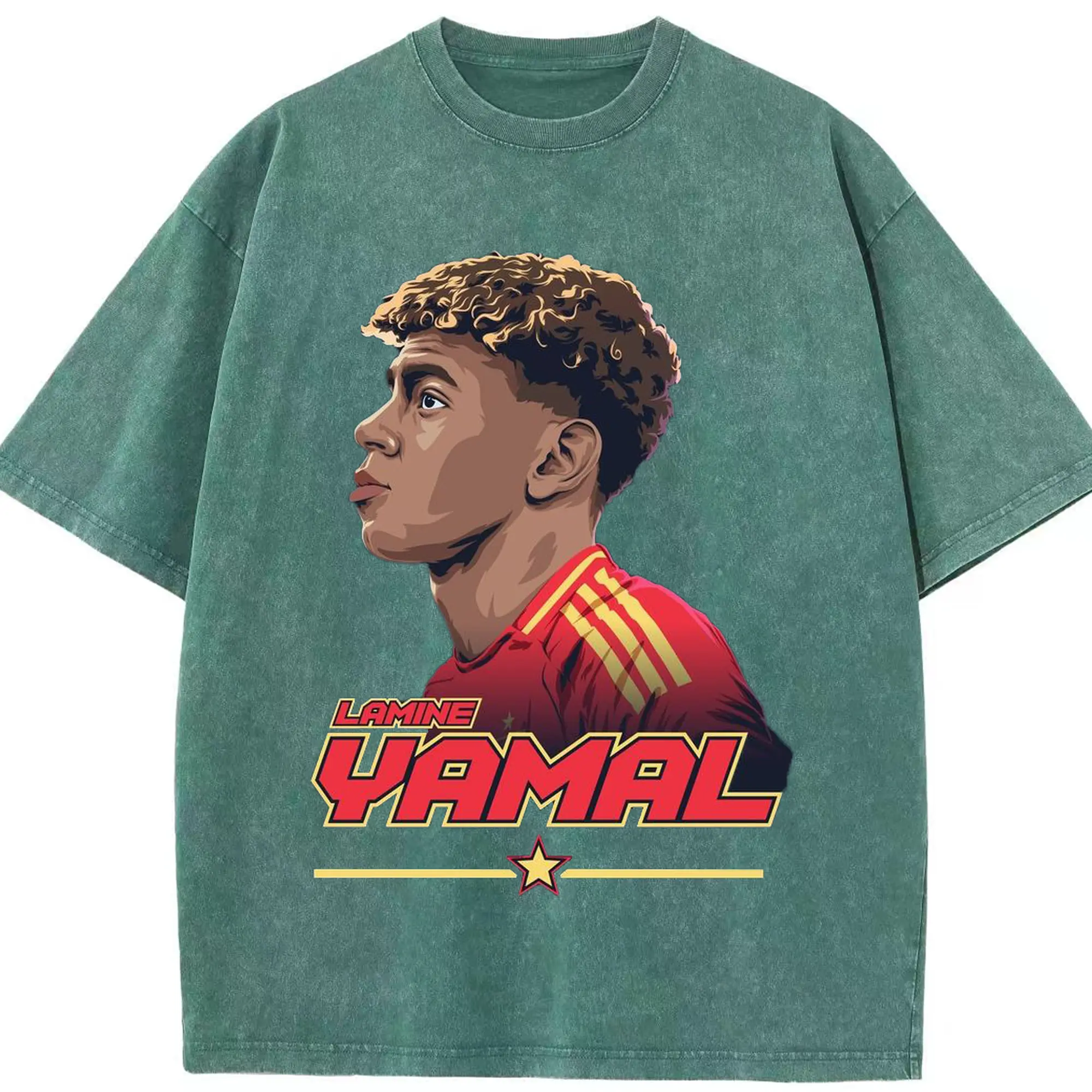Lamine Yamal Spain National Team Soccer Art DIY - Washed Vintage Look 230g Cotton Oversized T-Shirt With Front Heat Transfer Print – Soft, Lightweight, Stylish Fit – Comfortable Casual Wear For Sports & Everyday Use