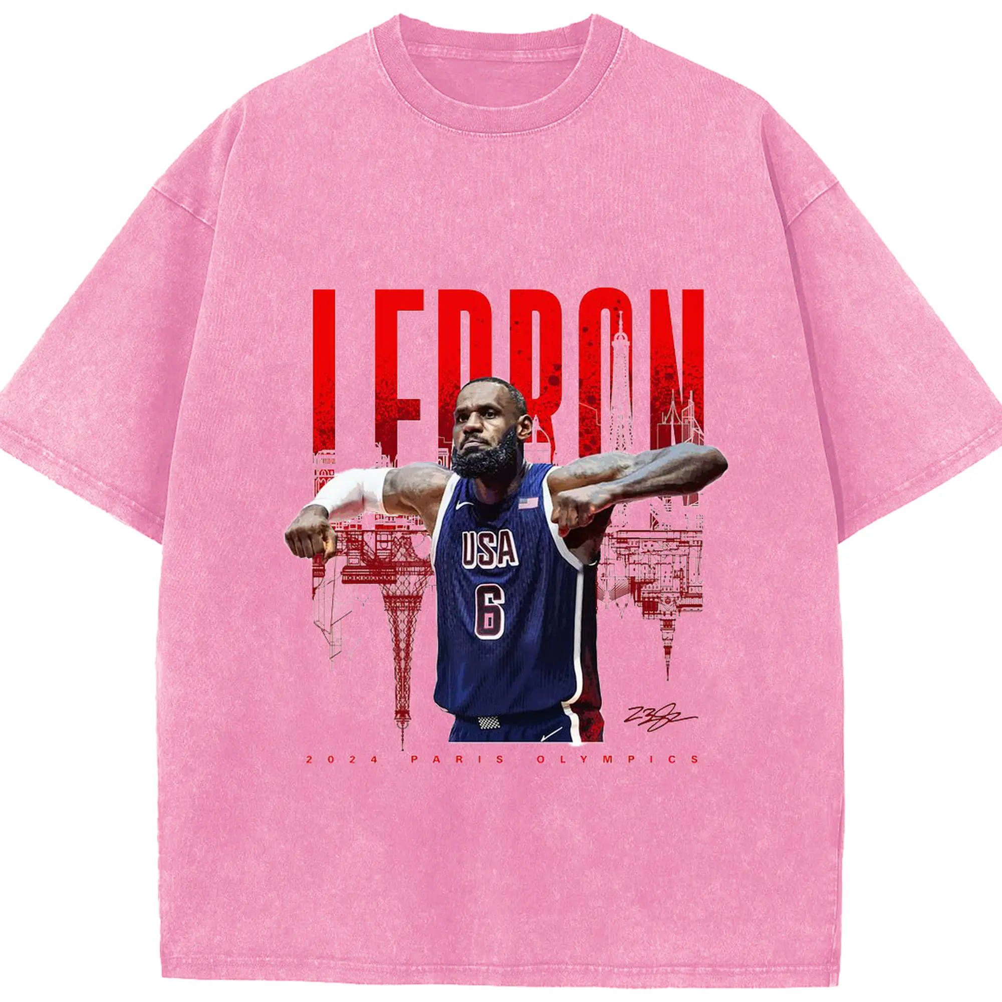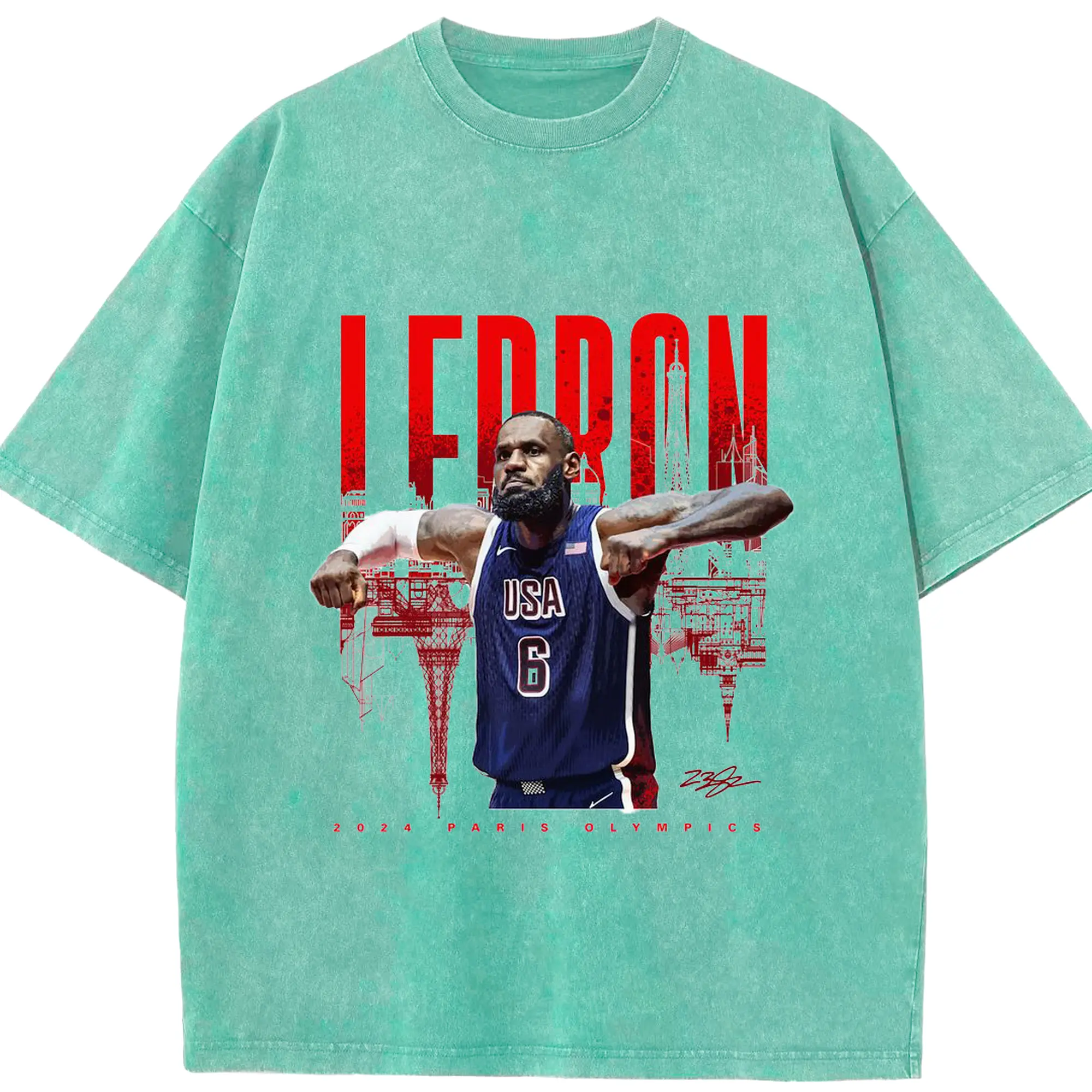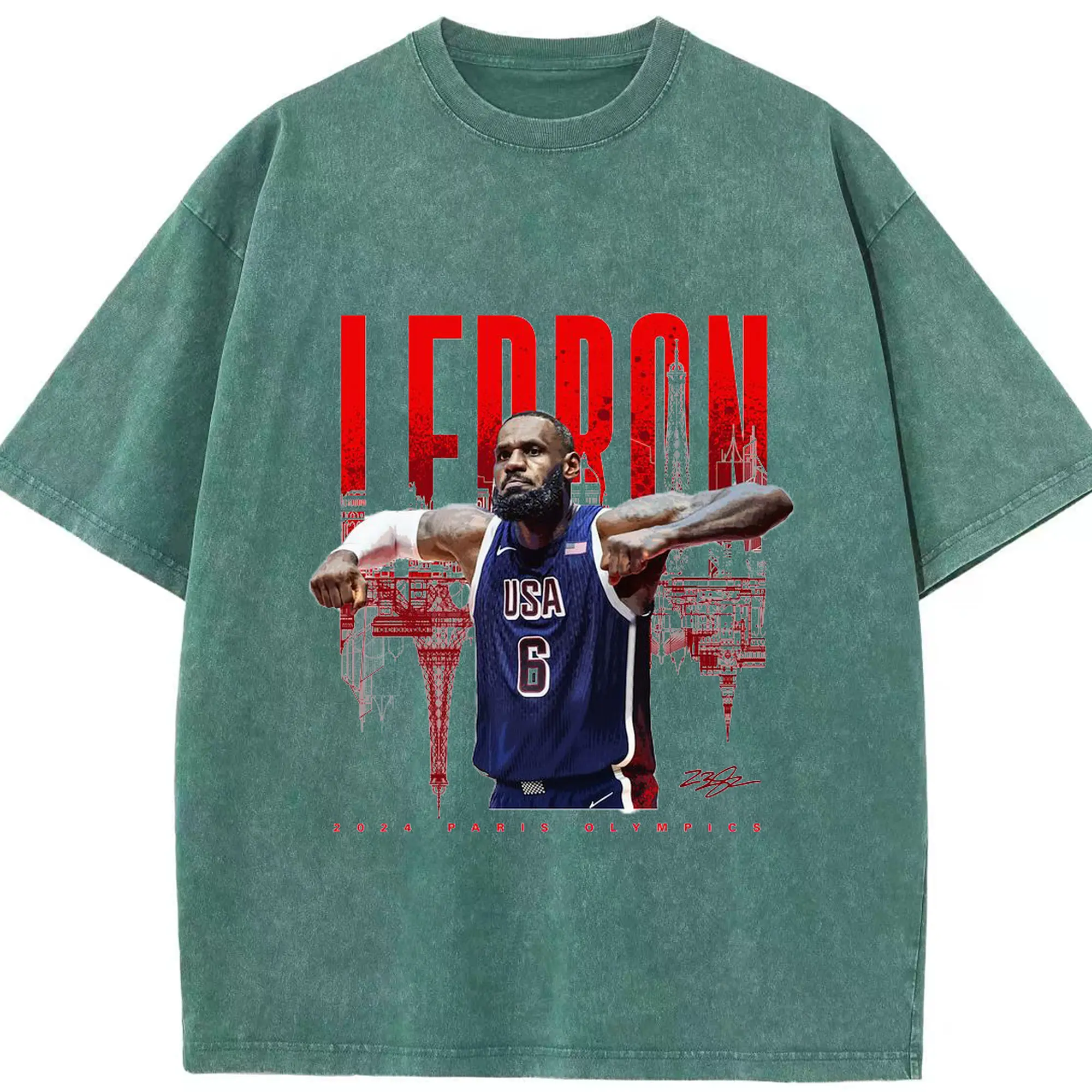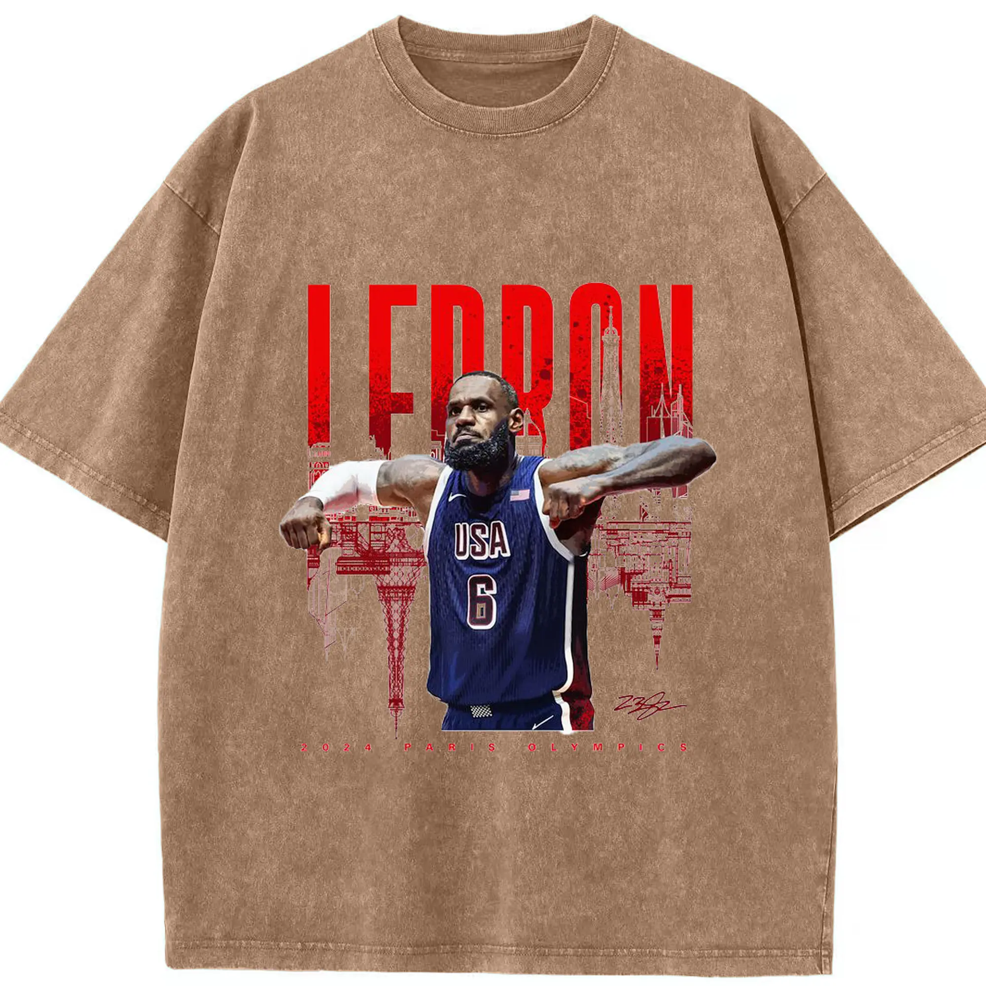 LeBron James 2024 Paris Olympics USA Jersey Shirt - Washed Vintage Look 230g Cotton Oversized T-Shirt With Front Heat Transfer Print – Soft, Lightweight, Stylish Fit – Comfortable Casual Wear For Sports & Everyday Use
