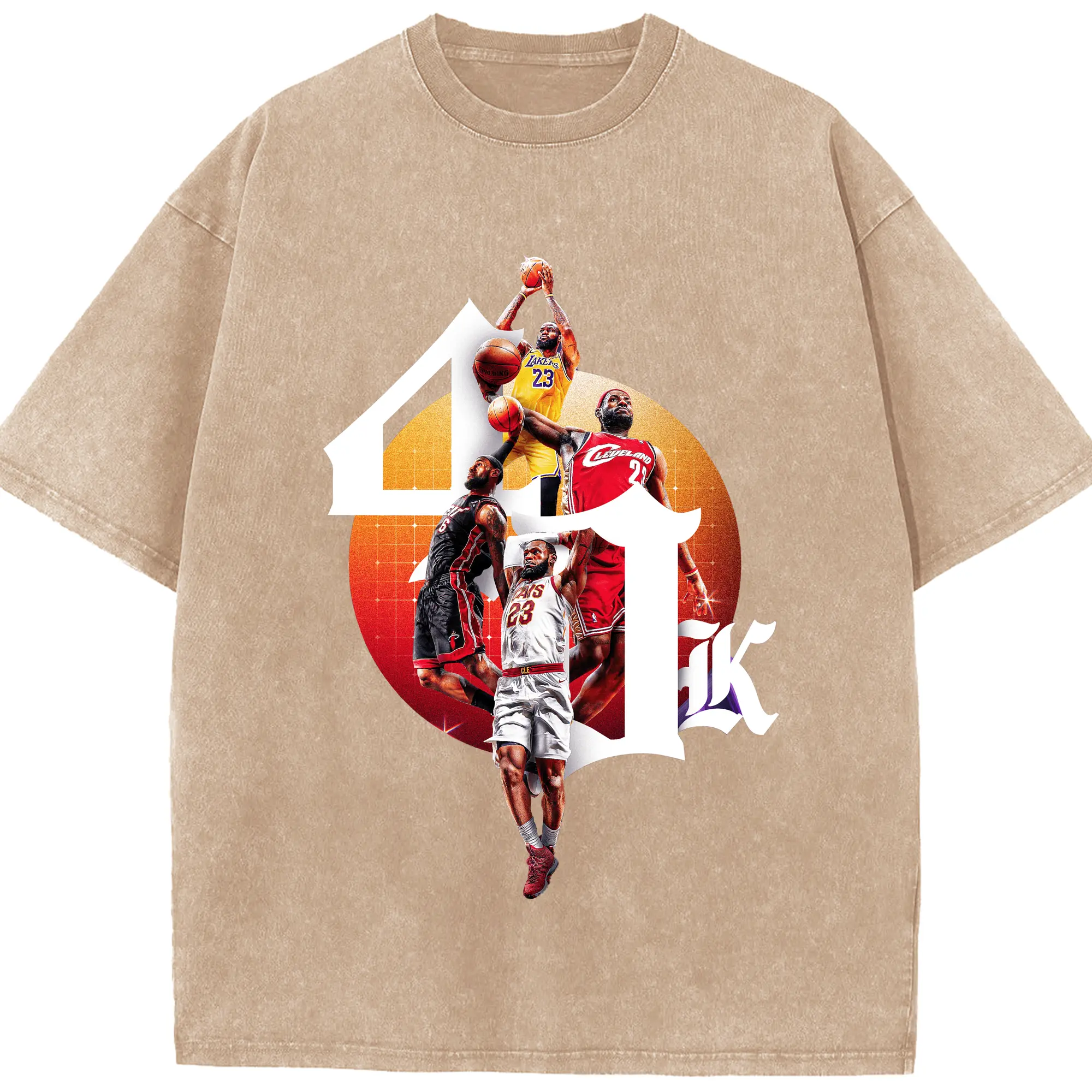 LeBron James 4 teams achieved 40,000 points Shirt - Washed Vintage Look 230g Cotton Oversized T-Shirt With Front Heat Transfer Print – Soft, Lightweight, Stylish Fit – Comfortable Casual Wear For Sports & Everyday Use