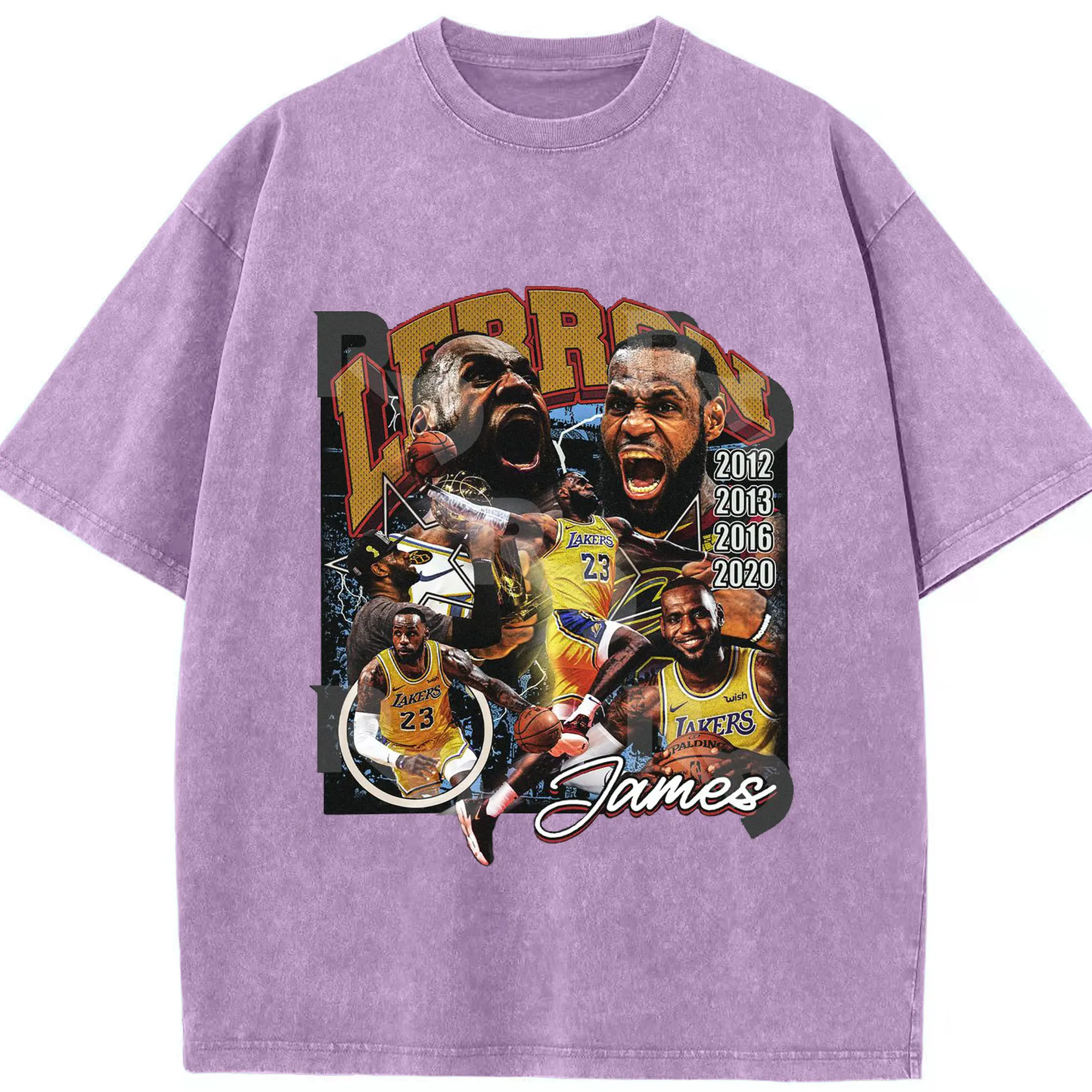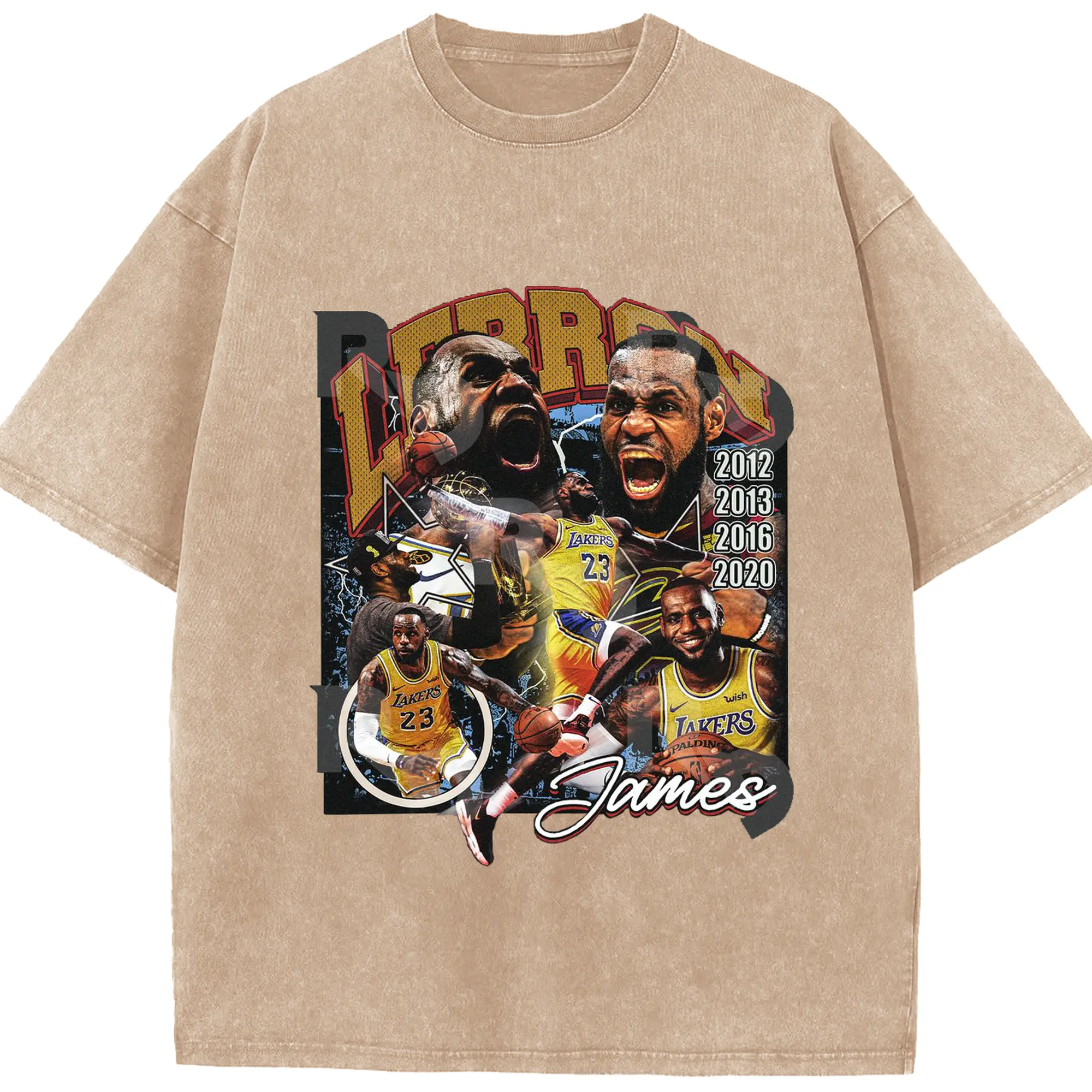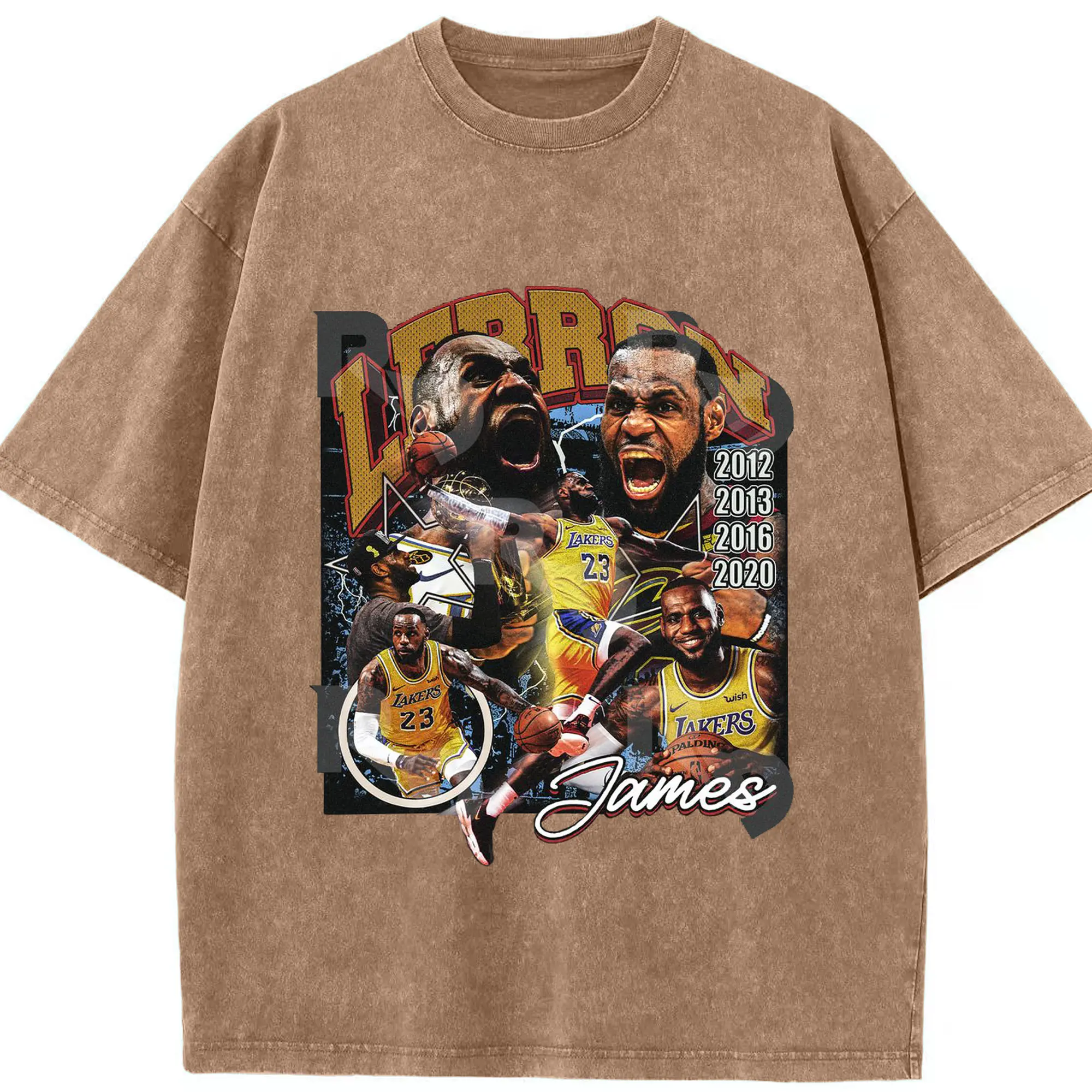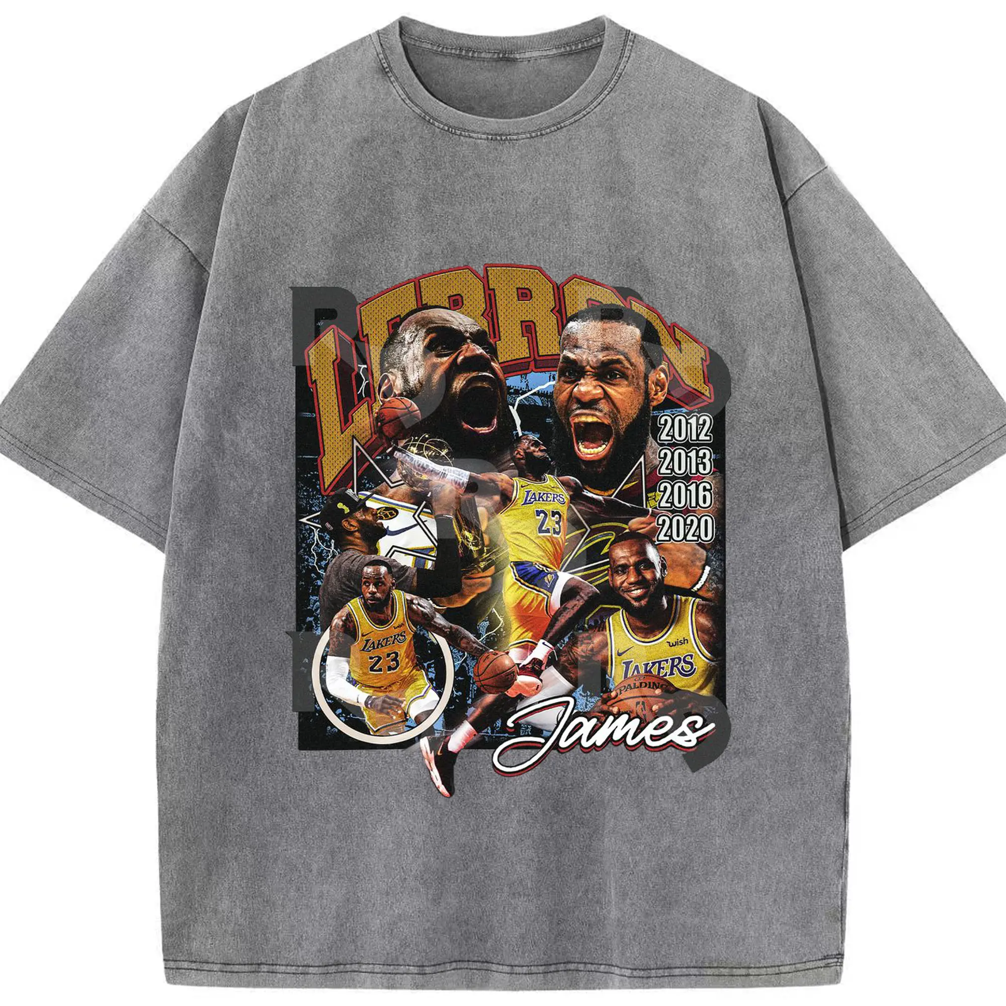 LeBron James Championship Journey Shirt - Washed Vintage Look 230g Cotton Oversized T-Shirt With Front Heat Transfer Print – Soft, Lightweight, Stylish Fit – Comfortable Casual Wear For Sports & Everyday Use