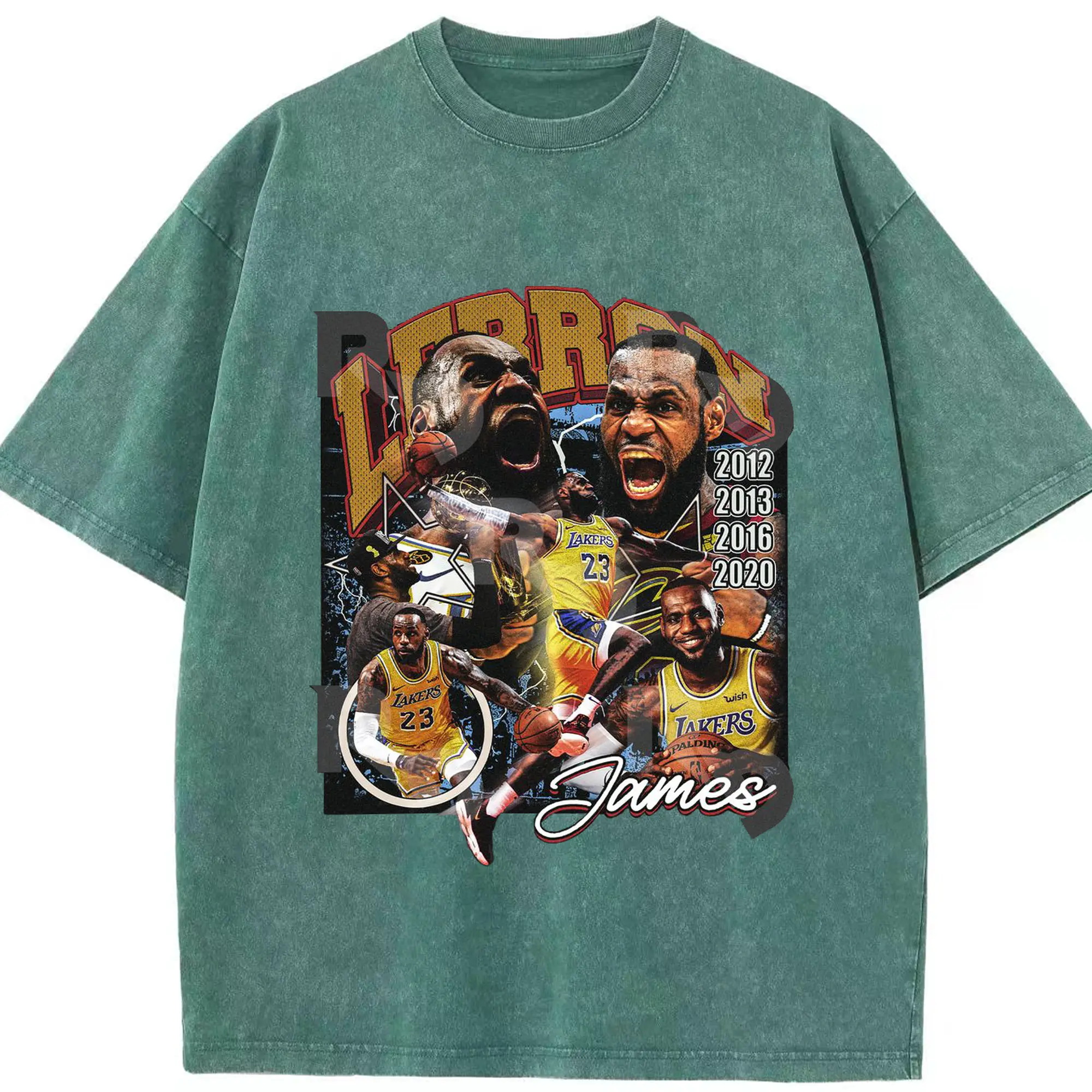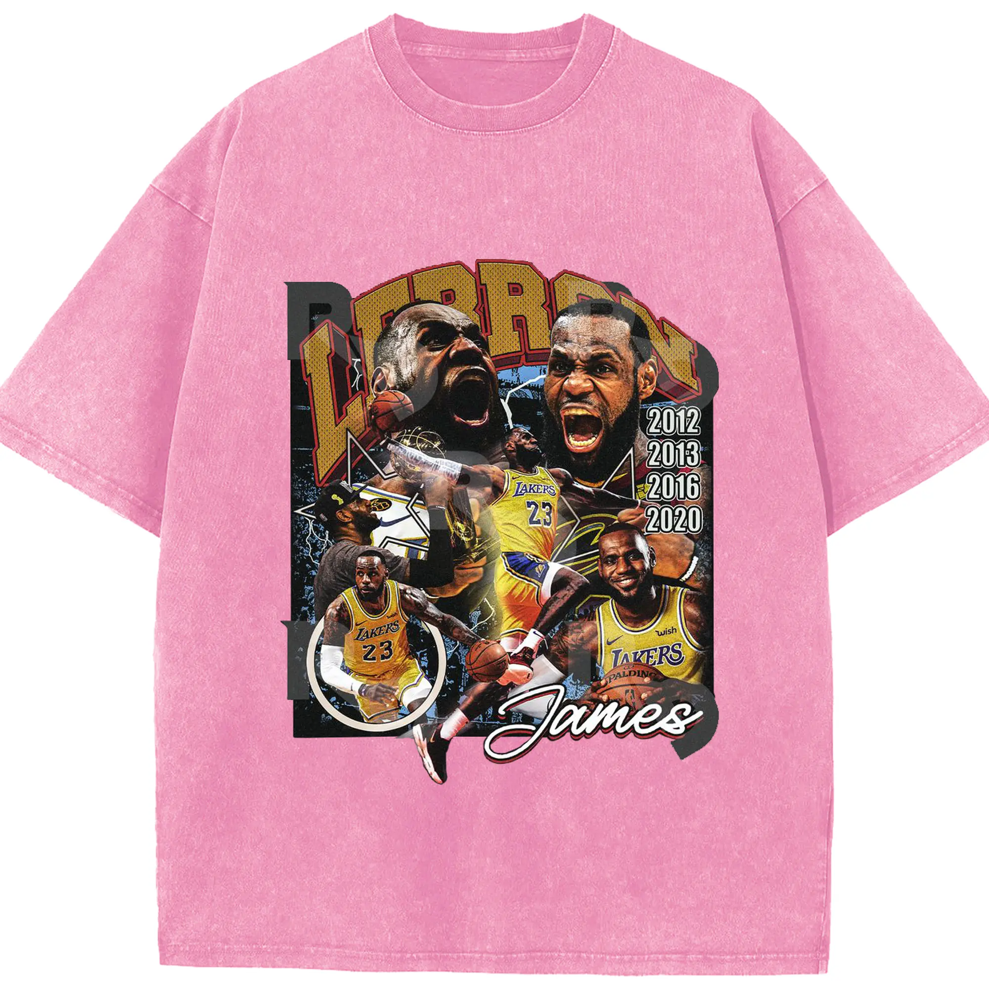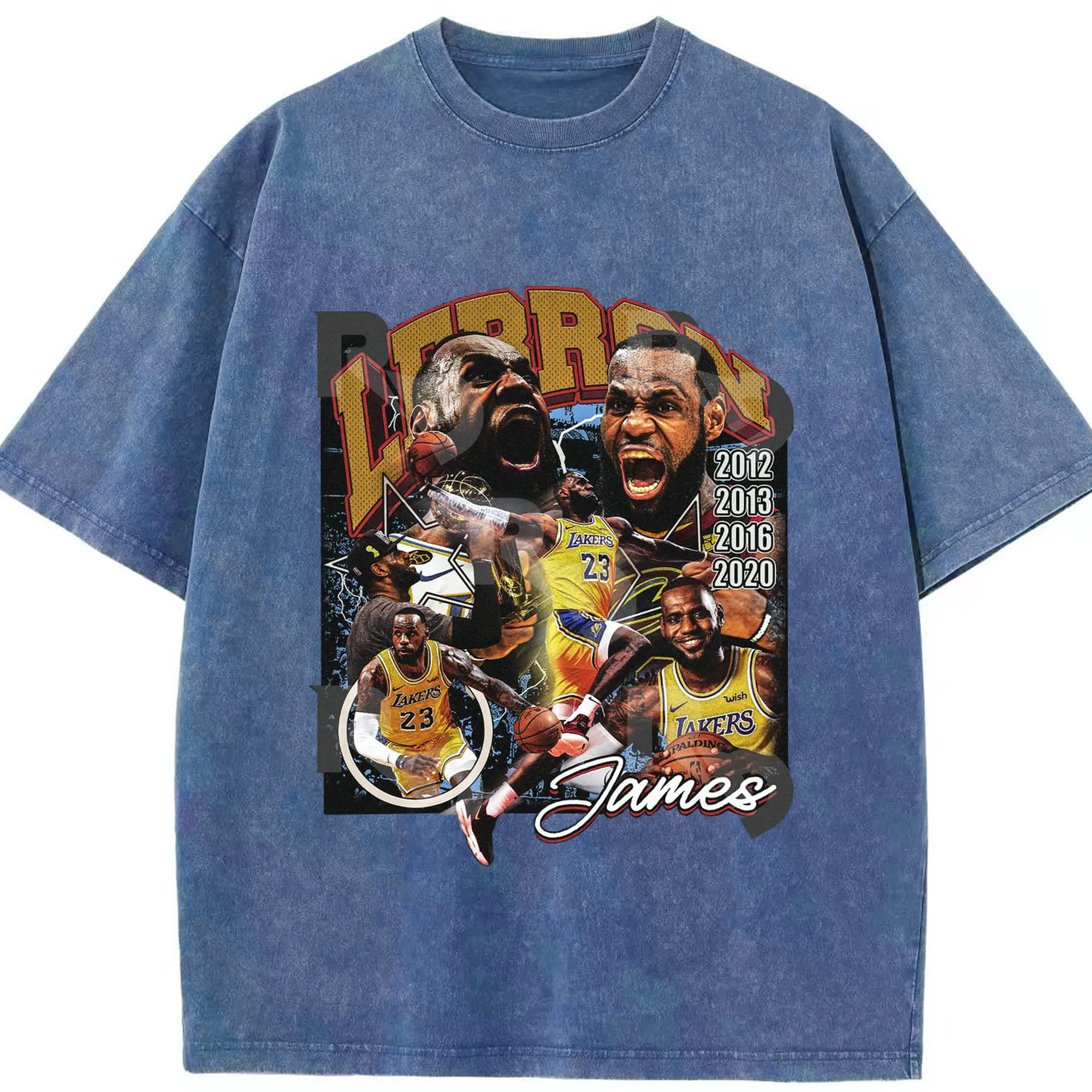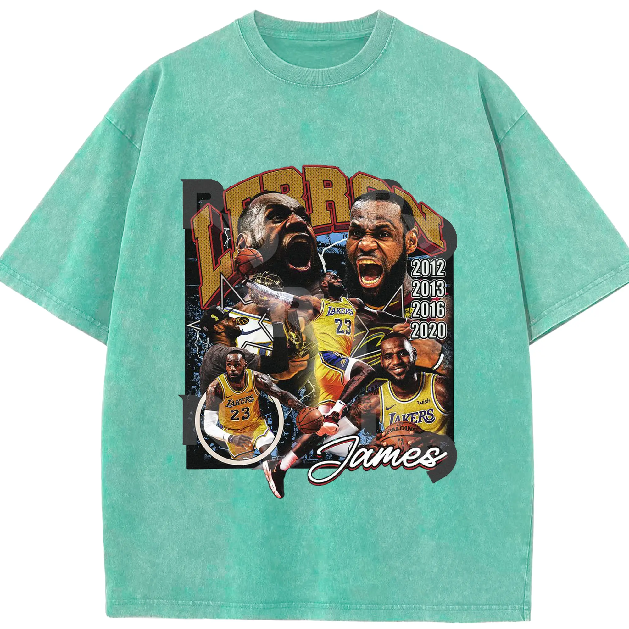 LeBron James Championship Journey Shirt - Washed Vintage Look 230g Cotton Oversized T-Shirt With Front Heat Transfer Print – Soft, Lightweight, Stylish Fit – Comfortable Casual Wear For Sports & Everyday Use