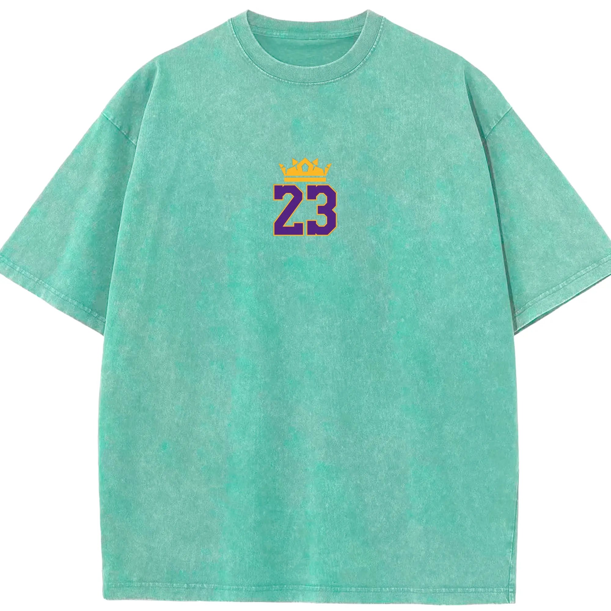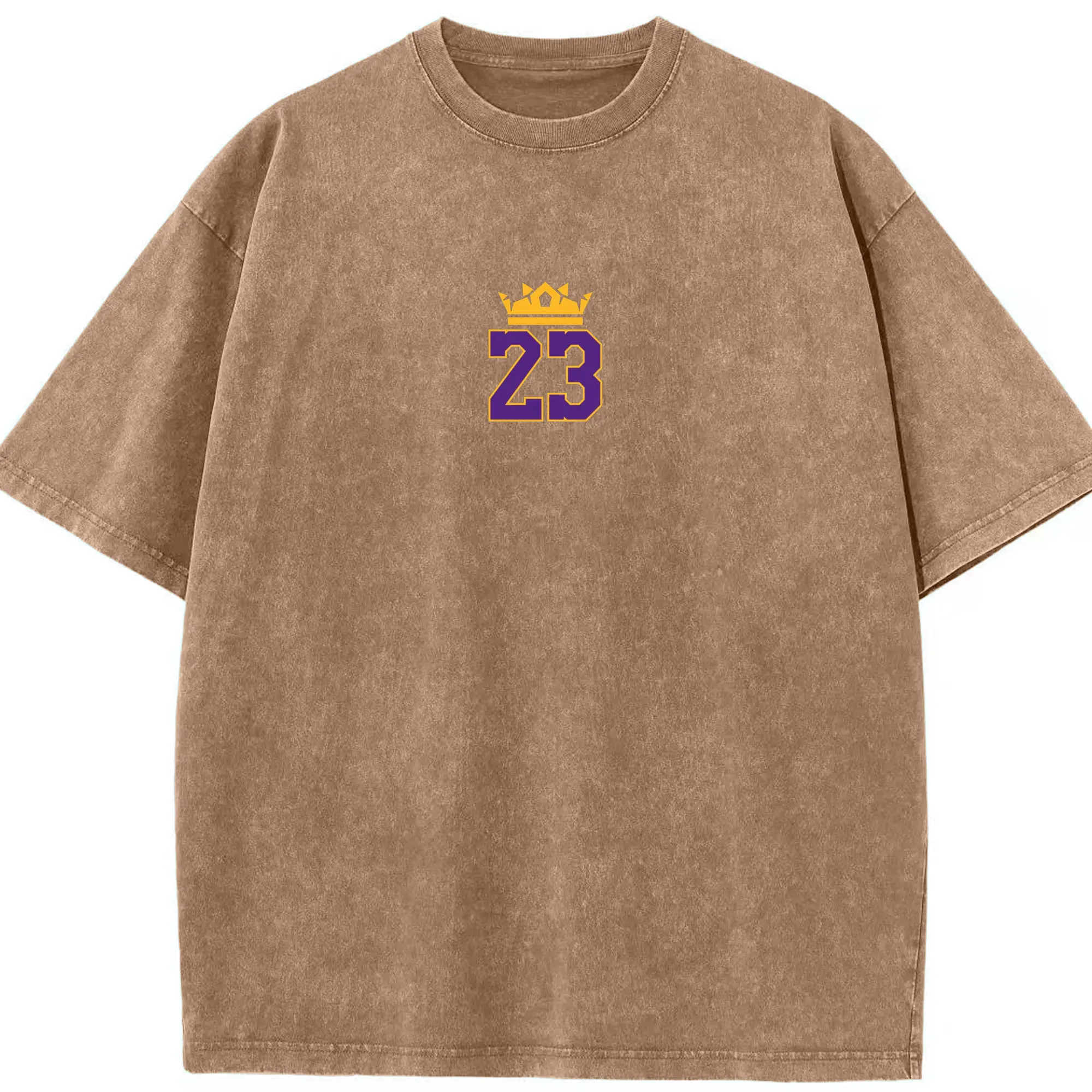 LeBron James crown&23 Logo Shirt - Washed Vintage Look 230g Cotton Oversized T-Shirt With Front Heat Transfer Print – Soft, Lightweight, Stylish Fit – Comfortable Casual Wear For Sports & Everyday Use