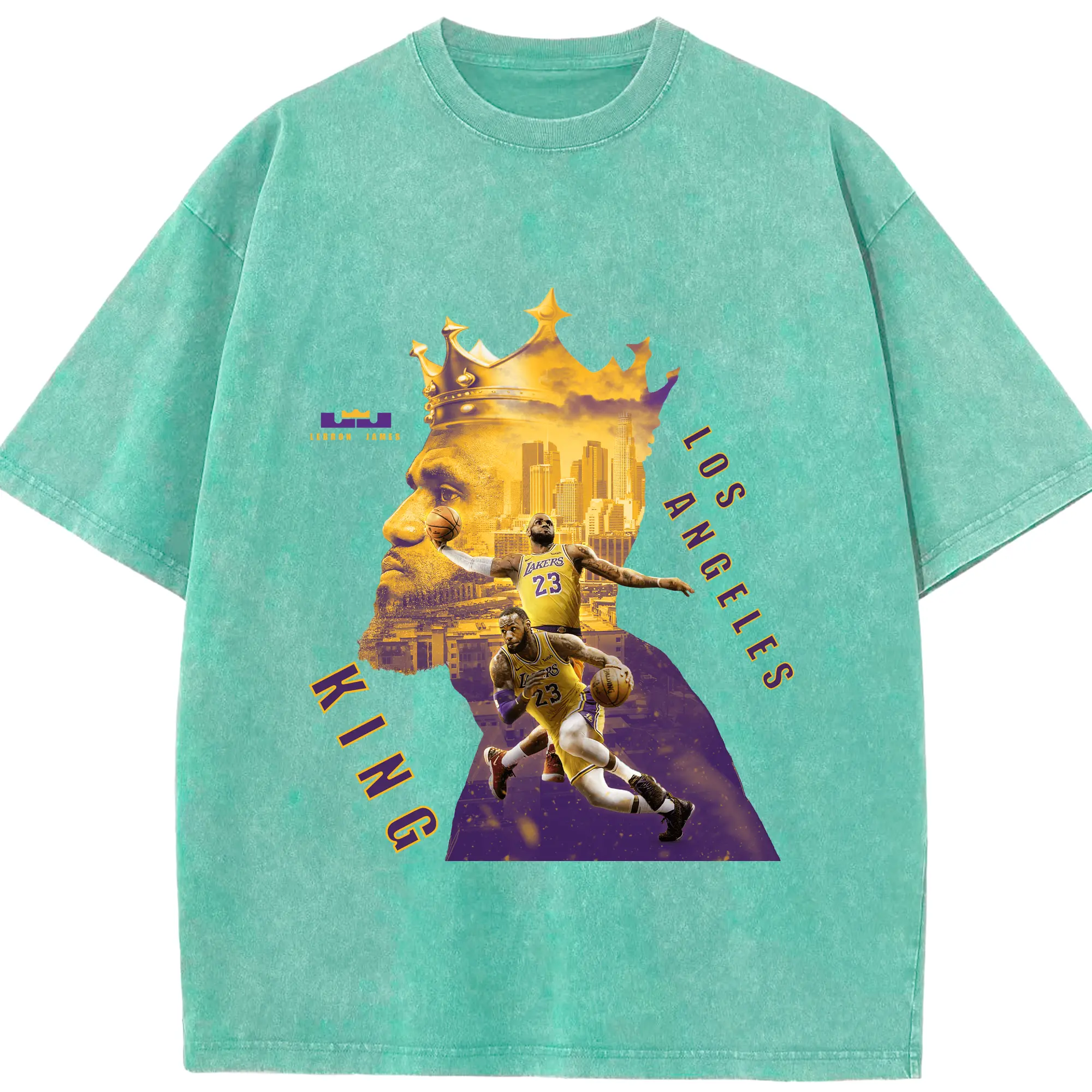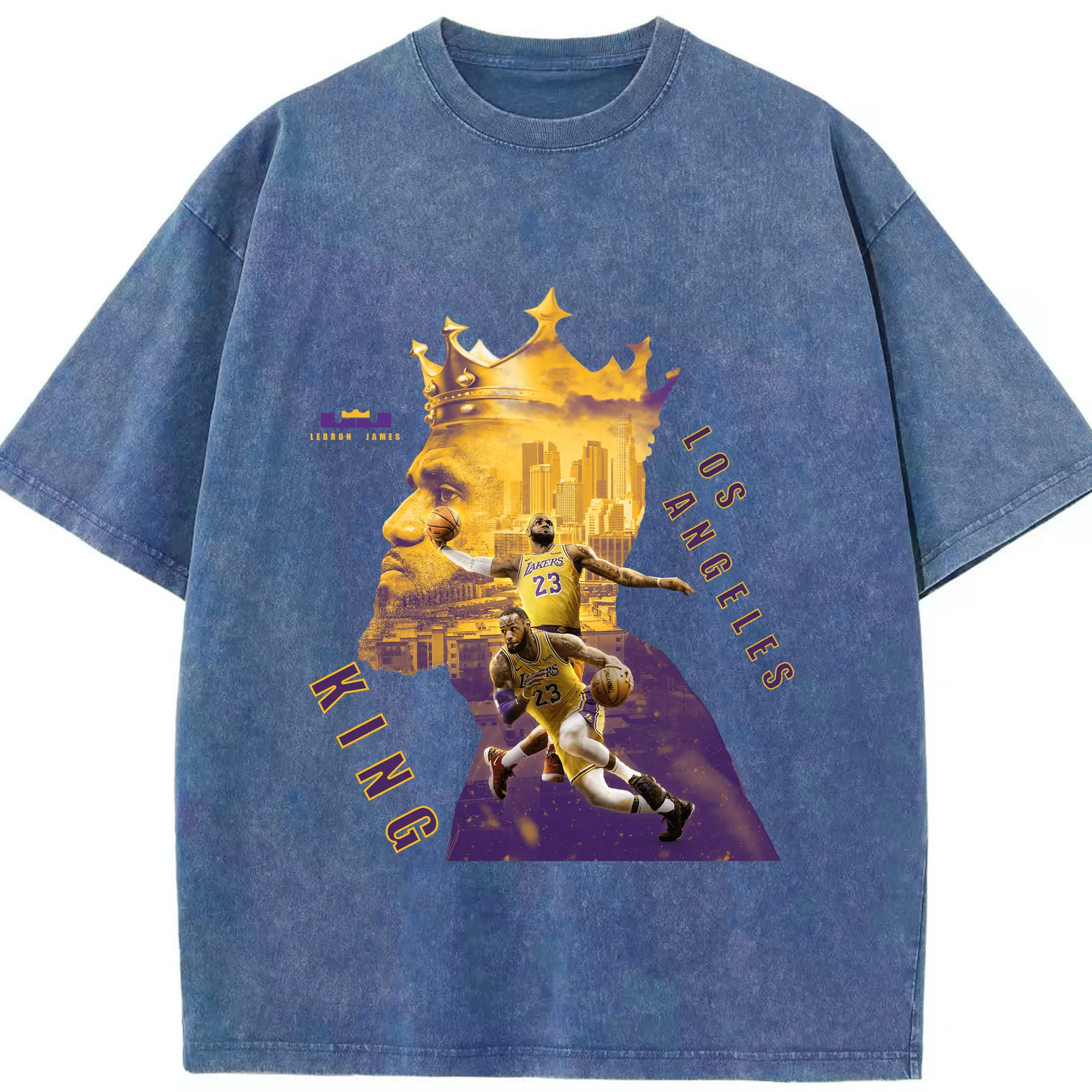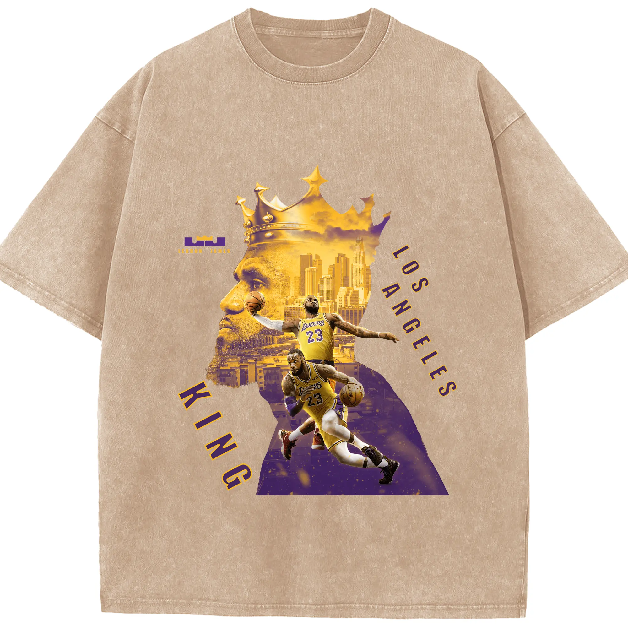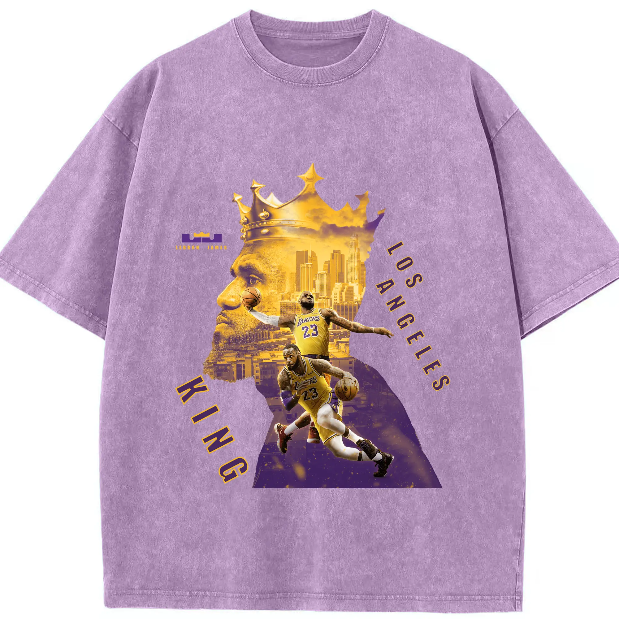 LeBron James Los Angeles Lakers King Graphic Shirt - Washed Vintage Look 230g Cotton Oversized T-Shirt With Front Heat Transfer Print – Soft, Lightweight, Stylish Fit – Comfortable Casual Wear For Sports & Everyday Use