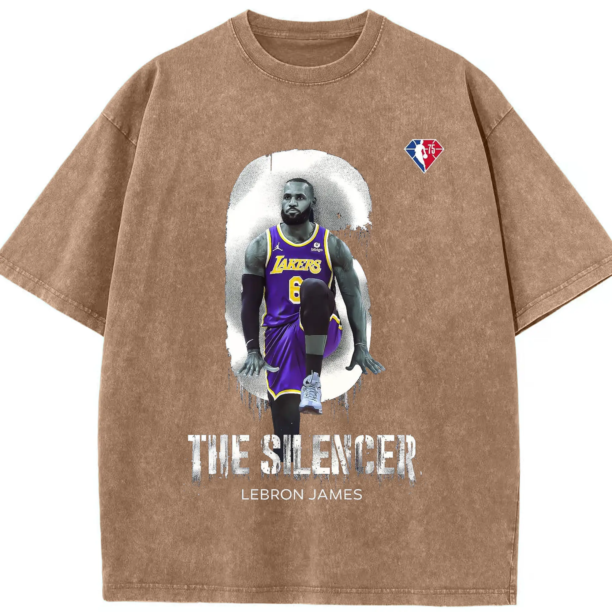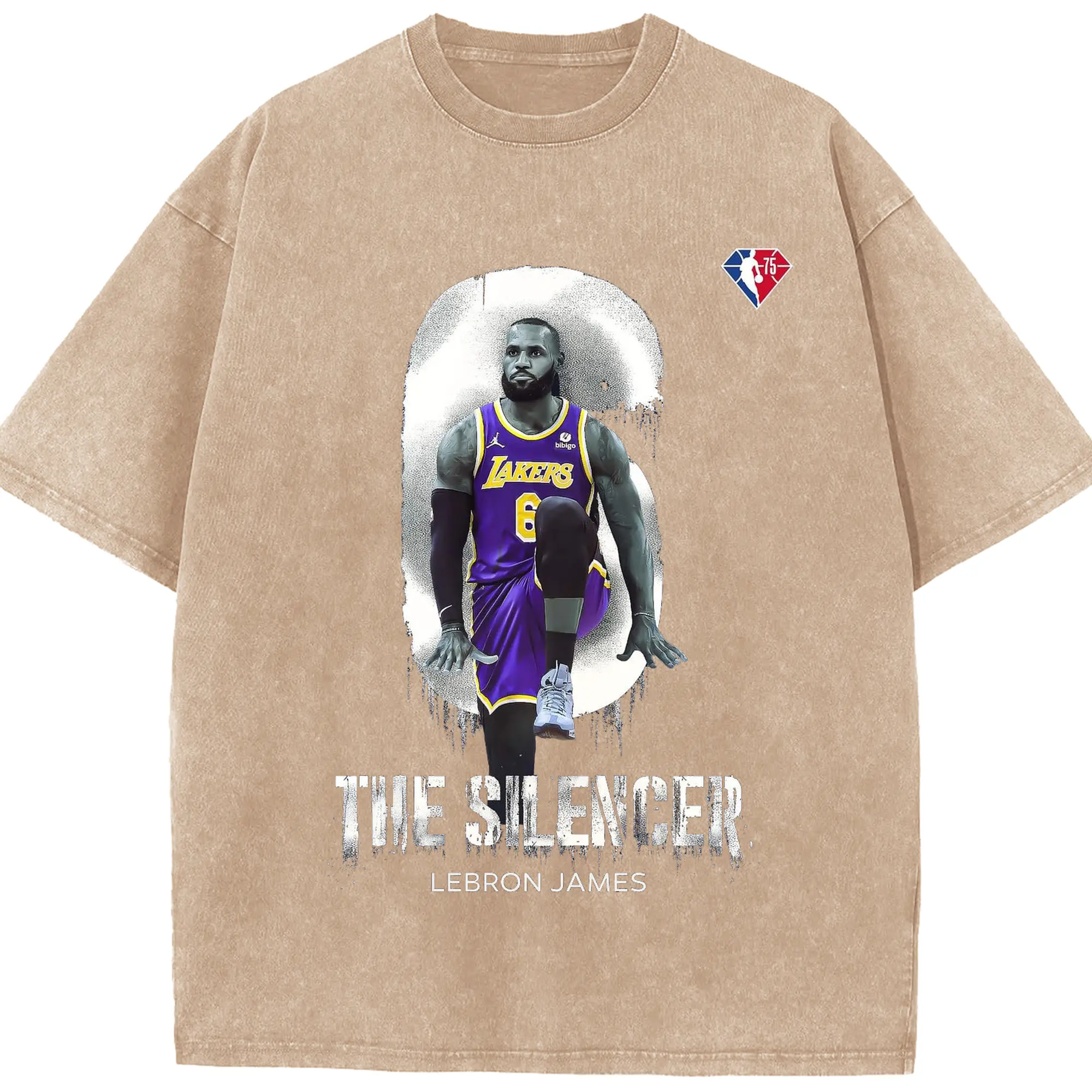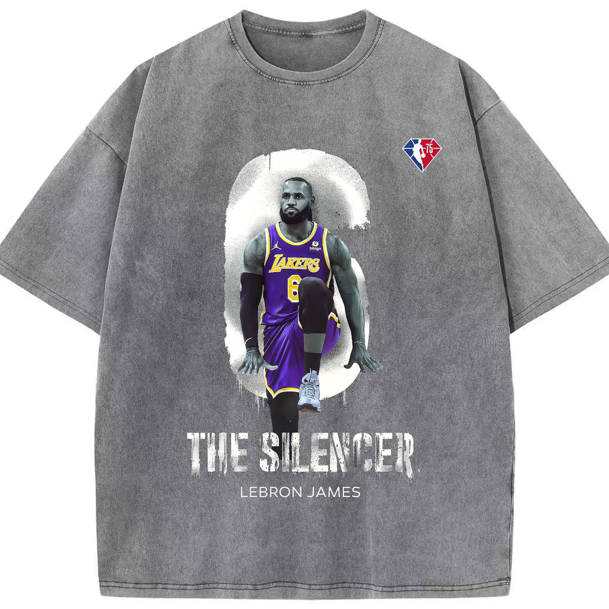 LeBron James "The Silencer" 75 Superstars Graphic Shirt - Washed Vintage Look 230g Cotton Oversized T-Shirt With Front Heat Transfer Print – Soft, Lightweight, Stylish Fit – Comfortable Casual Wear For Sports & Everyday Use