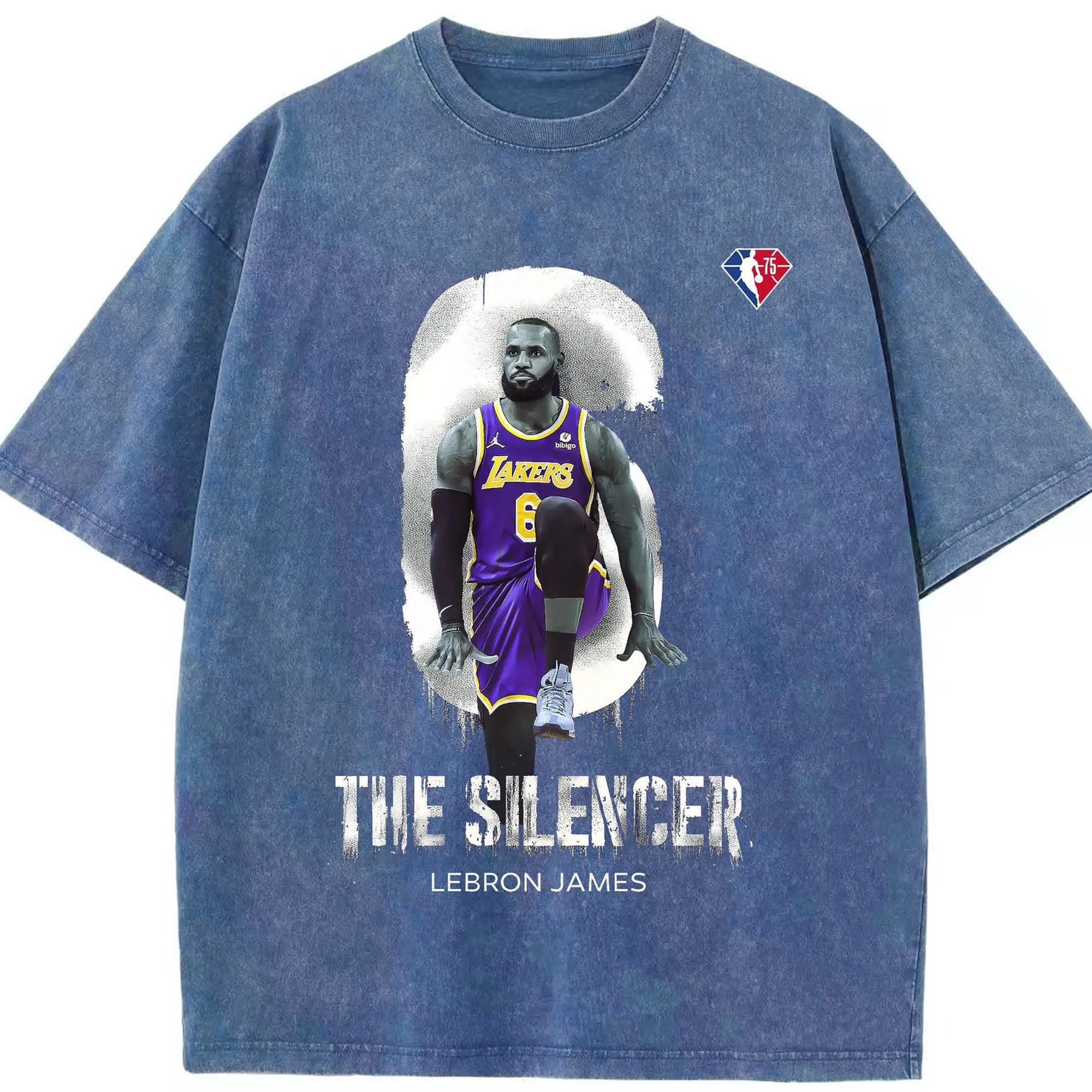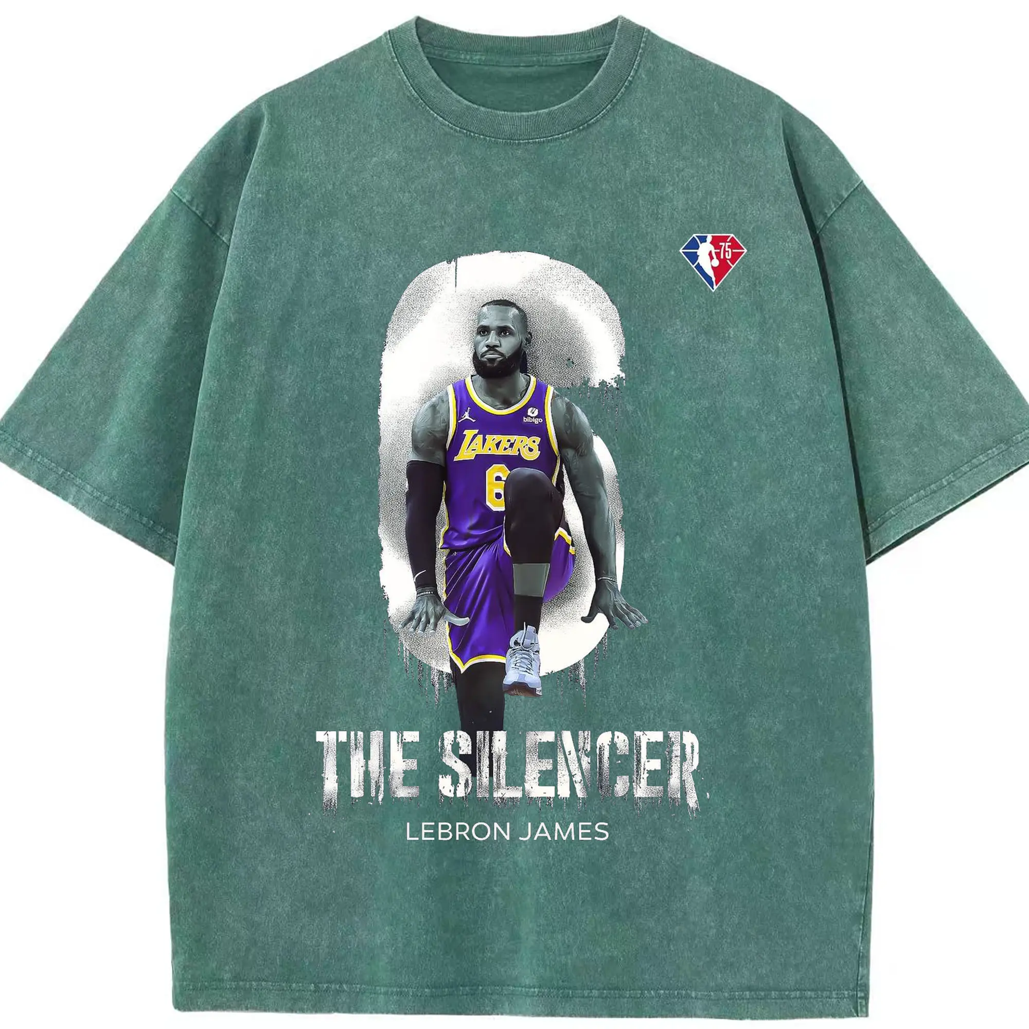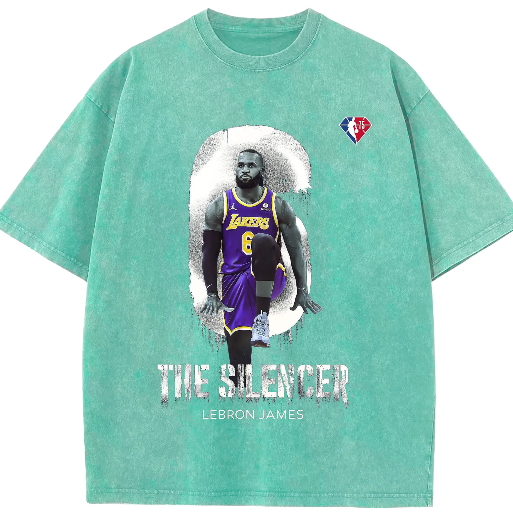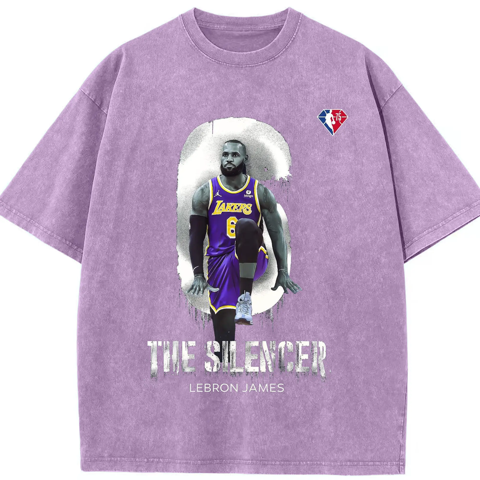 LeBron James "The Silencer" 75 Superstars Graphic Shirt - Washed Vintage Look 230g Cotton Oversized T-Shirt With Front Heat Transfer Print – Soft, Lightweight, Stylish Fit – Comfortable Casual Wear For Sports & Everyday Use