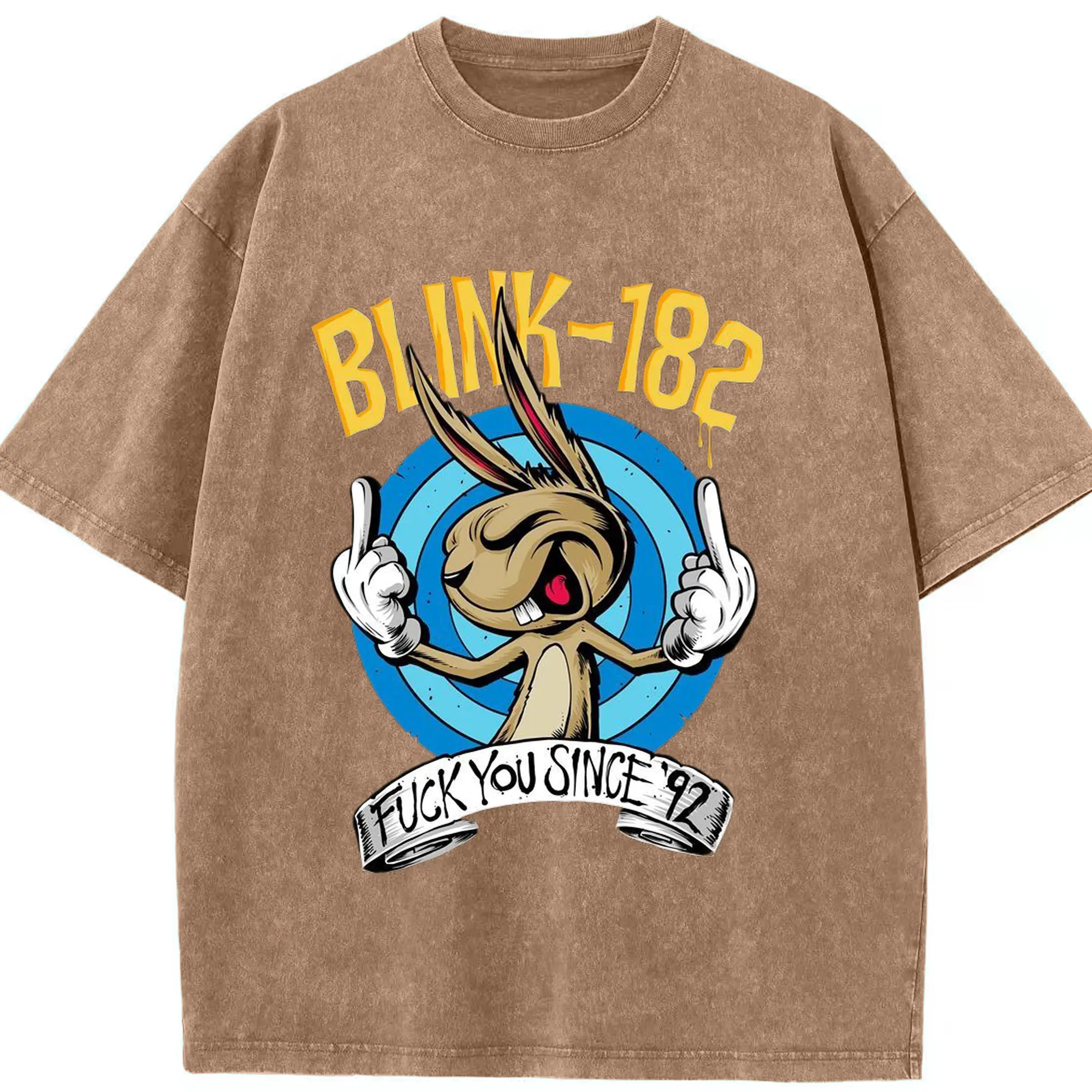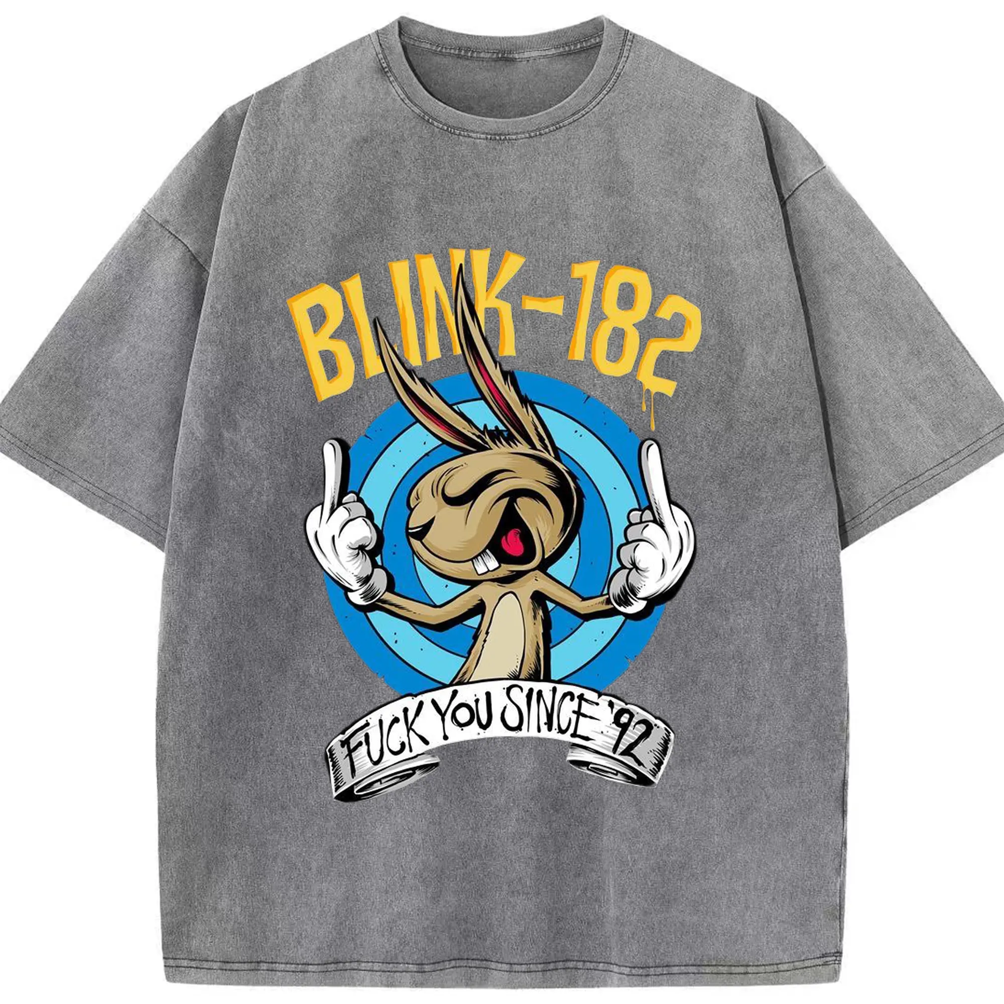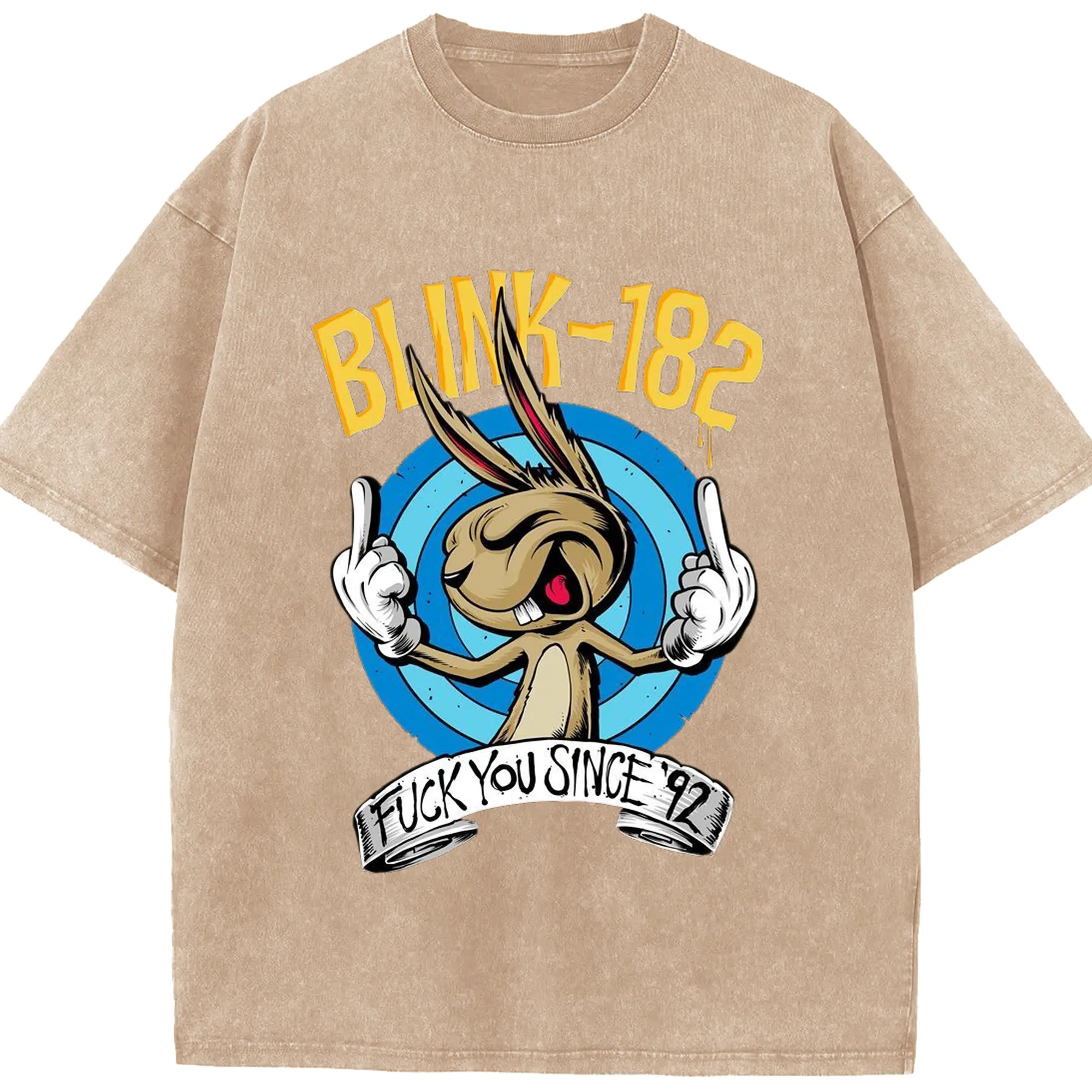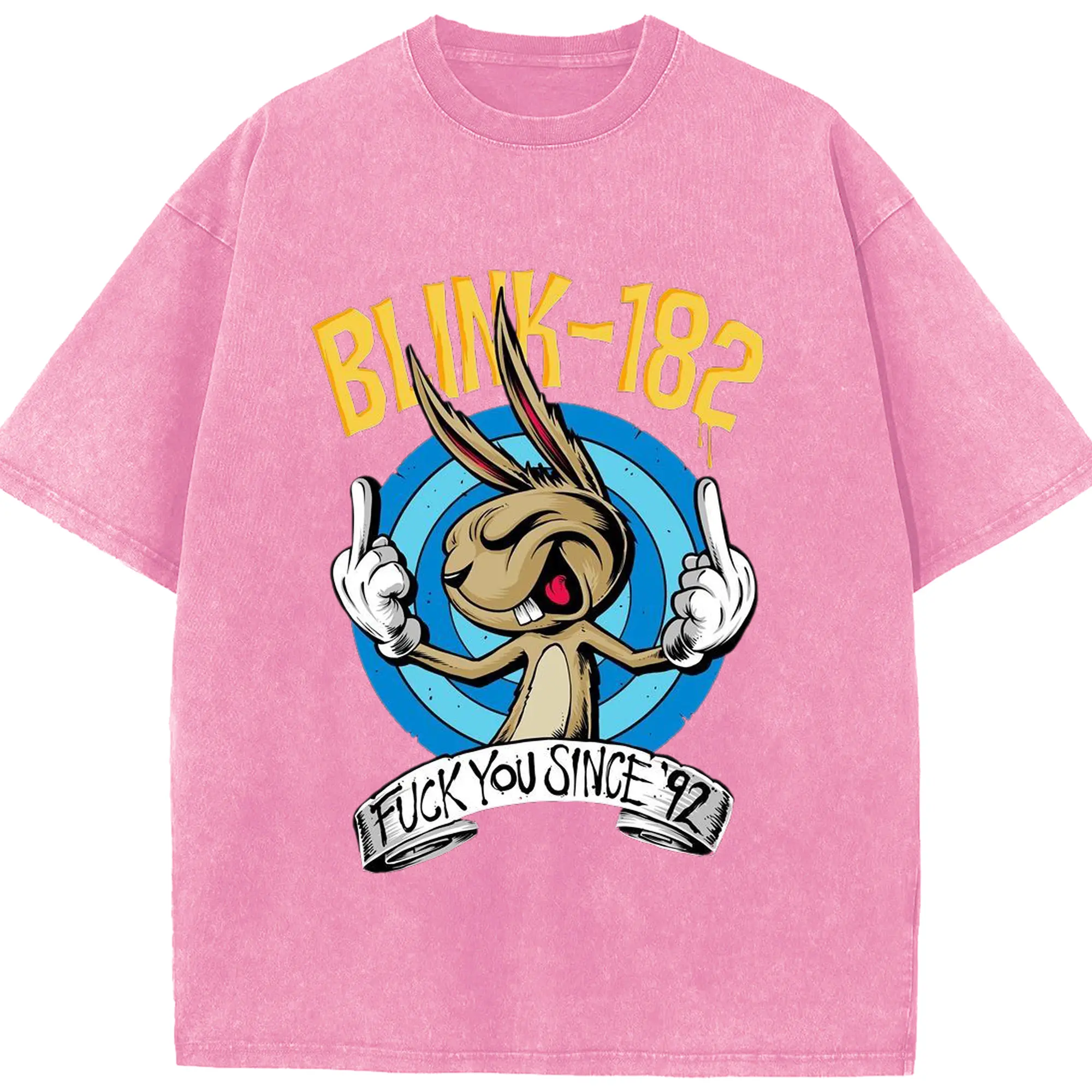Link-182 Punk Rock Rebel Bunny DIY - Washed Vintage Look 230g Cotton Oversized T-Shirt With Front Heat Transfer Print – Soft, Lightweight, Stylish Fit – Comfortable Casual Wear For Sports & Everyday Use