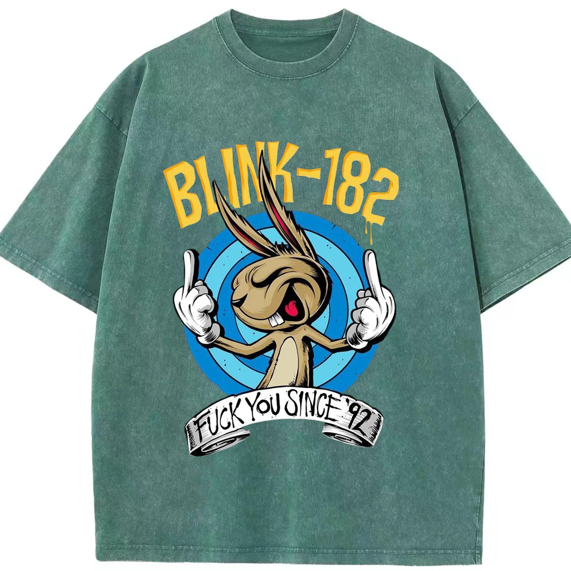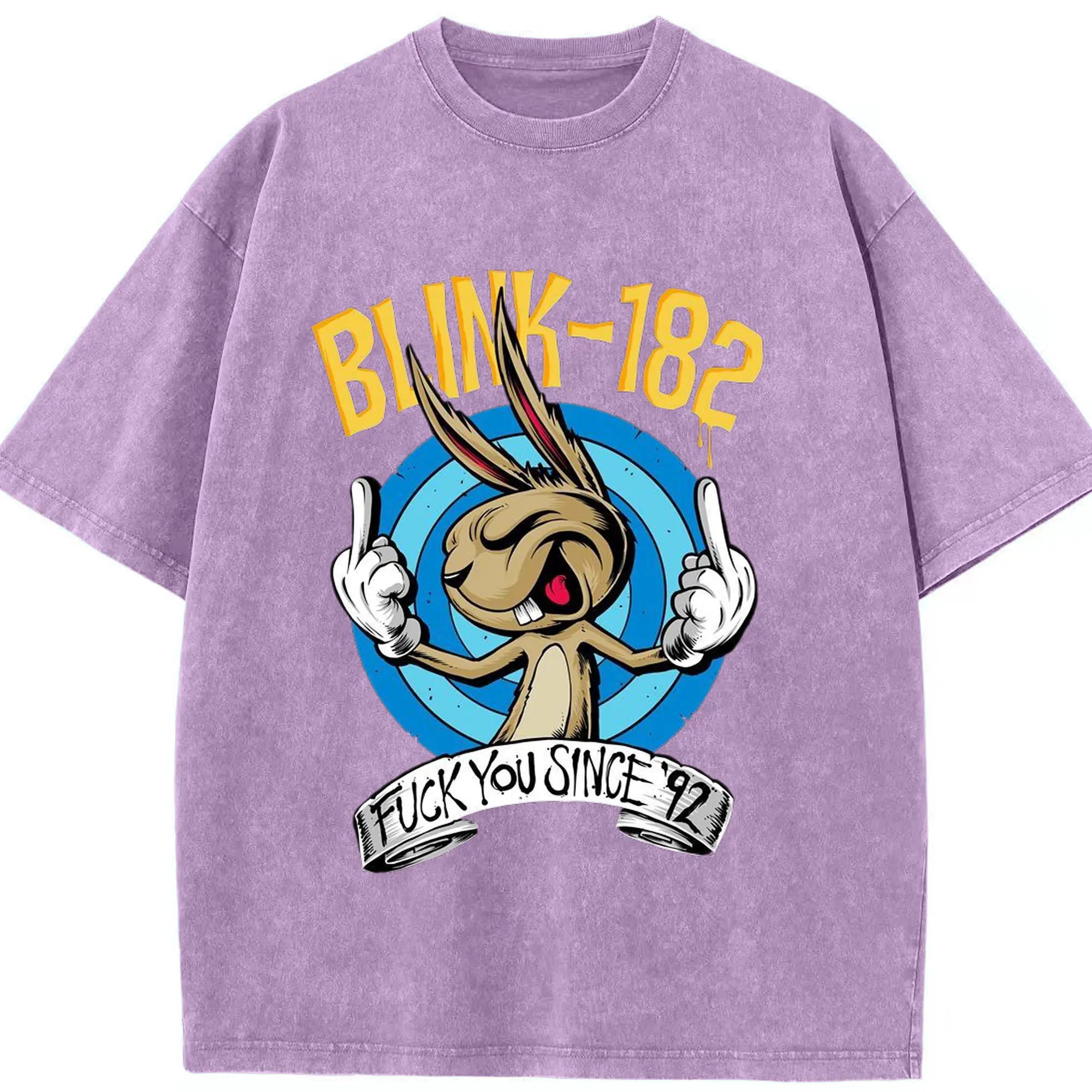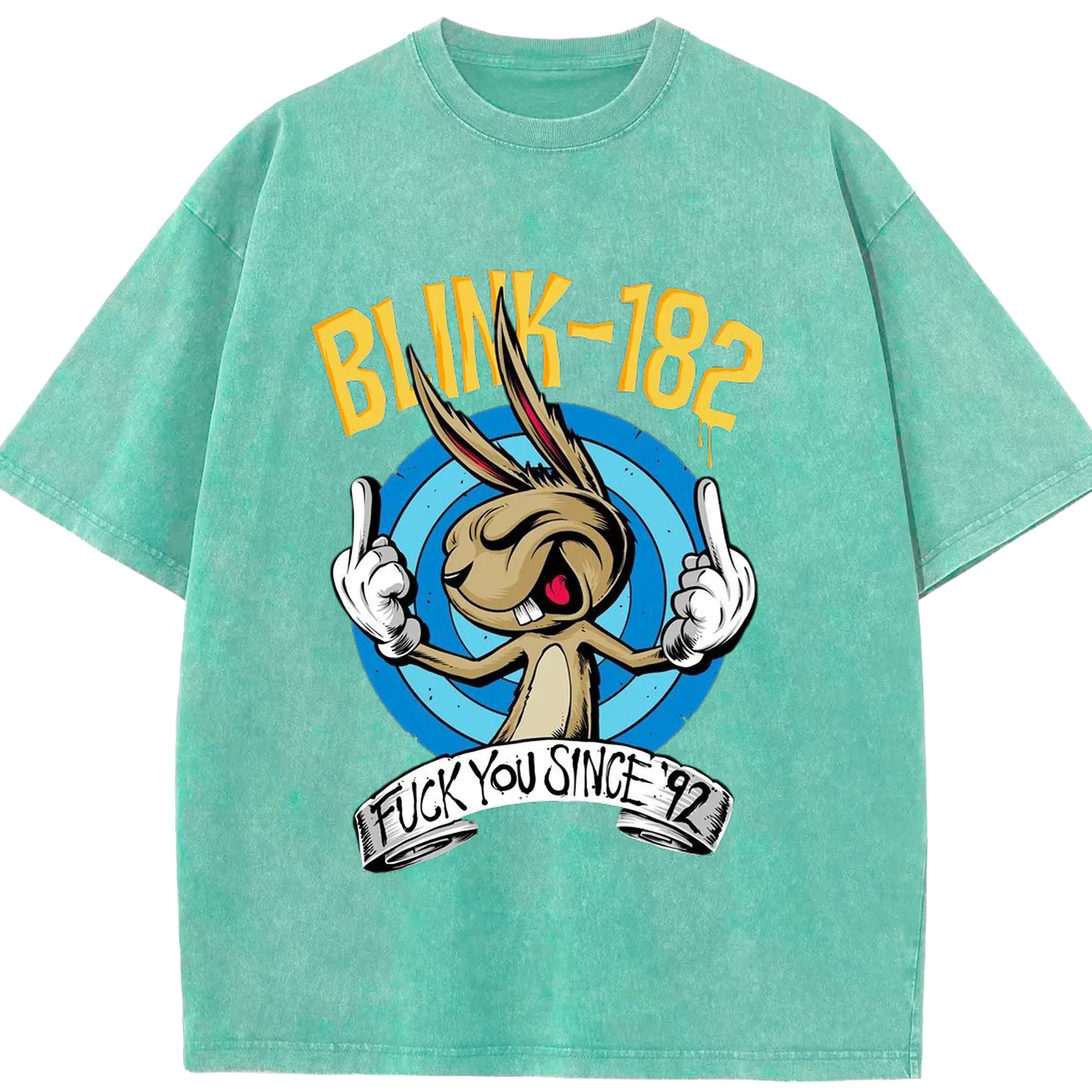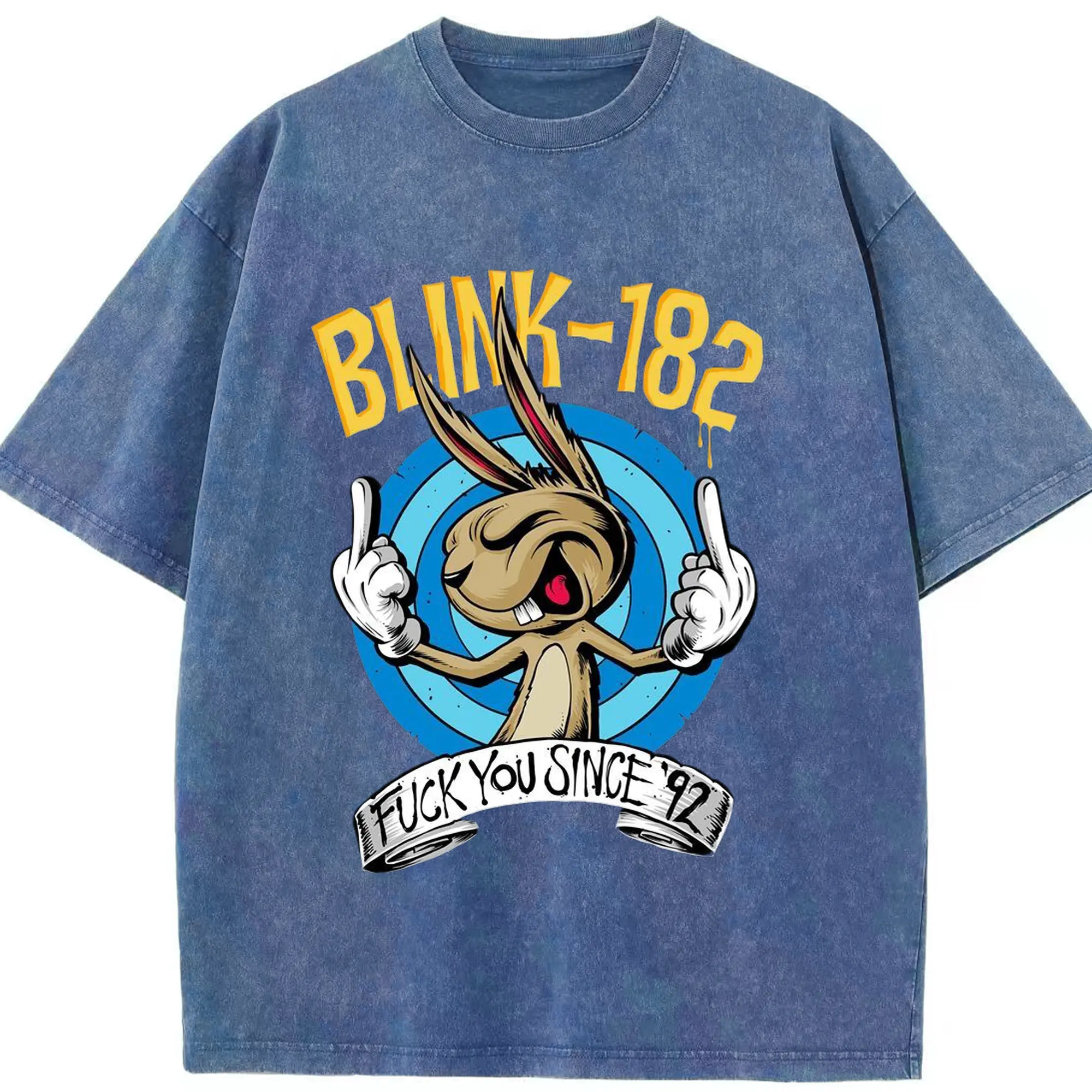 Link-182 Punk Rock Rebel Bunny DIY - Washed Vintage Look 230g Cotton Oversized T-Shirt With Front Heat Transfer Print – Soft, Lightweight, Stylish Fit – Comfortable Casual Wear For Sports & Everyday Use