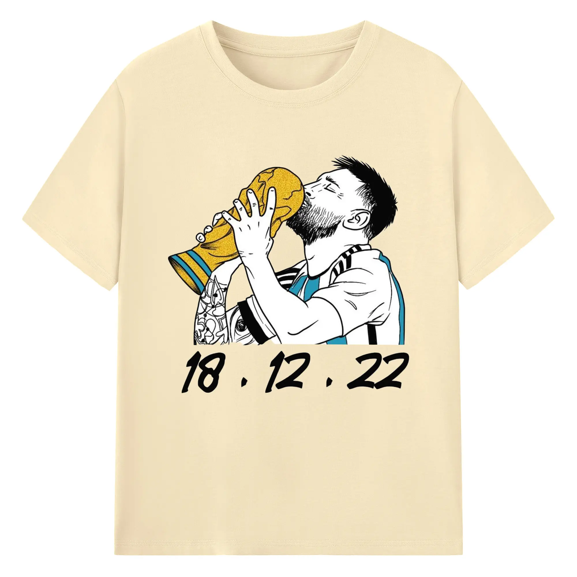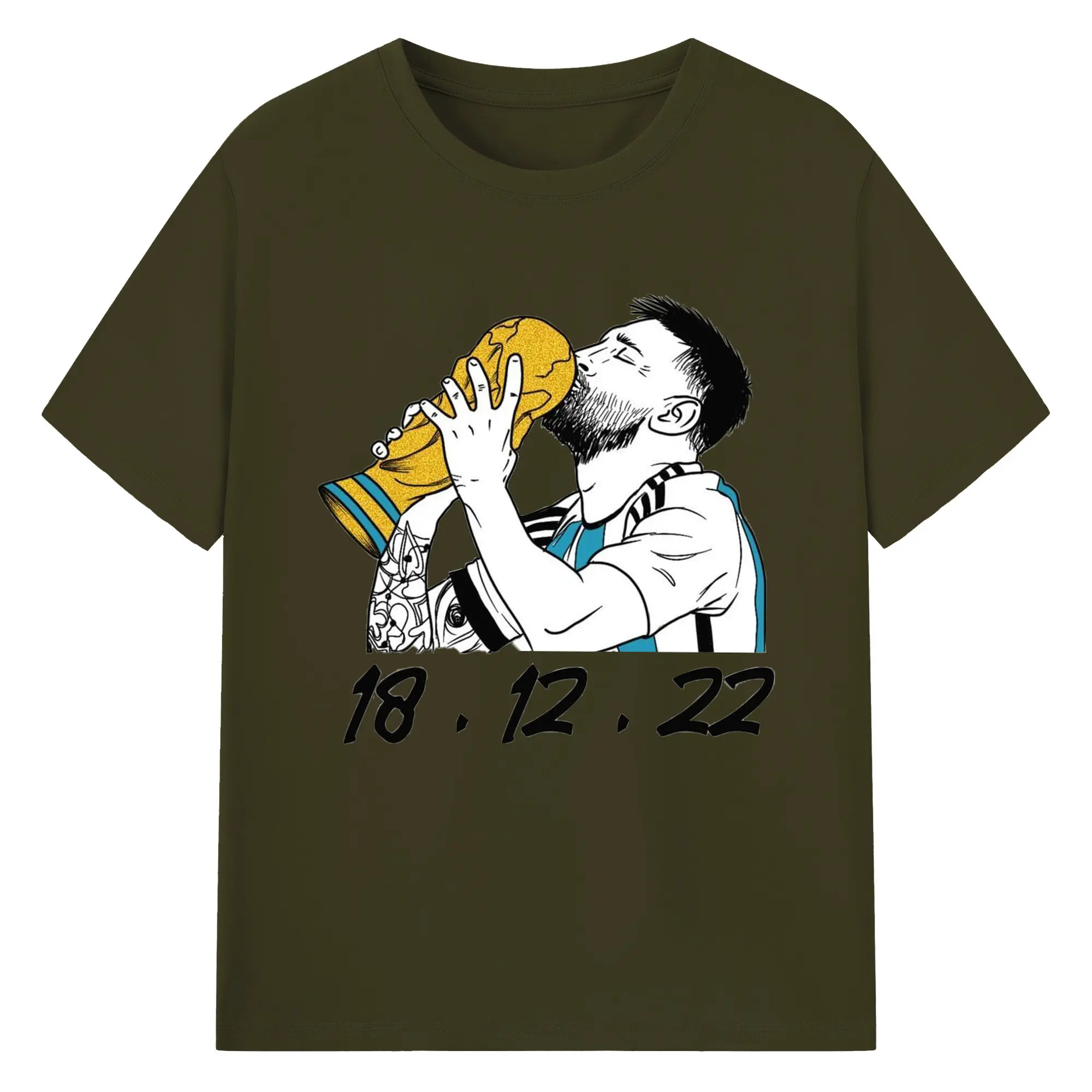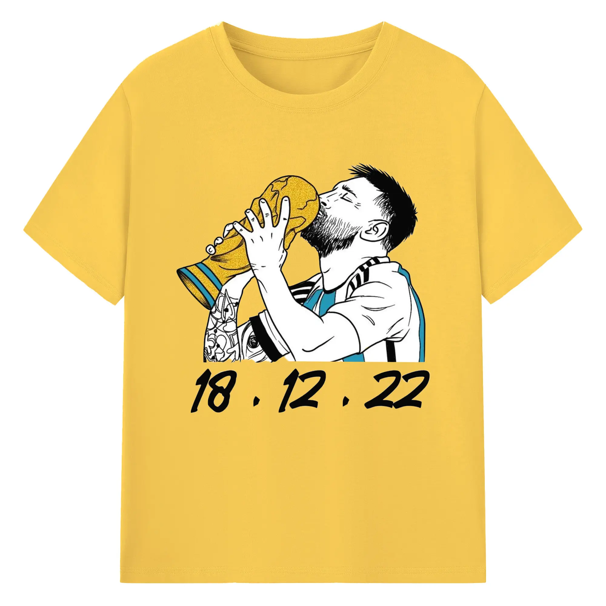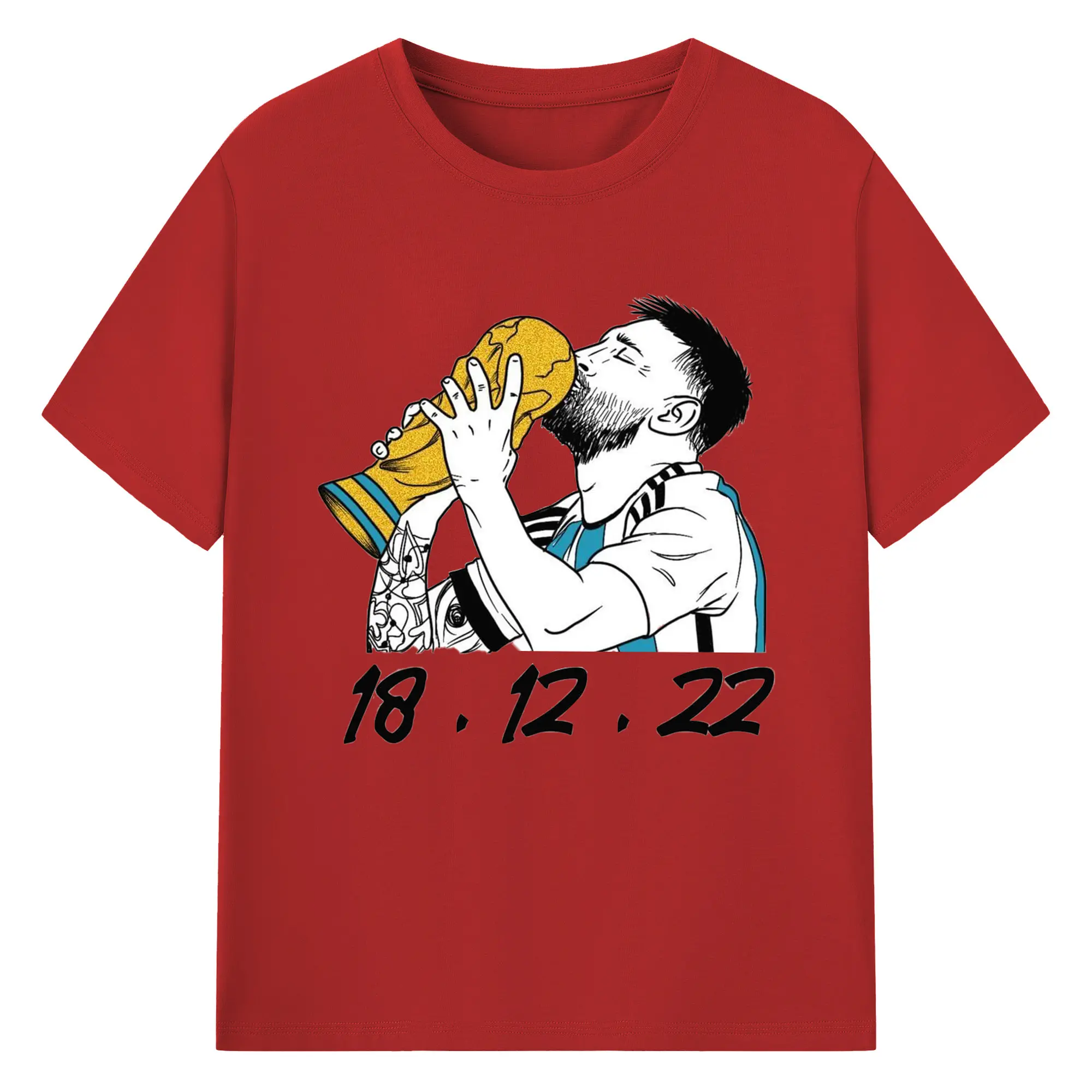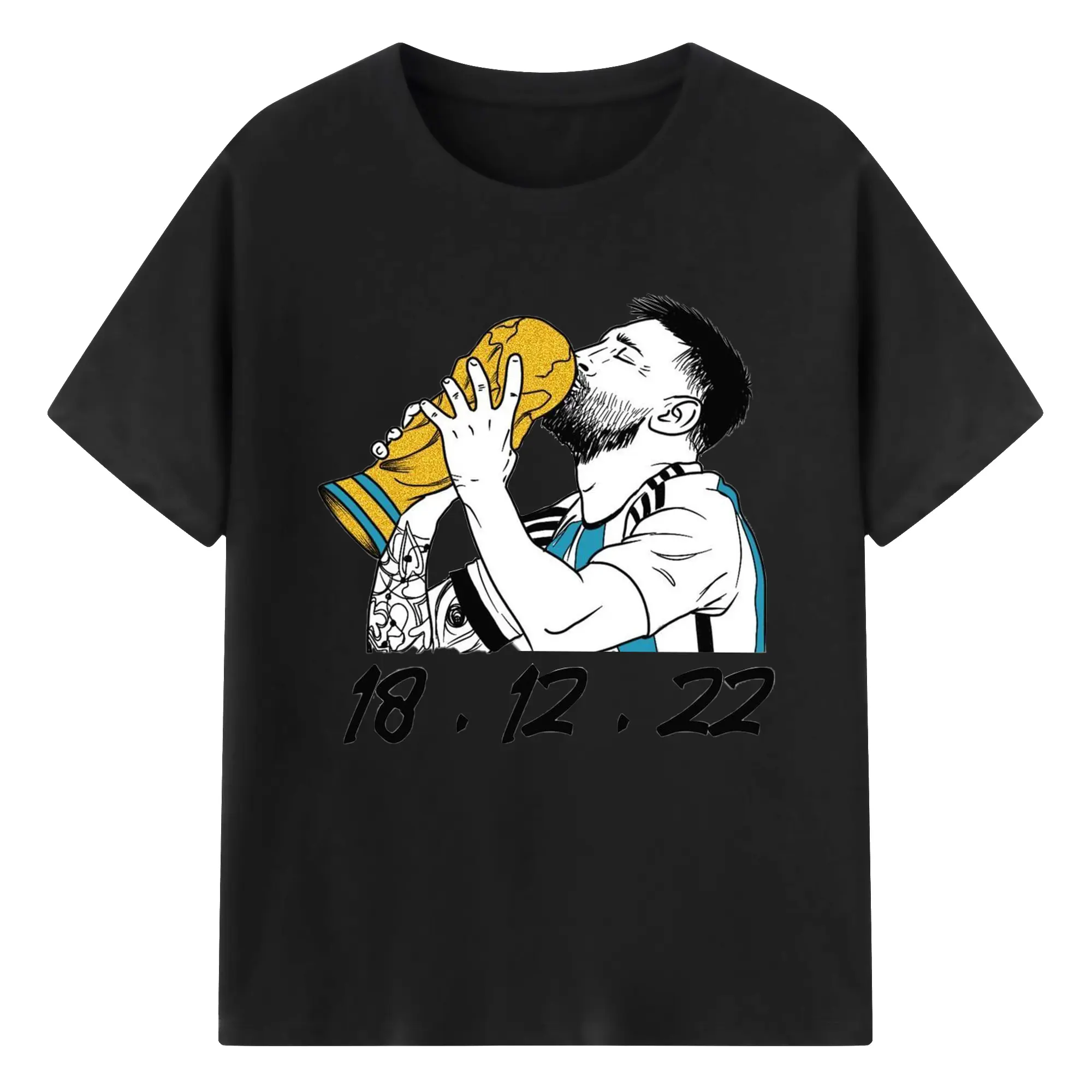 Lionel Messi 2022 World Cup Champion Kiss Trophy DIY Shirt - 180g Cotton T-Shirt With Front Heat Transfer Print – Soft, Lightweight, Fitted Design – Comfortable Casual Wear For Sports & Everyday Use