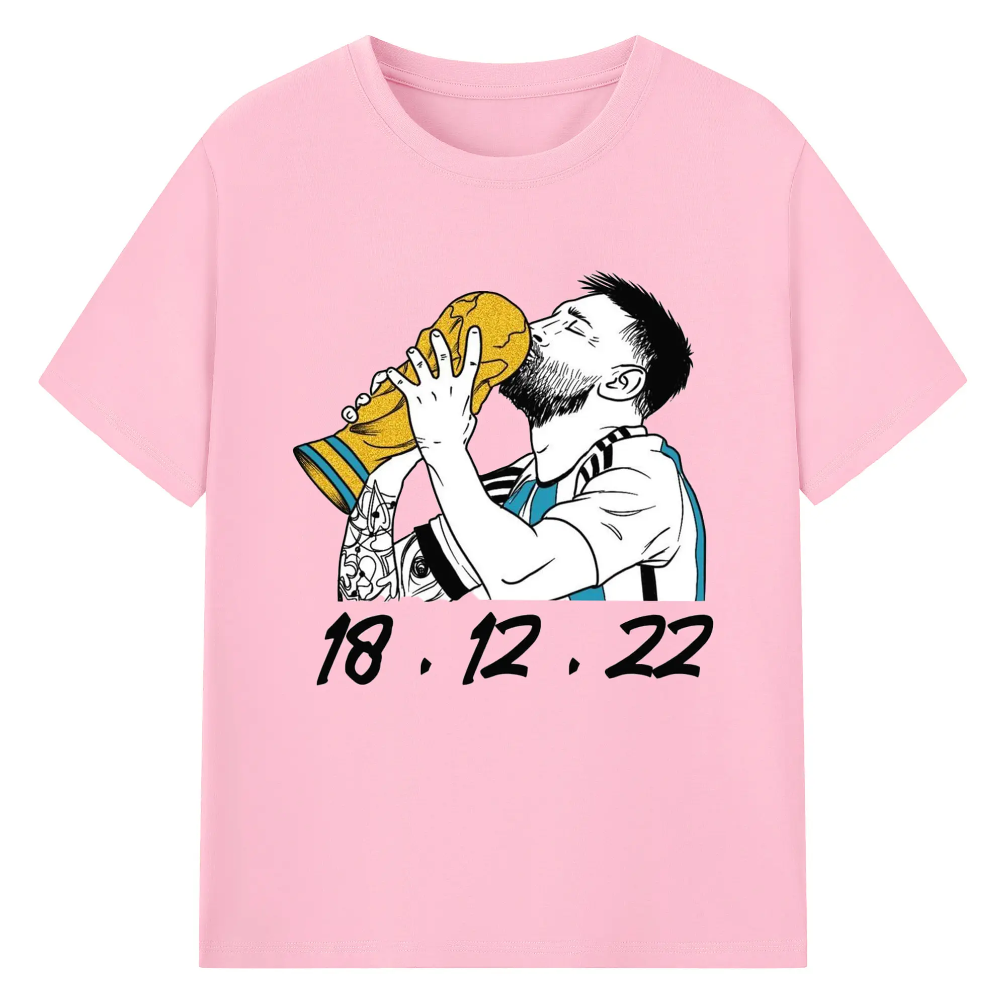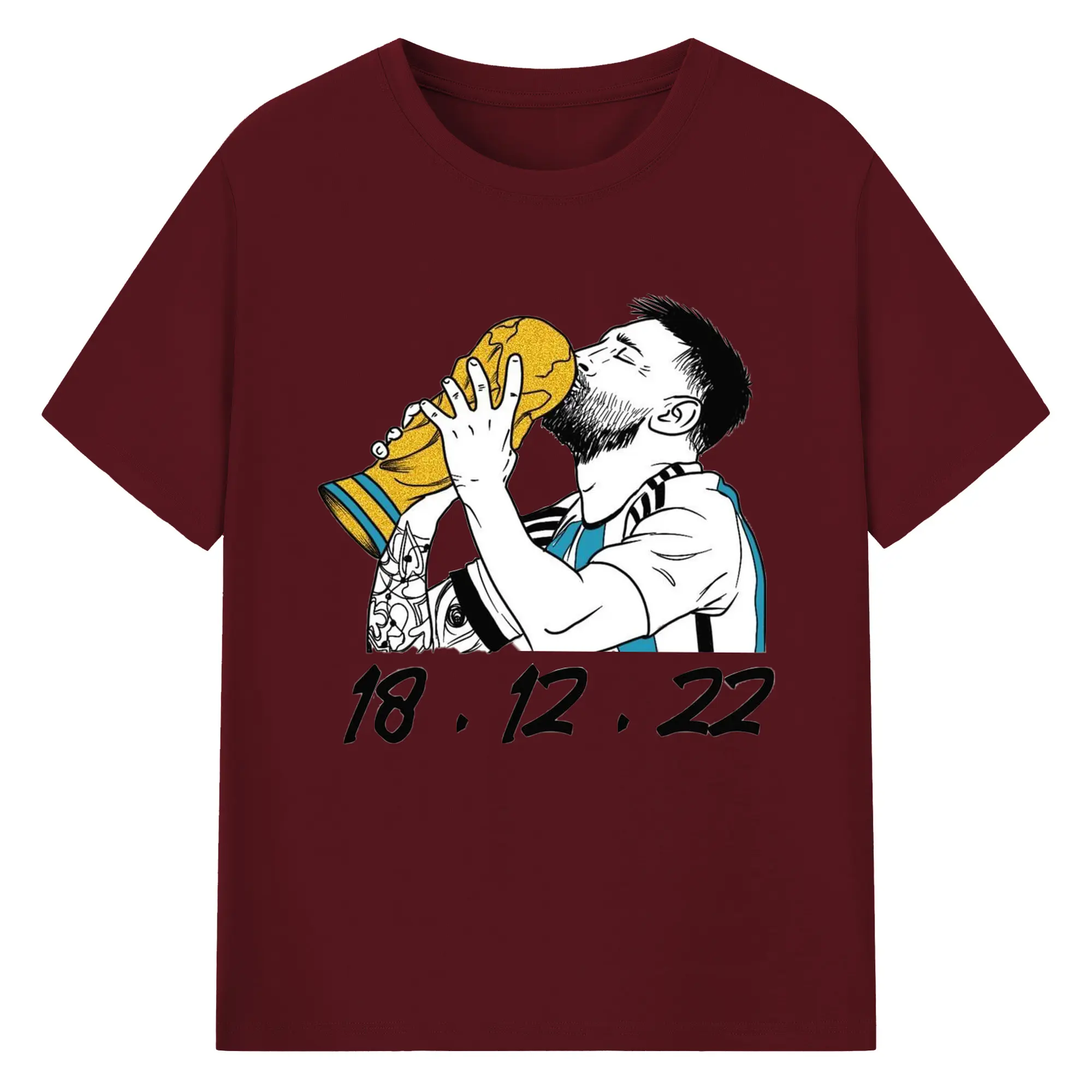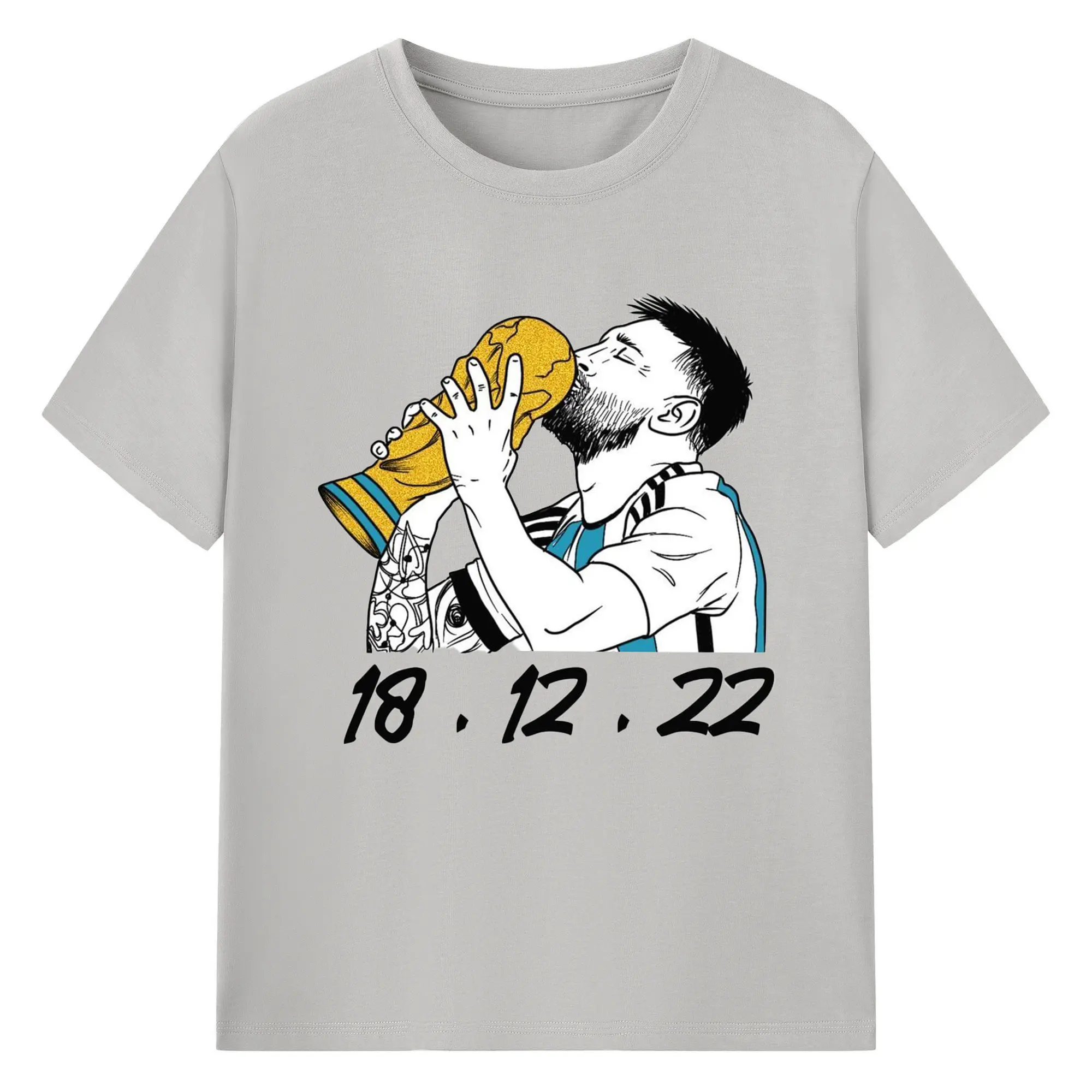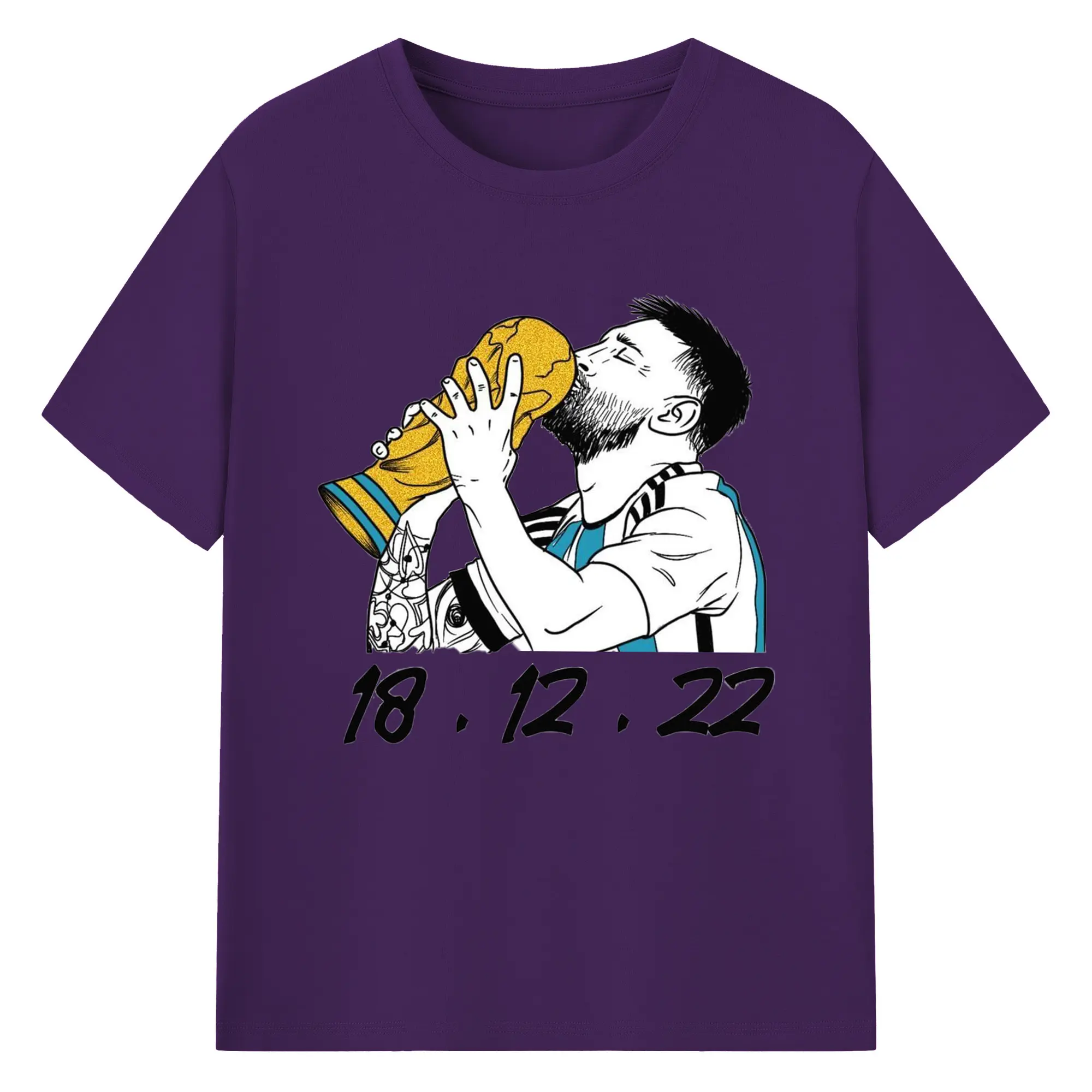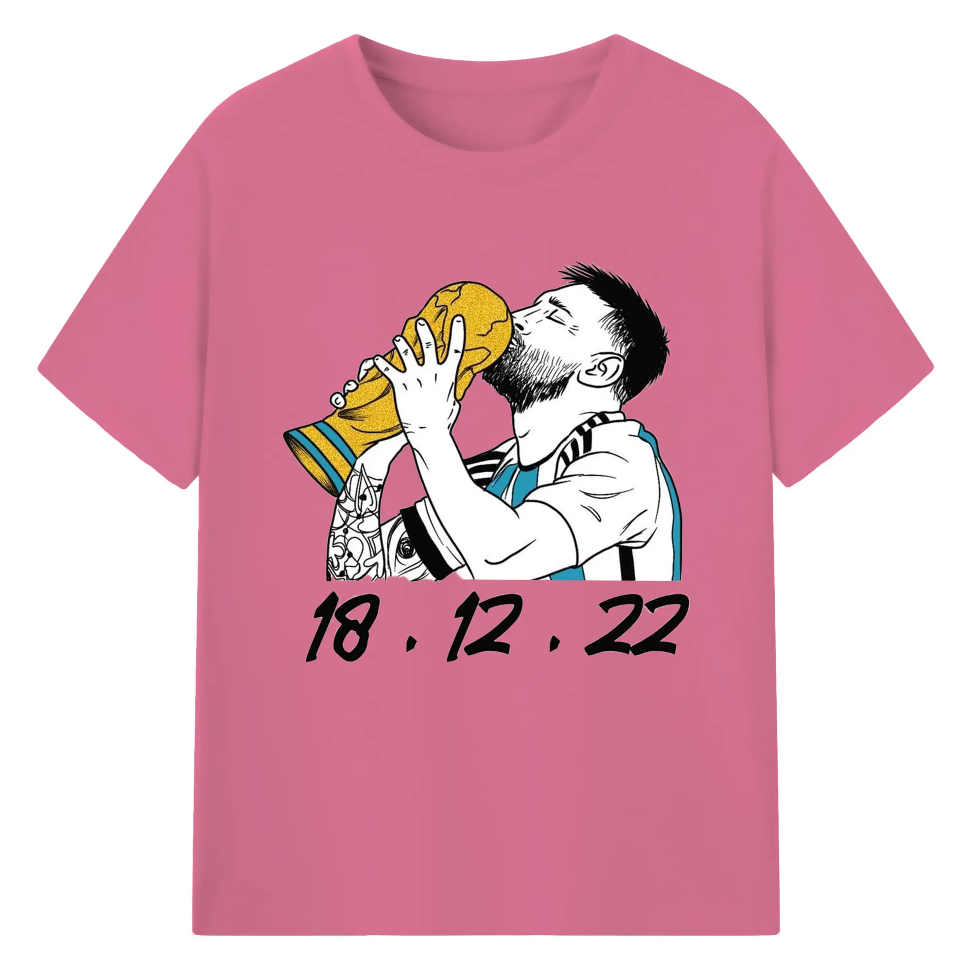 Lionel Messi 2022 World Cup Champion Kiss Trophy DIY Shirt - 180g Cotton T-Shirt With Front Heat Transfer Print – Soft, Lightweight, Fitted Design – Comfortable Casual Wear For Sports & Everyday Use