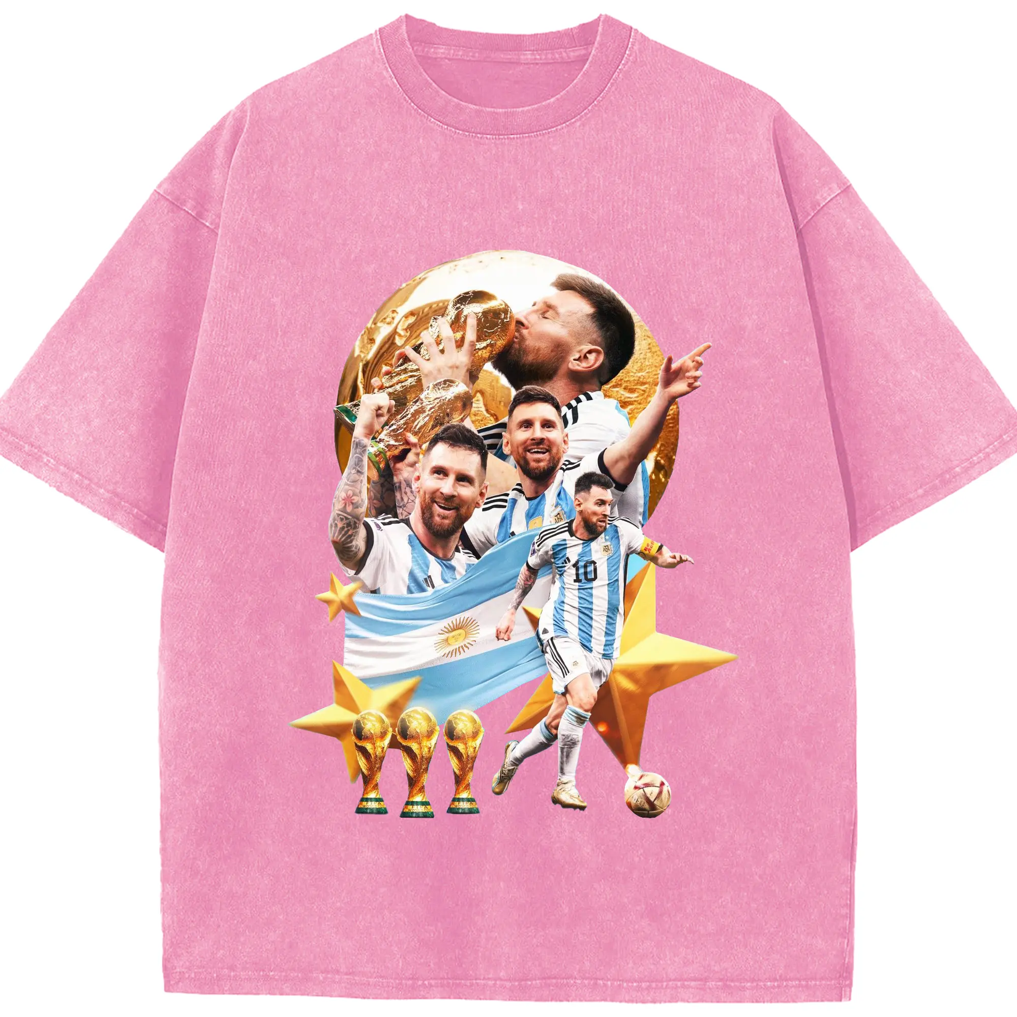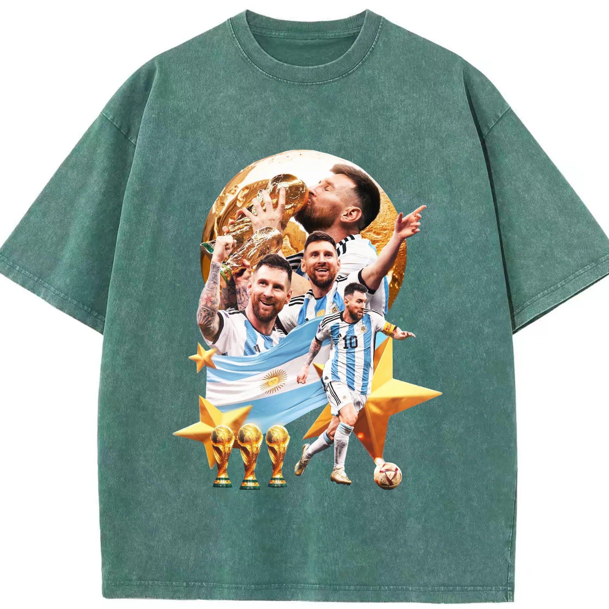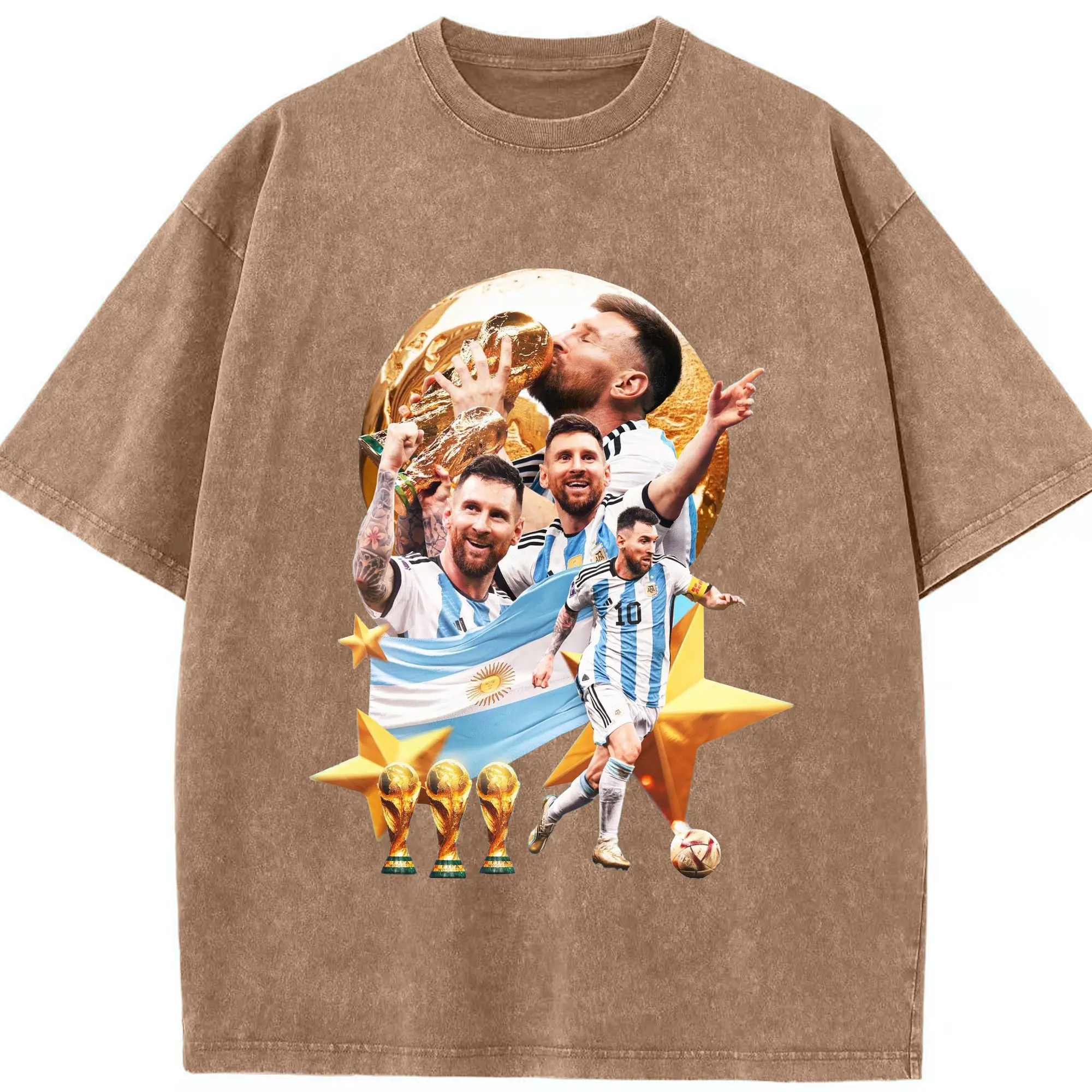 Lionel Messi Argentina World Cup Champion Collage DIY Shirt - Washed Vintage Look 230g Cotton Oversized T-Shirt With Front Heat Transfer Print – Soft, Lightweight, Stylish Fit – Comfortable Casual Wear For Sports & Everyday Use
