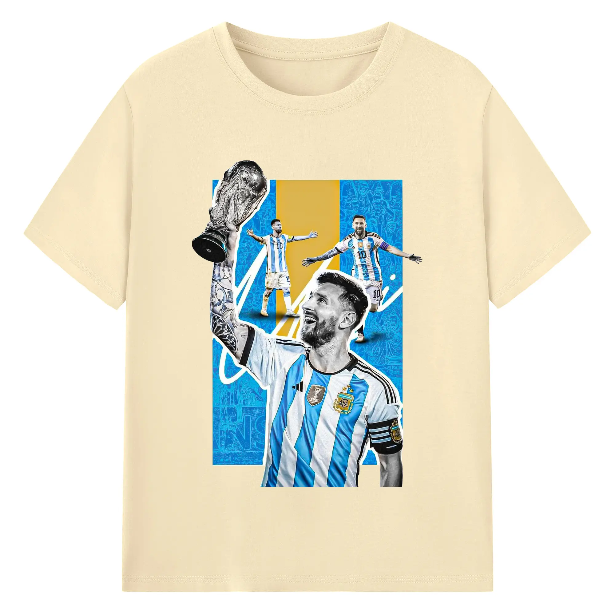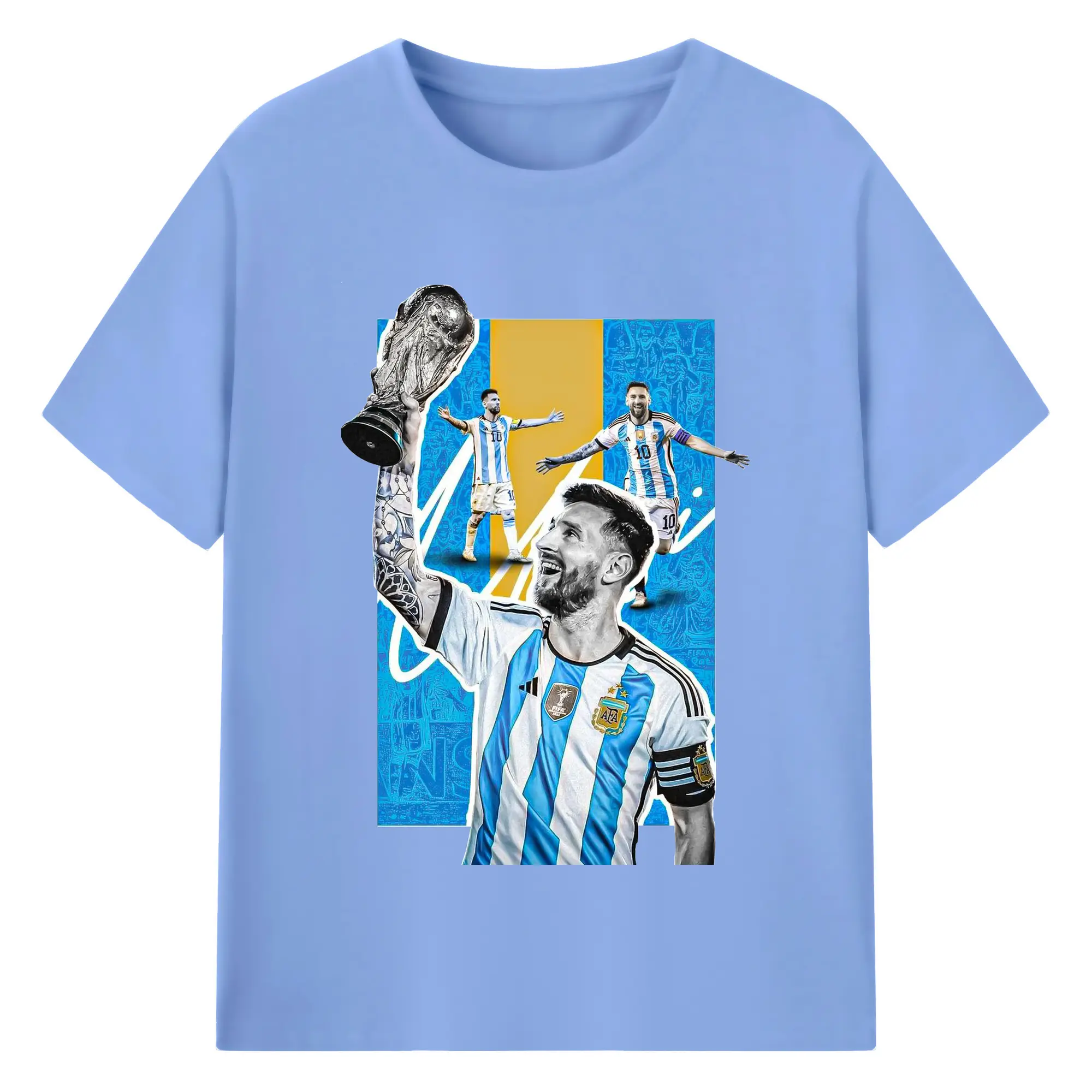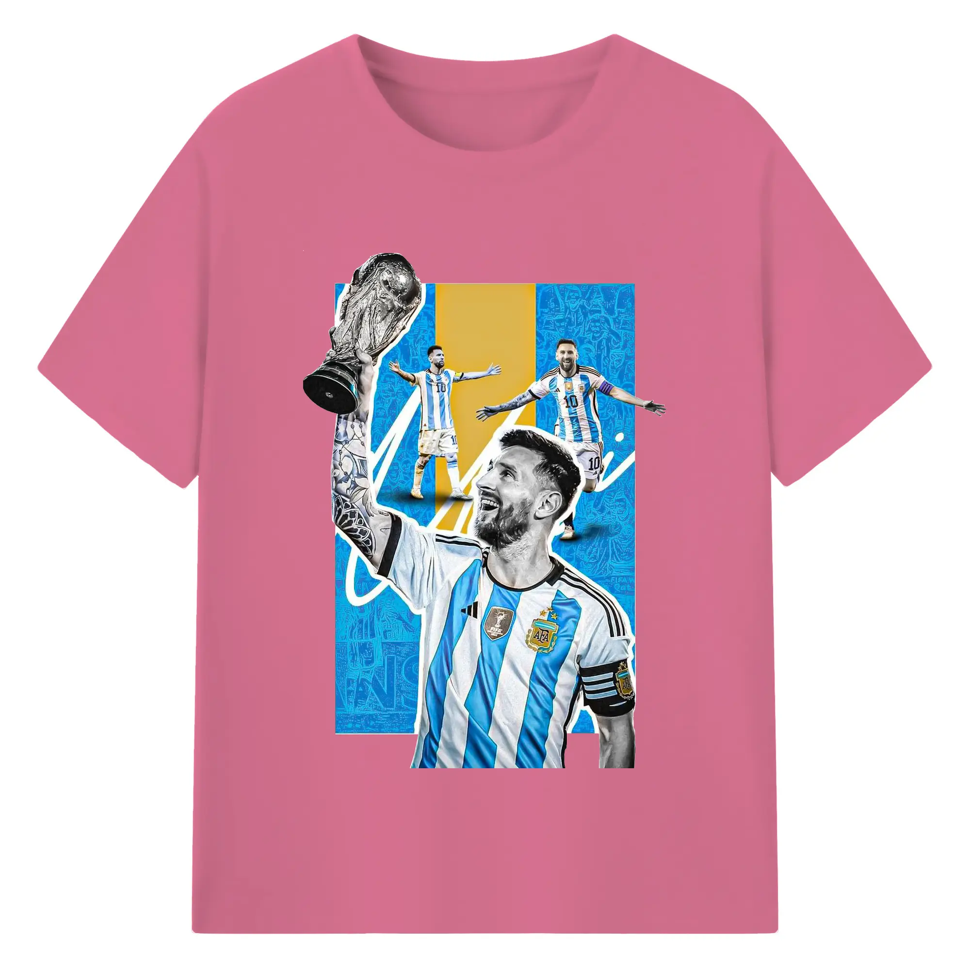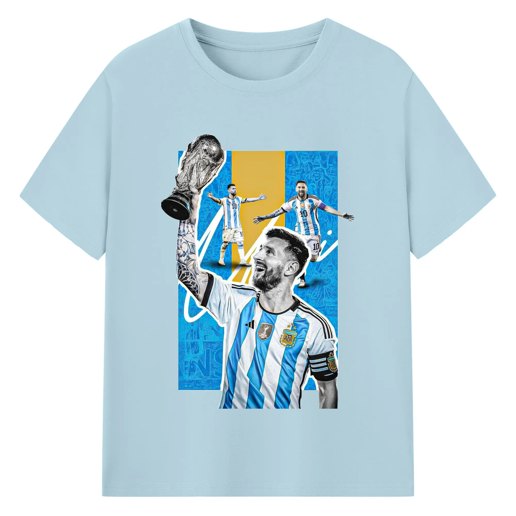 Lionel Messi Argentina World Cup Champion DIY Shirt - 180g Cotton T-Shirt With Front Heat Transfer Print – Soft, Lightweight, Fitted Design – Comfortable Casual Wear For Sports & Everyday Use