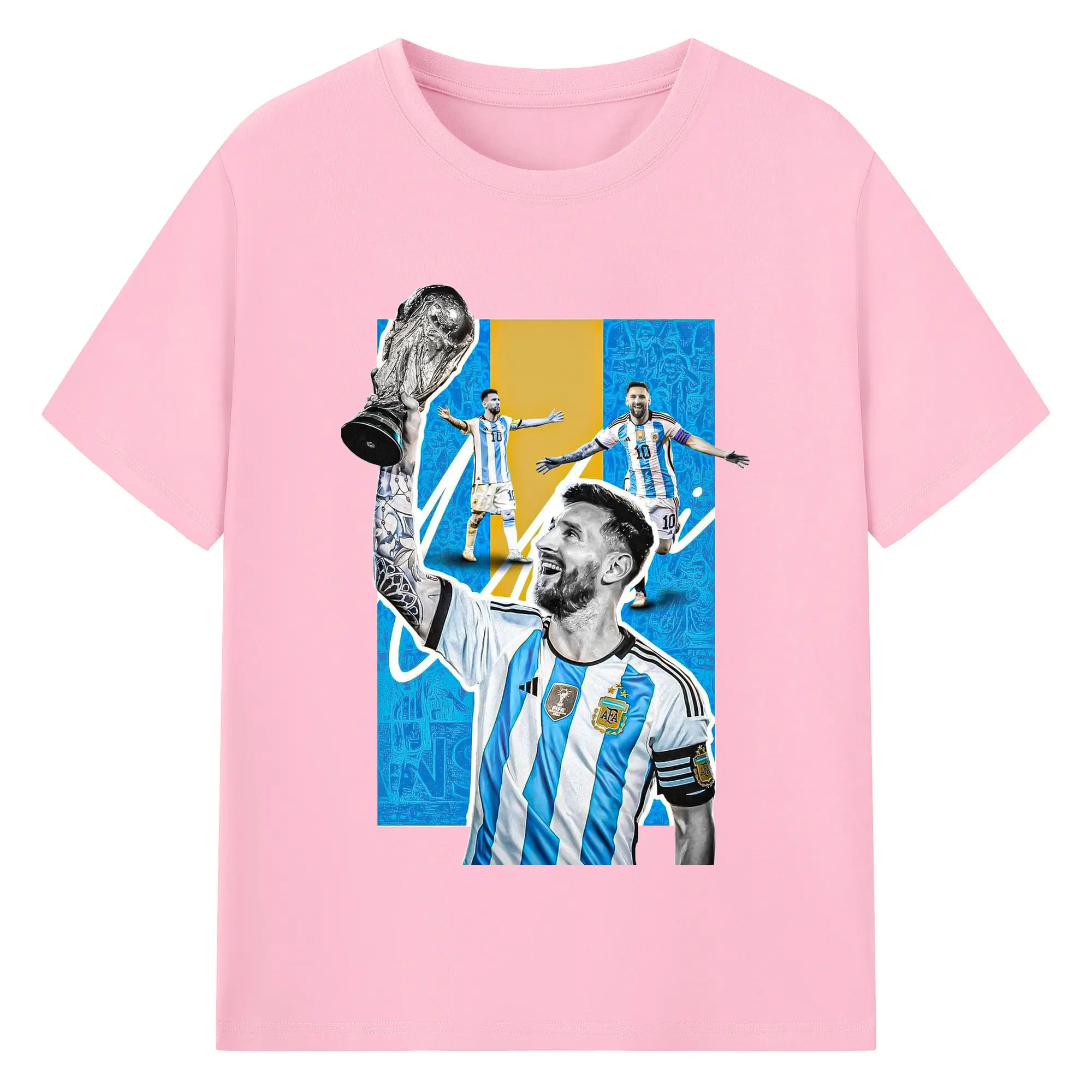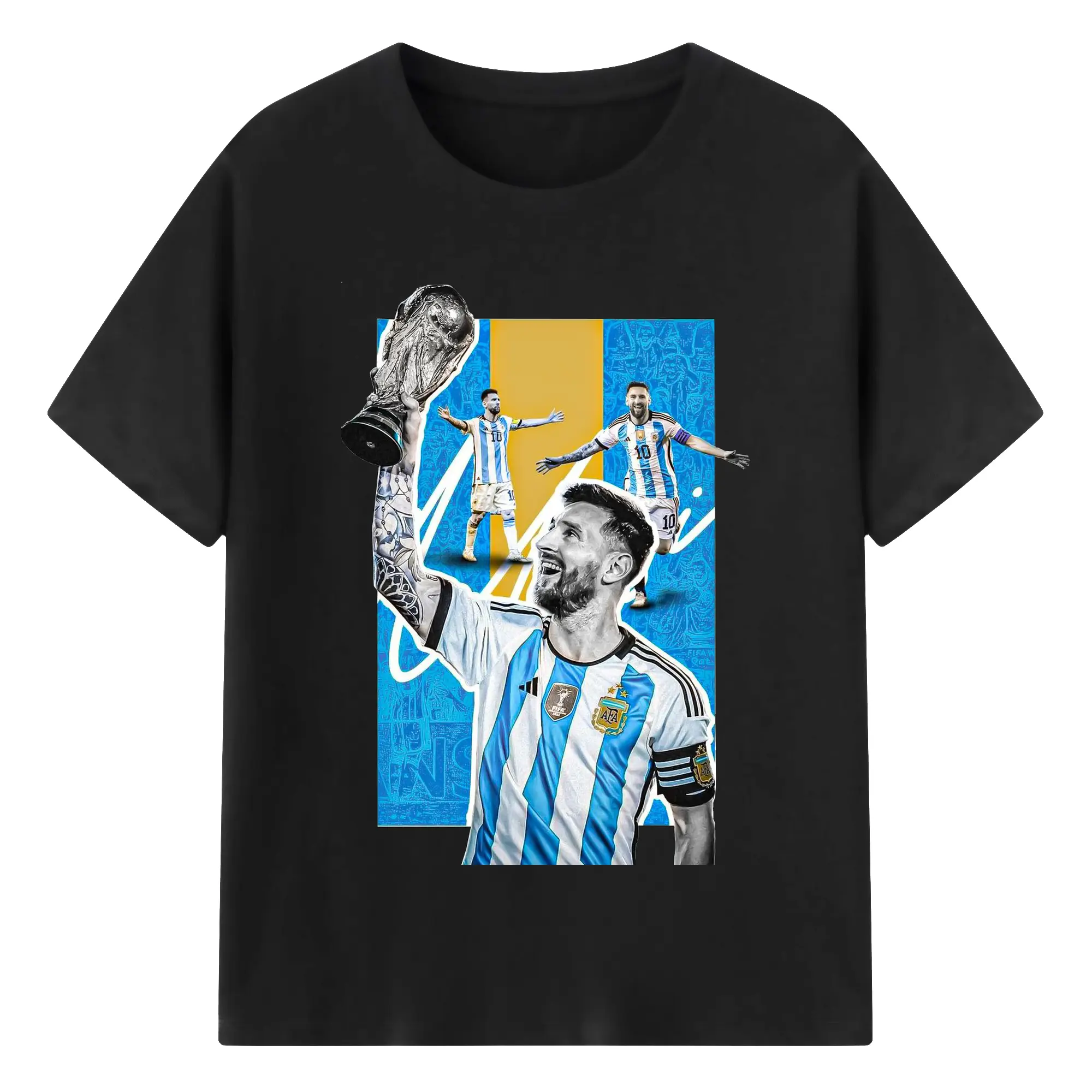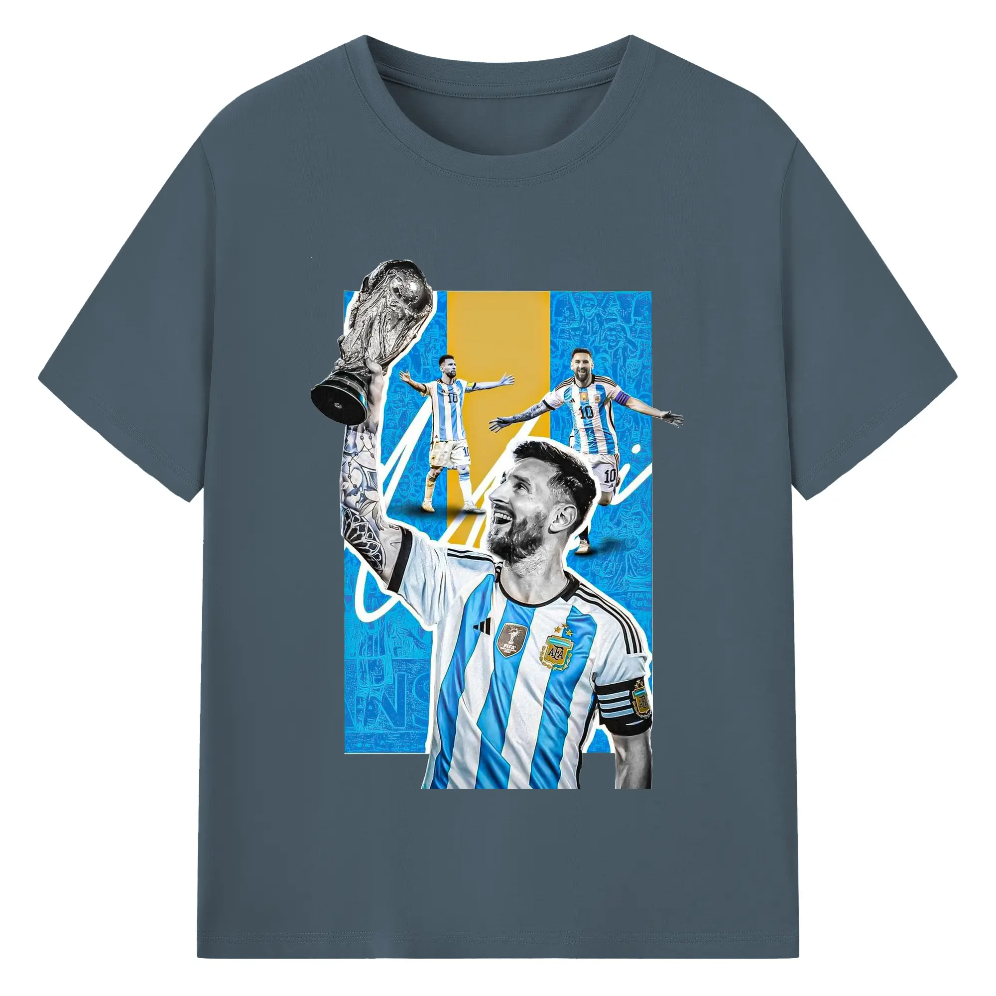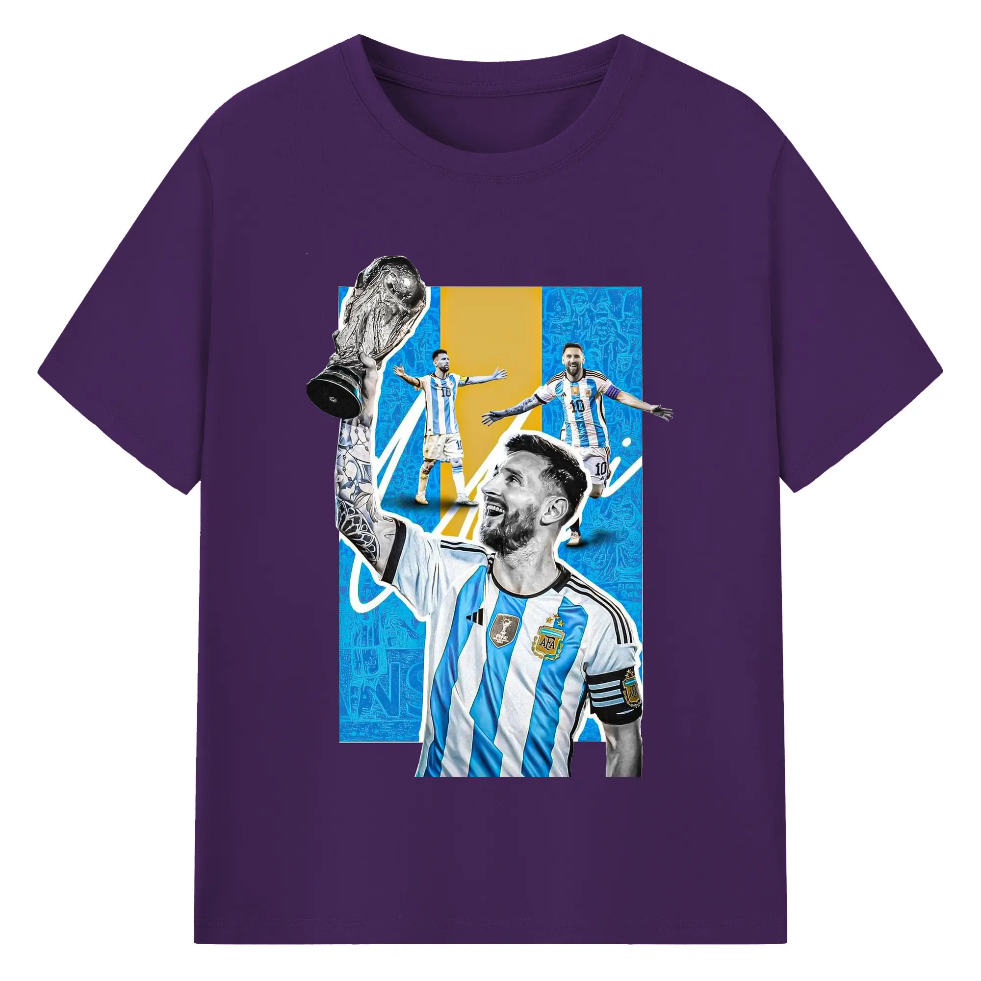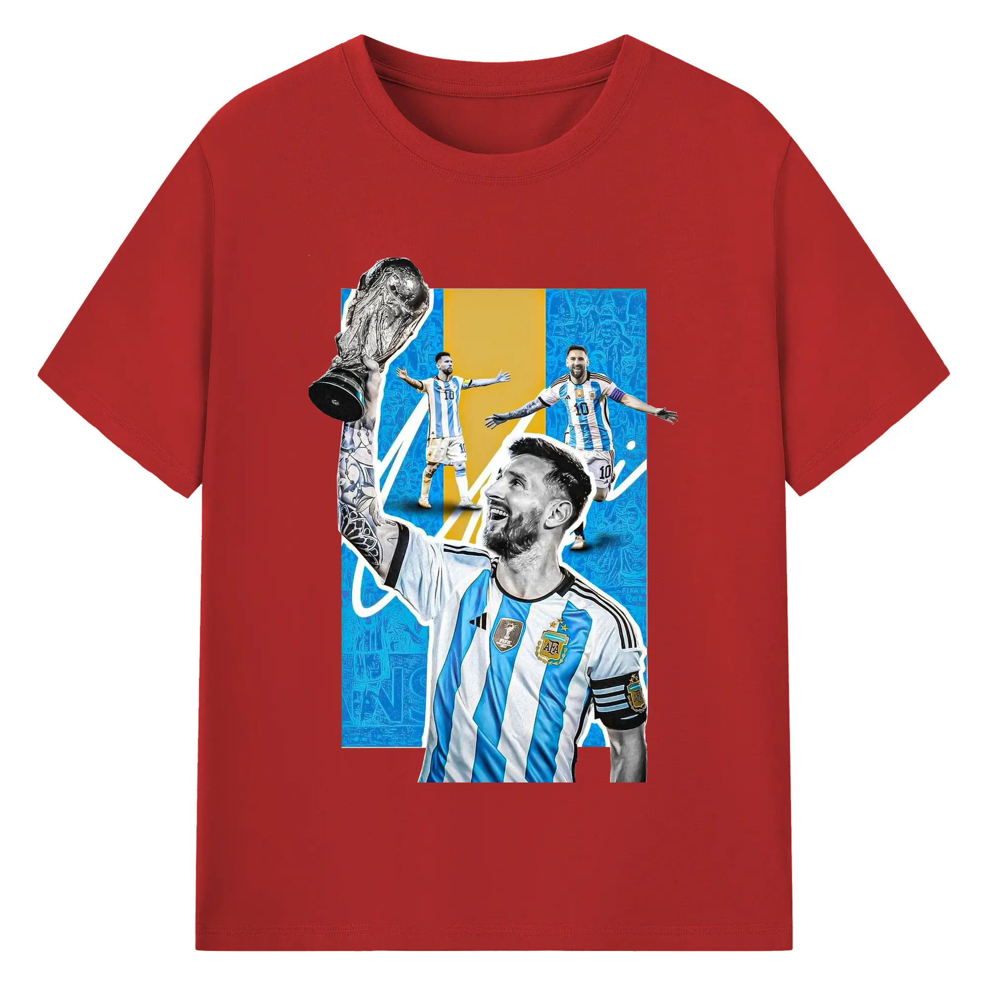 Lionel Messi Argentina World Cup Champion DIY Shirt - 180g Cotton T-Shirt With Front Heat Transfer Print – Soft, Lightweight, Fitted Design – Comfortable Casual Wear For Sports & Everyday Use