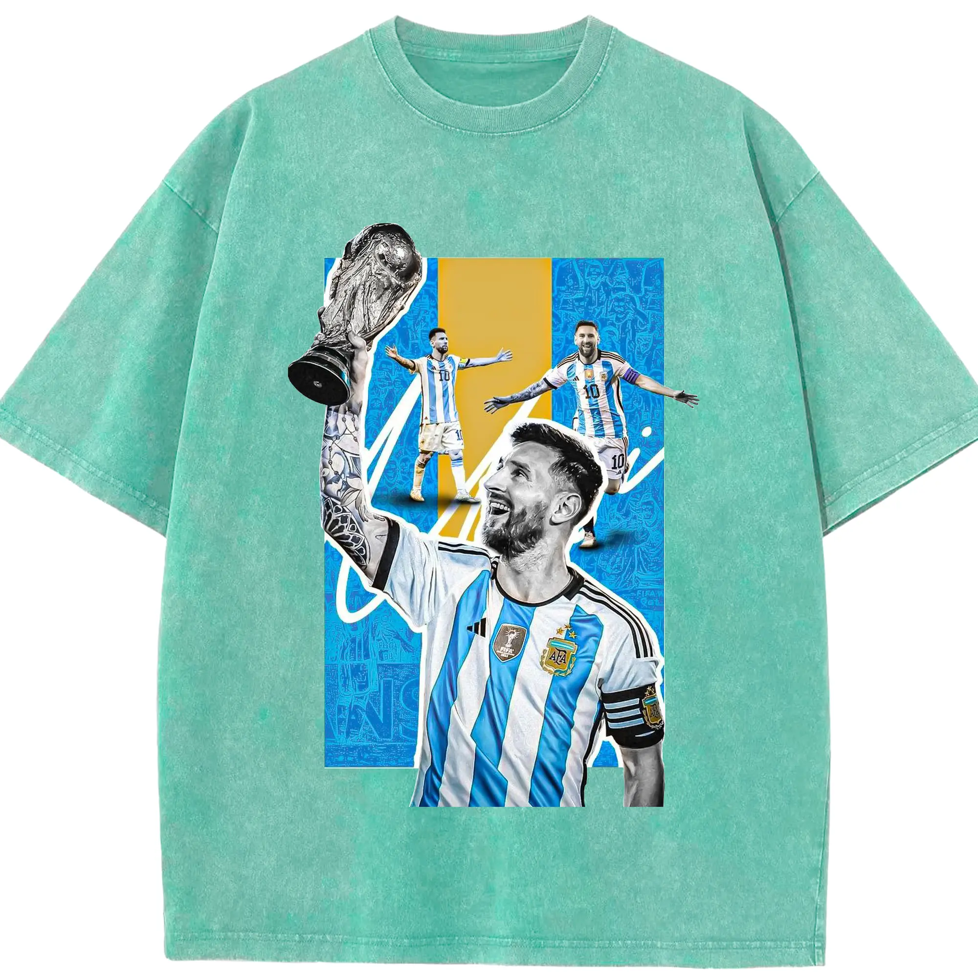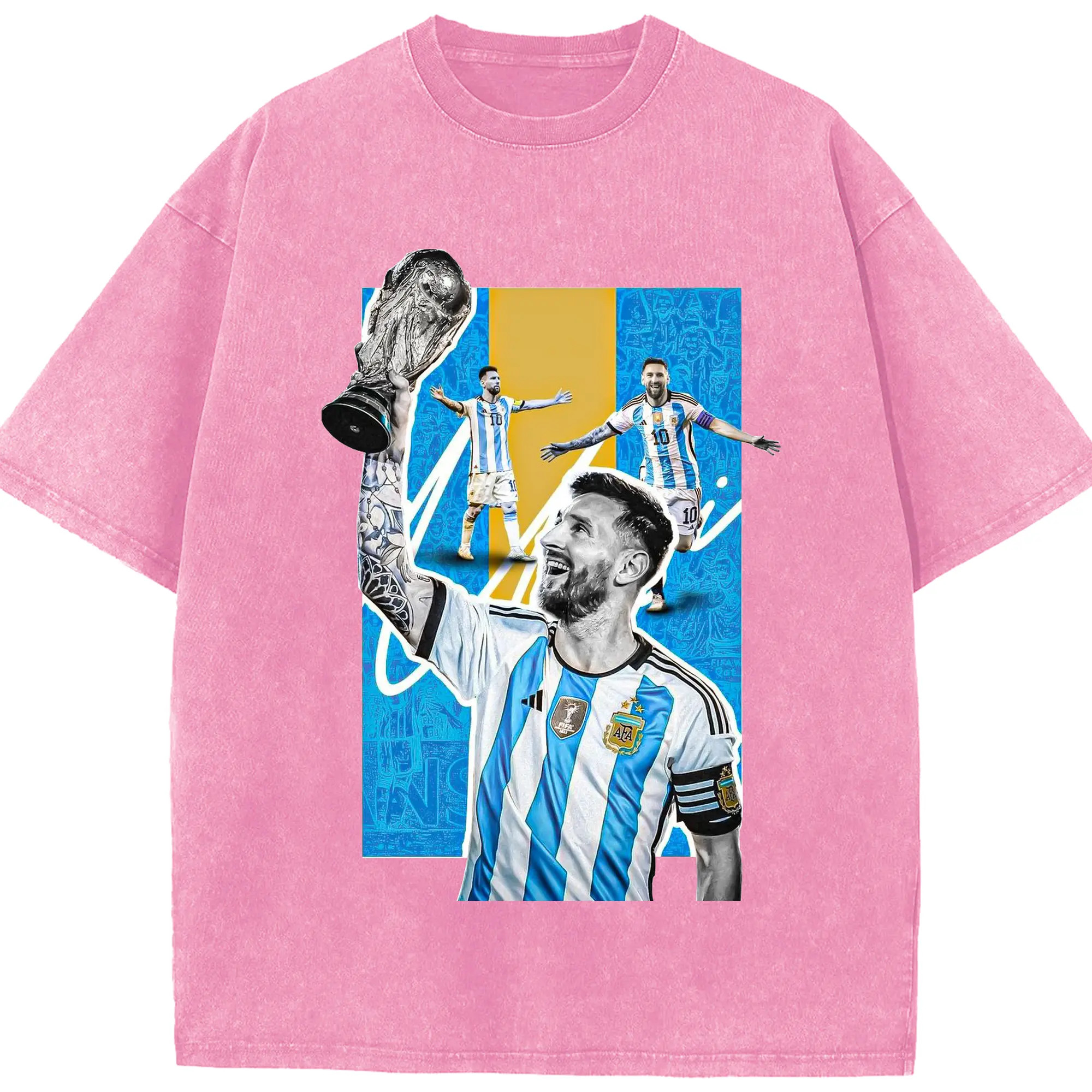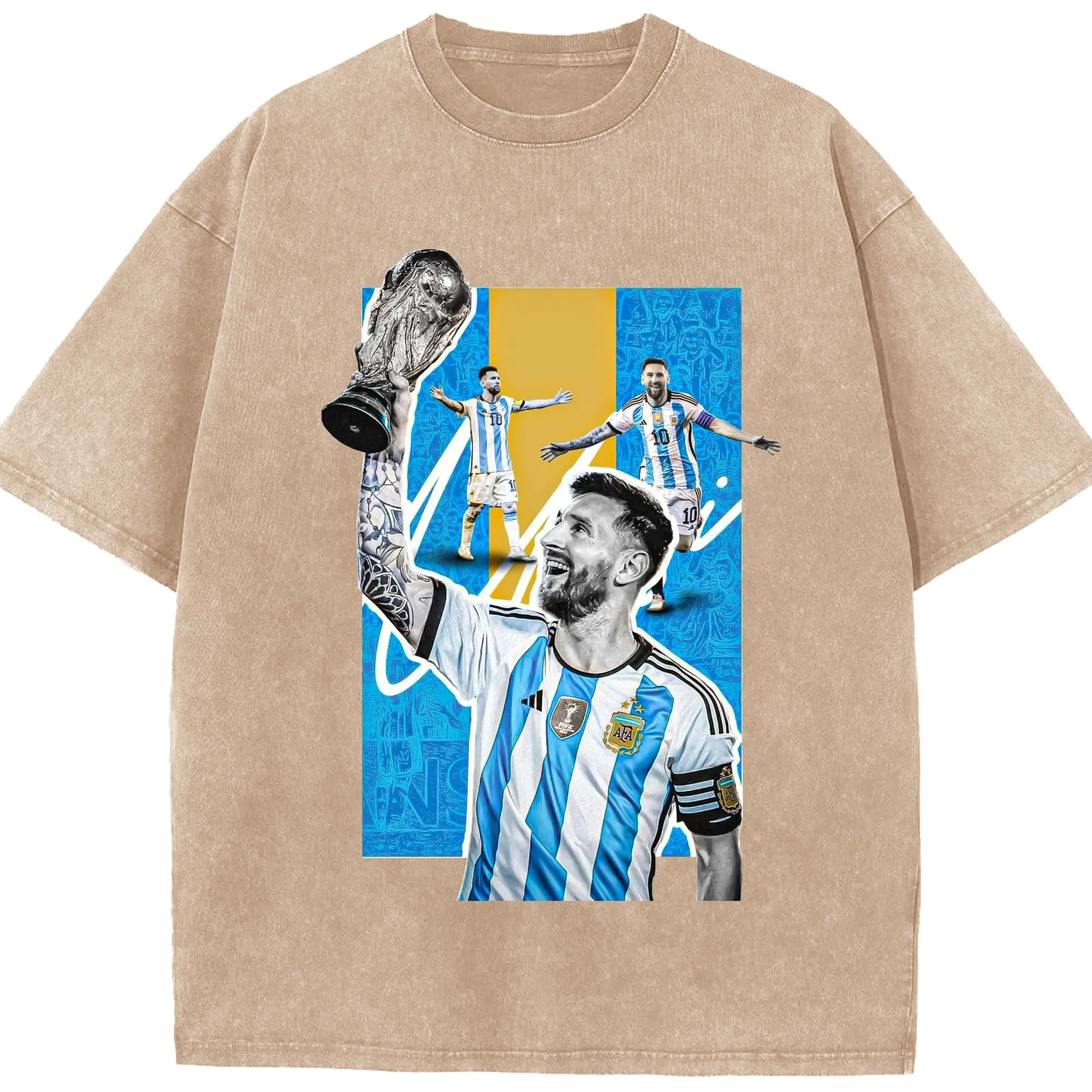 Lionel Messi Argentina World Cup Champion DIY Shirt - Washed Vintage Look 230g Cotton Oversized T-Shirt With Front Heat Transfer Print – Soft, Lightweight, Stylish Fit – Comfortable Casual Wear For Sports & Everyday Use