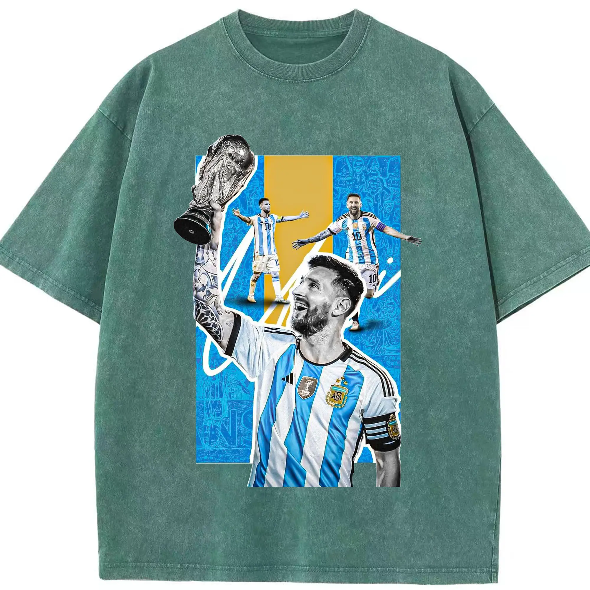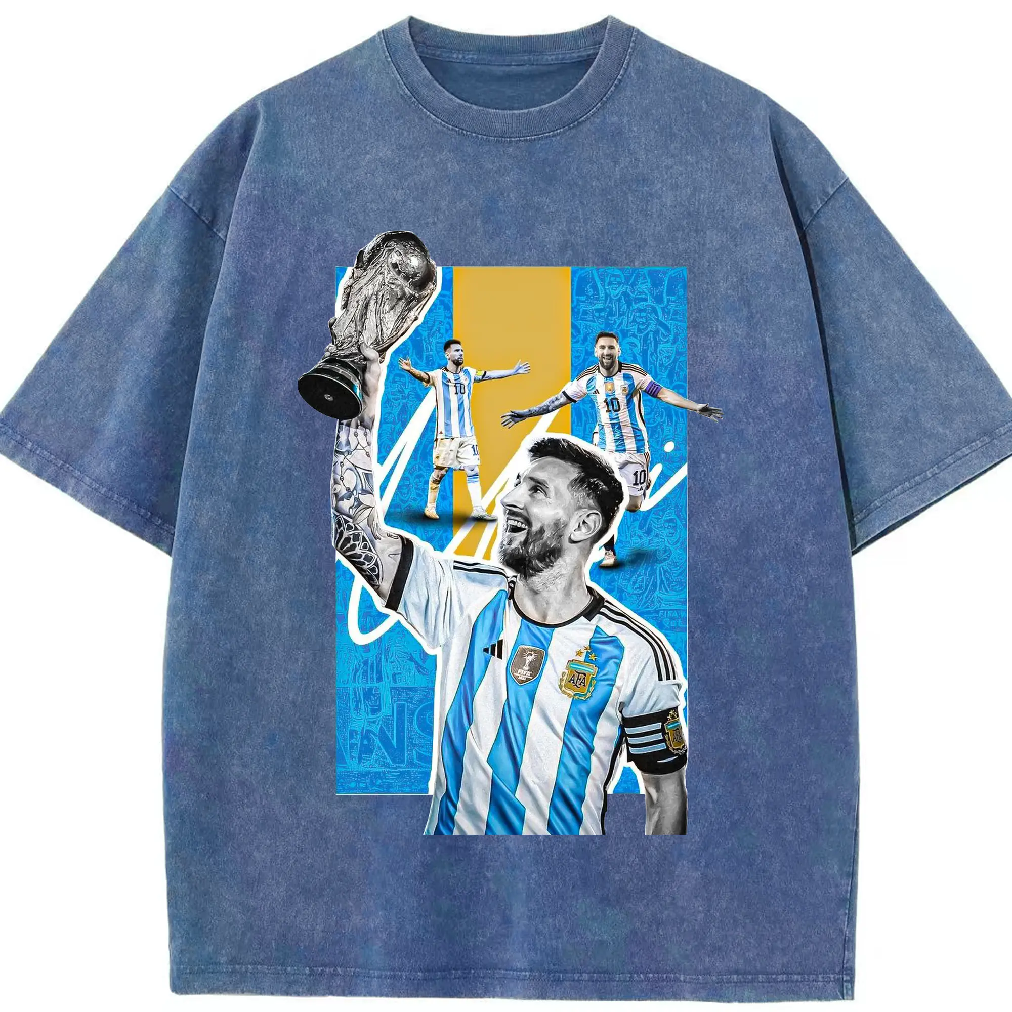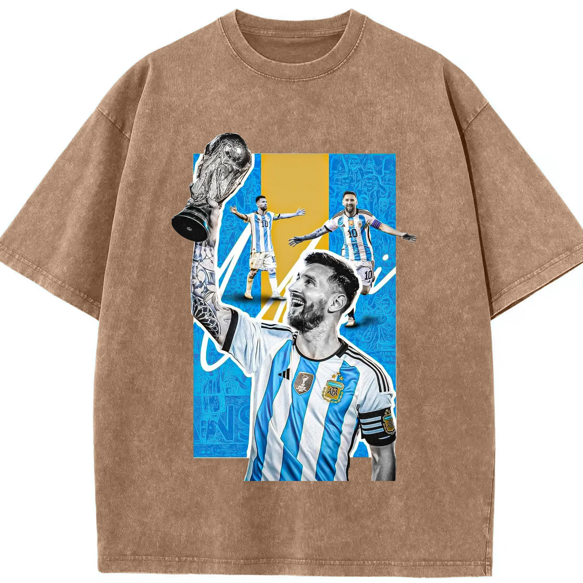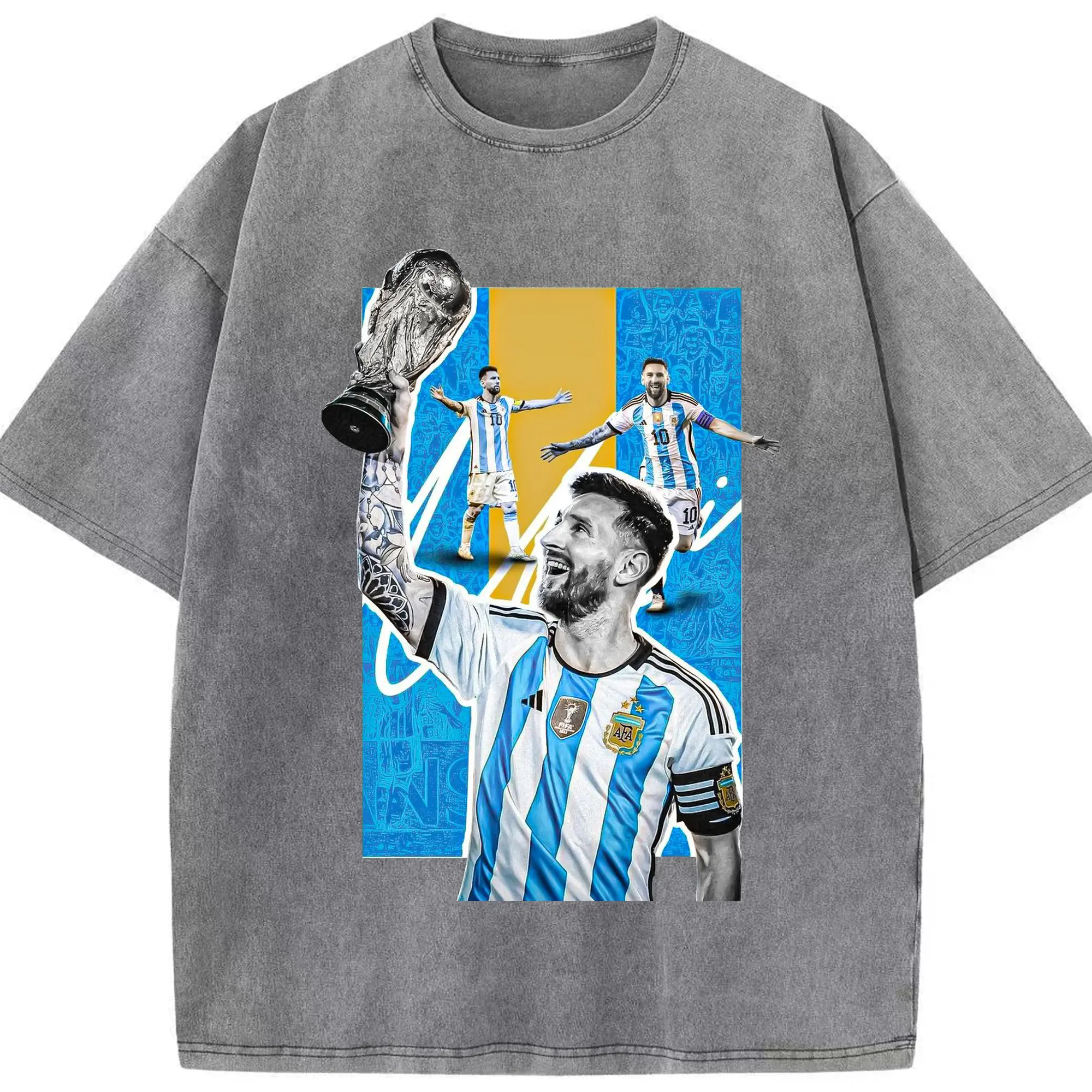 Lionel Messi Argentina World Cup Champion DIY Shirt - Washed Vintage Look 230g Cotton Oversized T-Shirt With Front Heat Transfer Print – Soft, Lightweight, Stylish Fit – Comfortable Casual Wear For Sports & Everyday Use