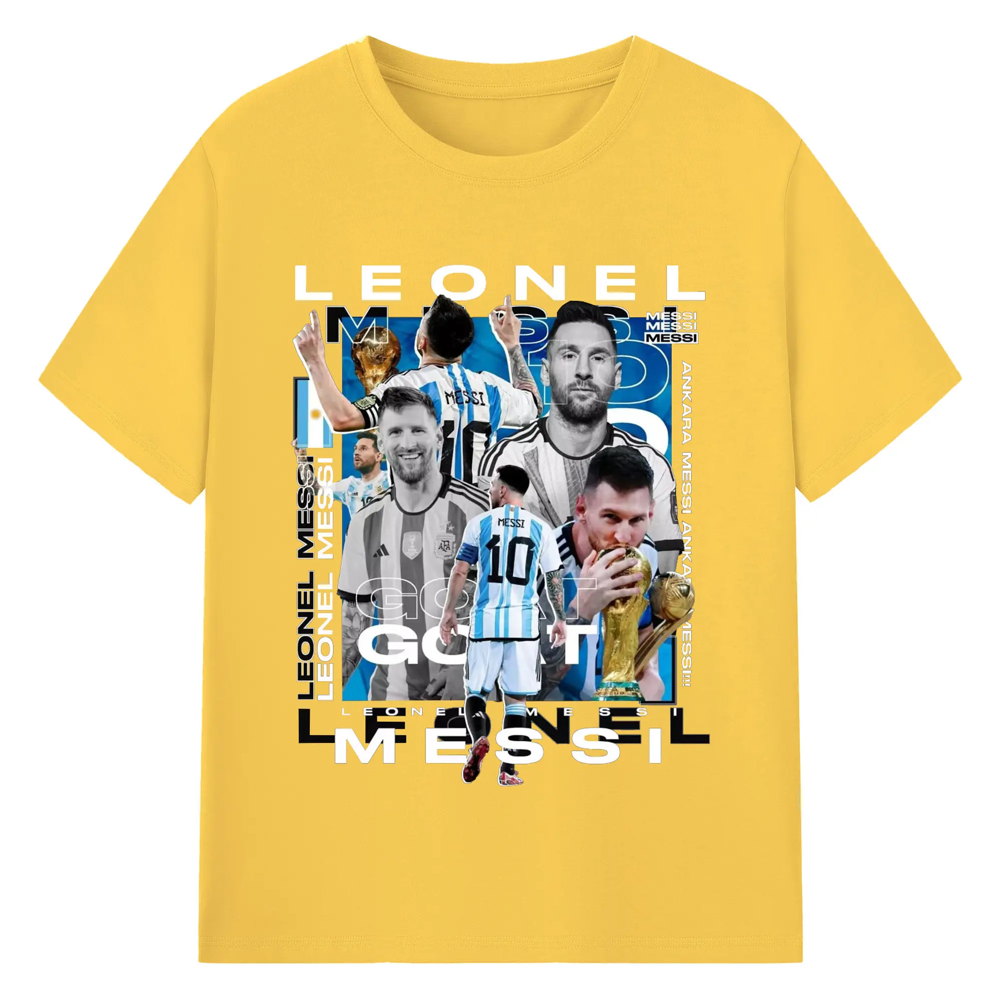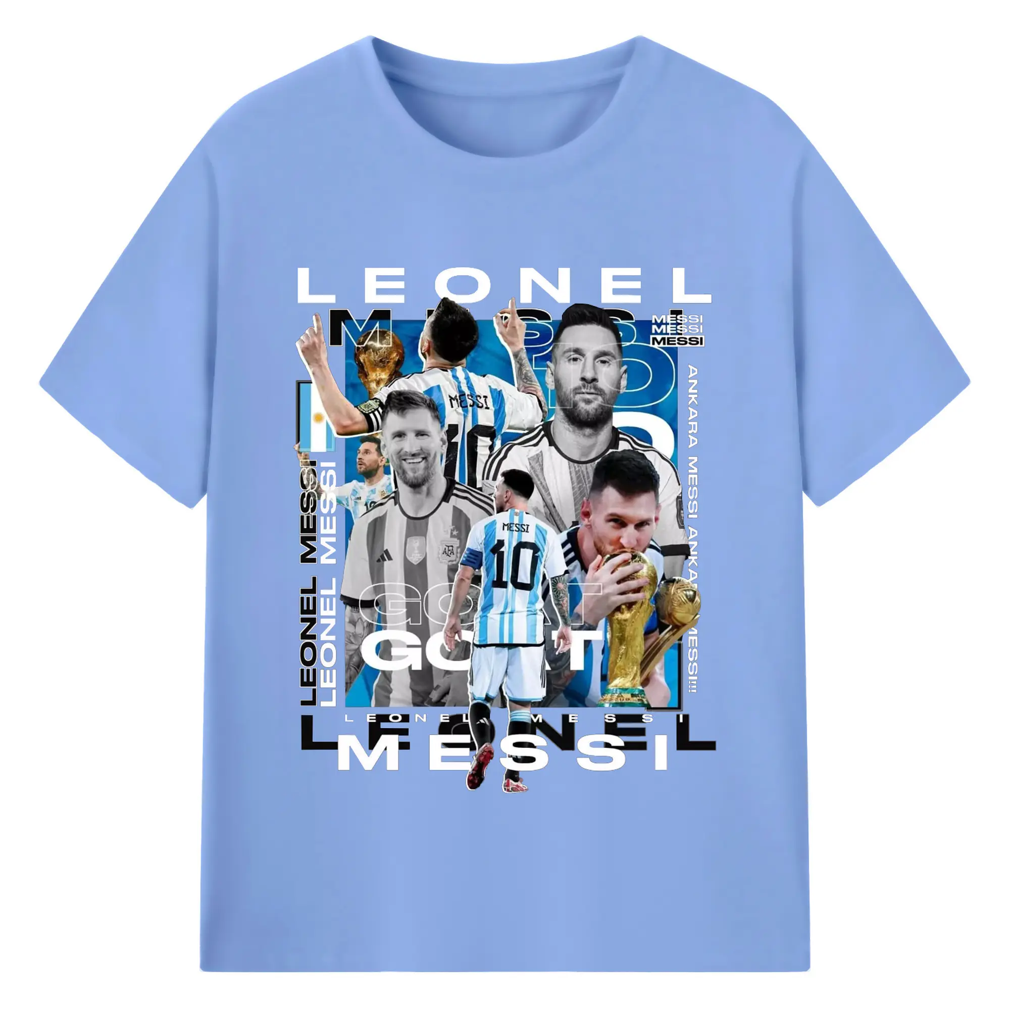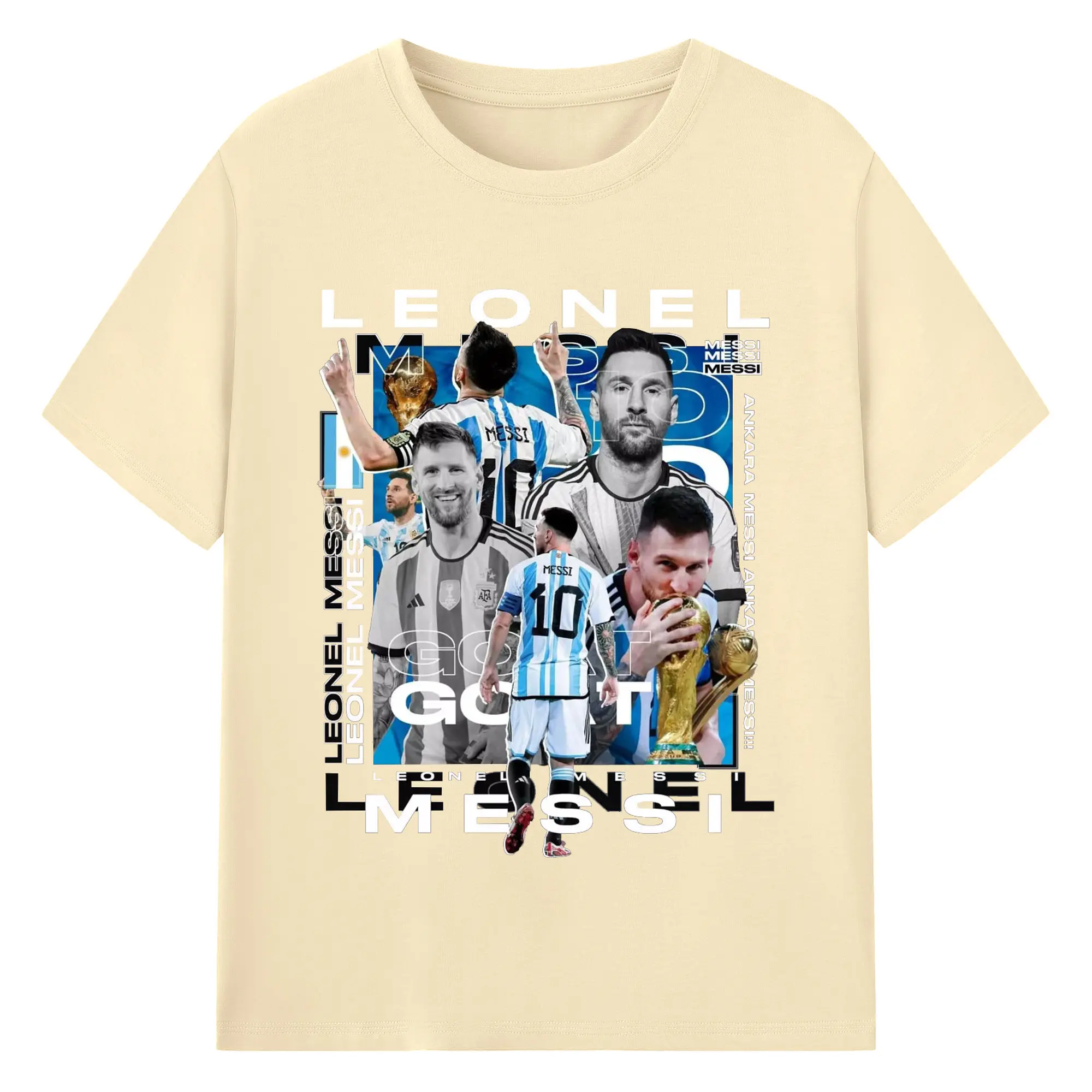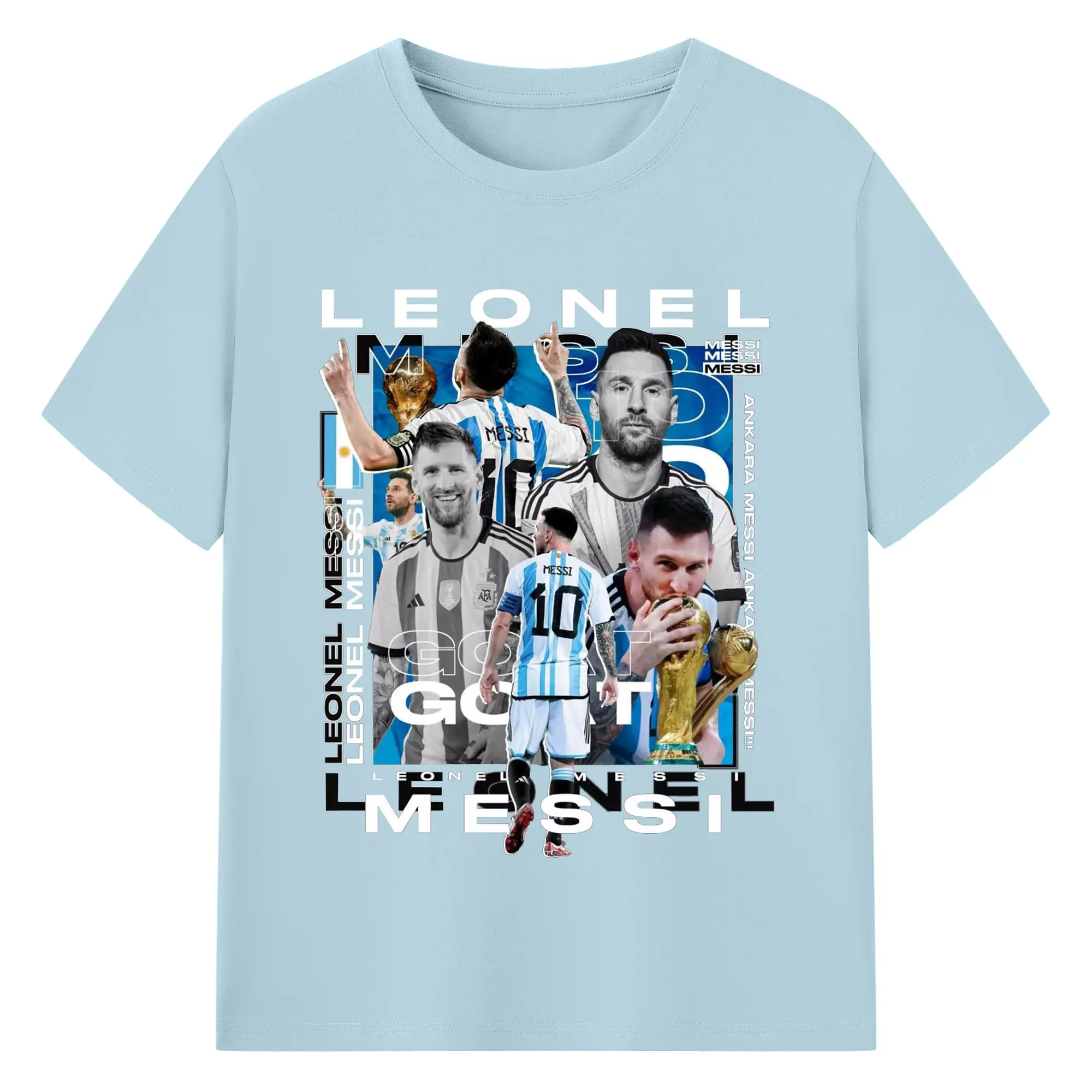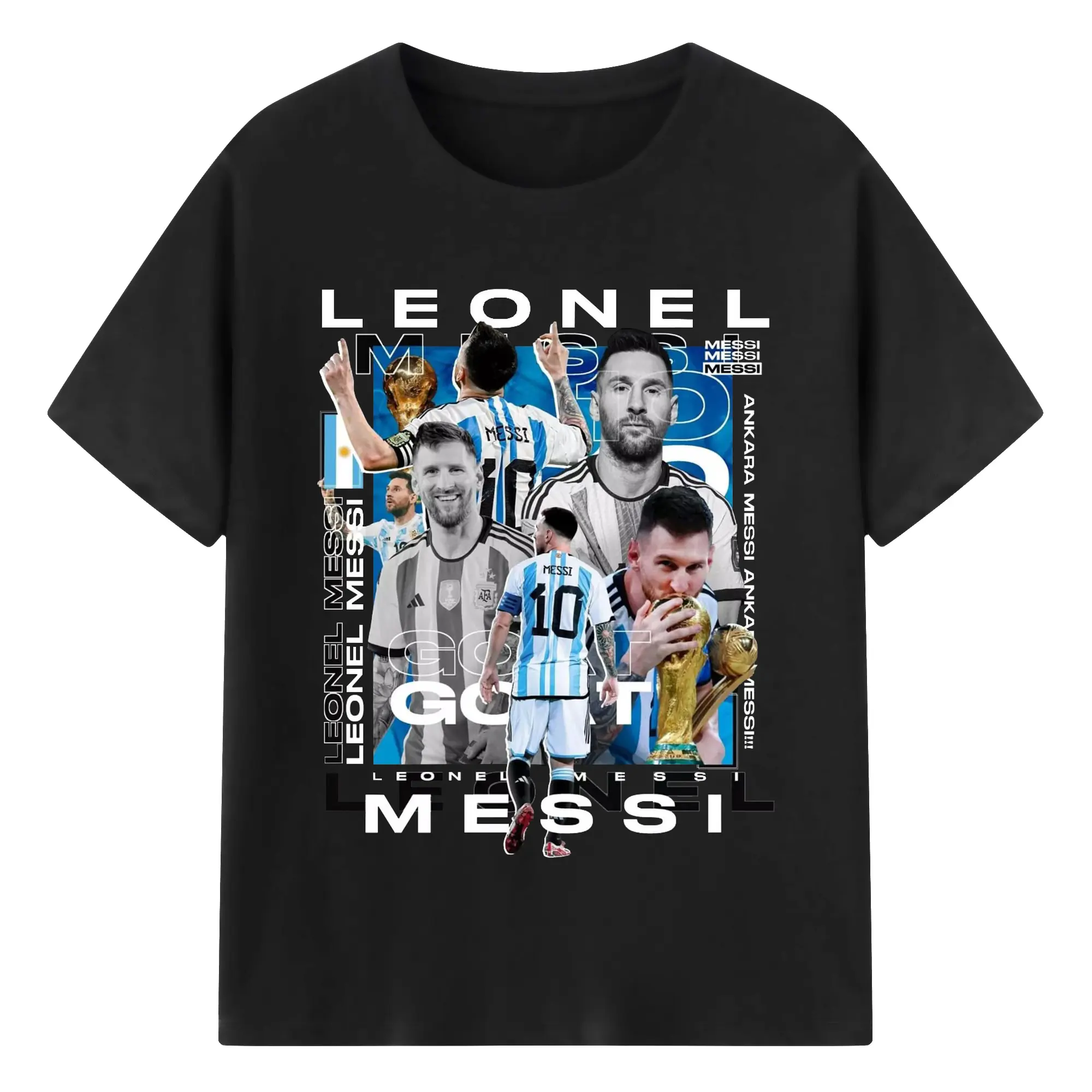 Lionel Messi Argentina World Cup GOAT Collage DIY Shirt - 180g Cotton T-Shirt With Front Heat Transfer Print – Soft, Lightweight, Fitted Design – Comfortable Casual Wear For Sports & Everyday Use