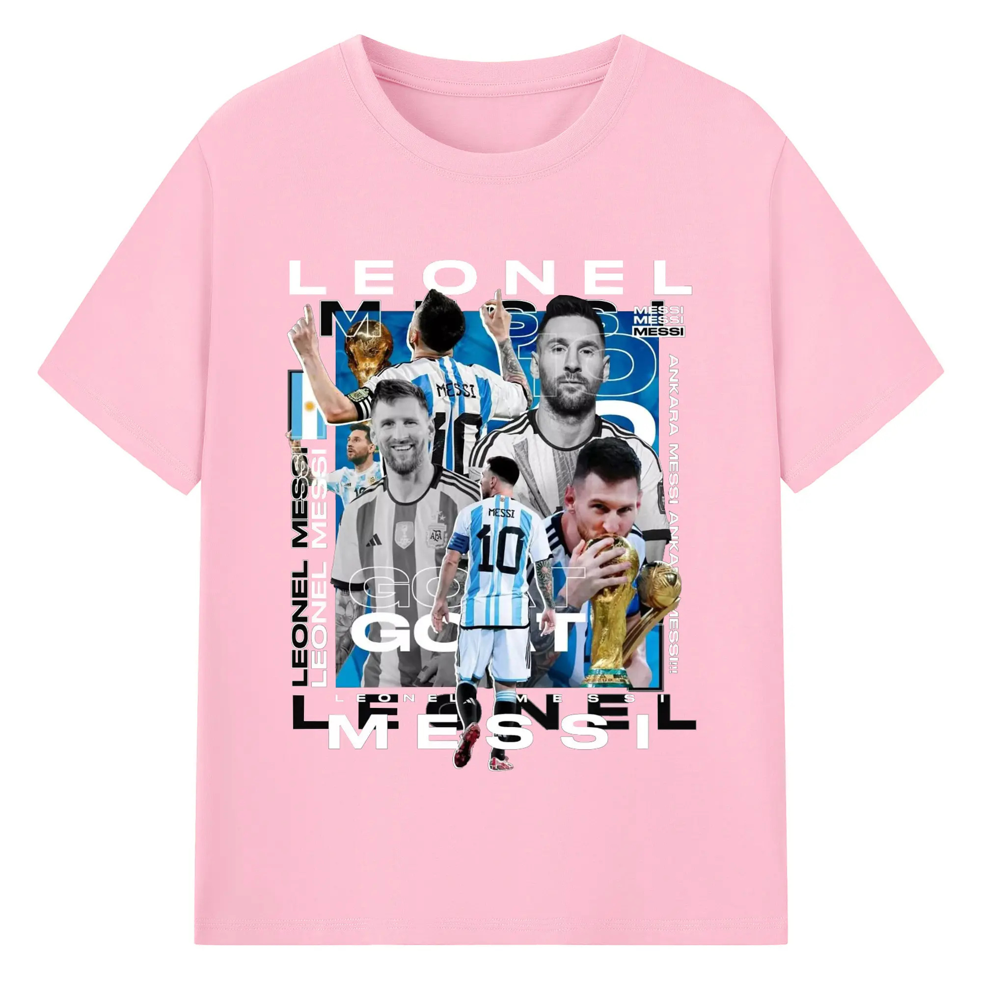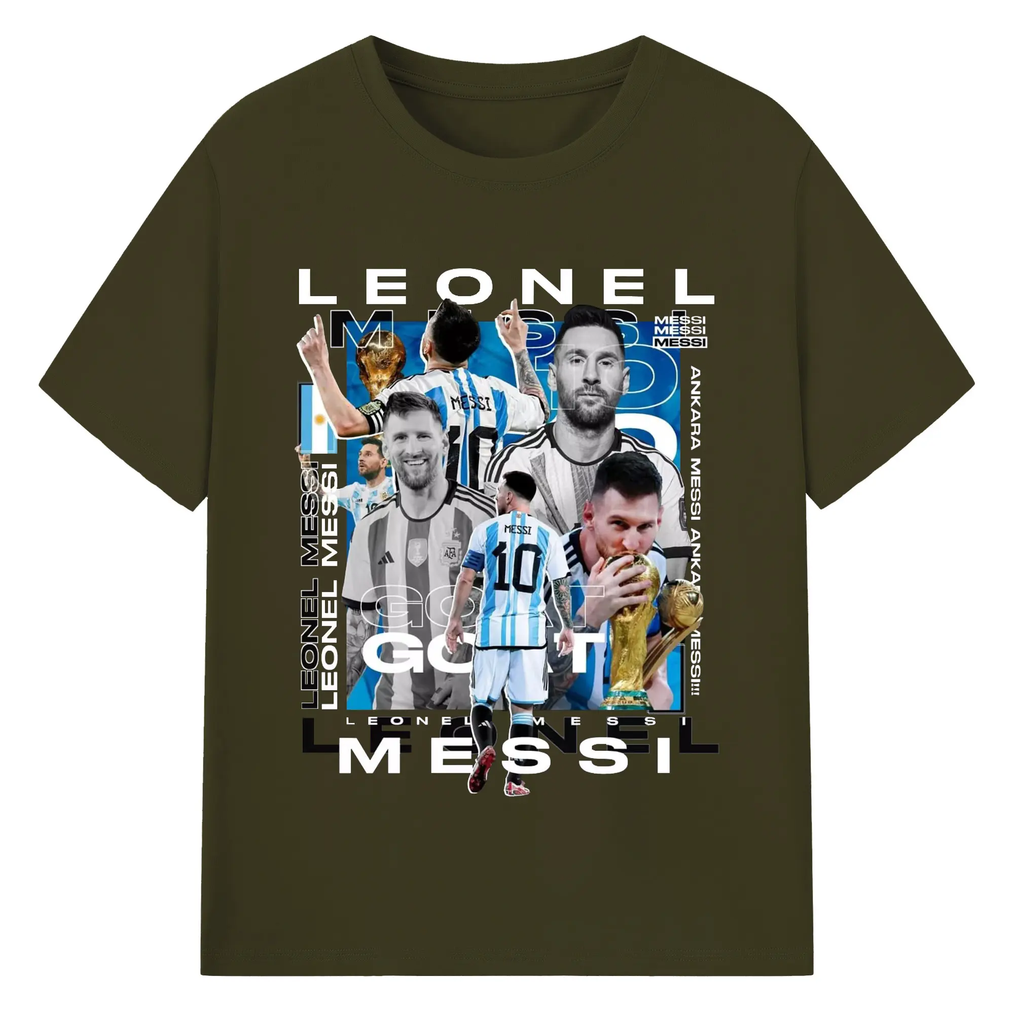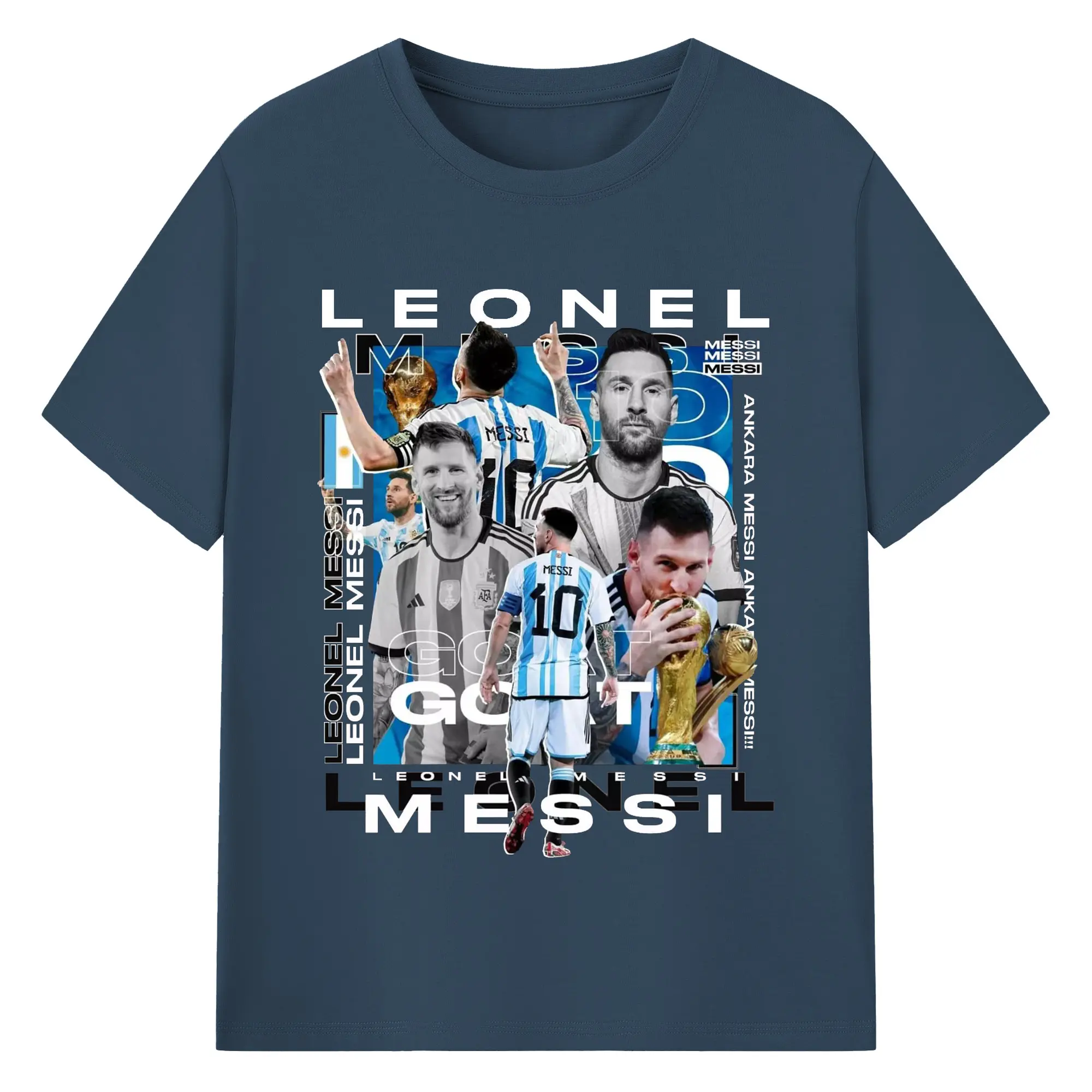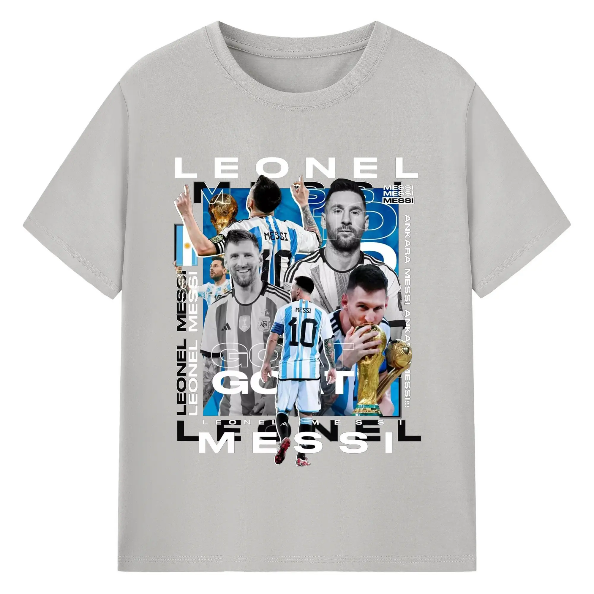 Lionel Messi Argentina World Cup GOAT Collage DIY Shirt - 180g Cotton T-Shirt With Front Heat Transfer Print – Soft, Lightweight, Fitted Design – Comfortable Casual Wear For Sports & Everyday Use
