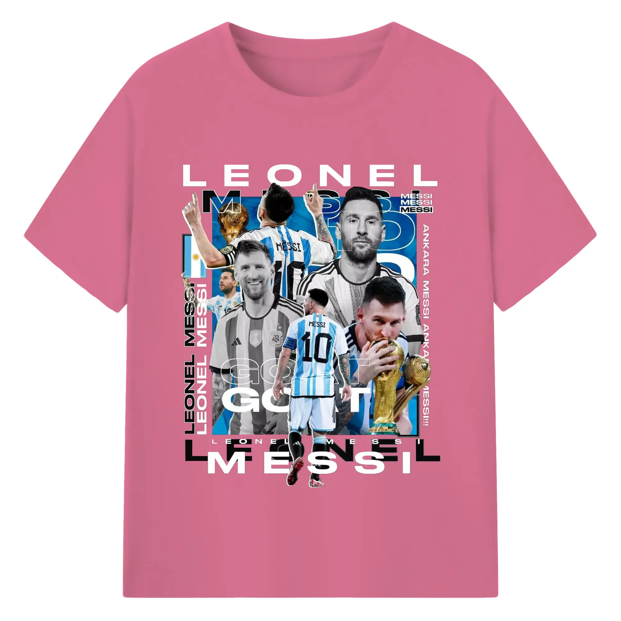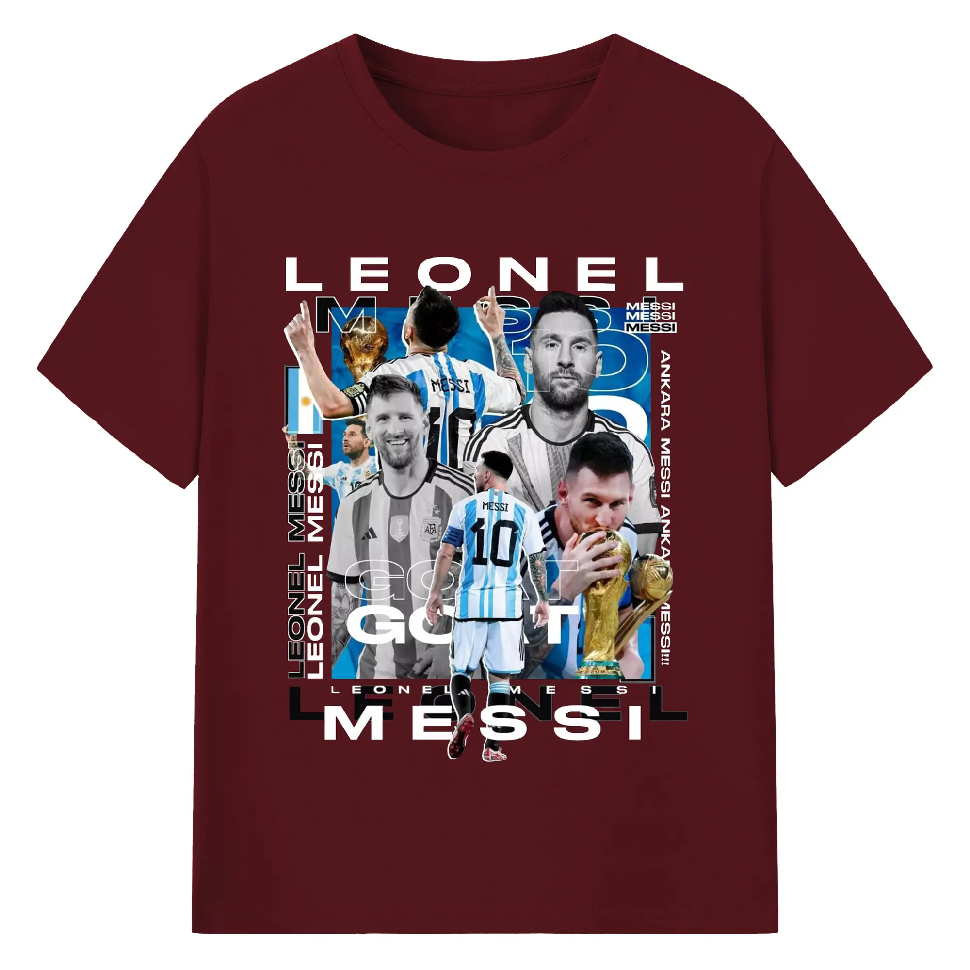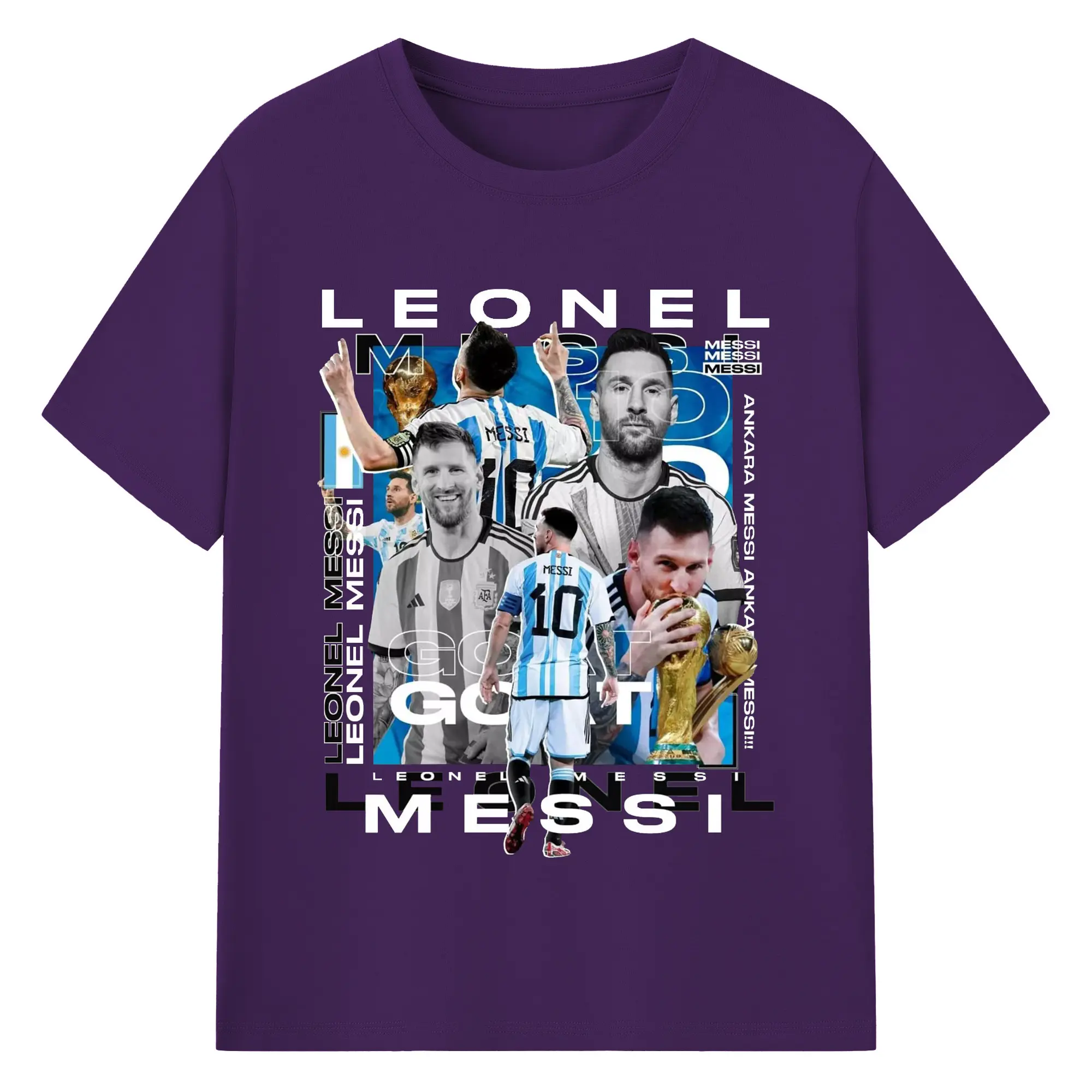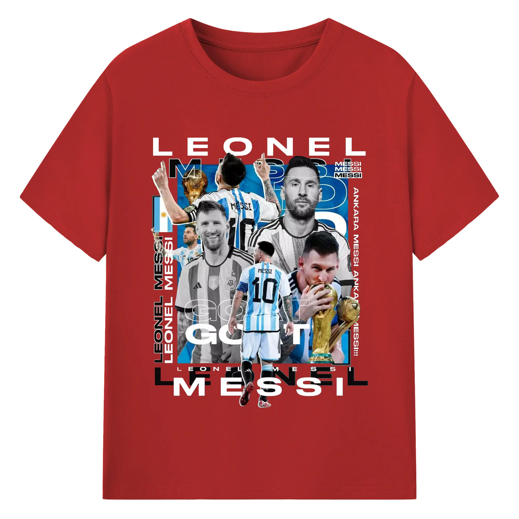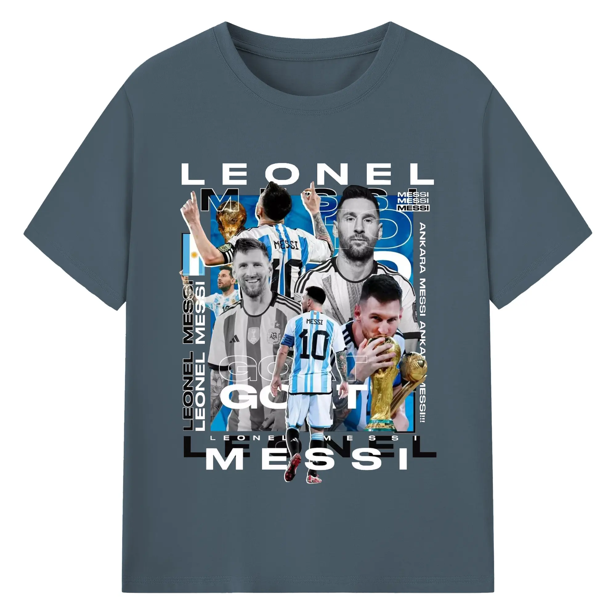 Lionel Messi Argentina World Cup GOAT Collage DIY Shirt - 180g Cotton T-Shirt With Front Heat Transfer Print – Soft, Lightweight, Fitted Design – Comfortable Casual Wear For Sports & Everyday Use