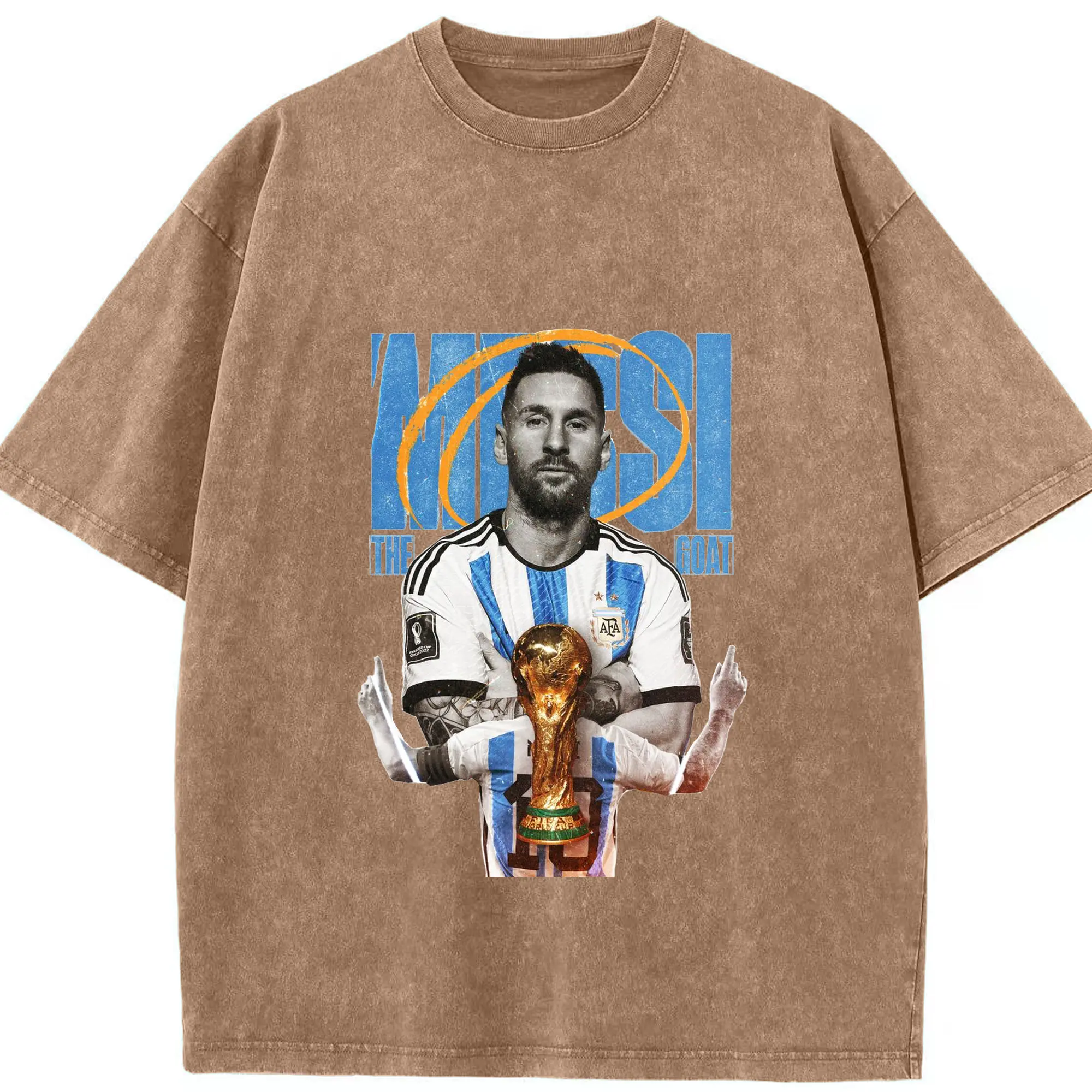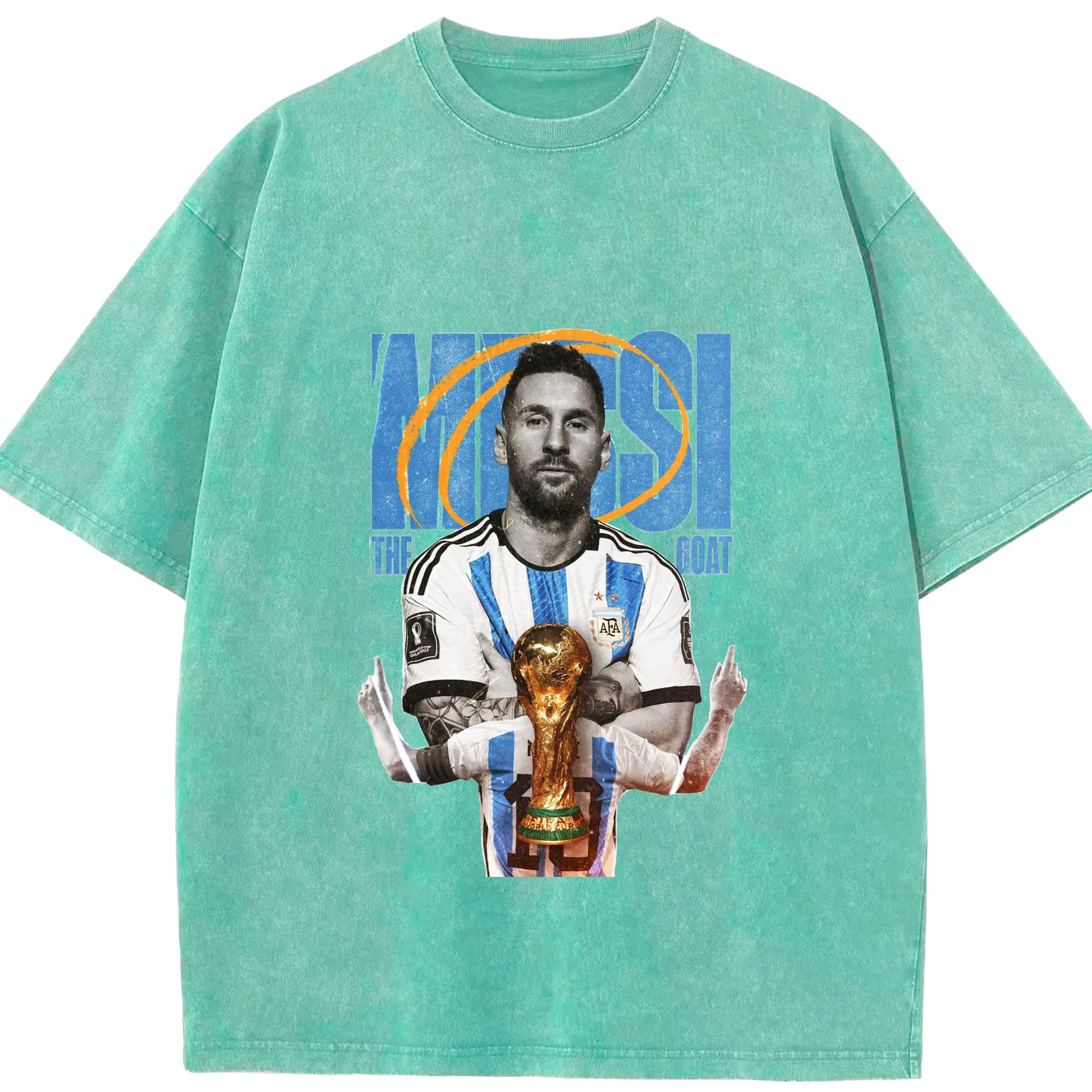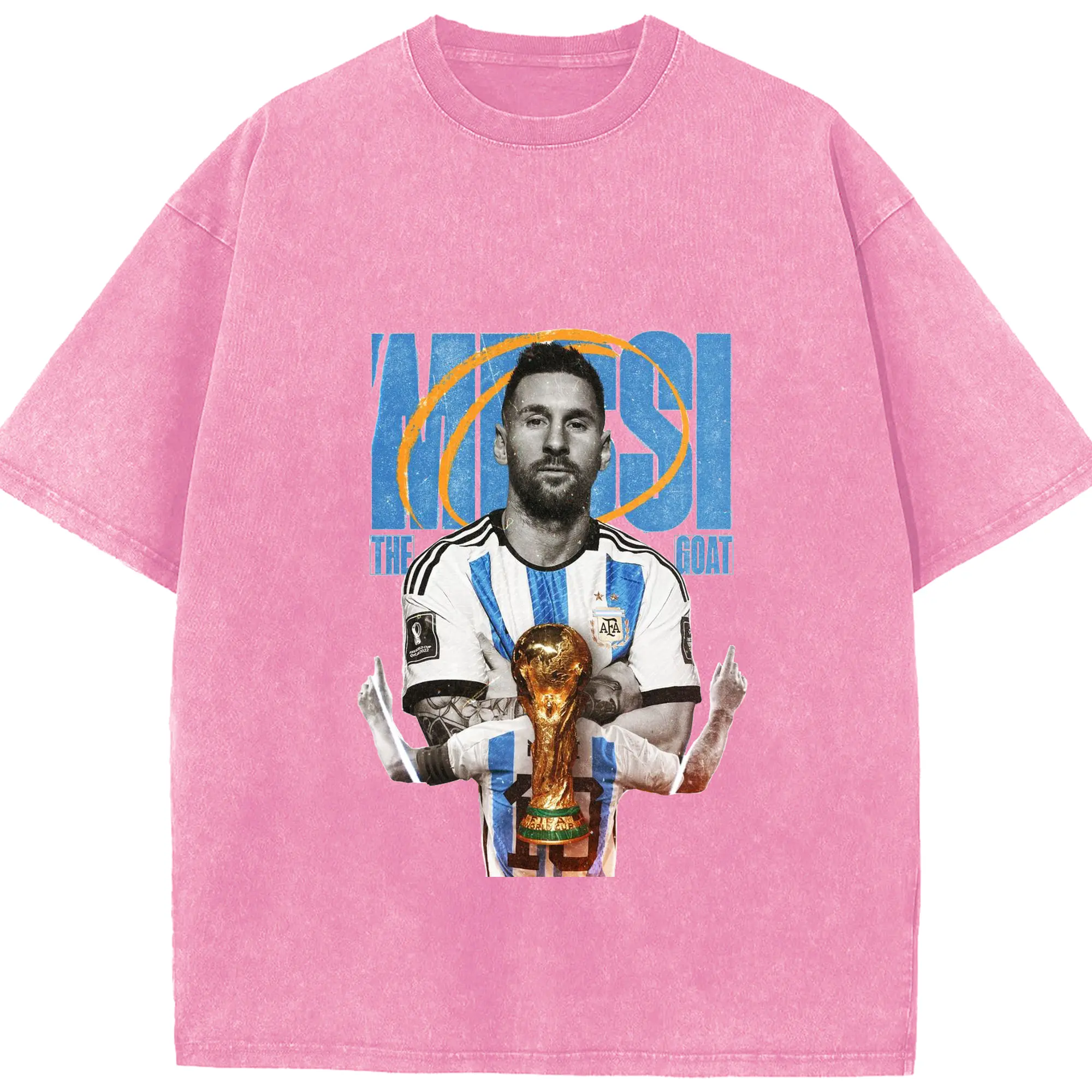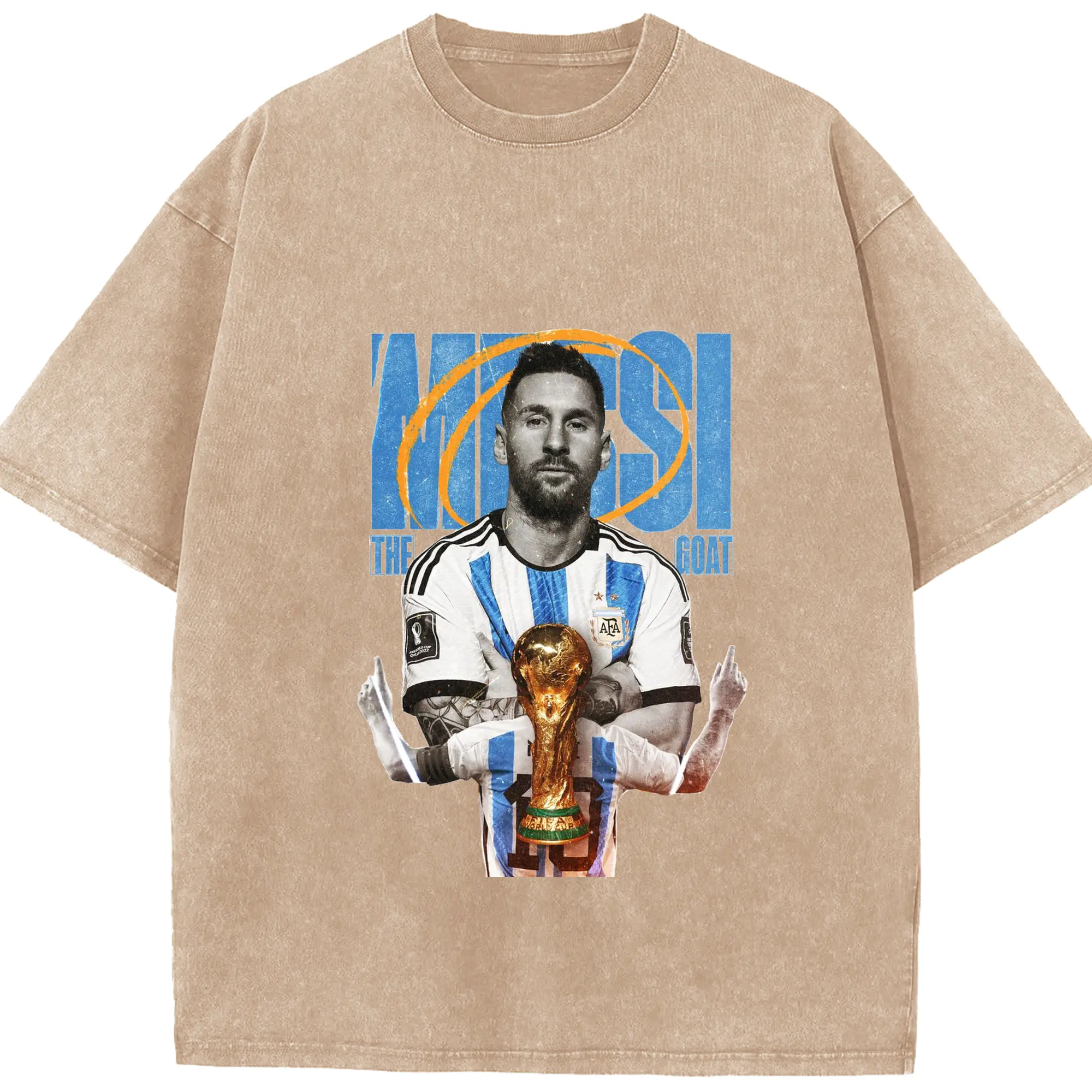 Lionel Messi Argentina World Cup GOAT DIY Shirt - Washed Vintage Look 230g Cotton Oversized T-Shirt With Front Heat Transfer Print – Soft, Lightweight, Stylish Fit – Comfortable Casual Wear For Sports & Everyday Use