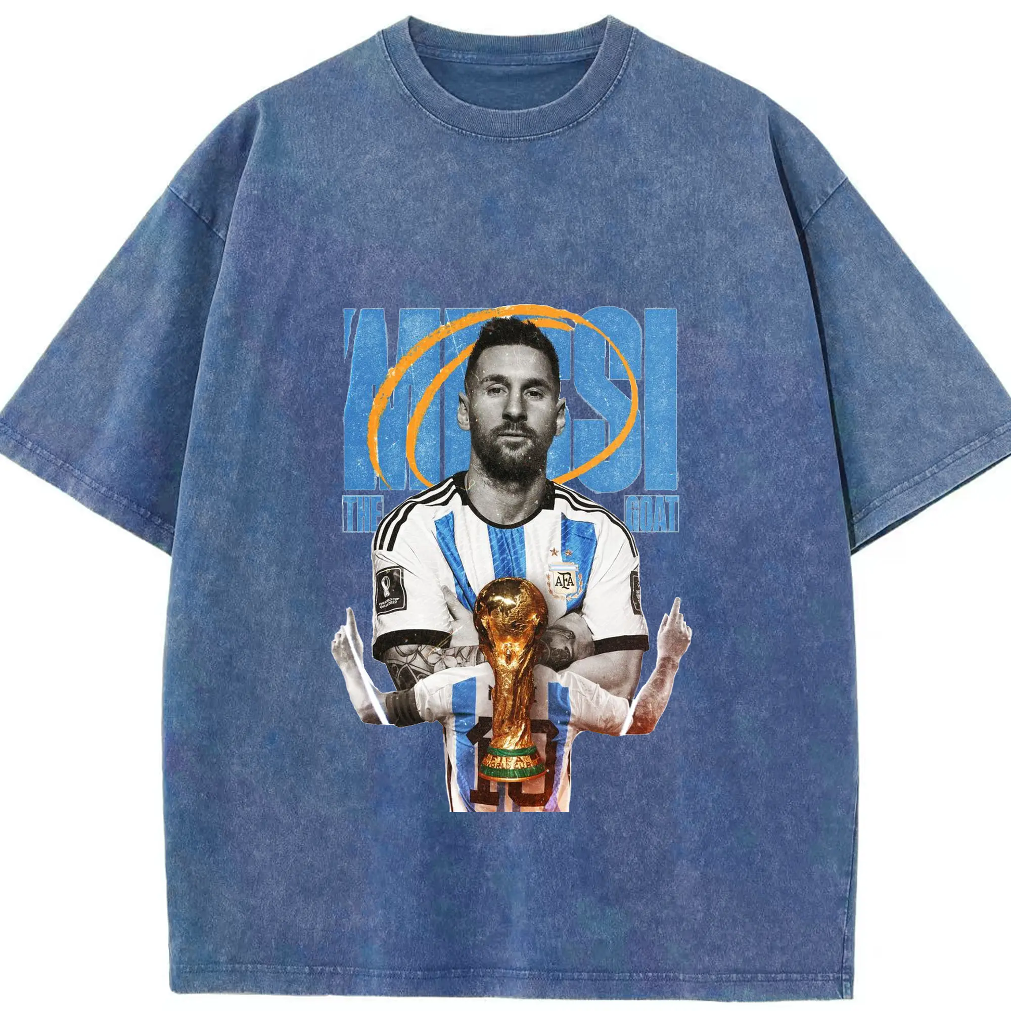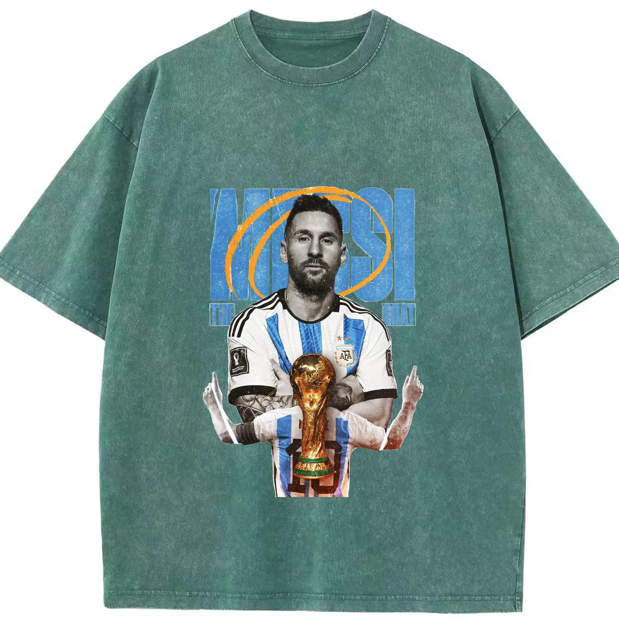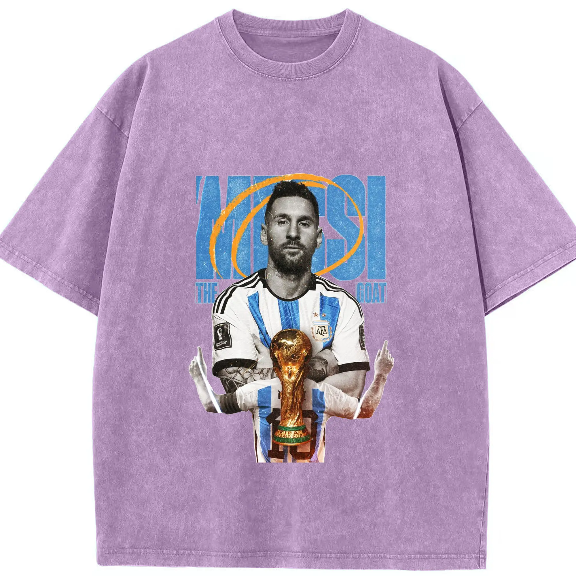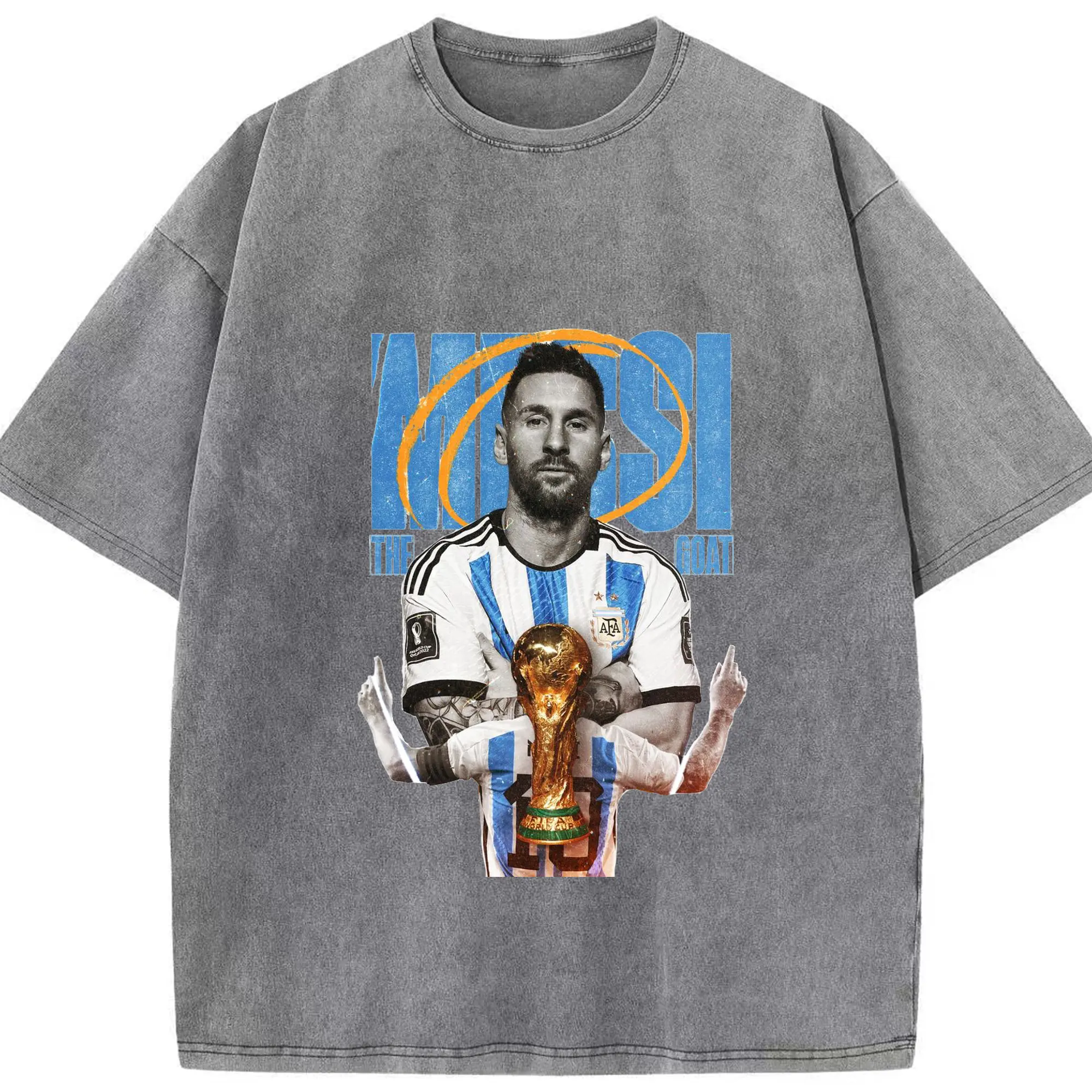 Lionel Messi Argentina World Cup GOAT DIY Shirt - Washed Vintage Look 230g Cotton Oversized T-Shirt With Front Heat Transfer Print – Soft, Lightweight, Stylish Fit – Comfortable Casual Wear For Sports & Everyday Use